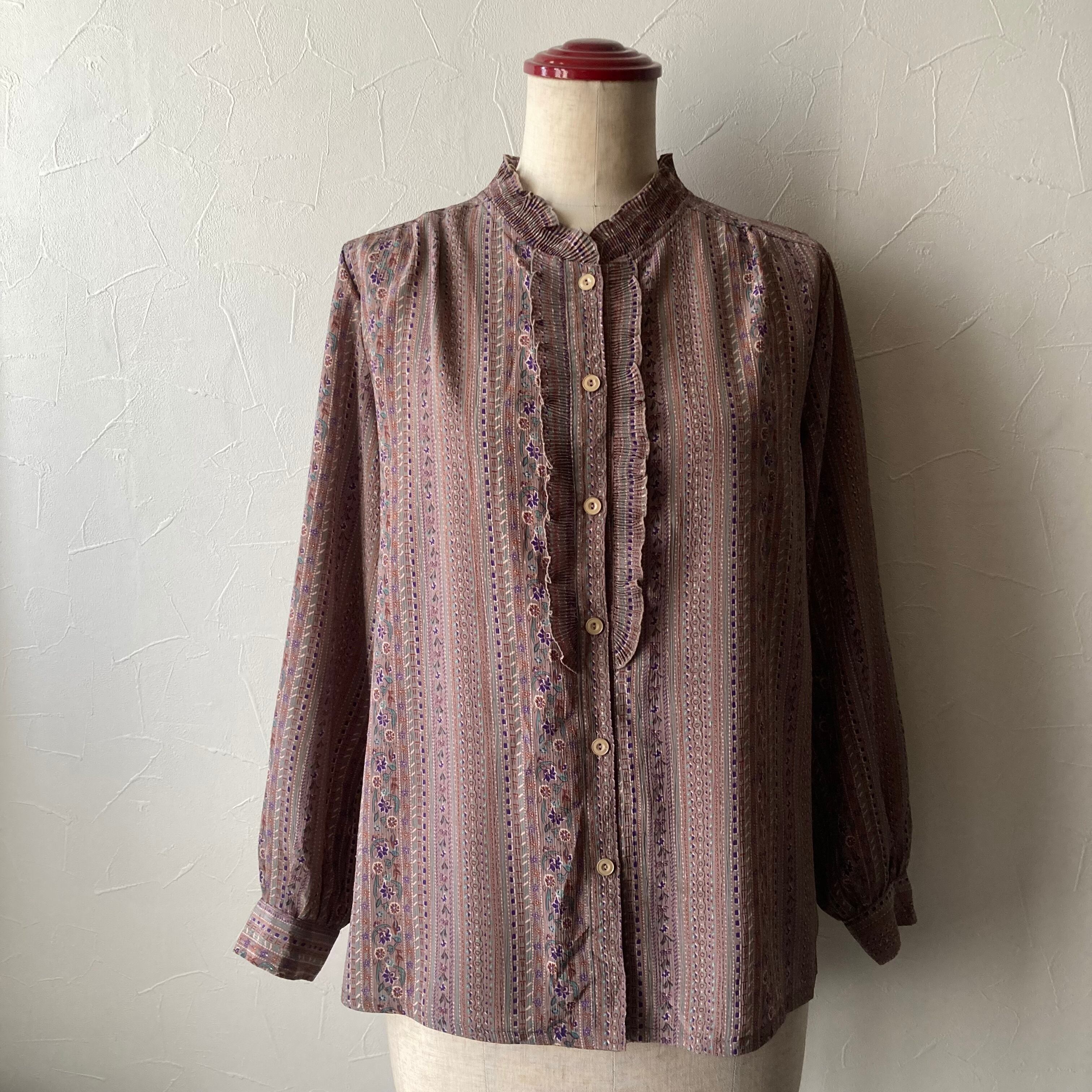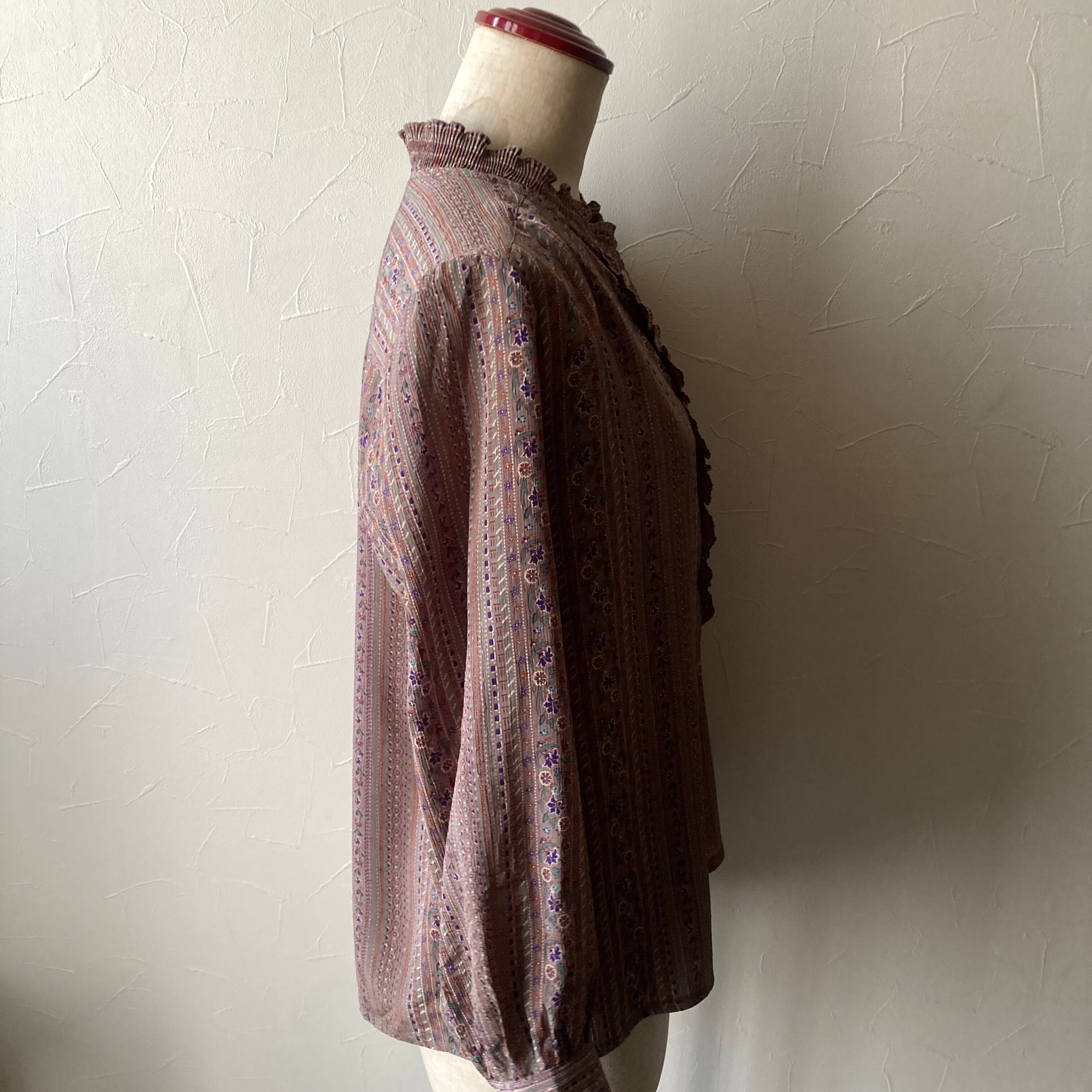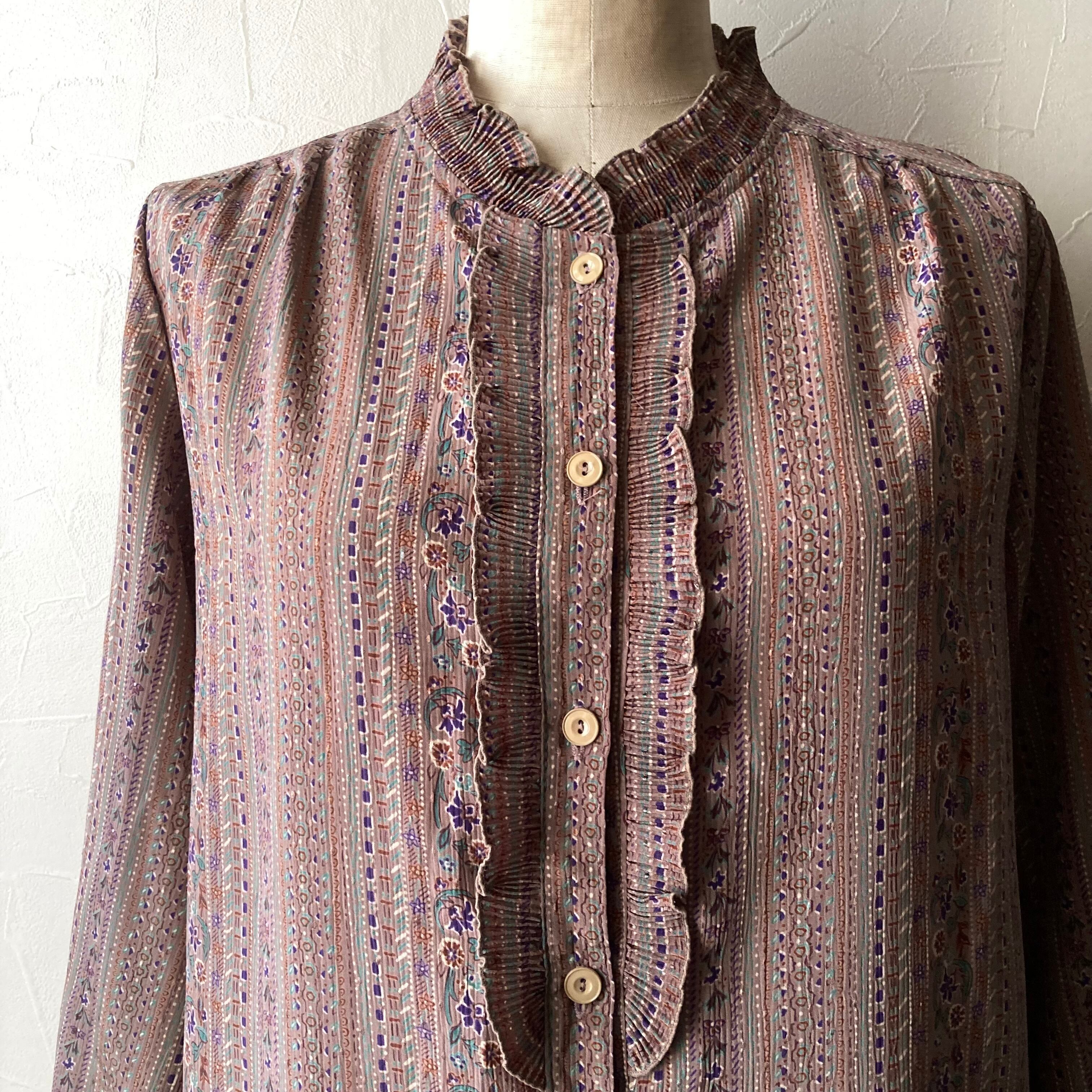 プリーツフリル柄ブラウス 古着 used vintage レトロ