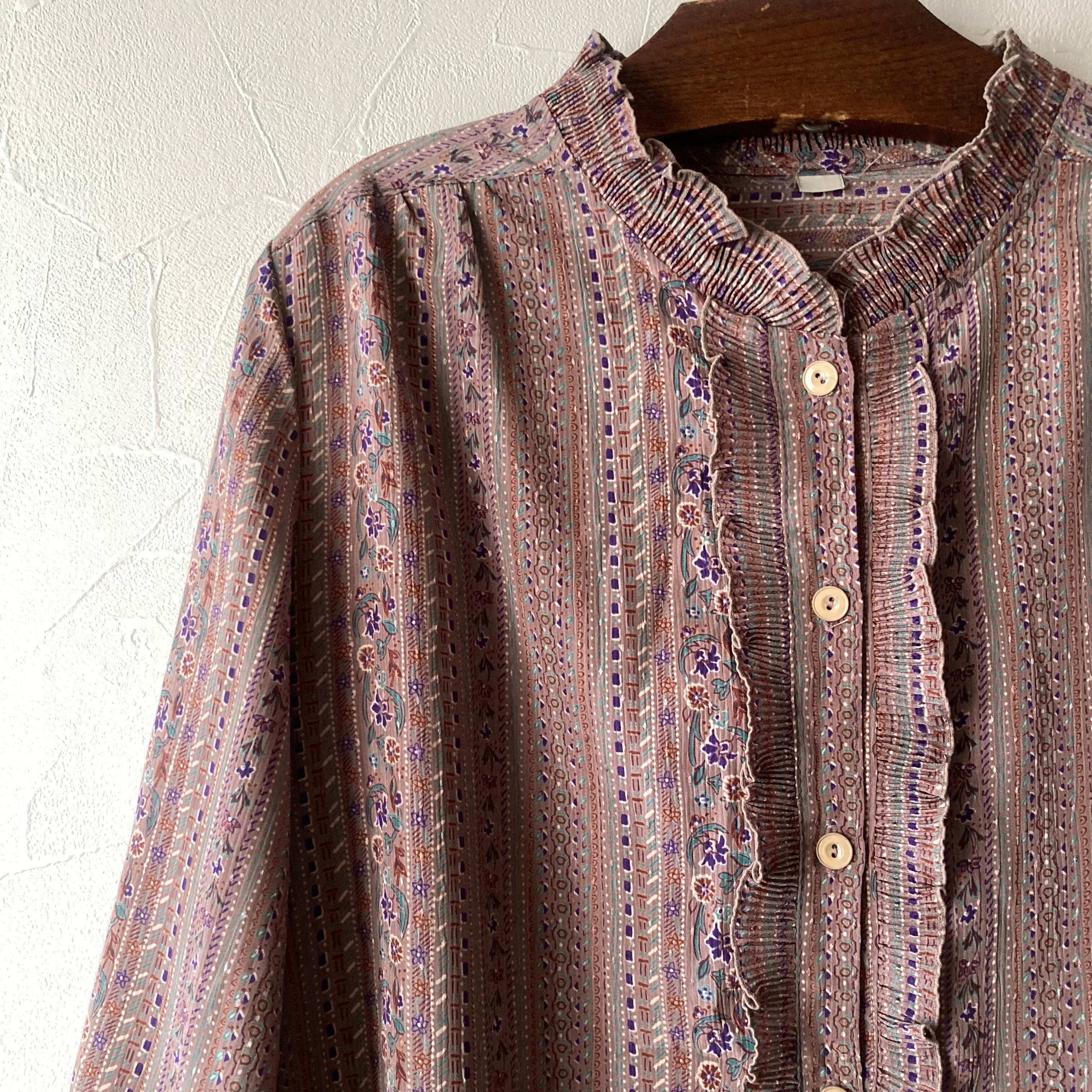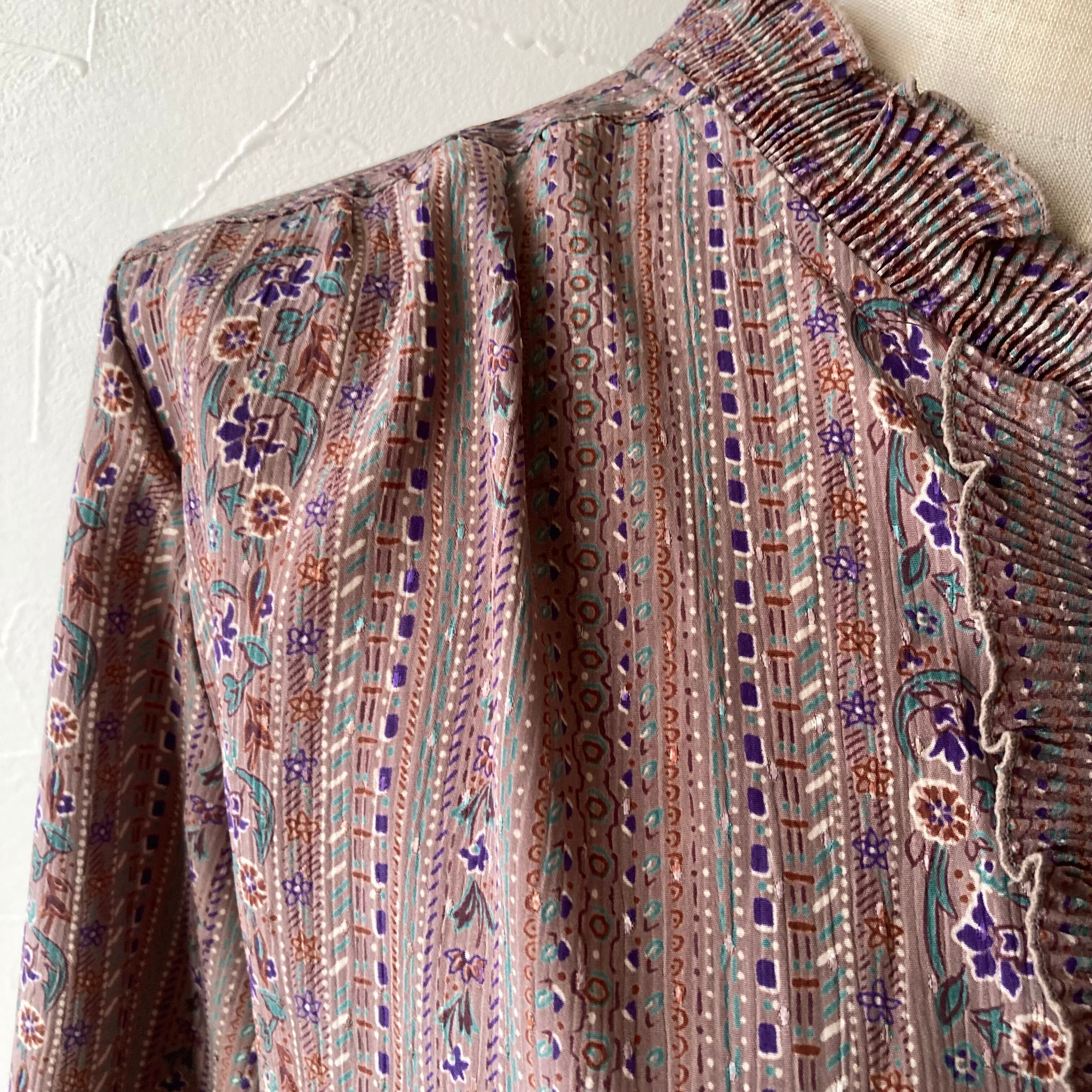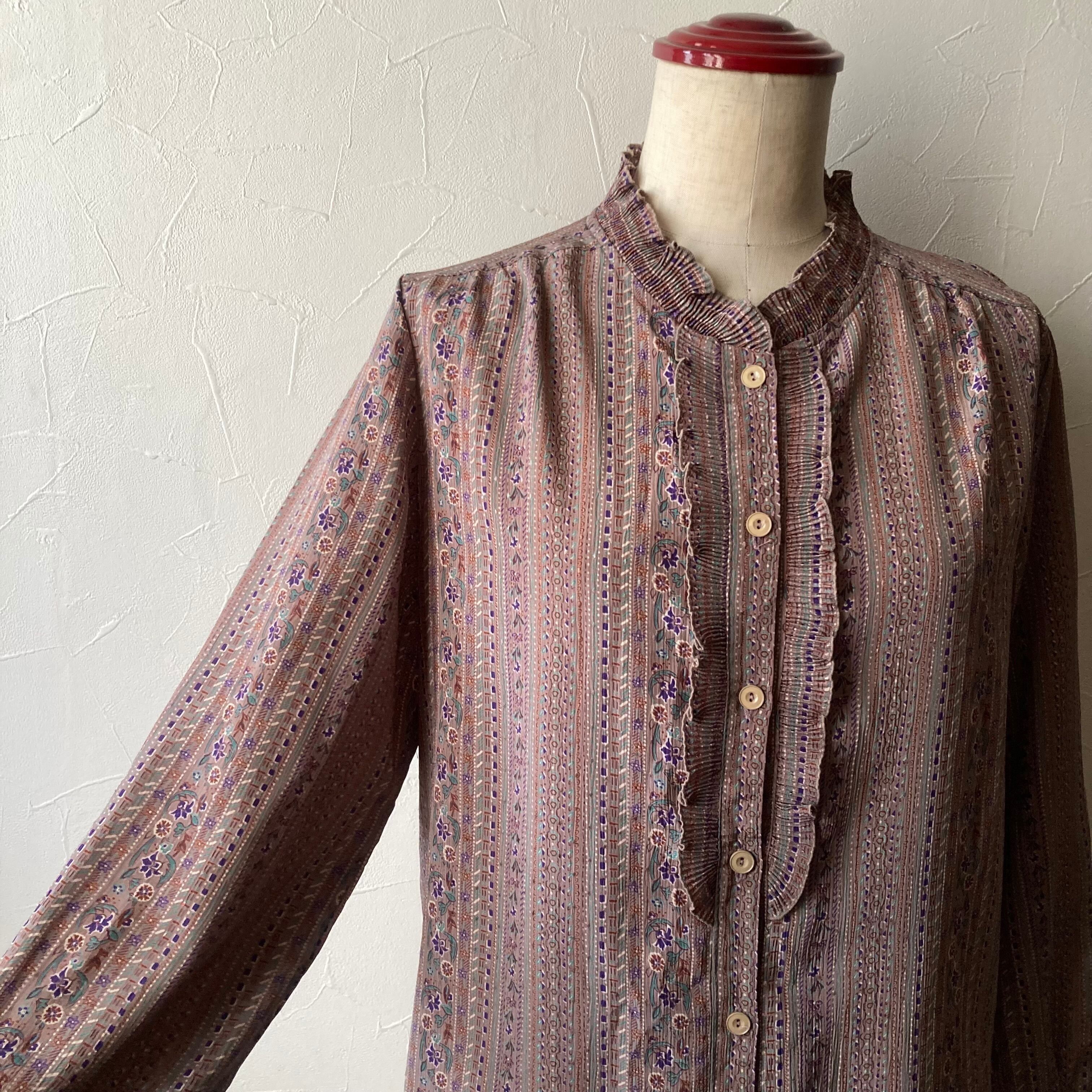 プリーツフリル柄ブラウス 古着 used vintage レトロ