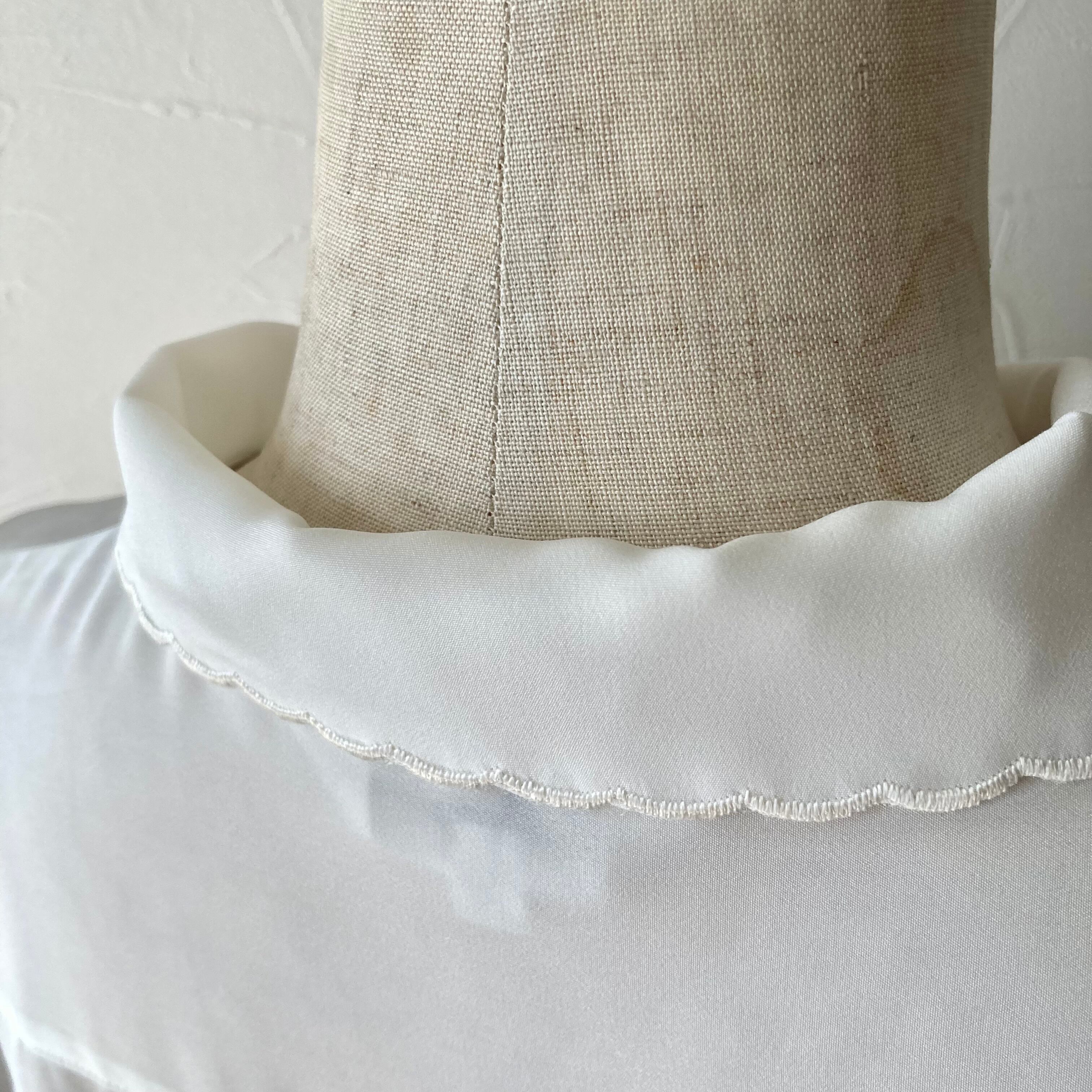 襟のカットワーク刺繍とボタンラインのレトロな刺繍が素敵なホワイトブラウス。