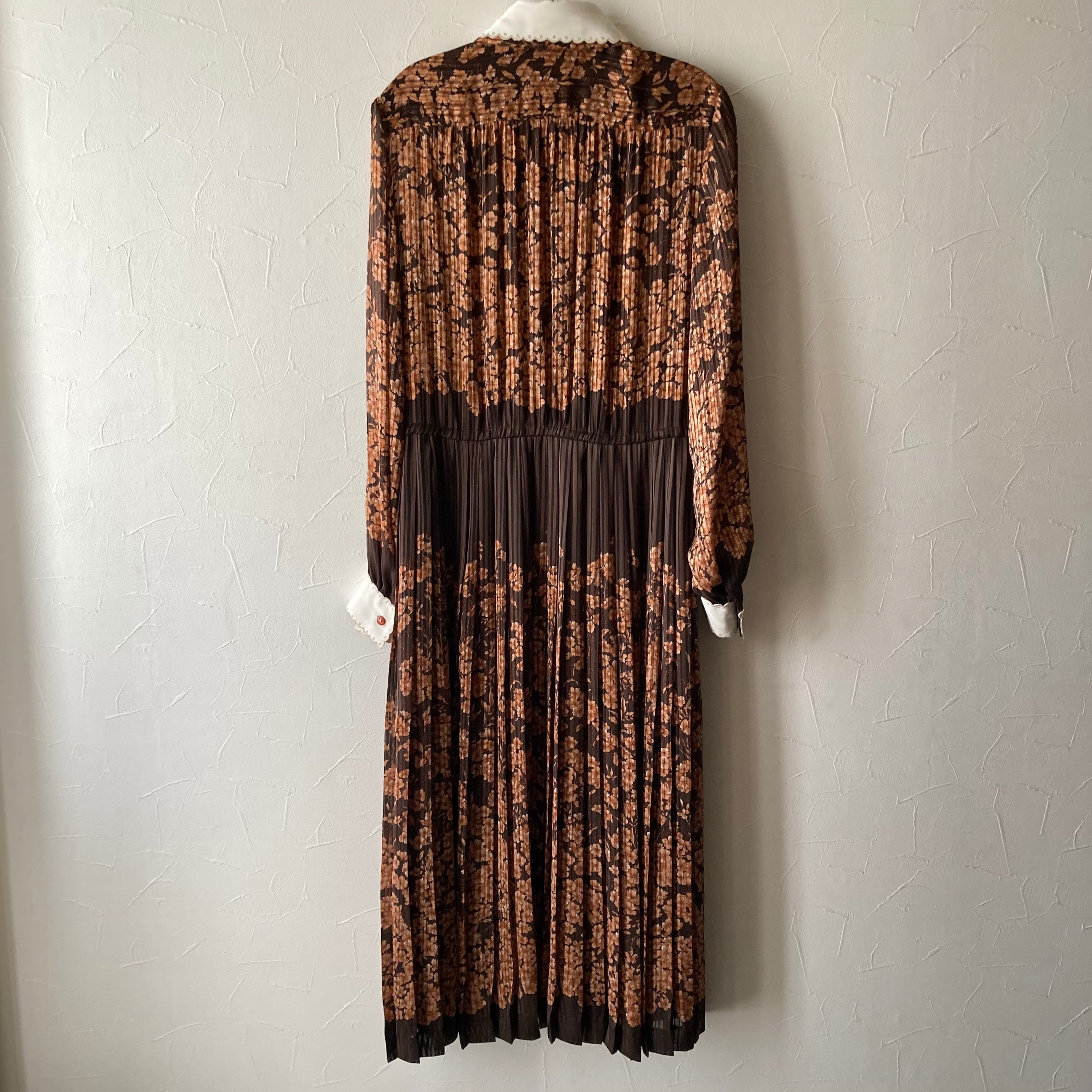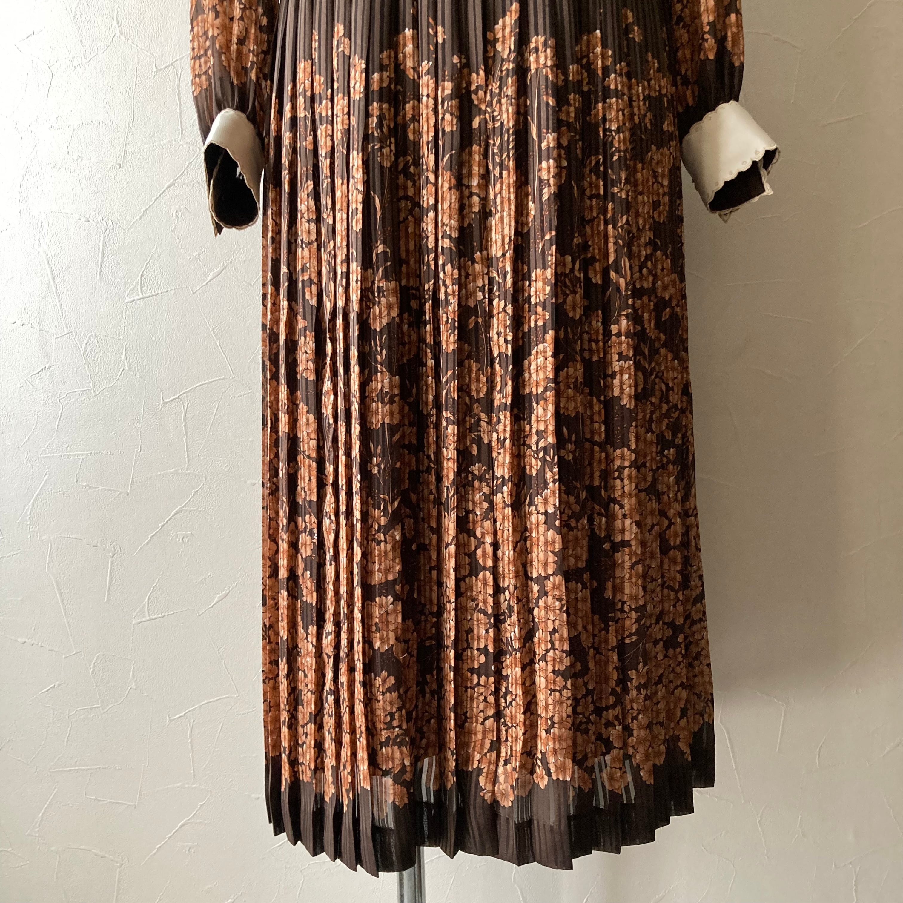 刺繍襟ブラウンプリーツワンピース 古着 used vintage レトロ