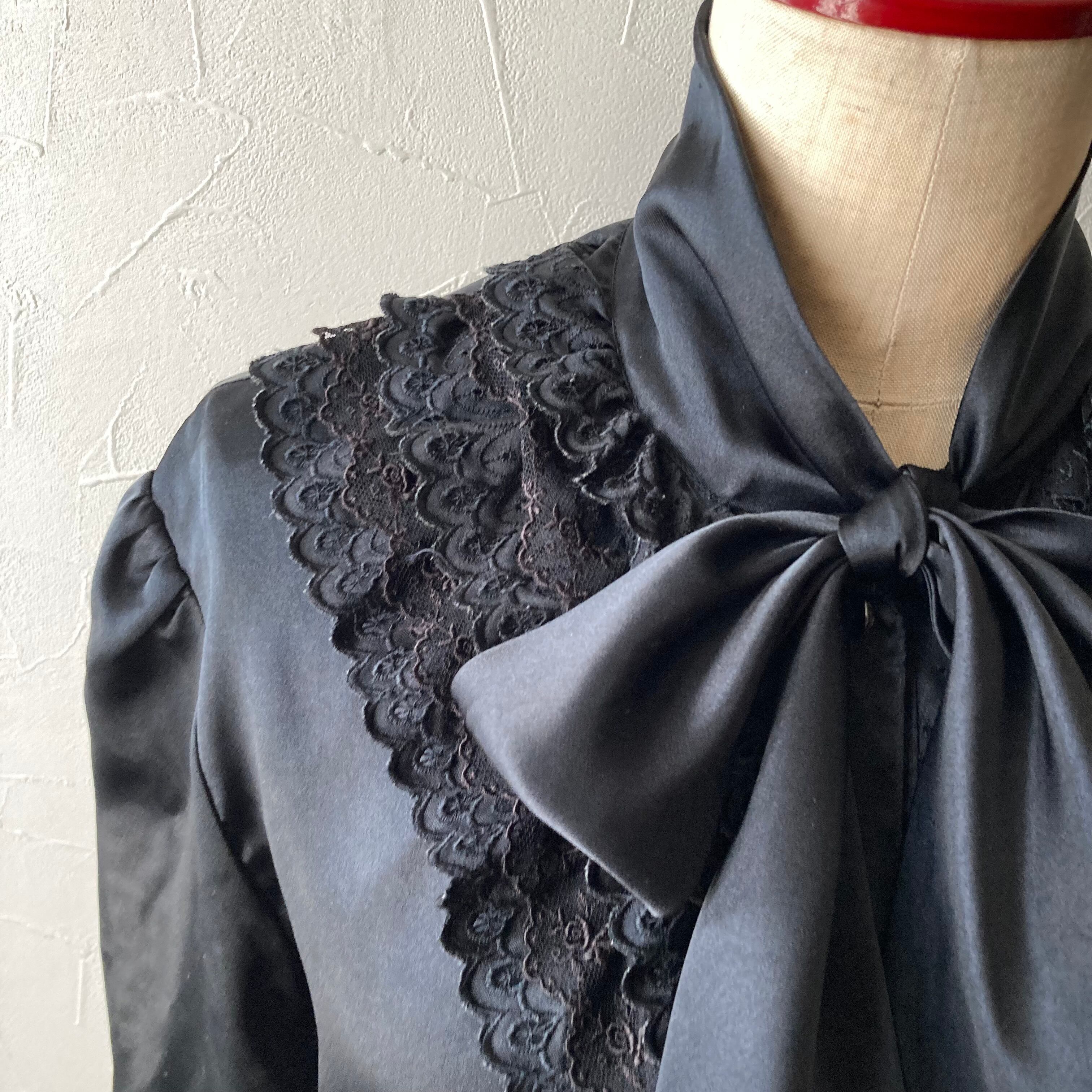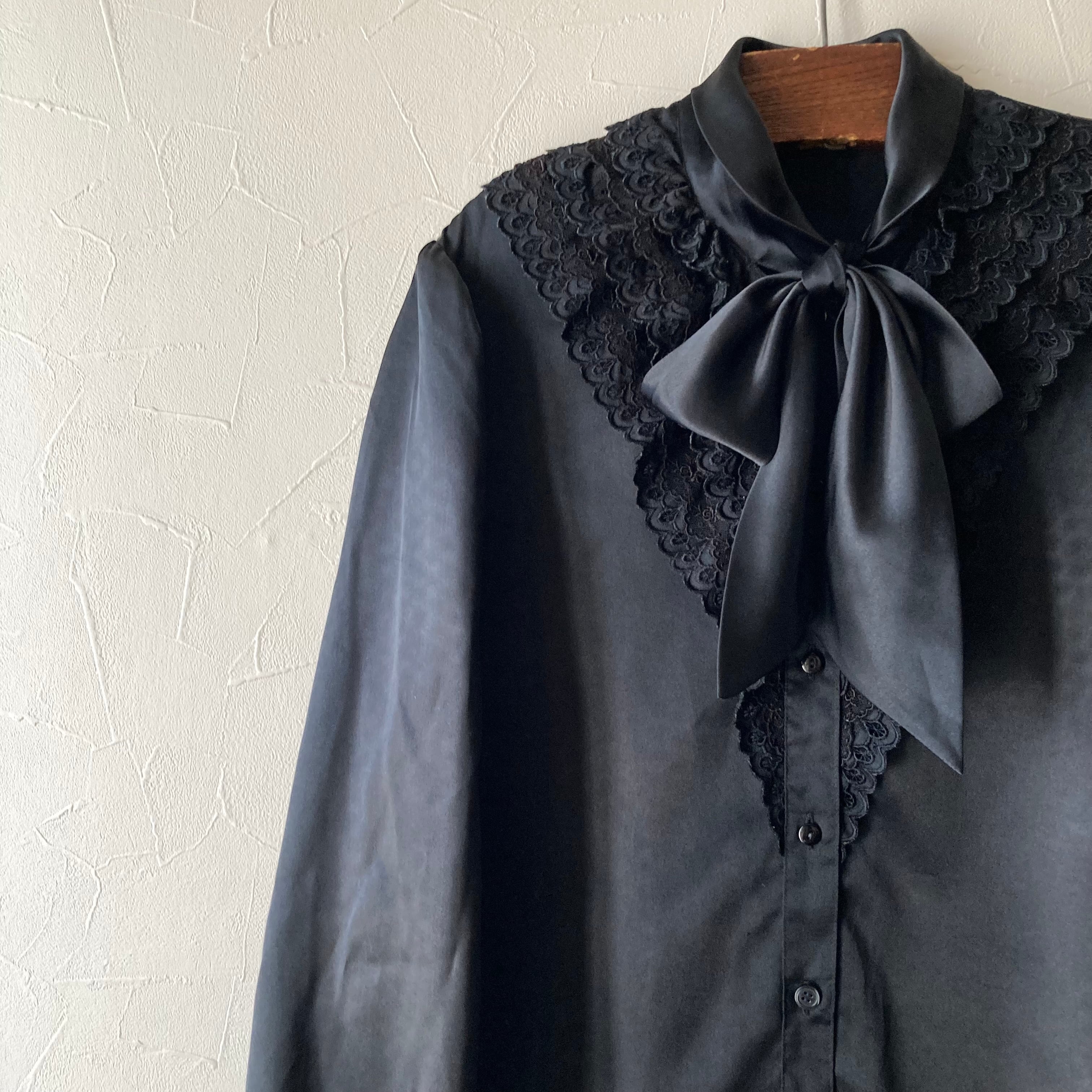 黒色フリルリボンブラウス 古着 used vintage レトロ