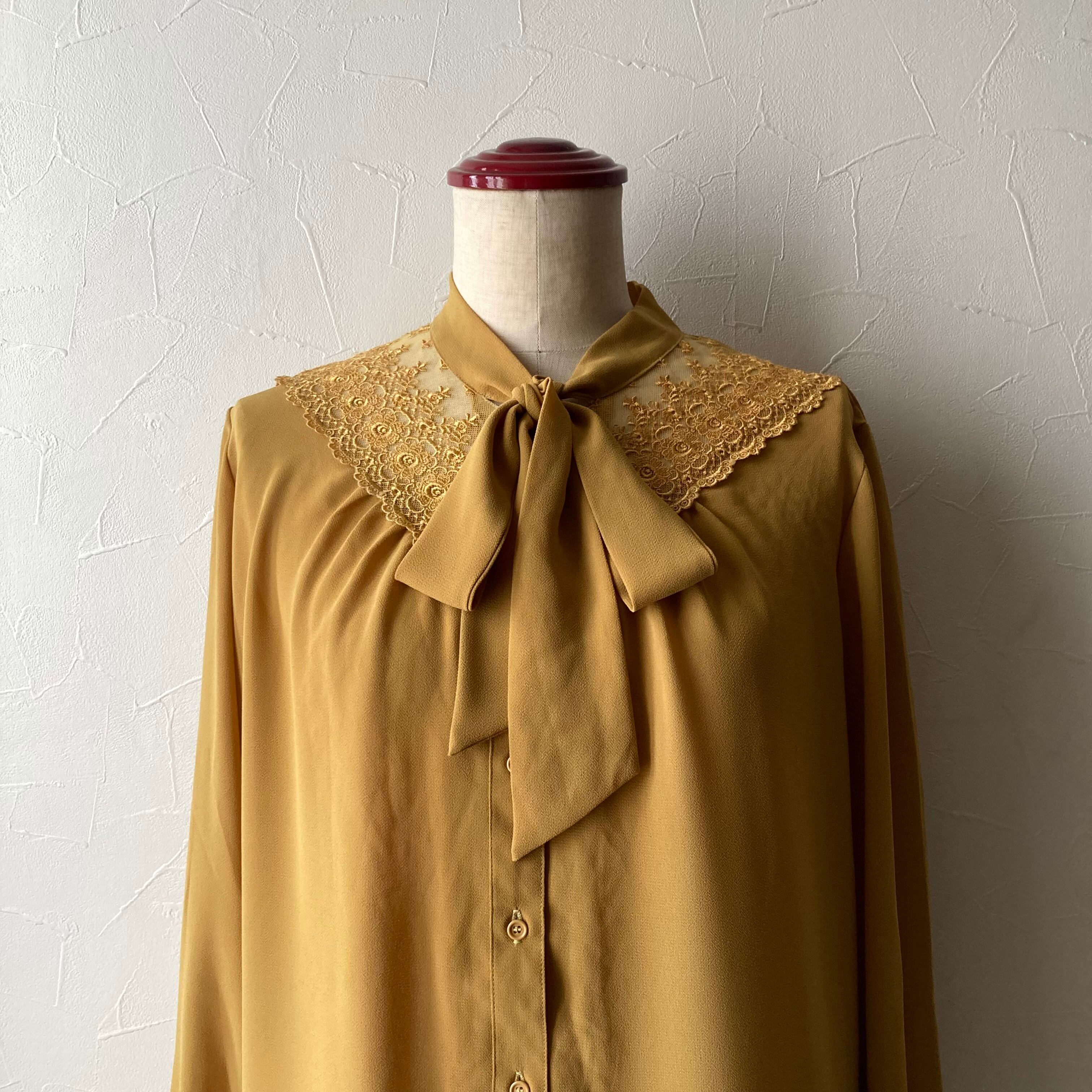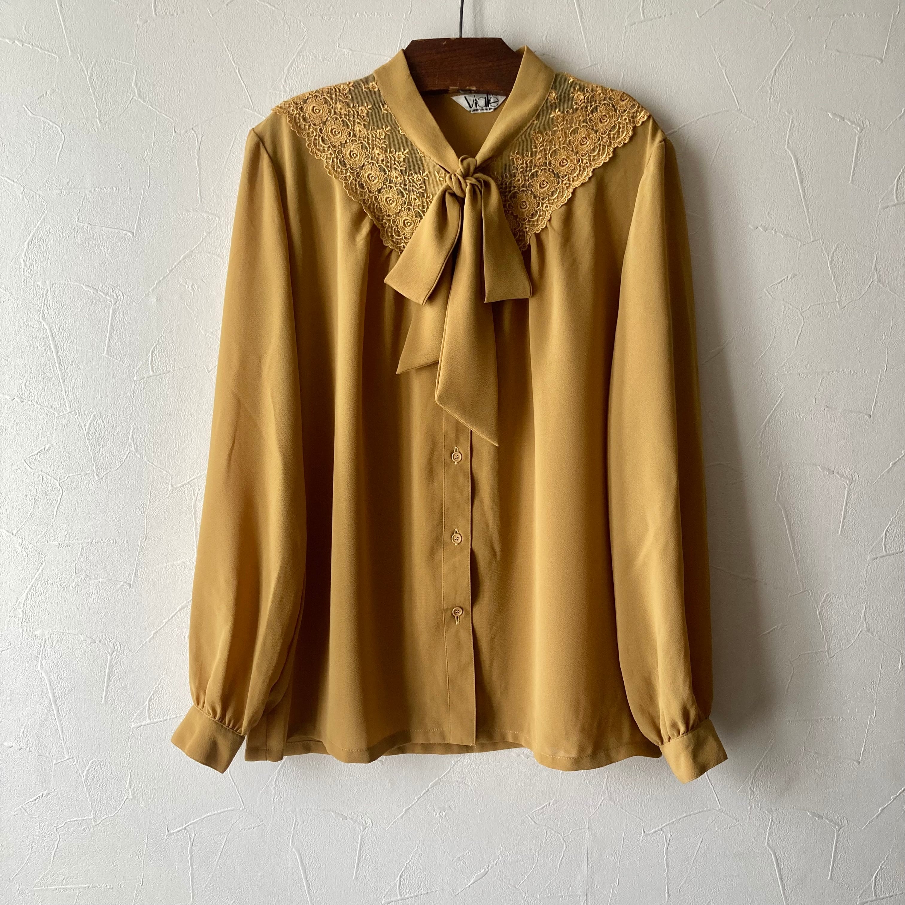 マスタードレースリボンブラウス 古着 used vintage レトロ