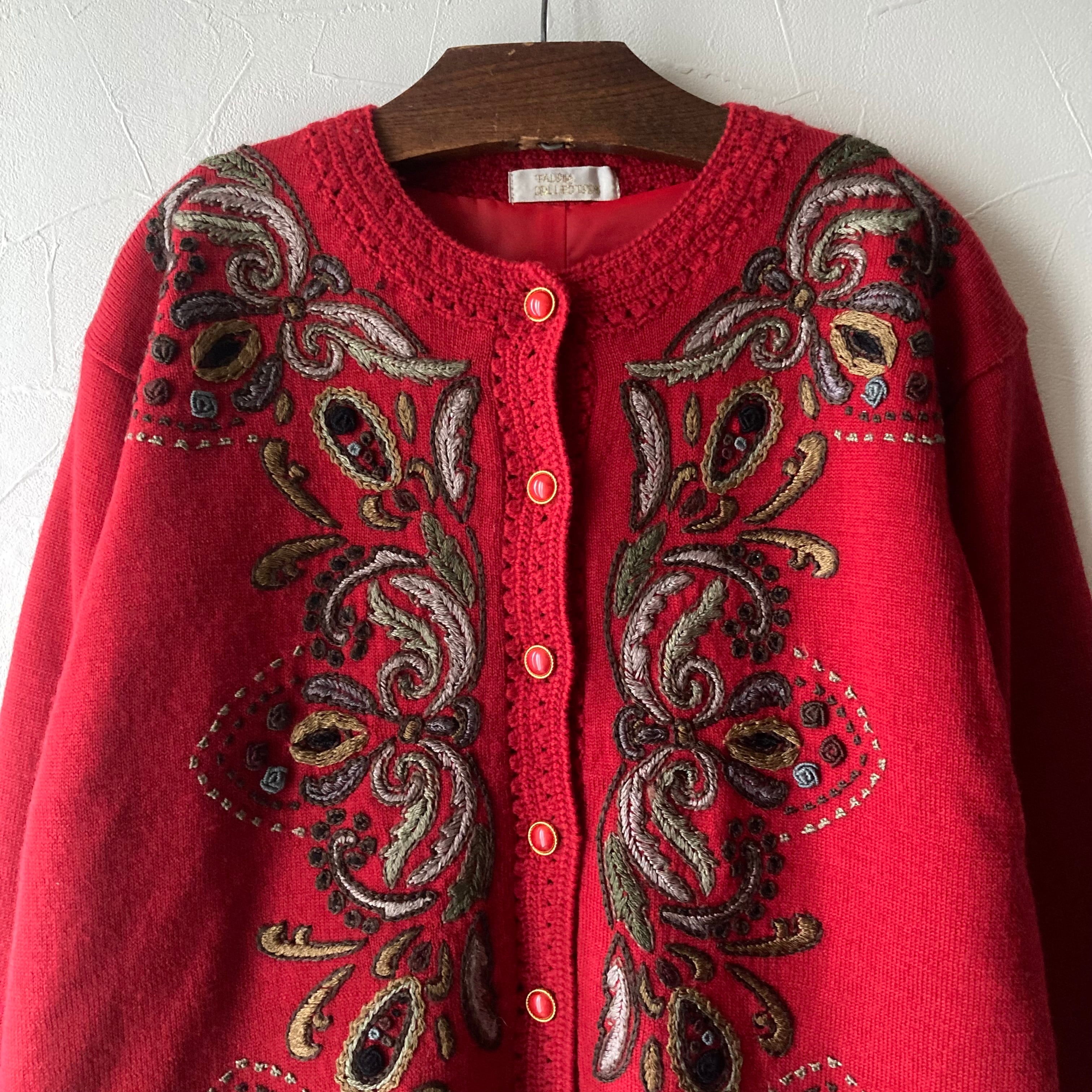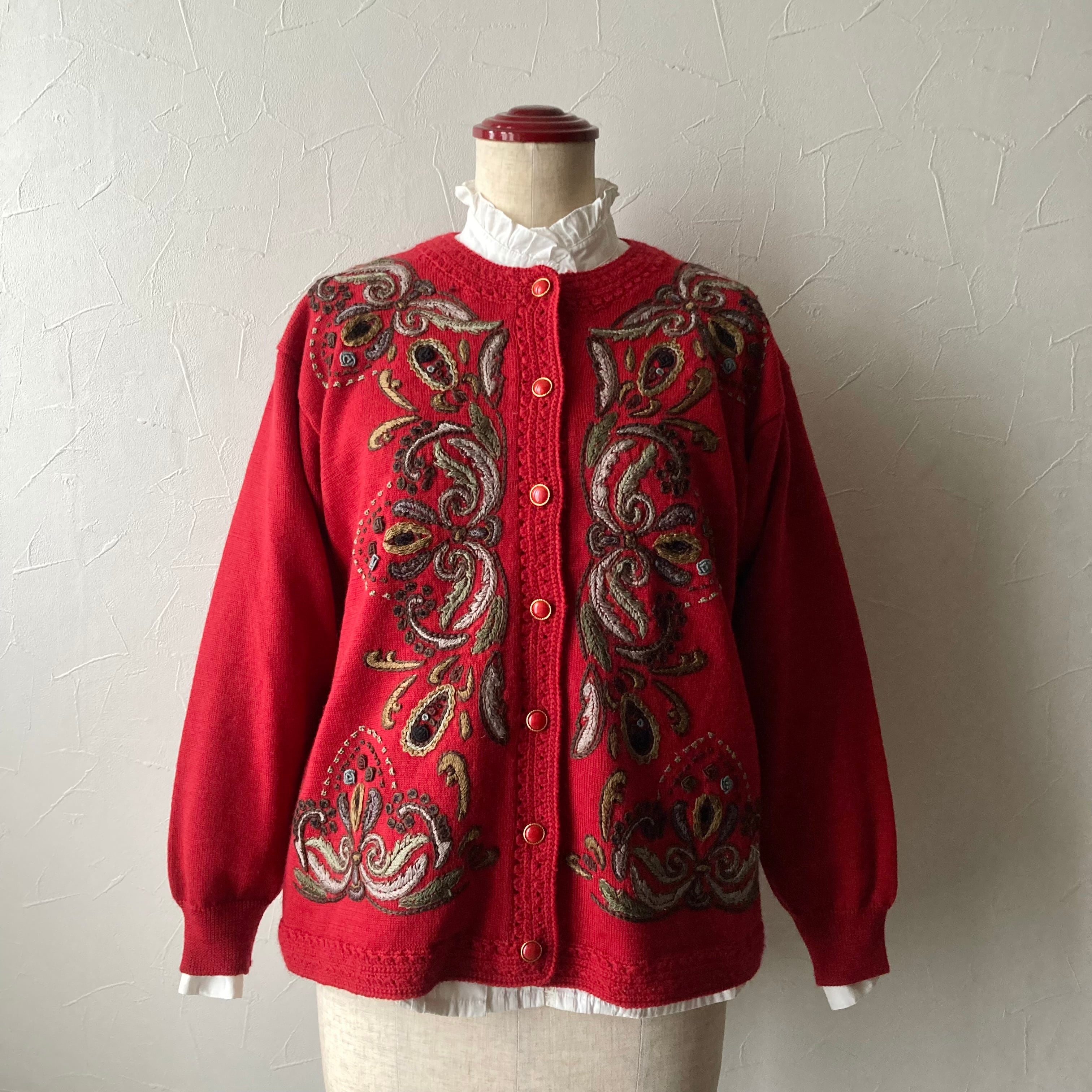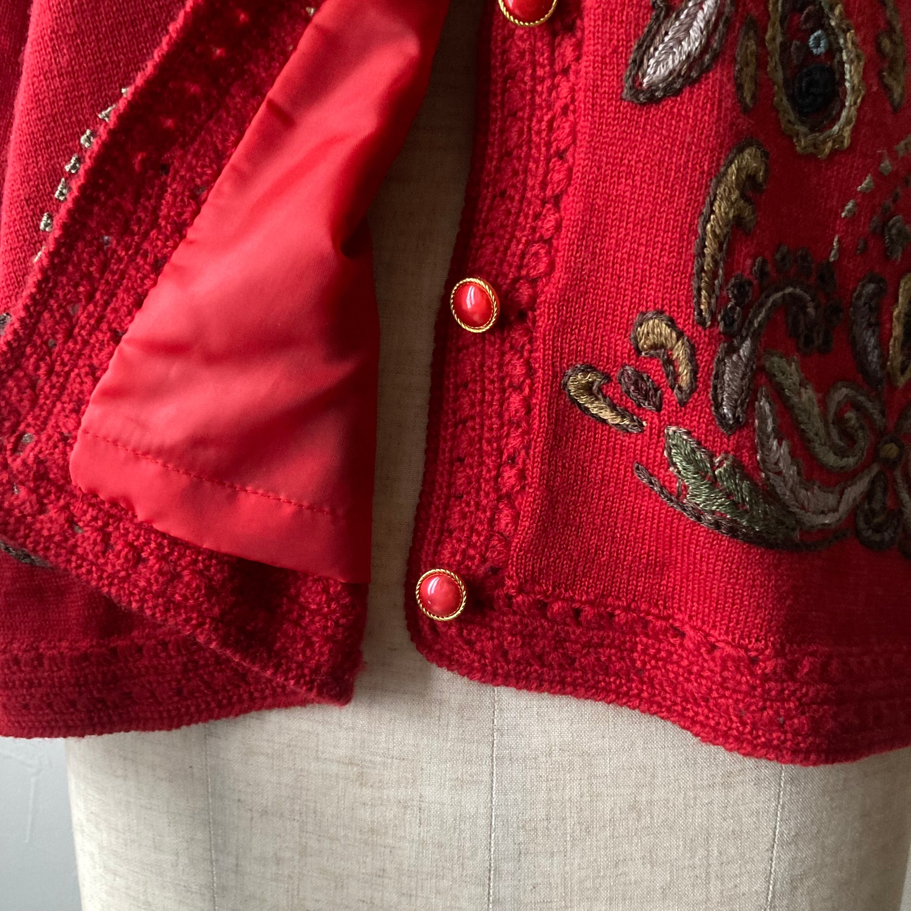 赤色刺繍裏地付きカーディガン 古着 used vintage レトロ