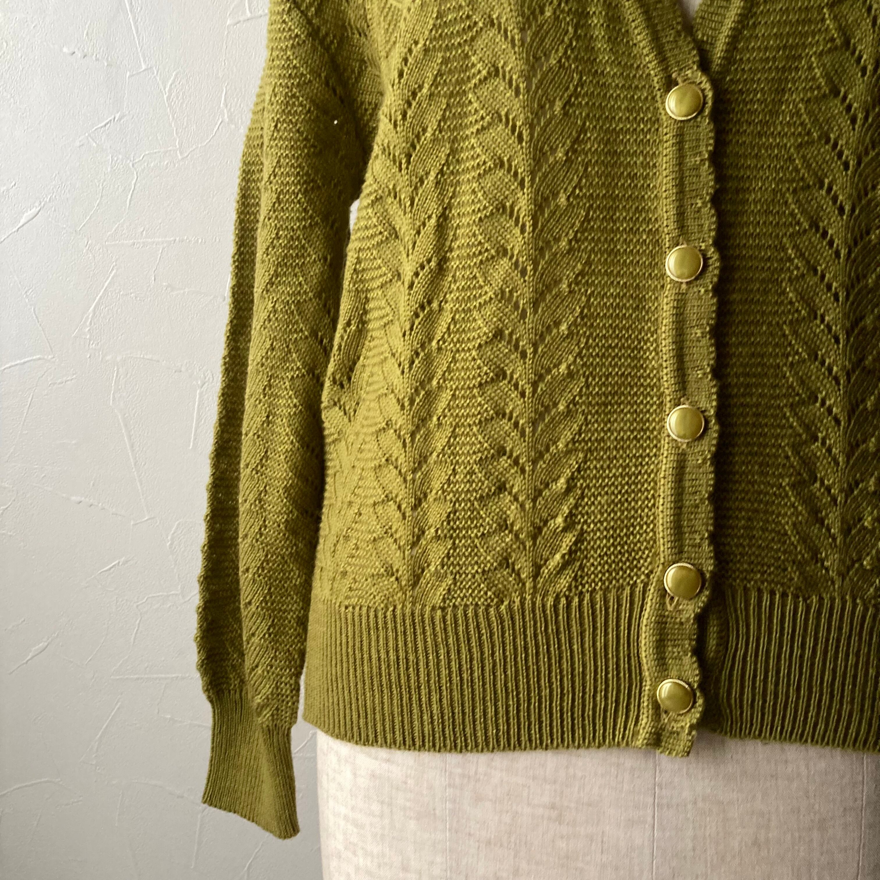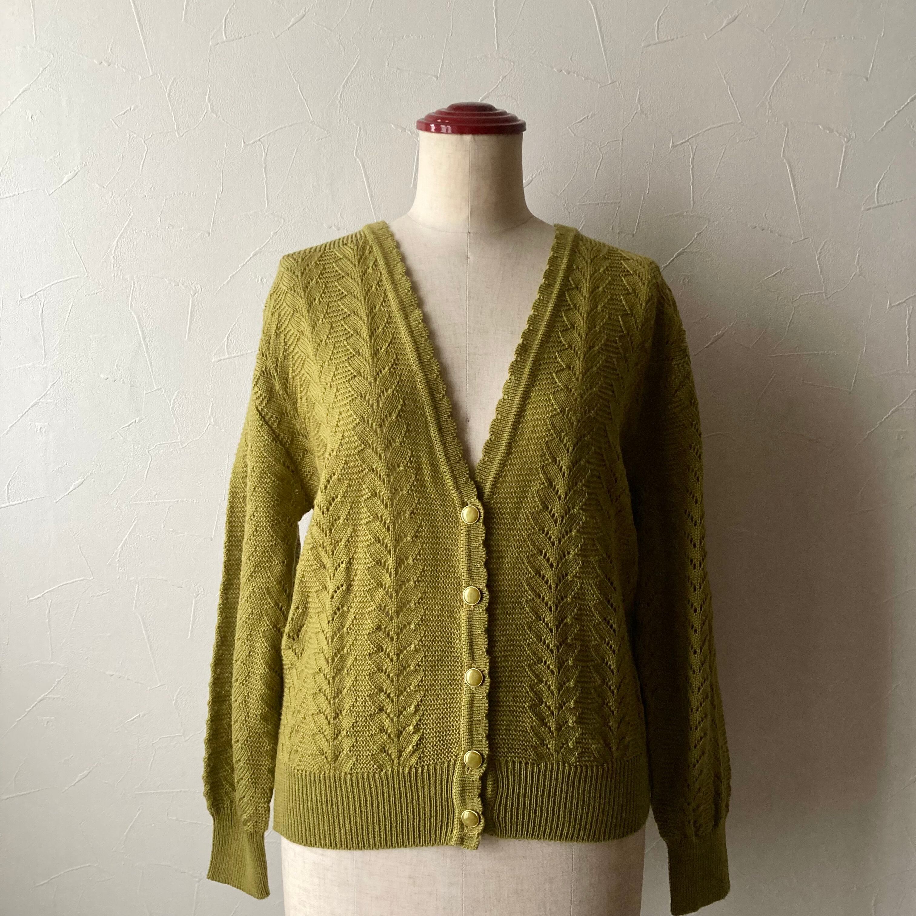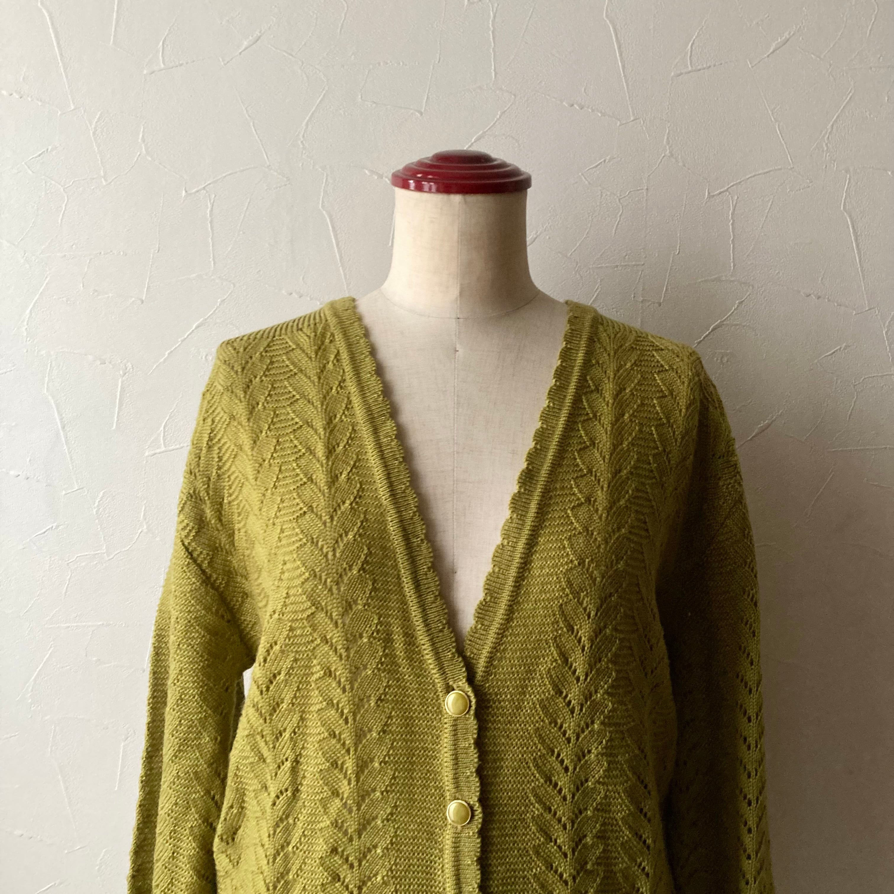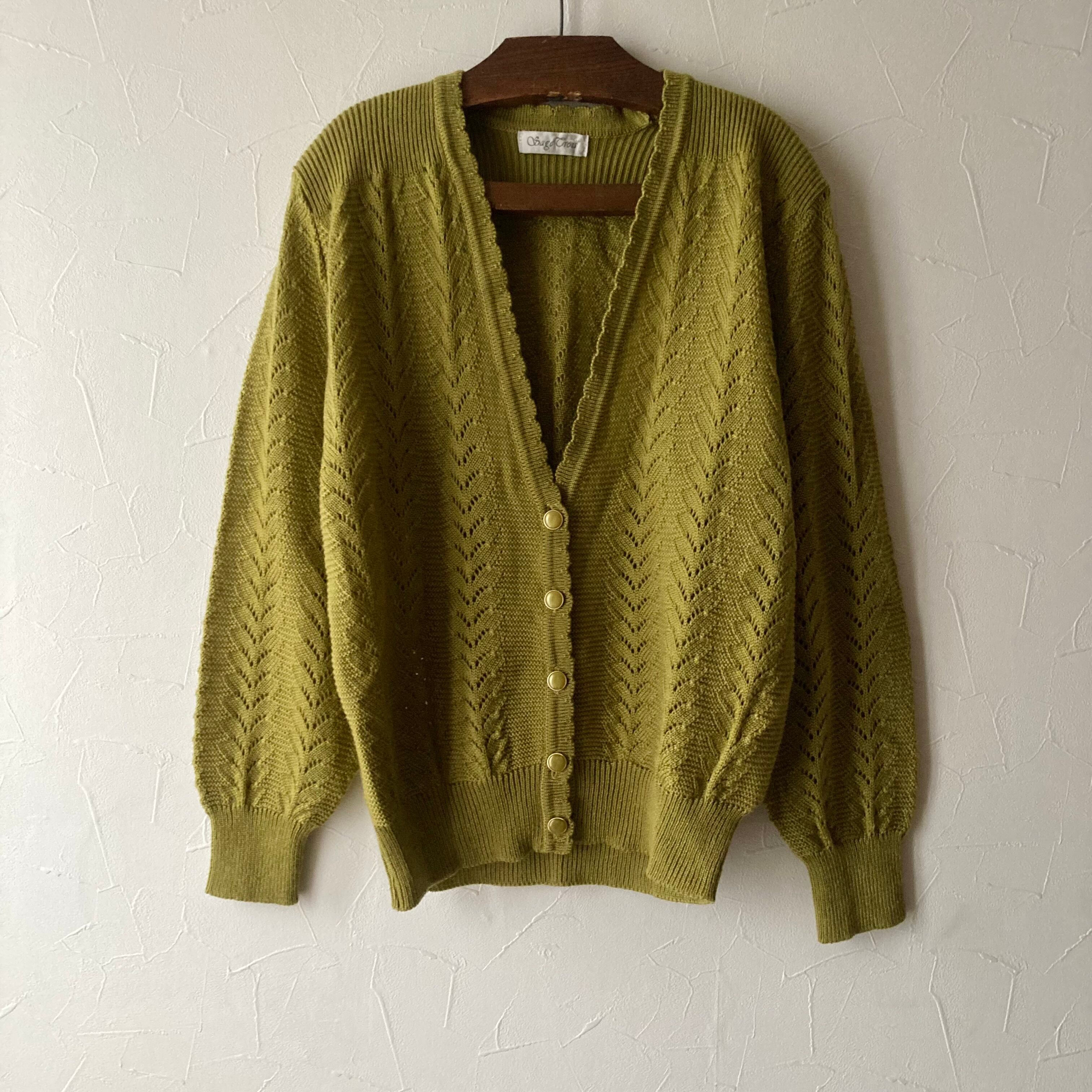 イエローカーキニットカーディガン 古着 used vintage レトロ