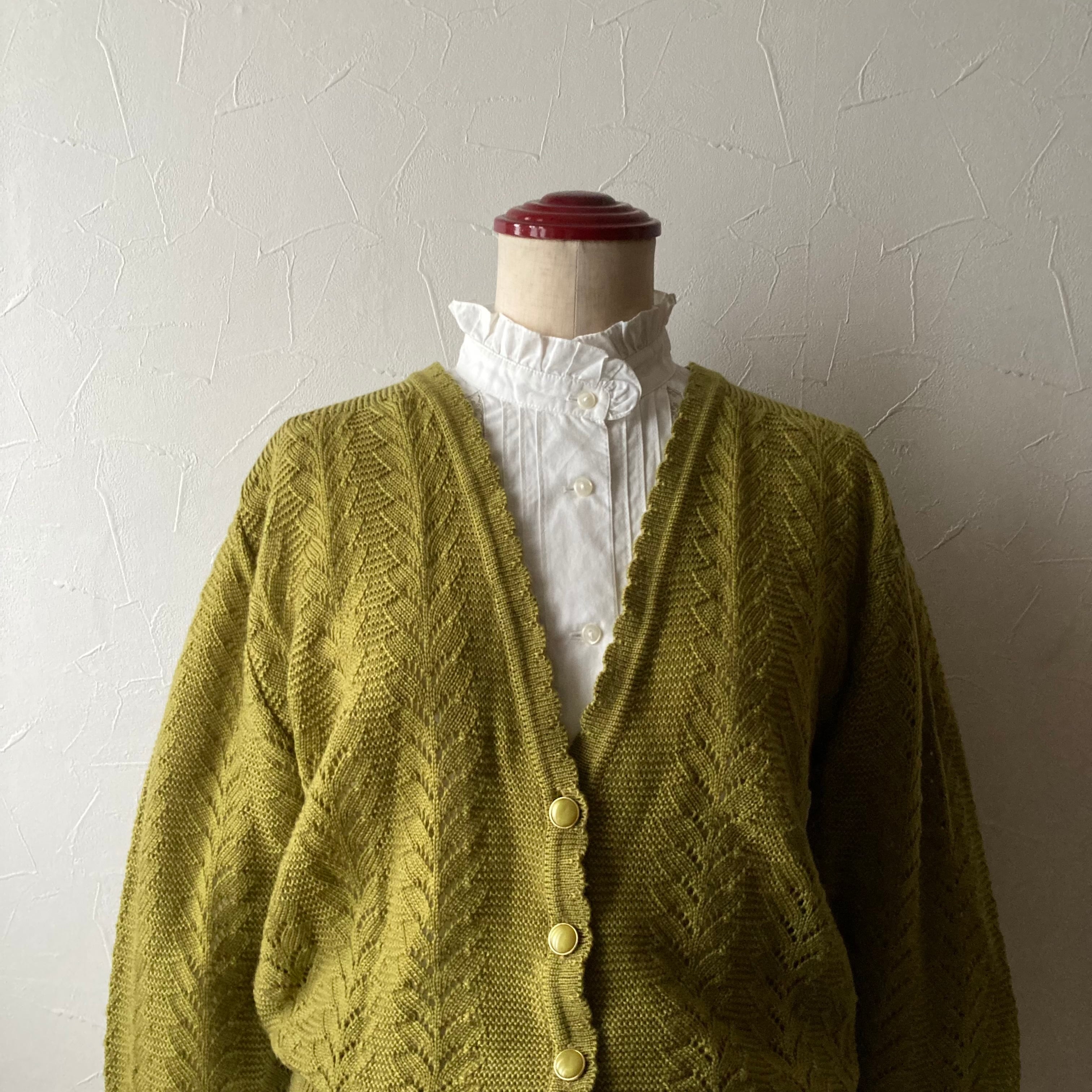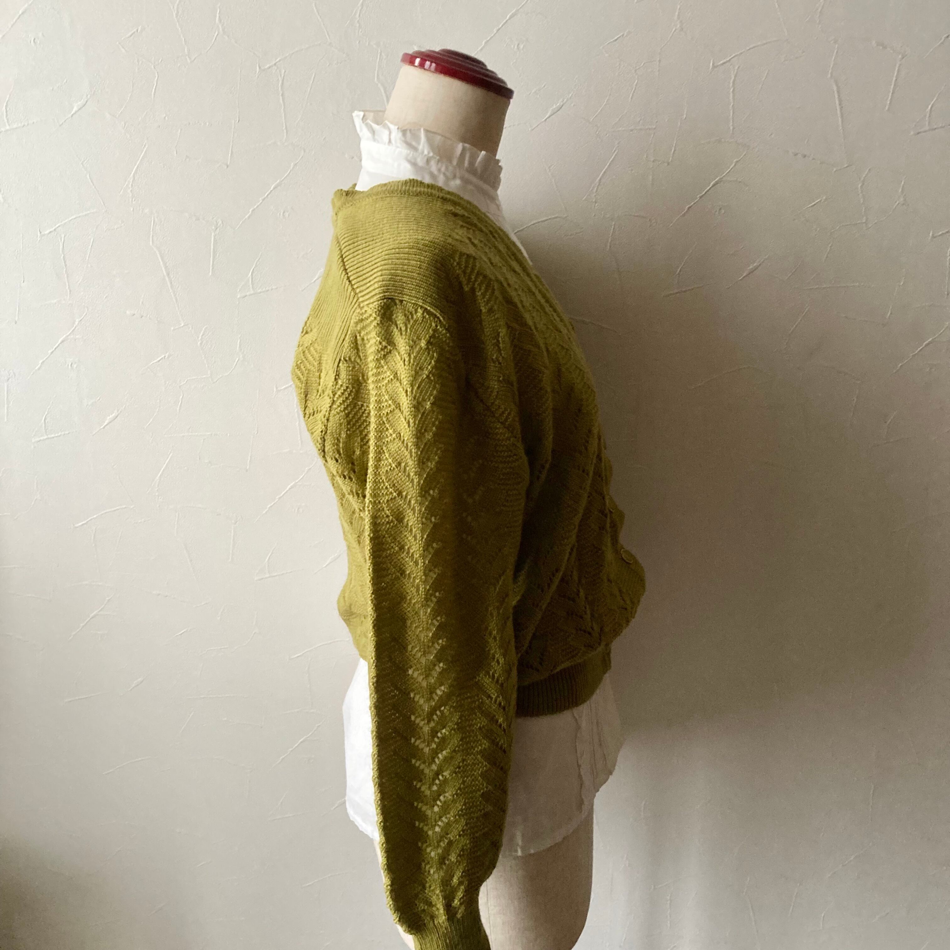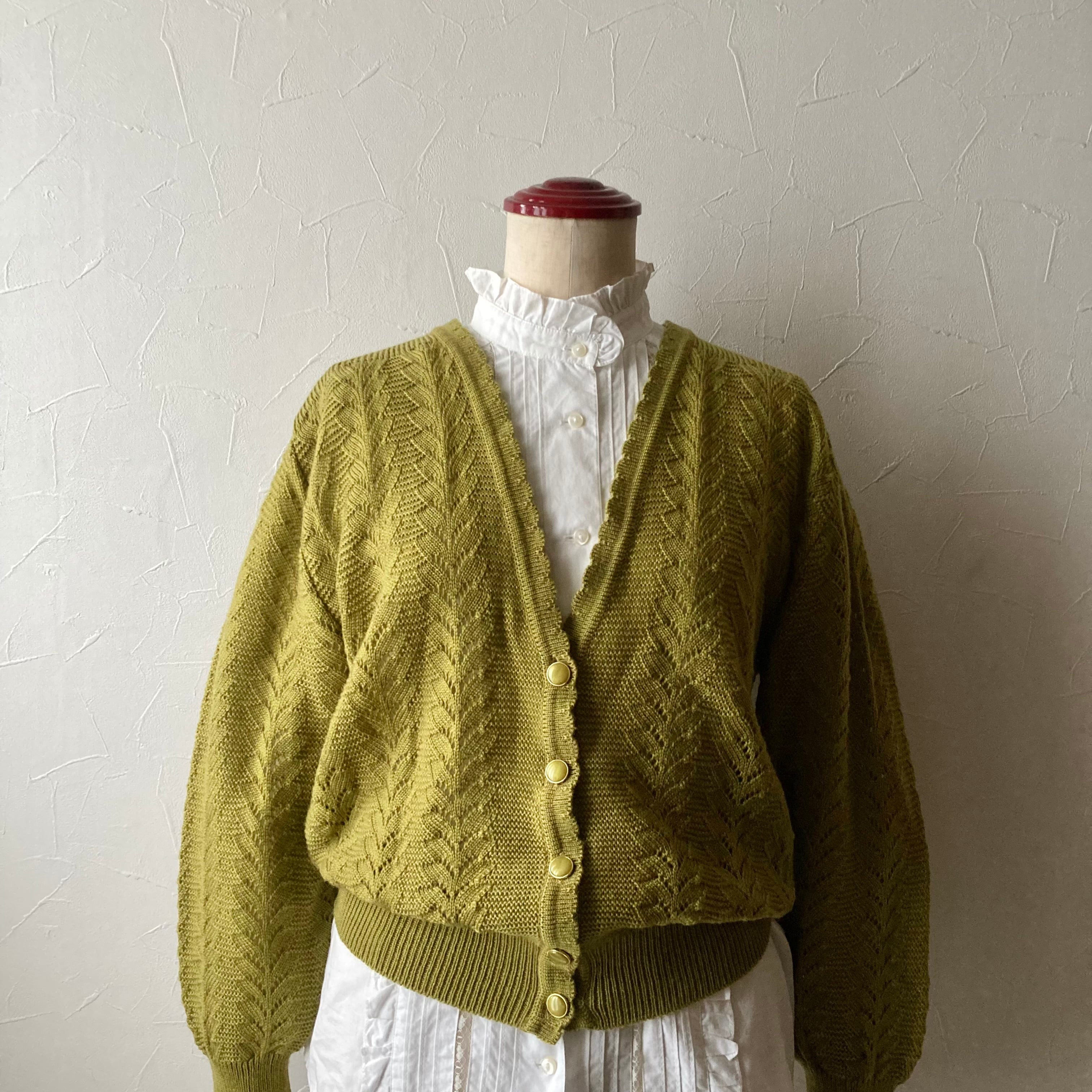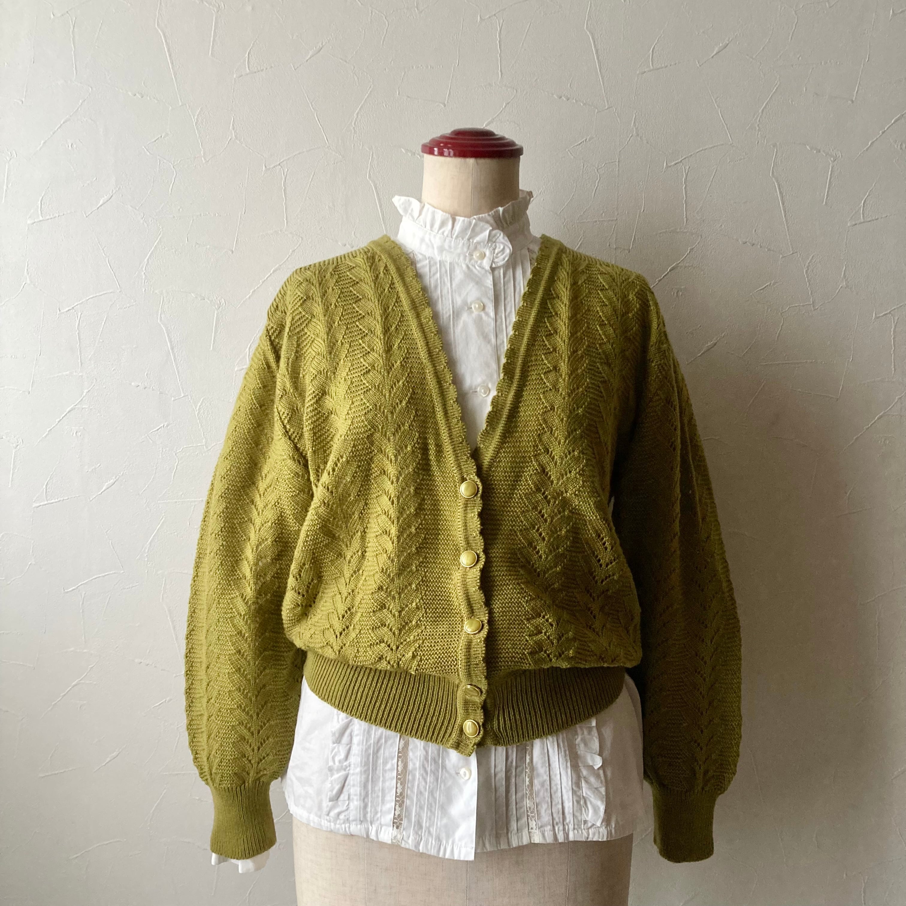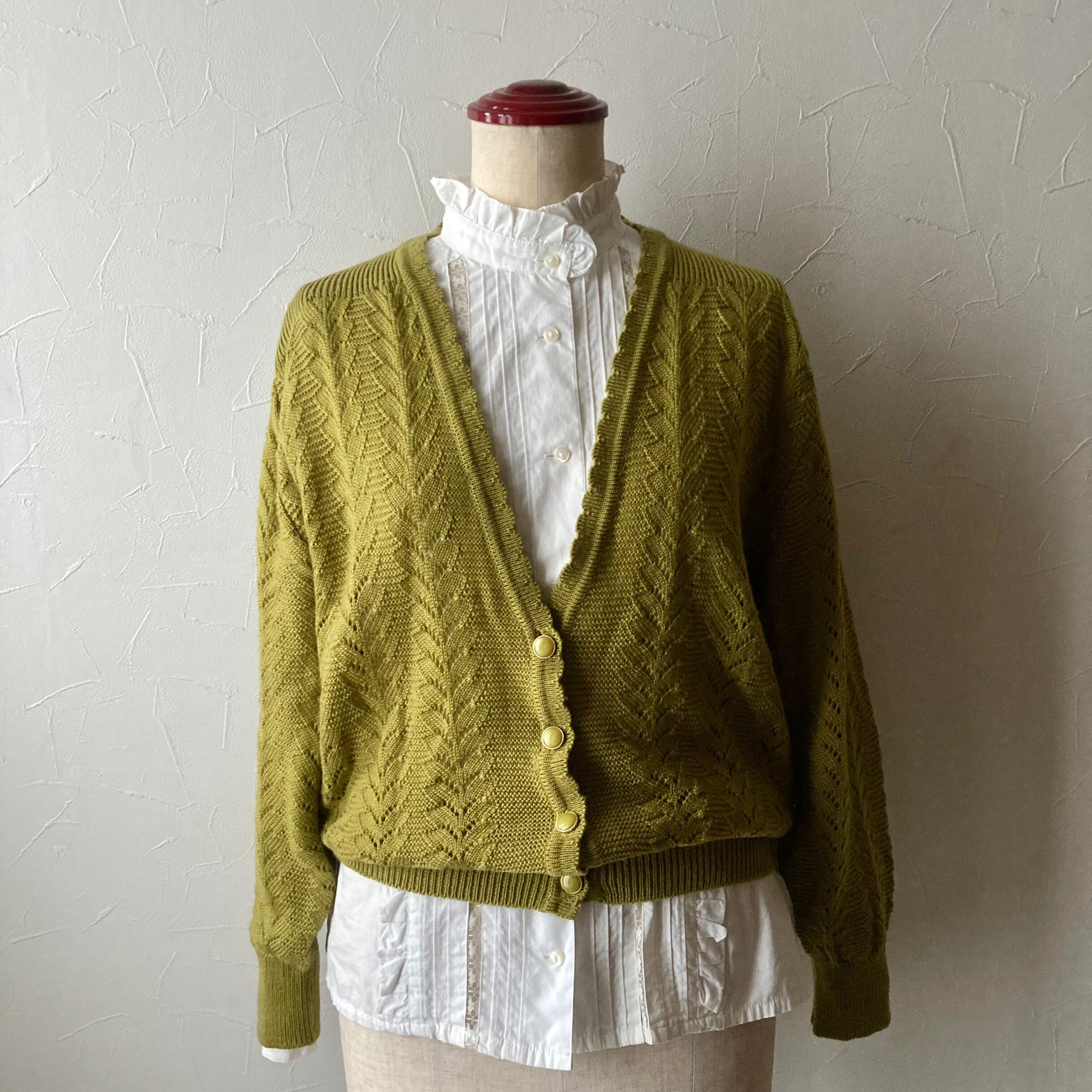 イエローカーキニットカーディガン 古着 used vintage レトロ