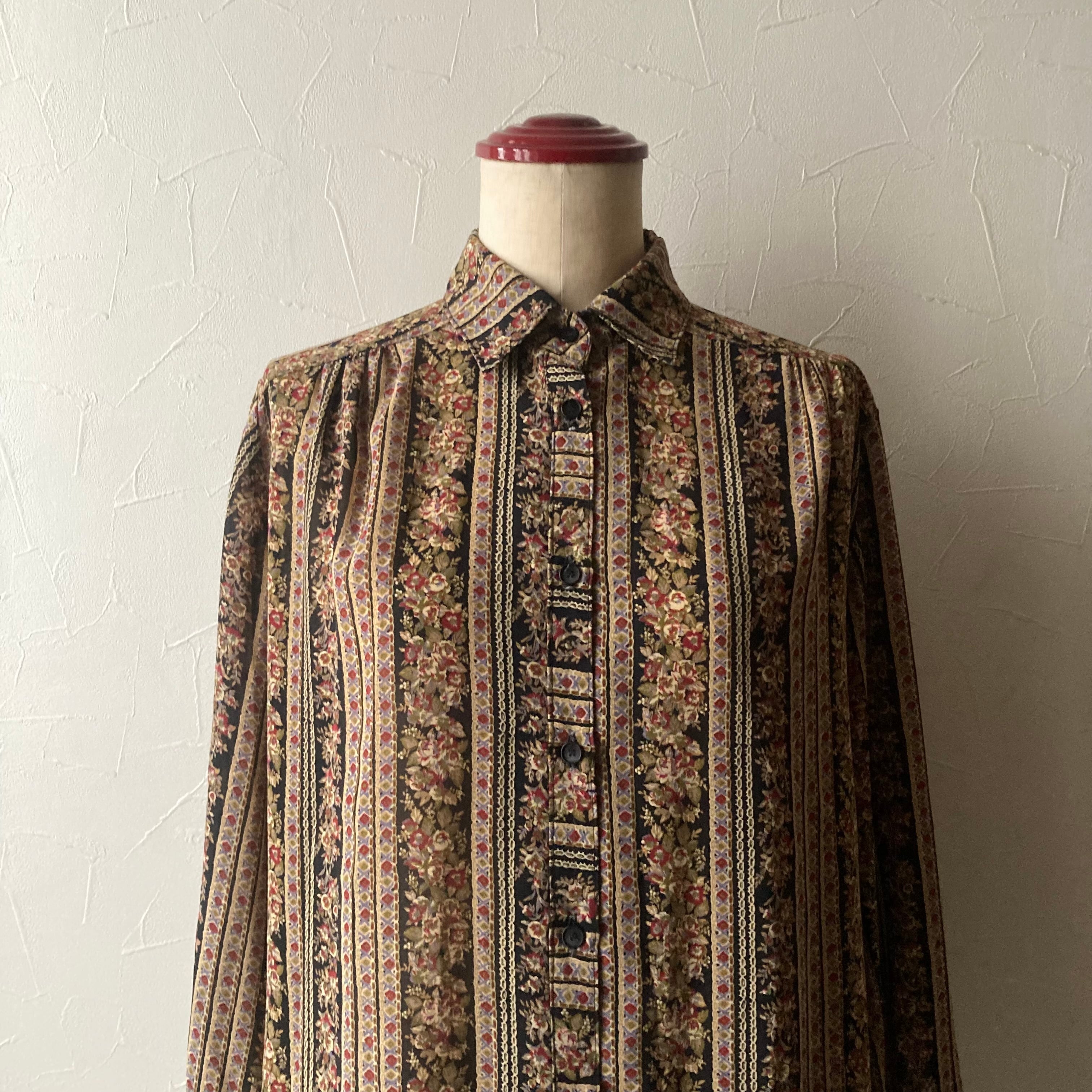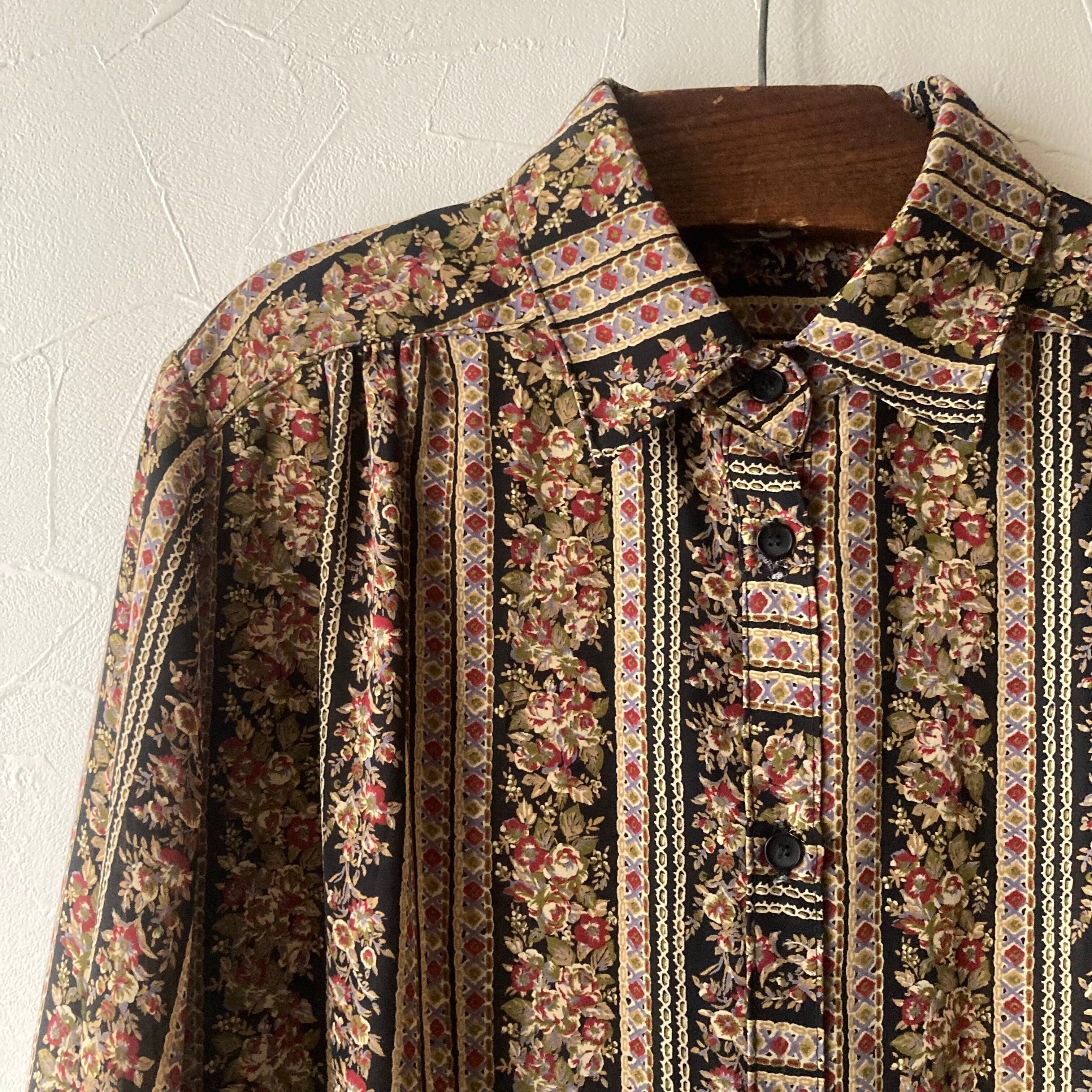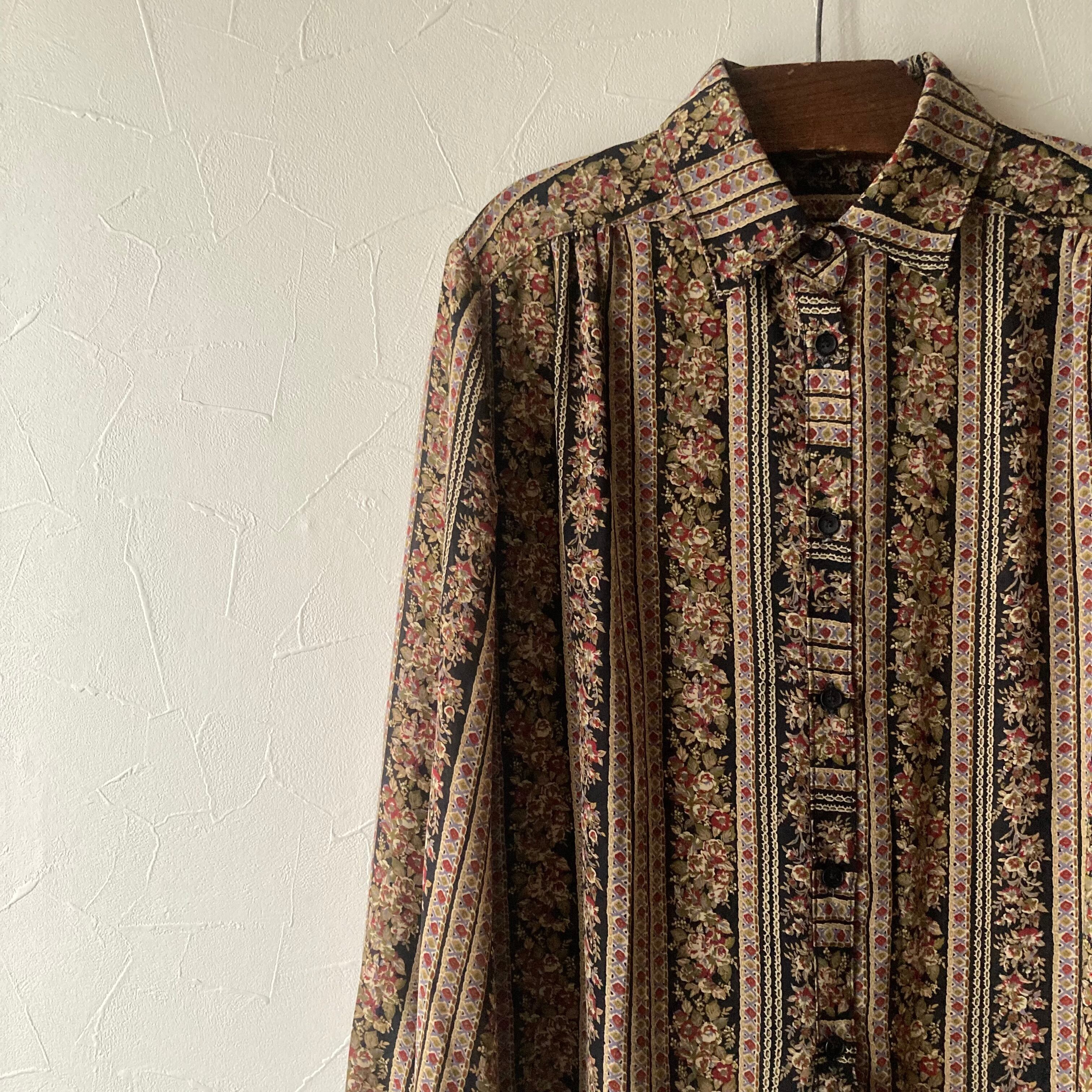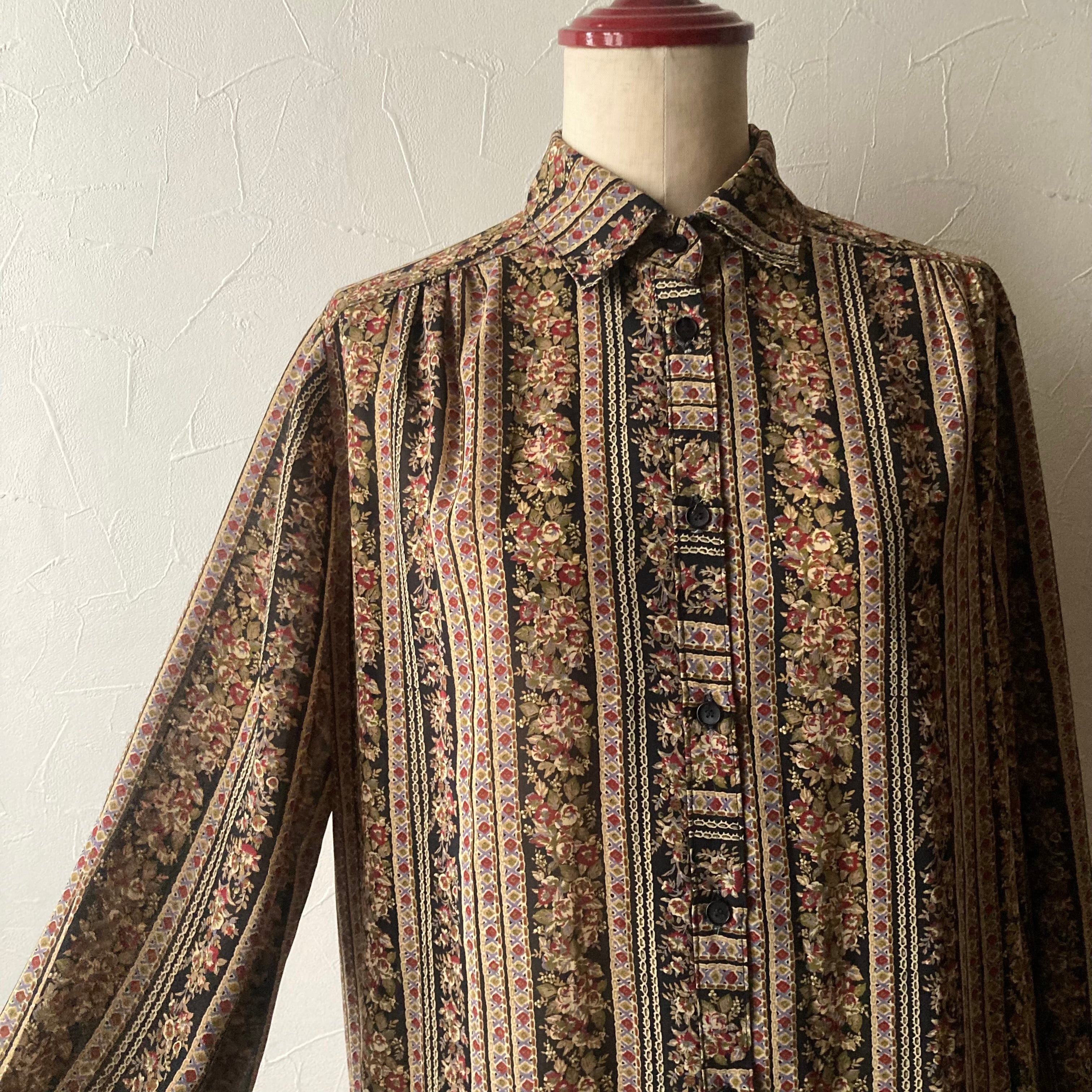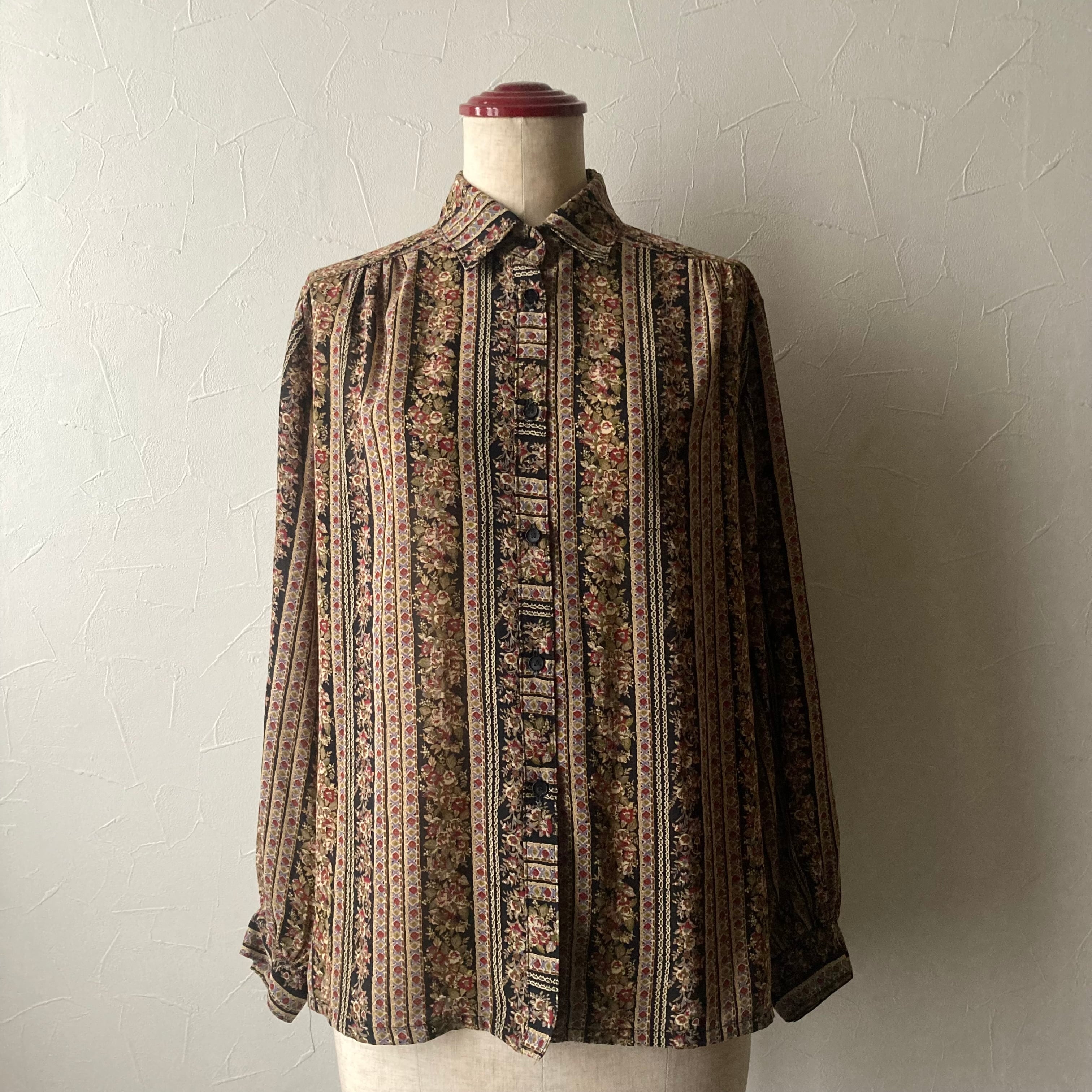 落ち着いた色味にレトロな花模様が素敵なブラウス◯
