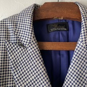 絹混ネイビー千鳥格子ジャケット 古着 used vintage レトロ