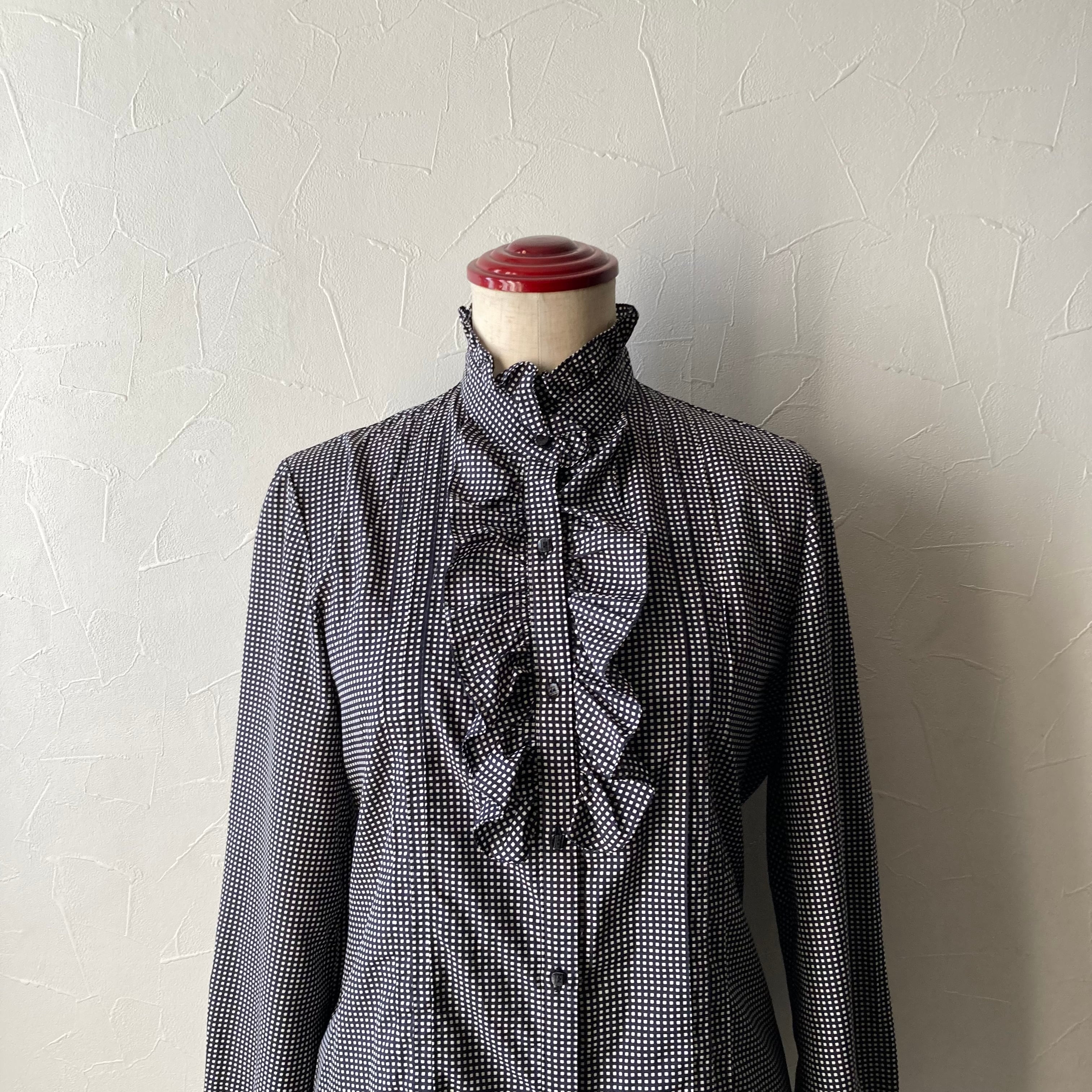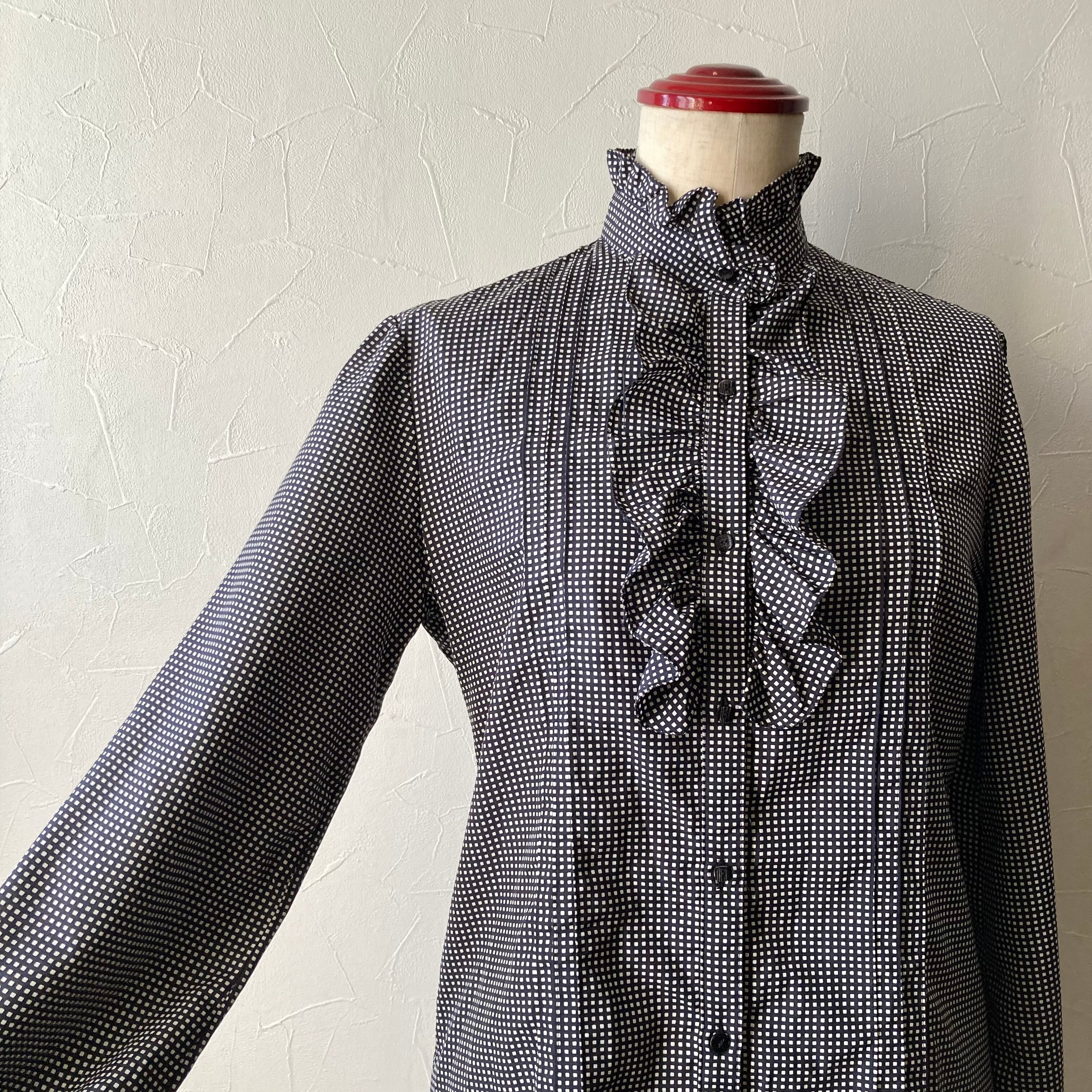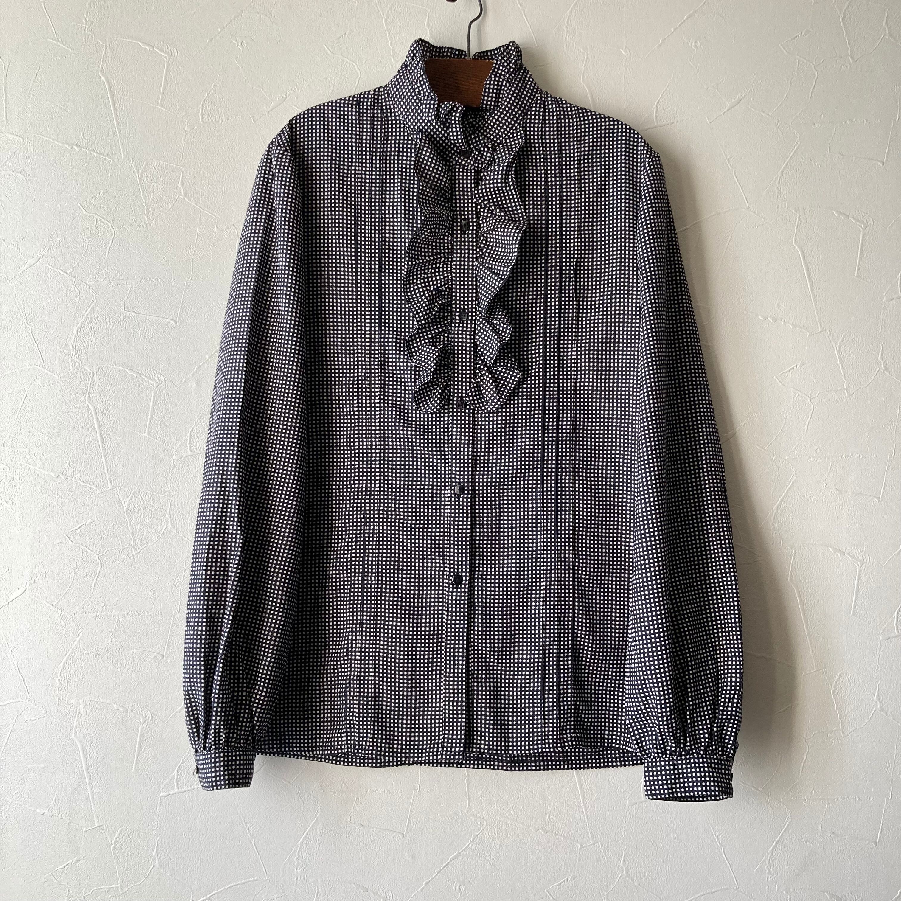 スクウェア柄フリルブラウス 古着 used vintage レトロ