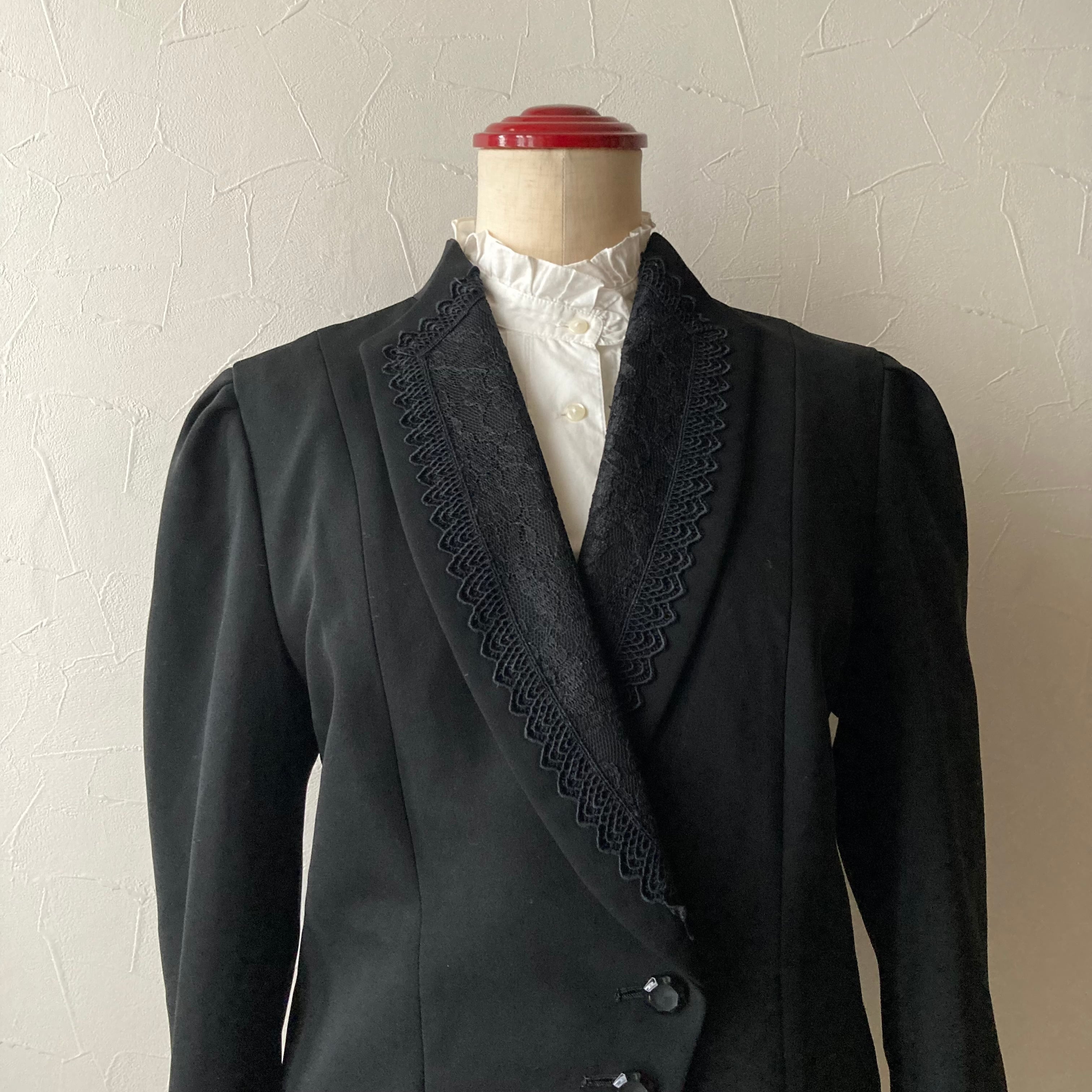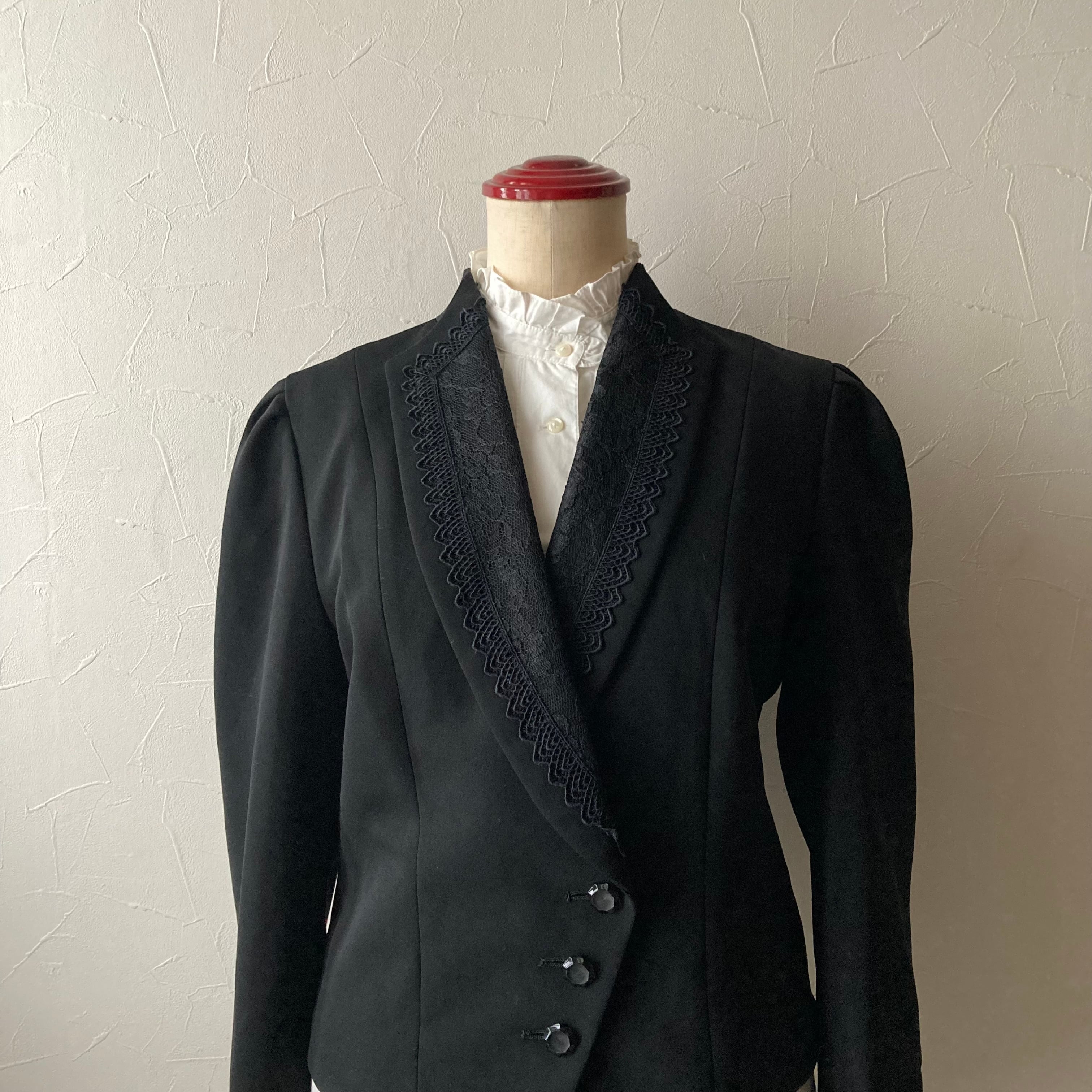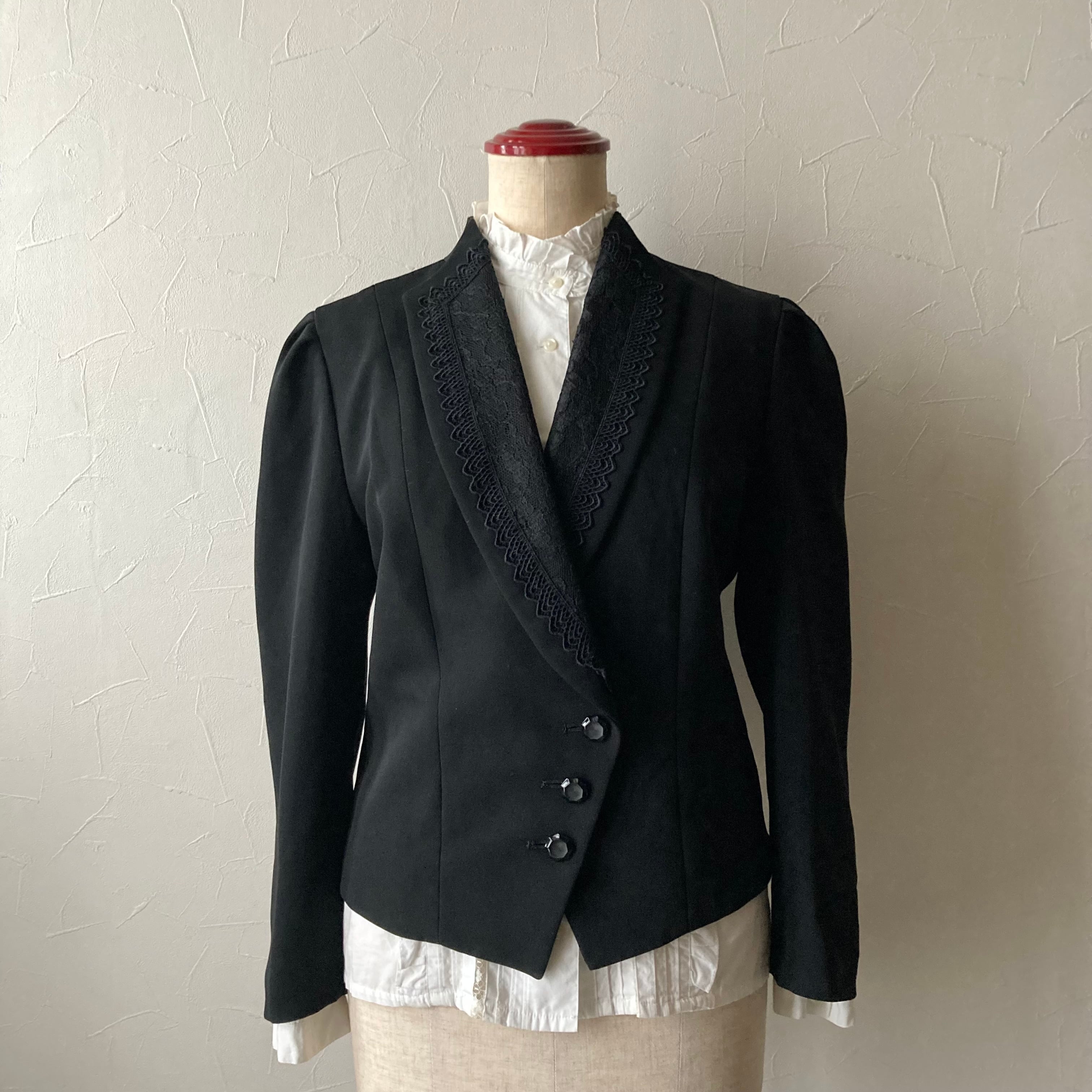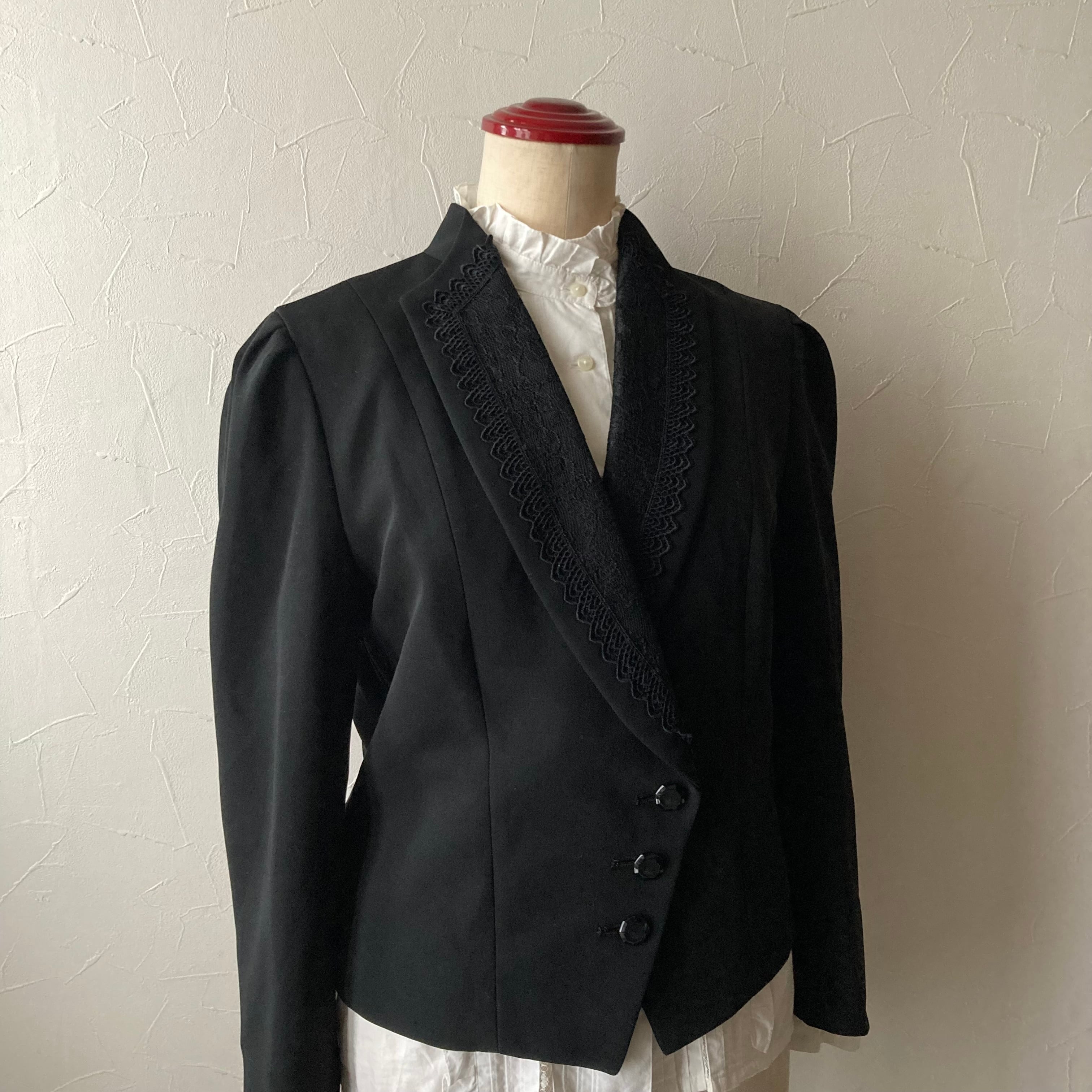 大きなパフスリーブと襟のレースデザインがお洒落なレトロなジャケット。