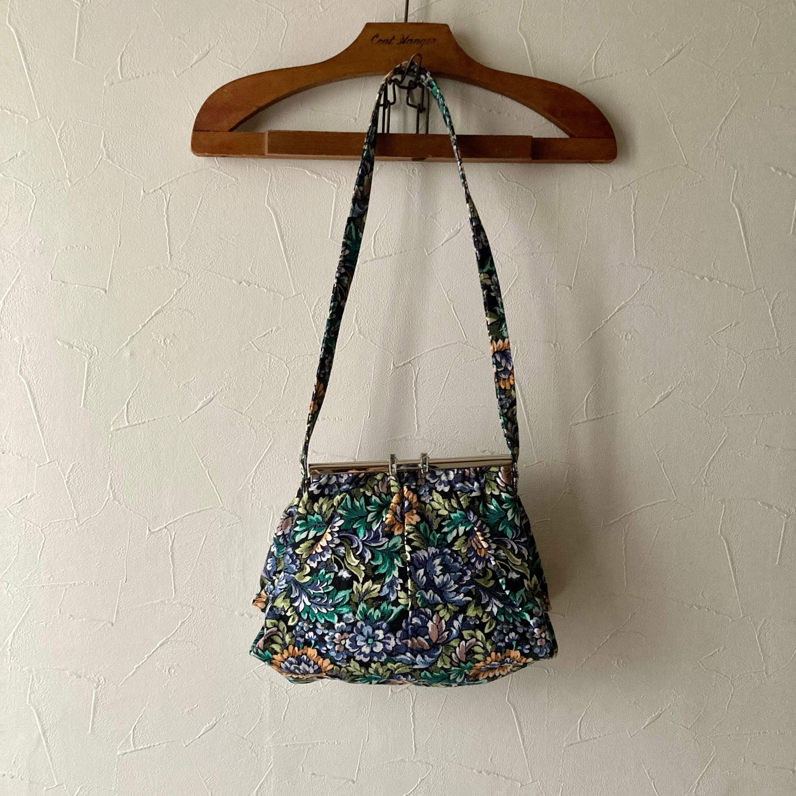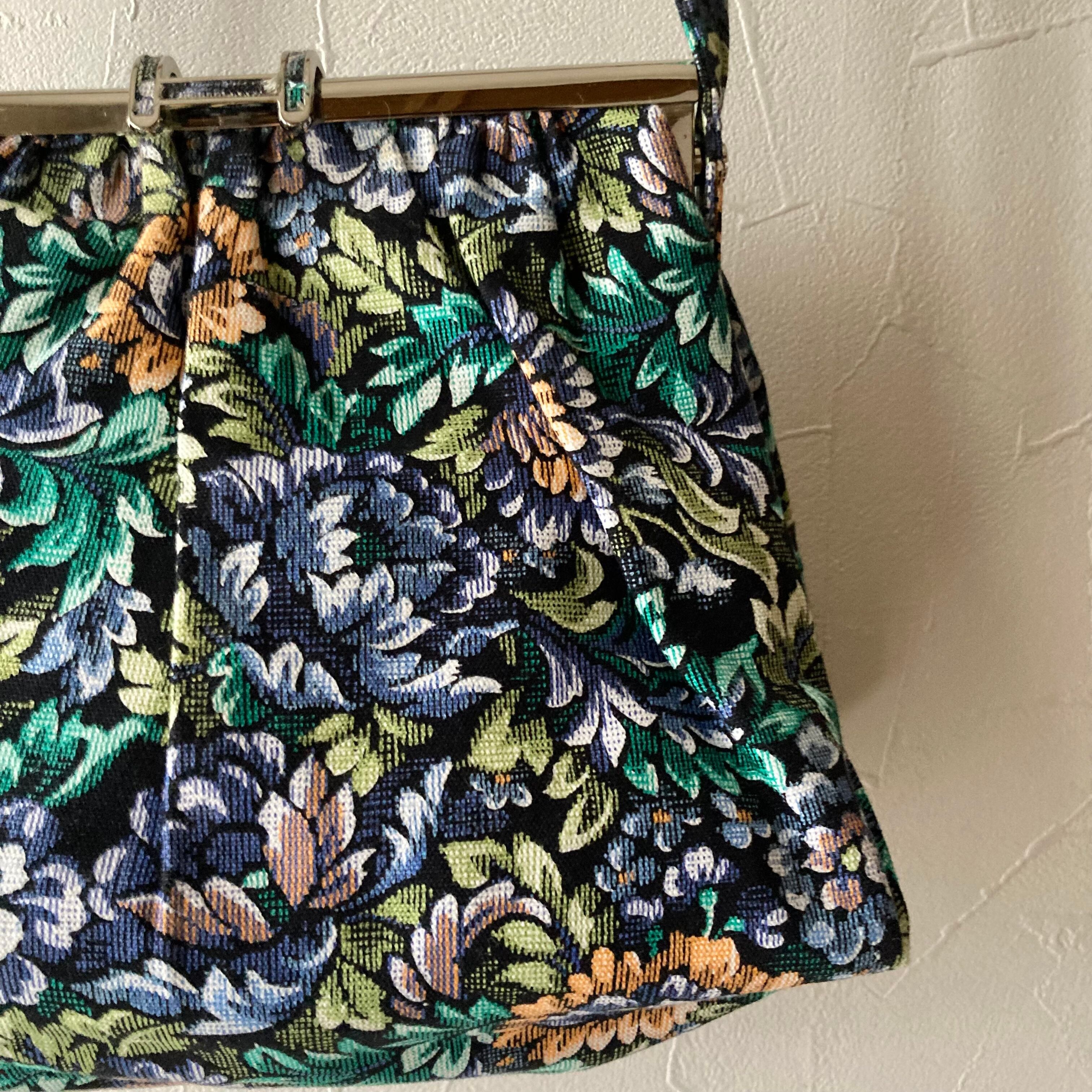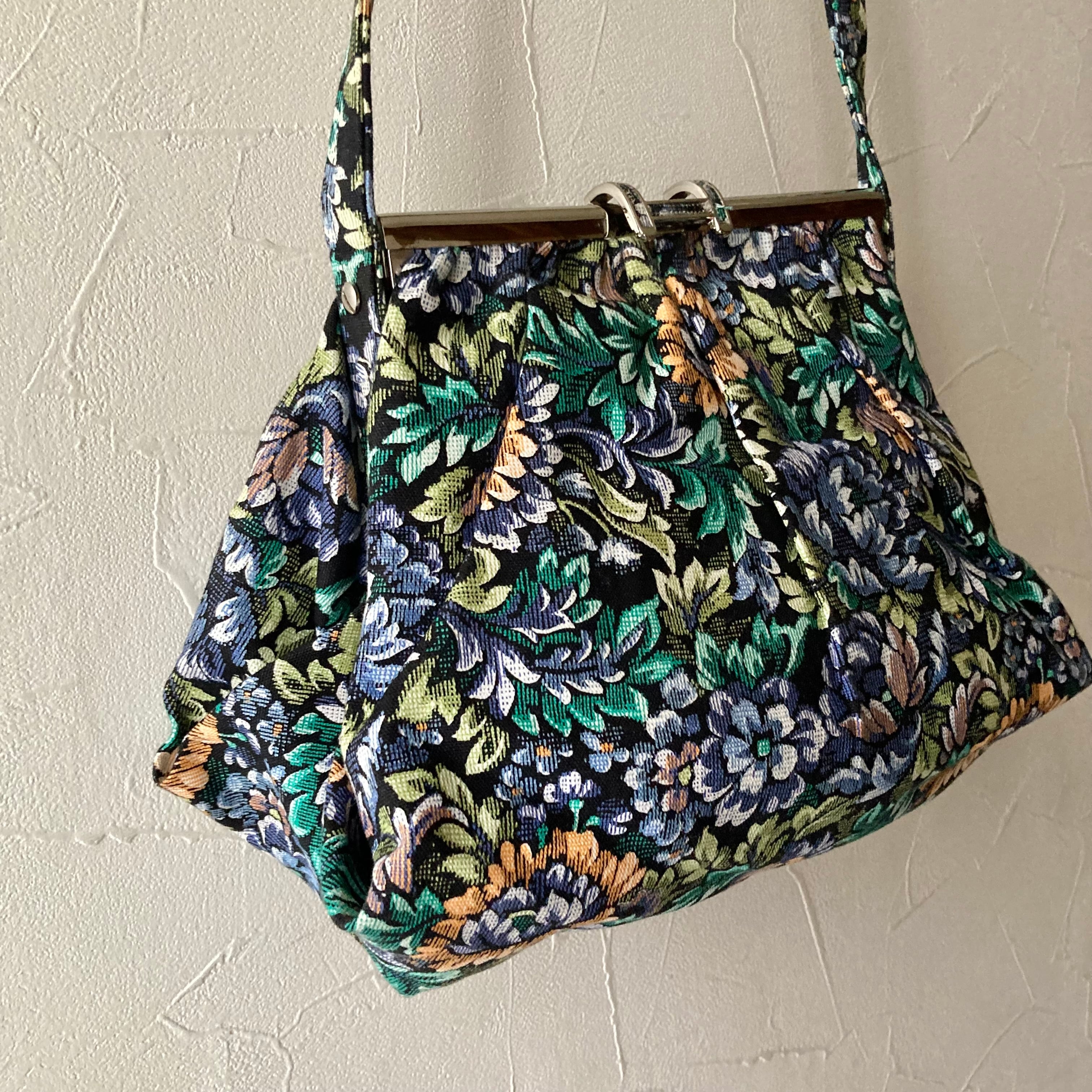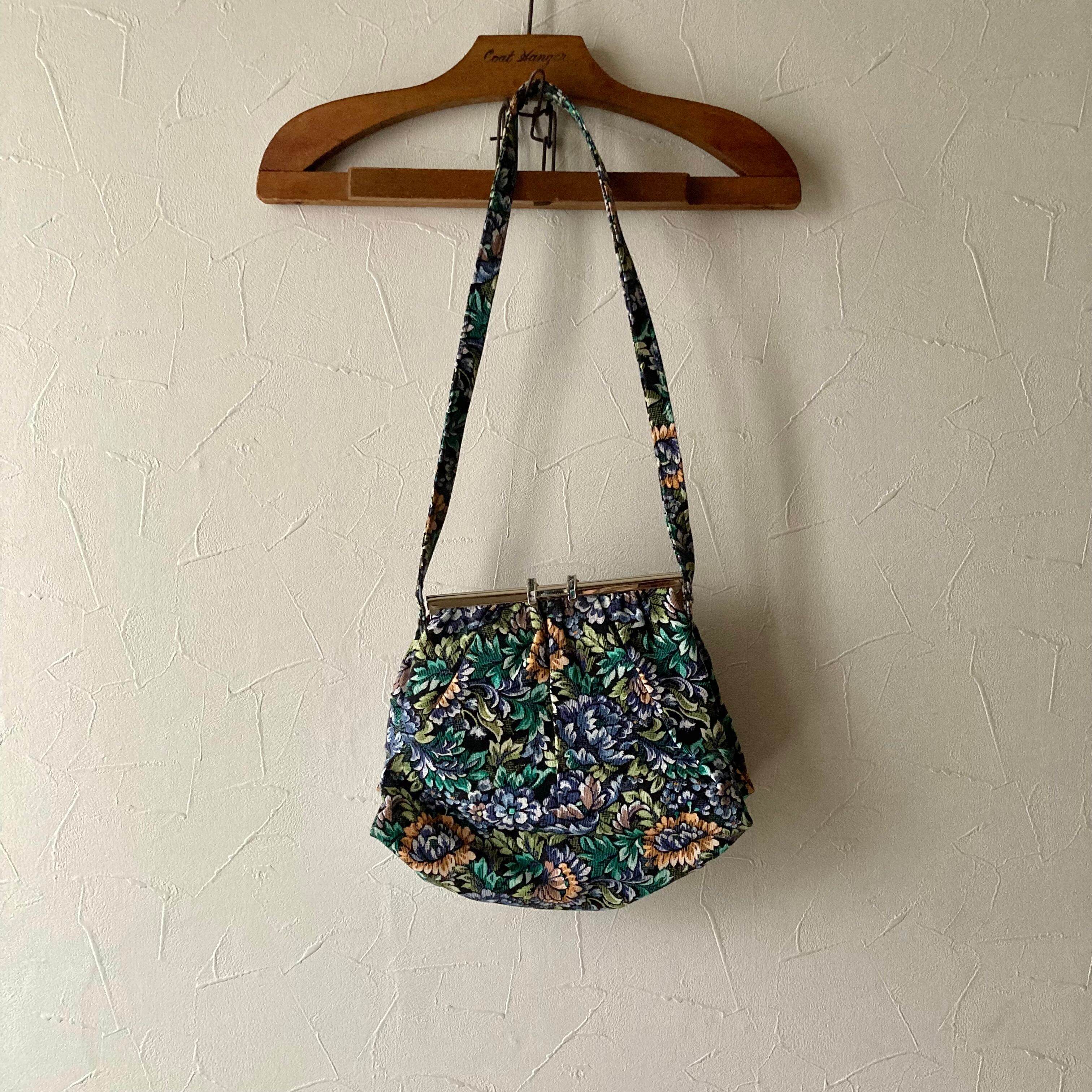レトロな花柄の刺繍プリントが可愛いバッグです。紐も同じ柄なのも可愛いです。