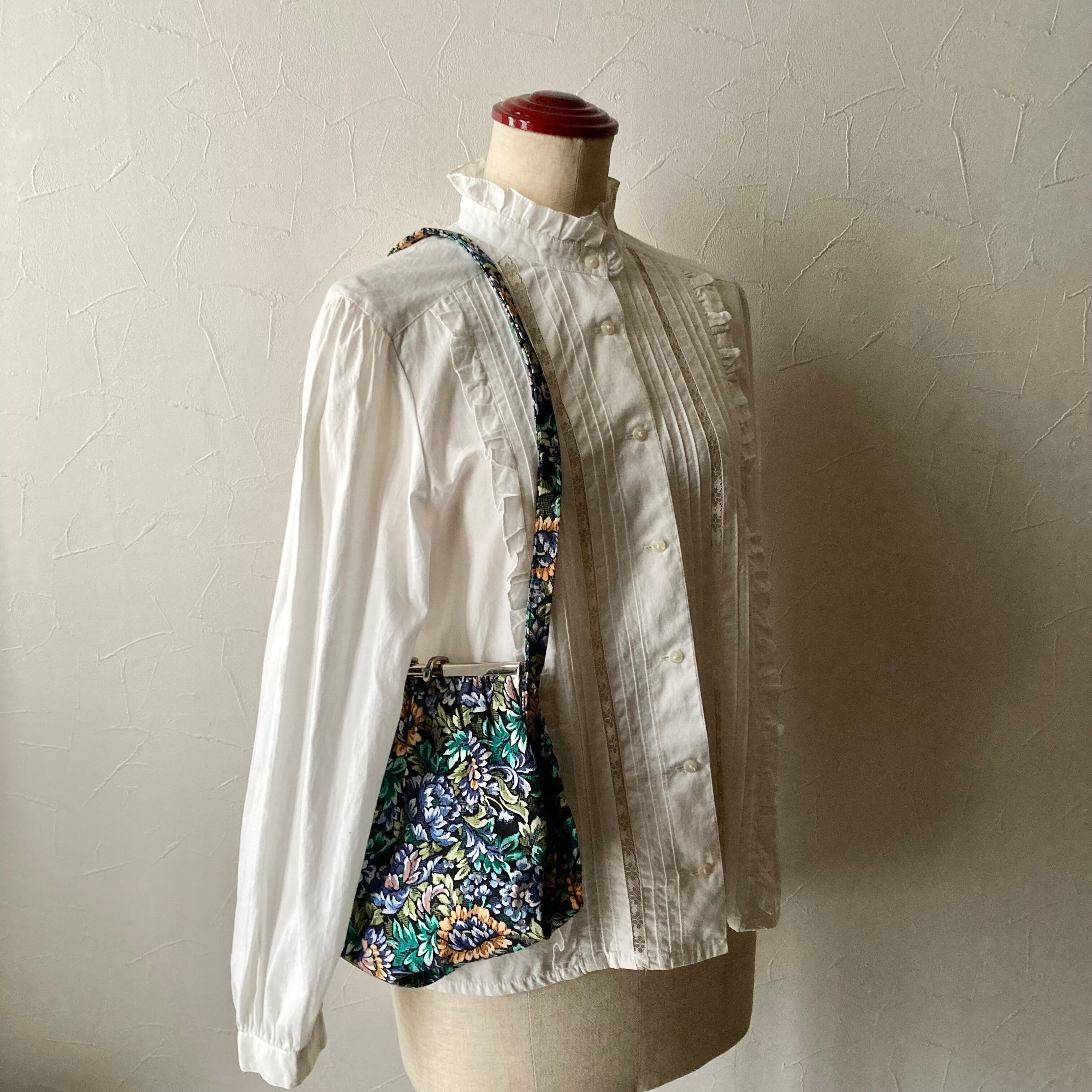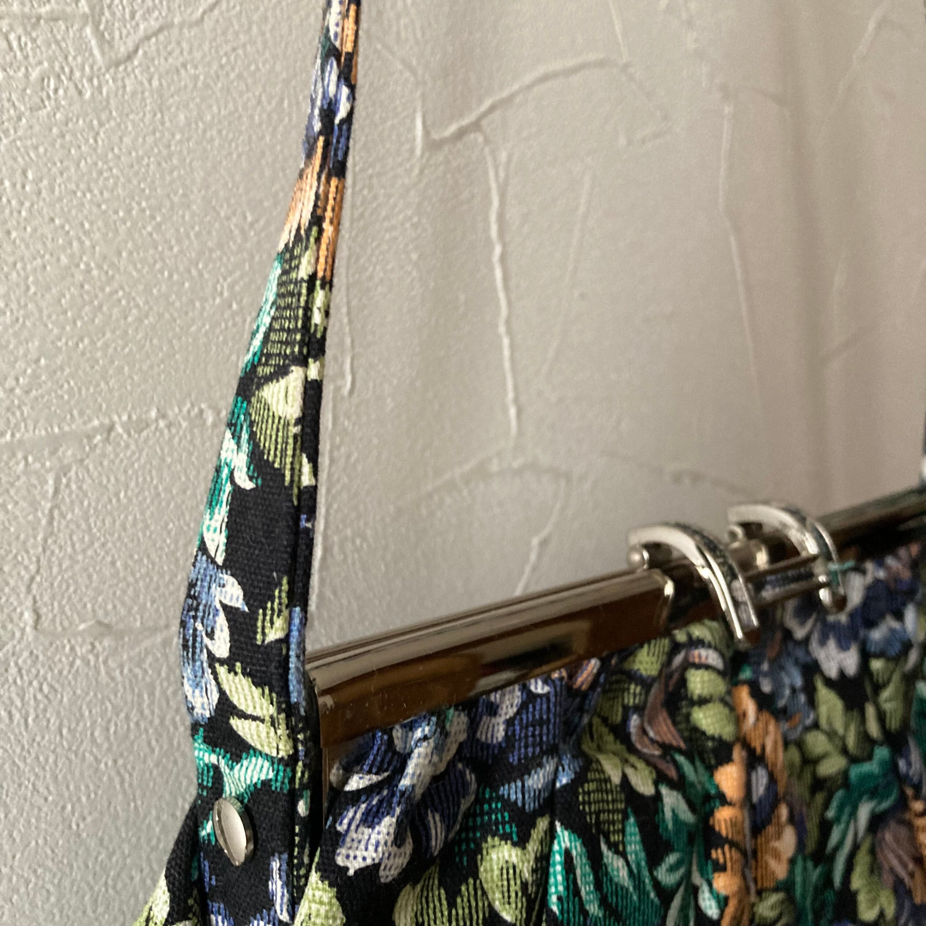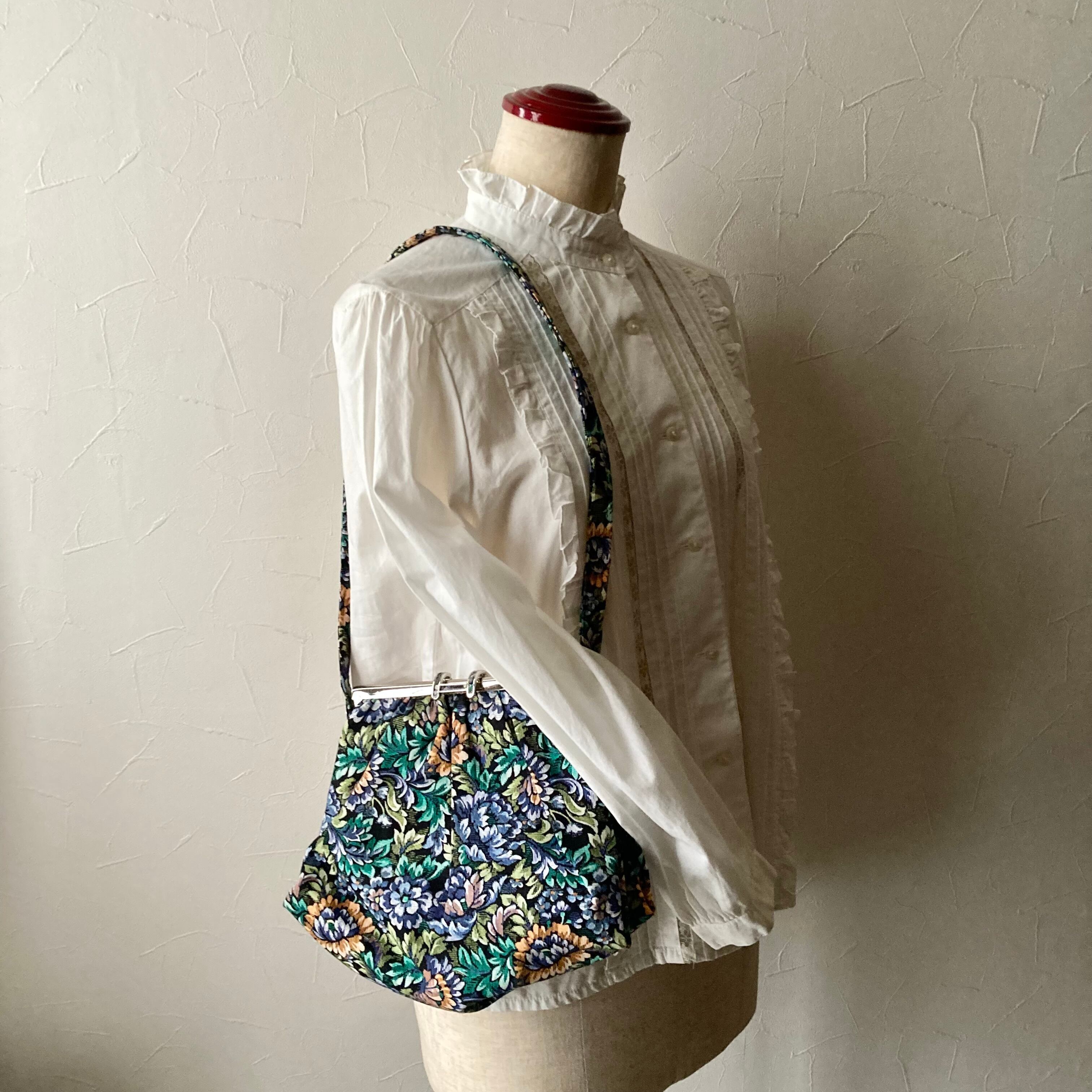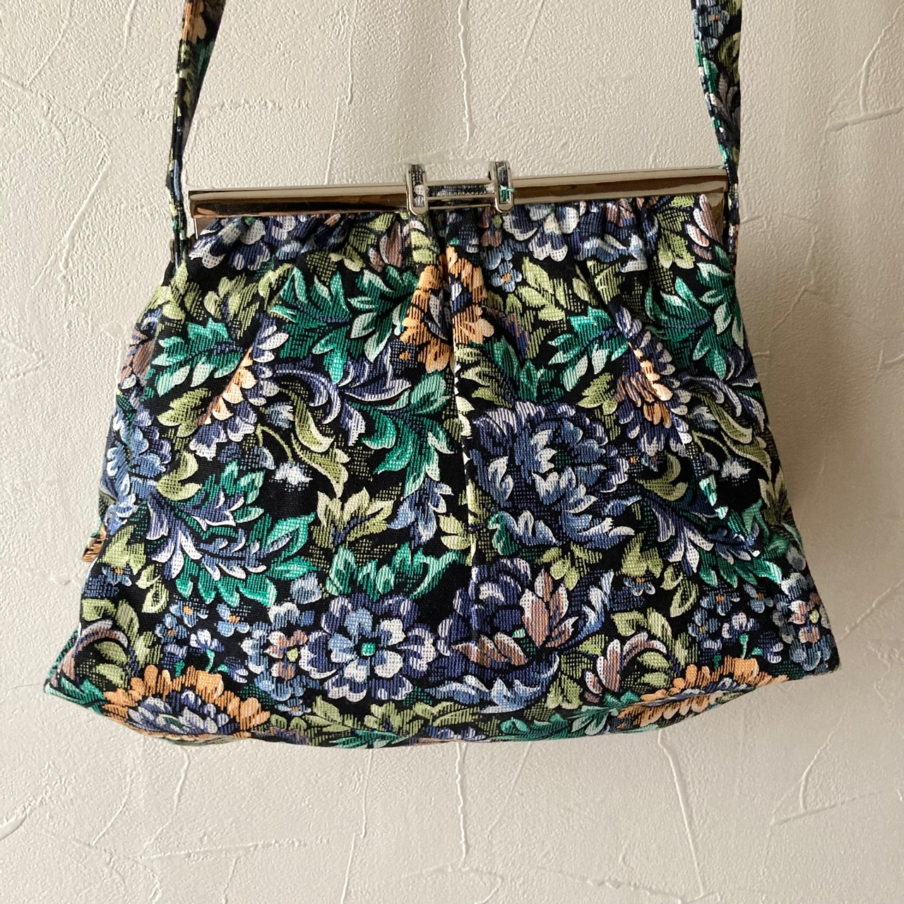 レトロな花柄の刺繍プリントが可愛いバッグです。紐も同じ柄なのも可愛いです。