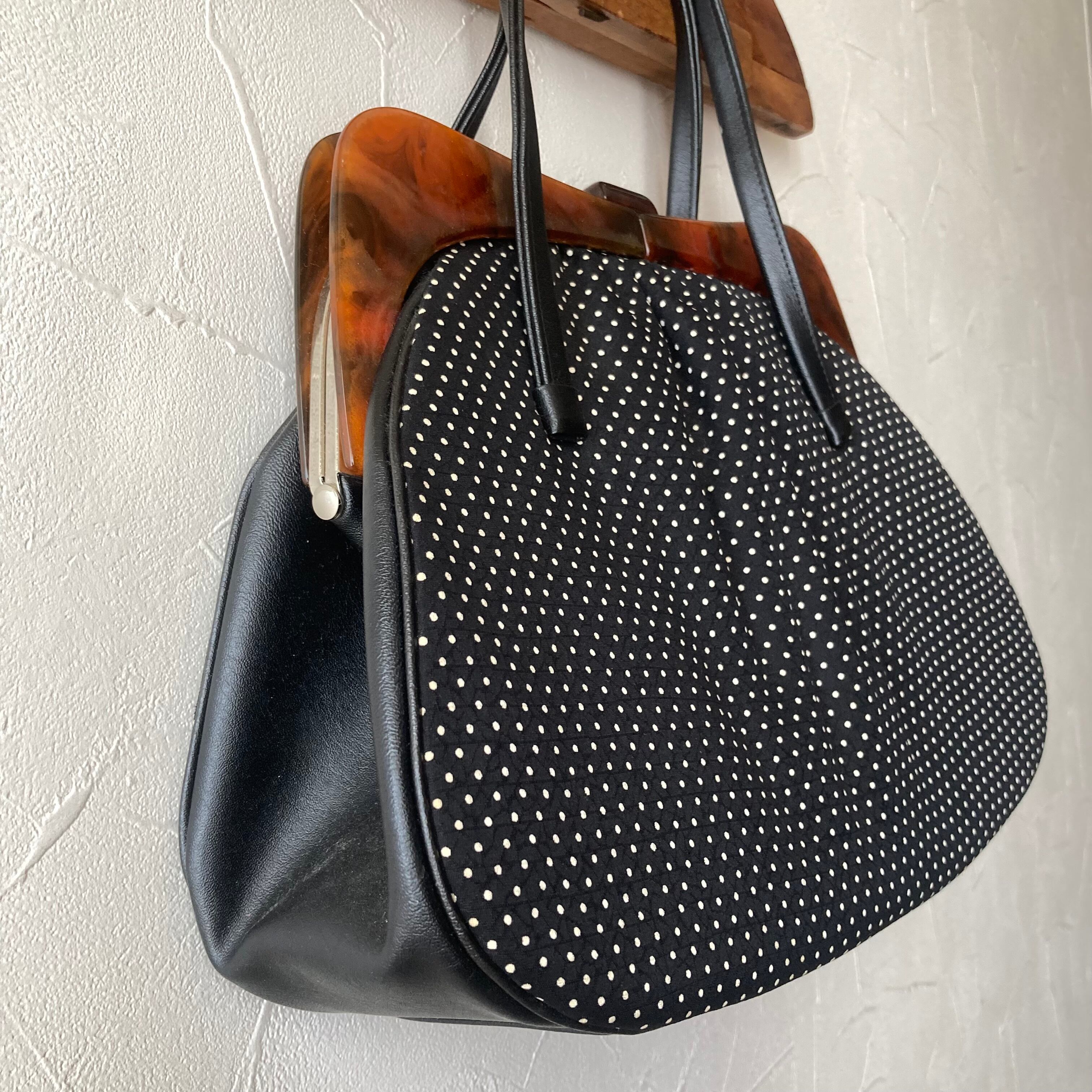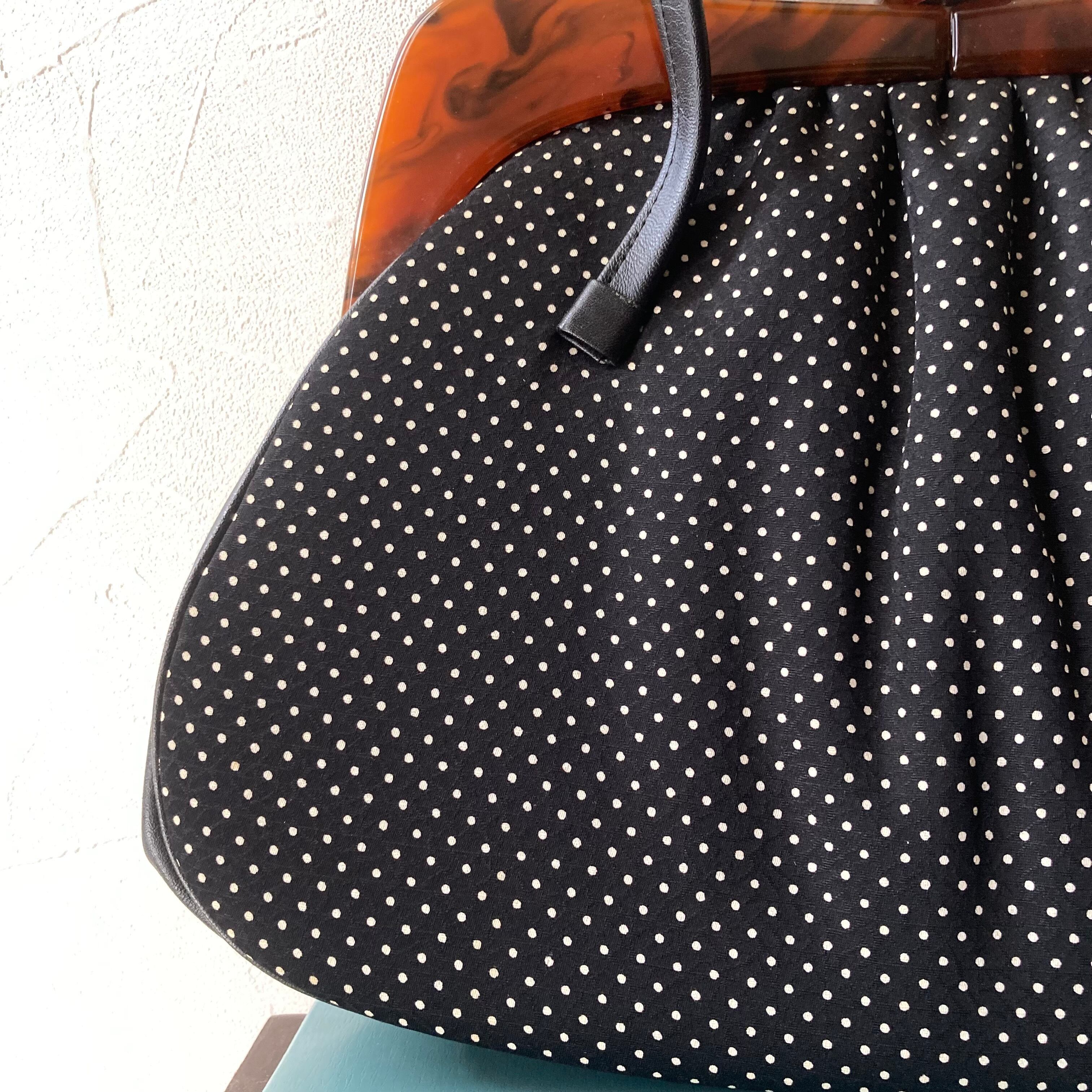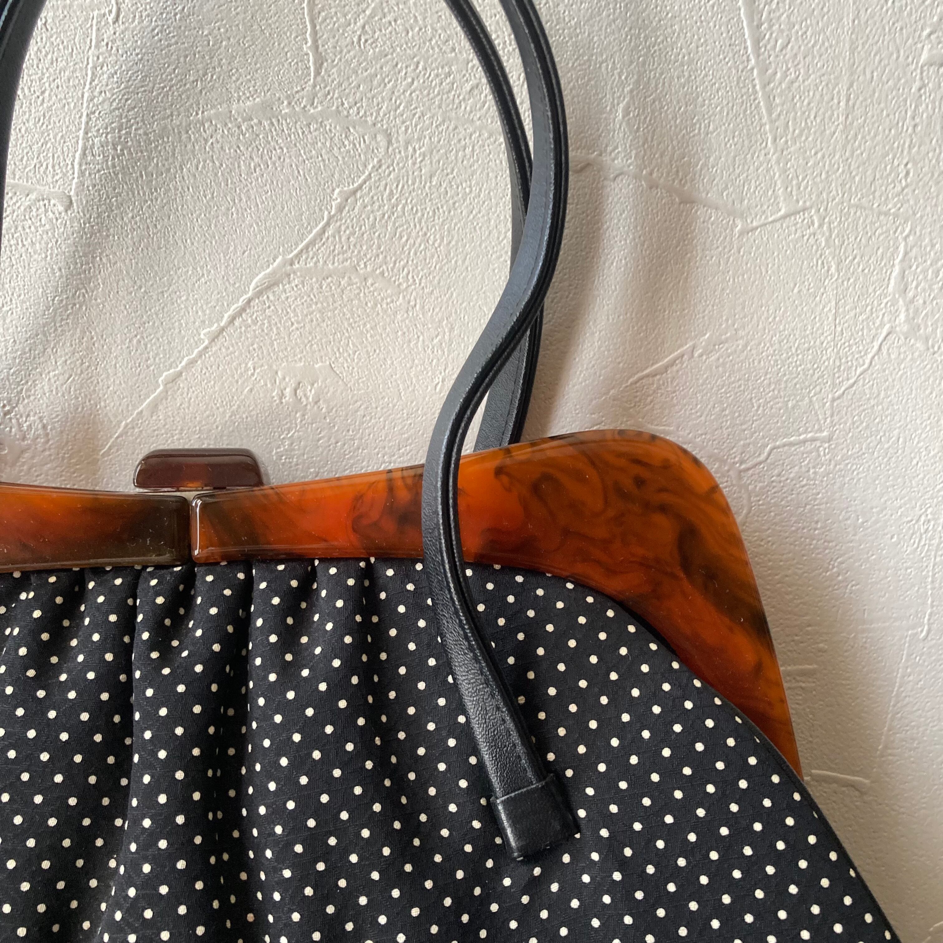黒に白のドット柄とベッコウのがま口の組み合わせが可愛いレトロなバッグ◯