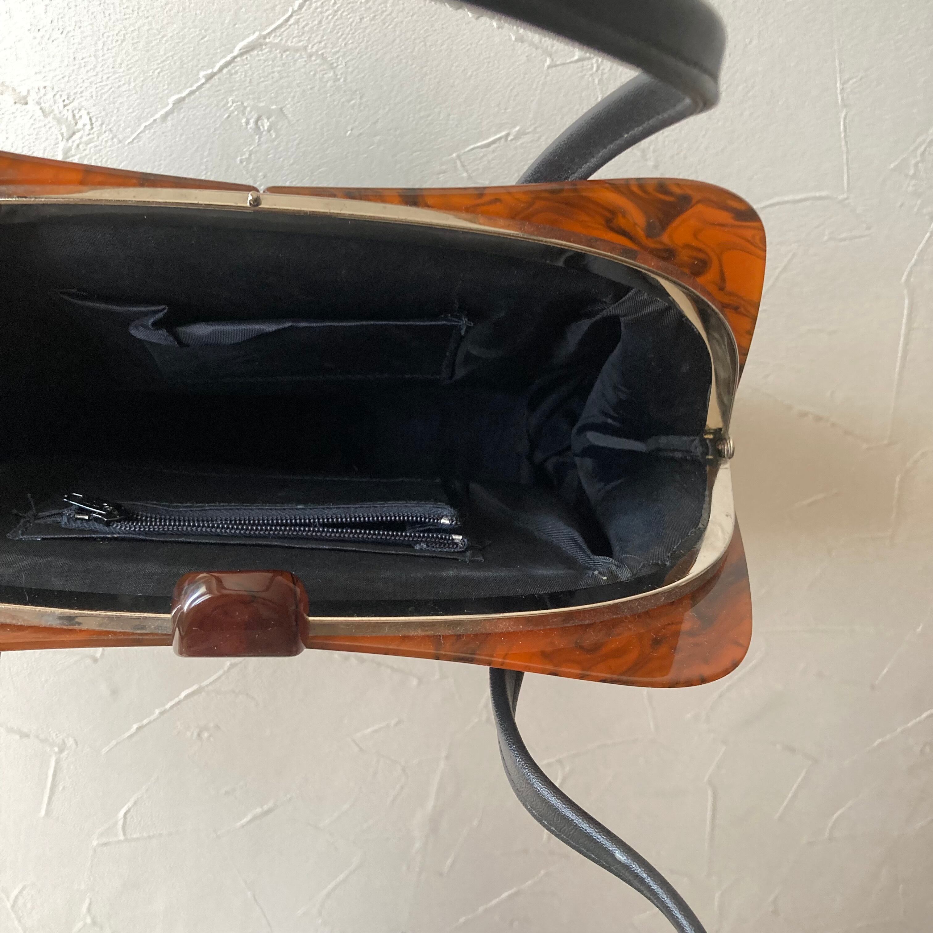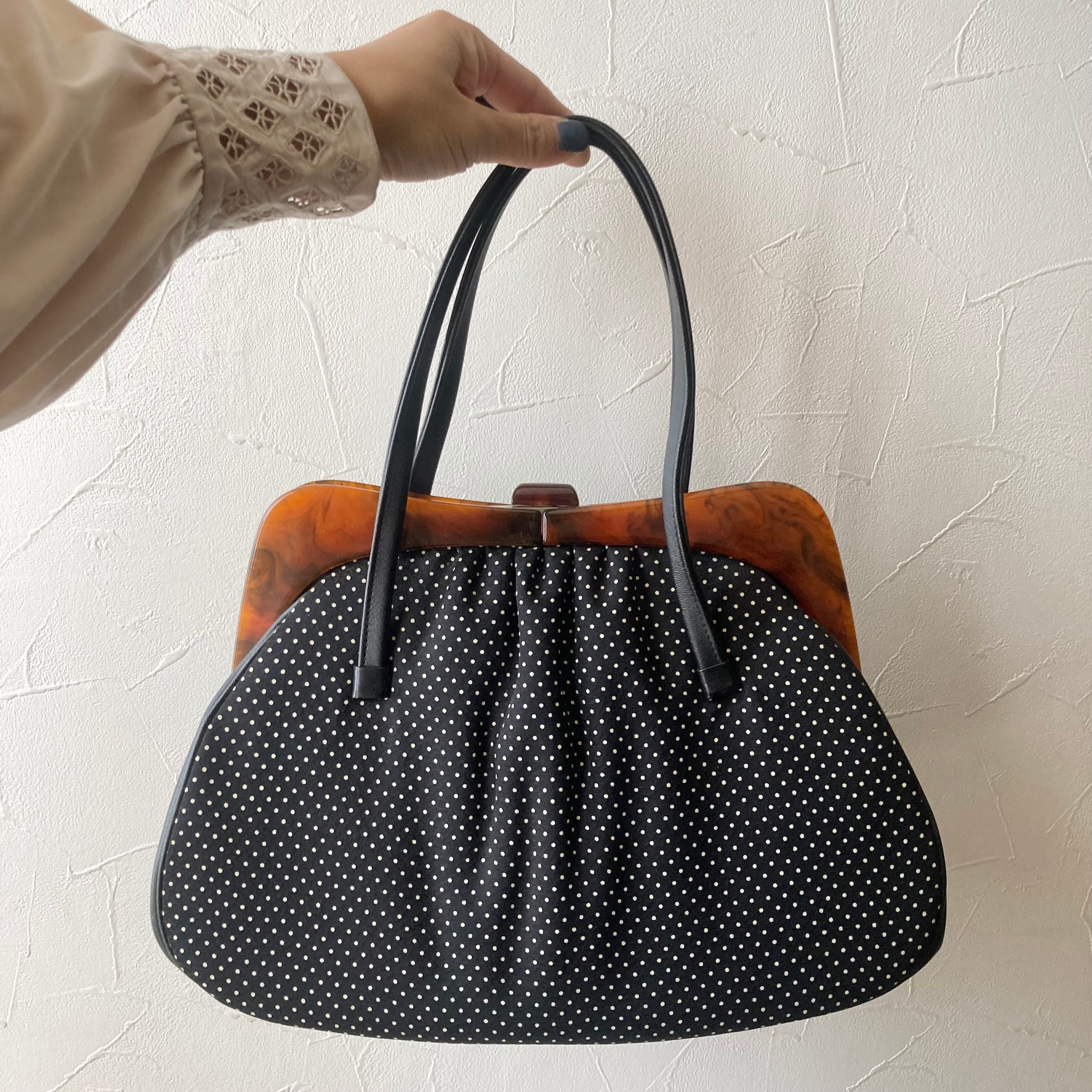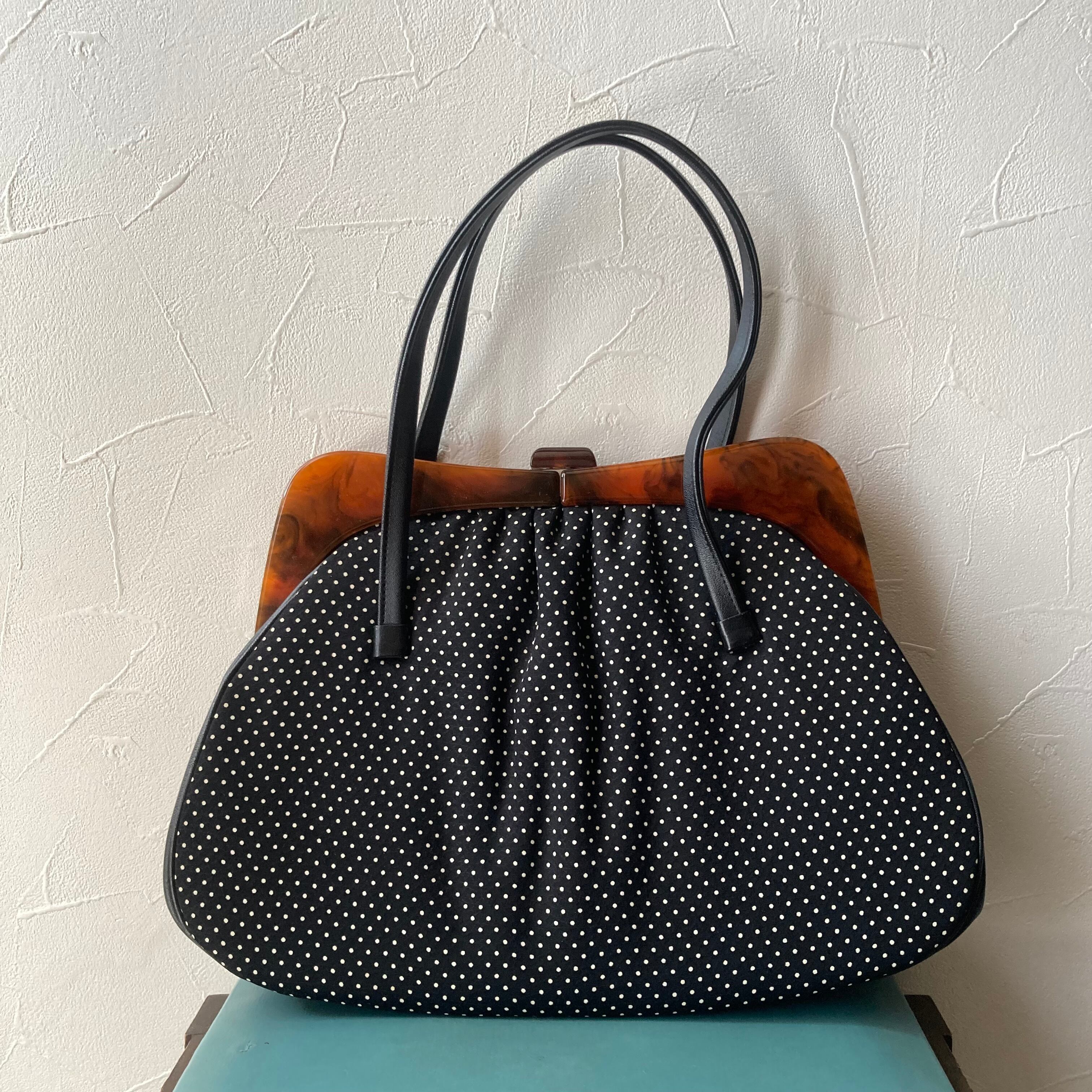 黒に白のドット柄とベッコウのがま口の組み合わせが可愛いレトロなバッグ◯