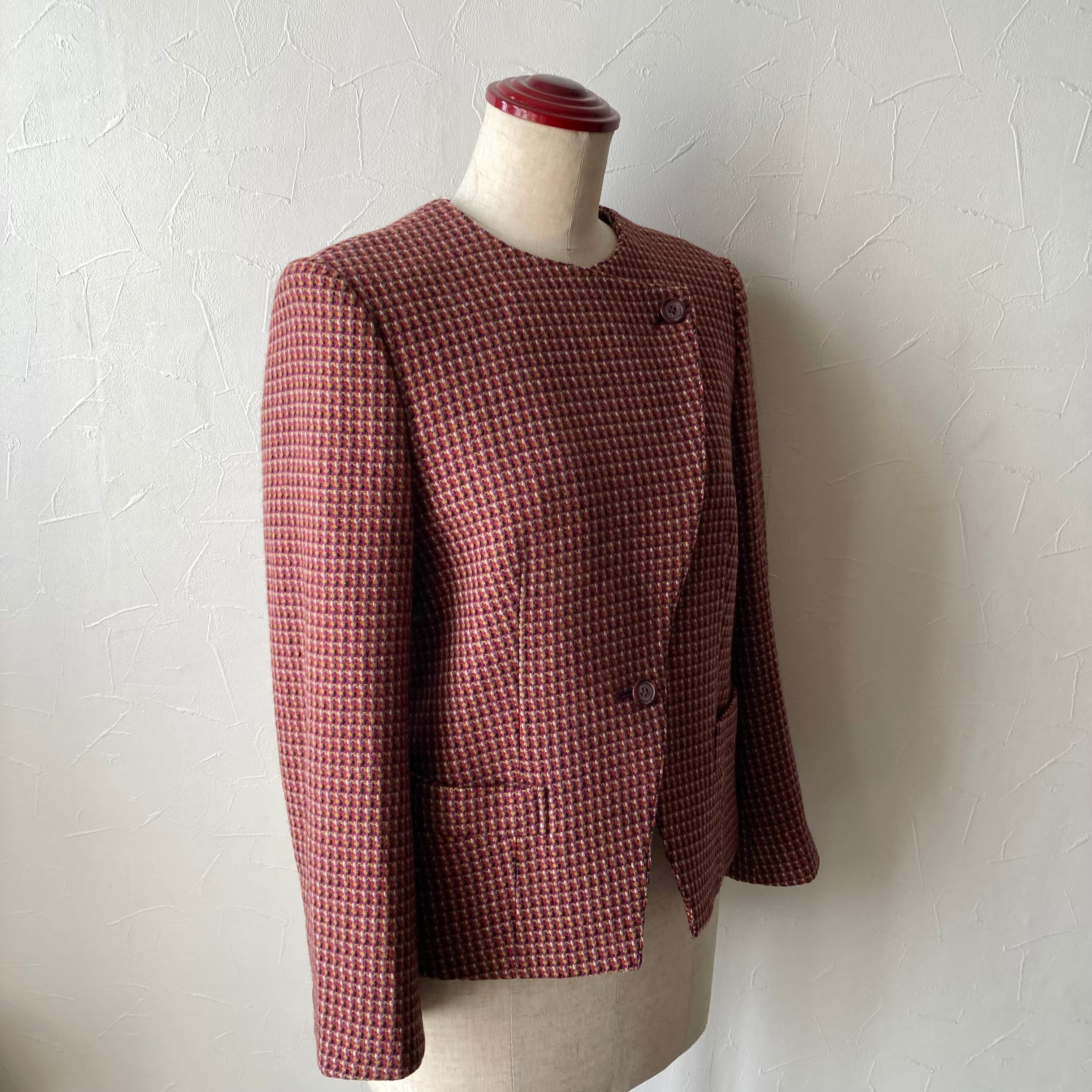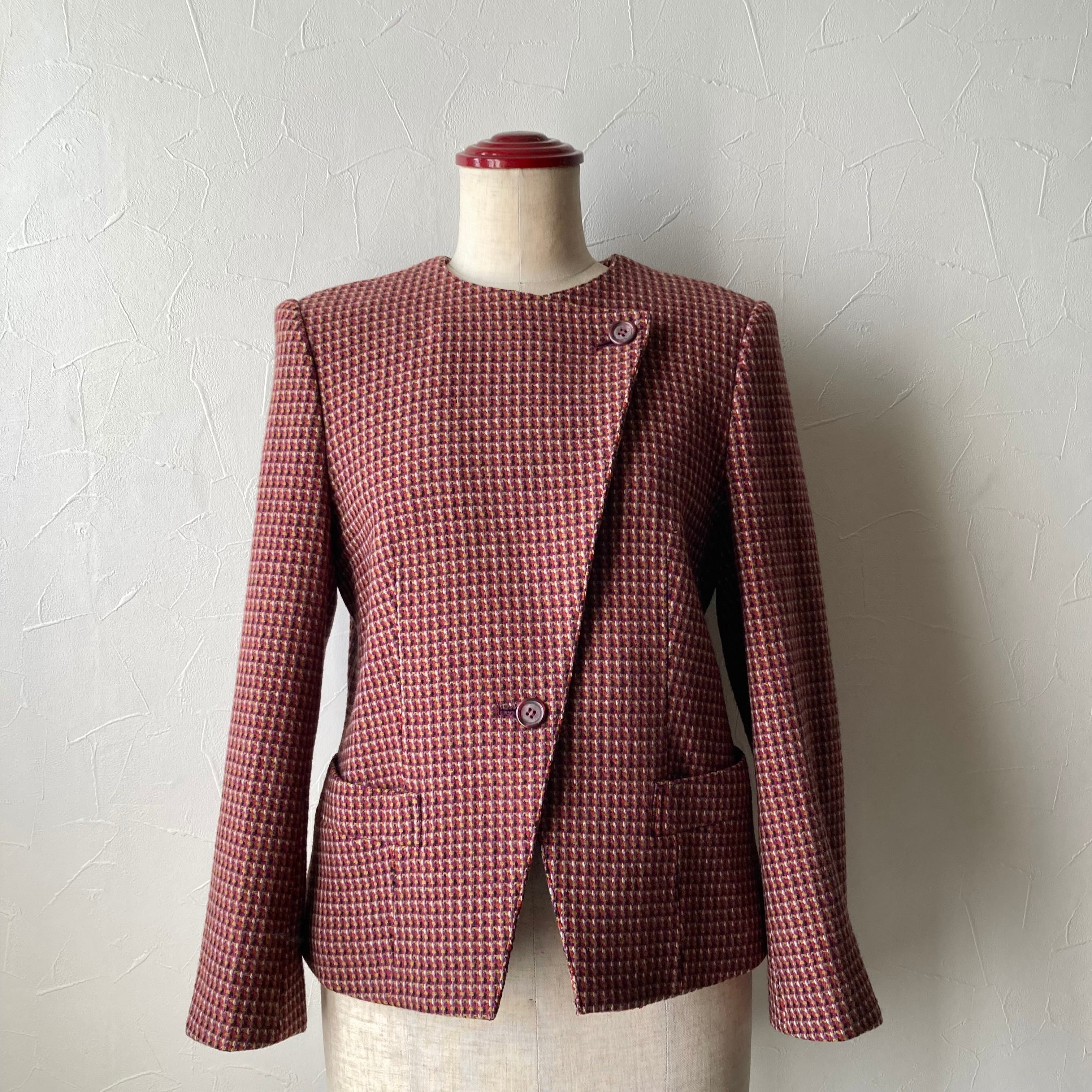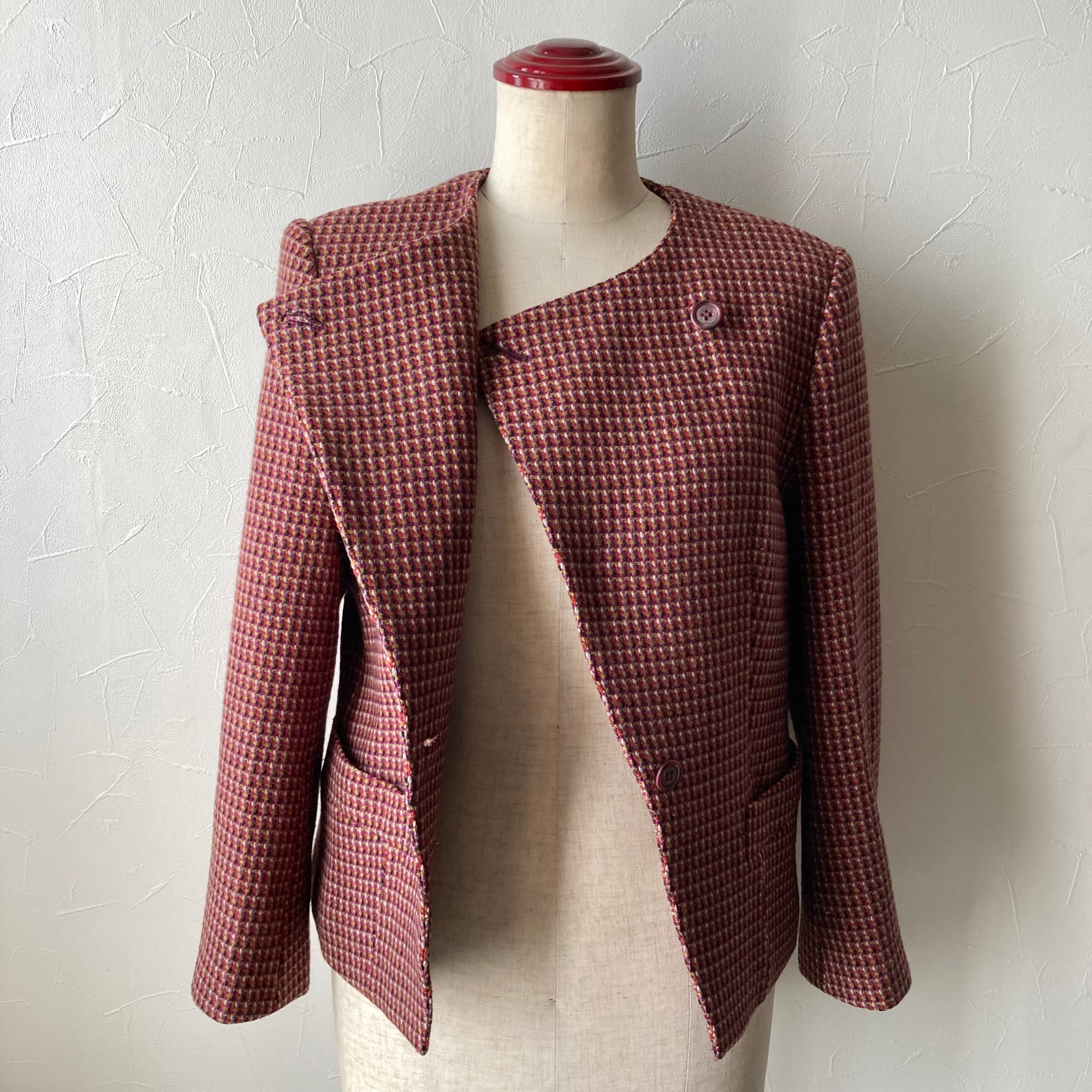 可愛い色合いのシャープなデザインが素敵なジャケット◯ 合わせがユニークな古着ならではのデザインが目を惹きます。