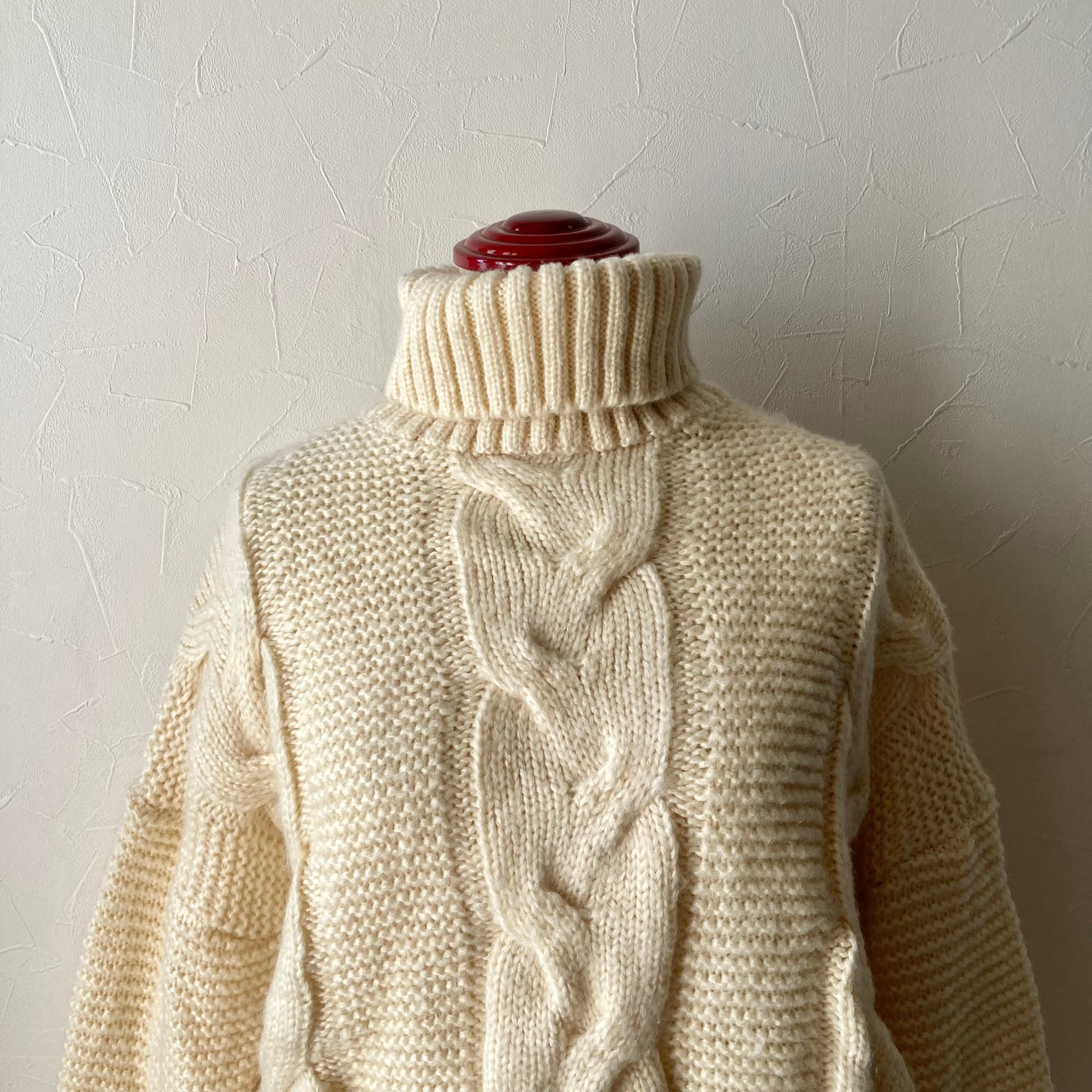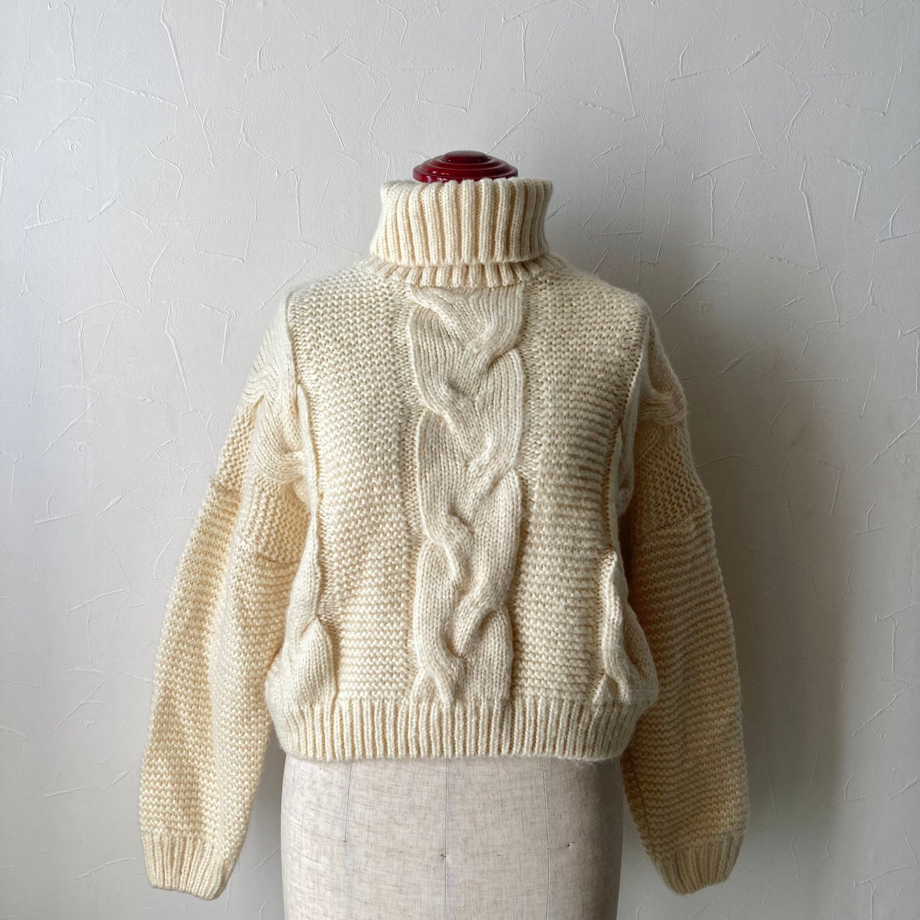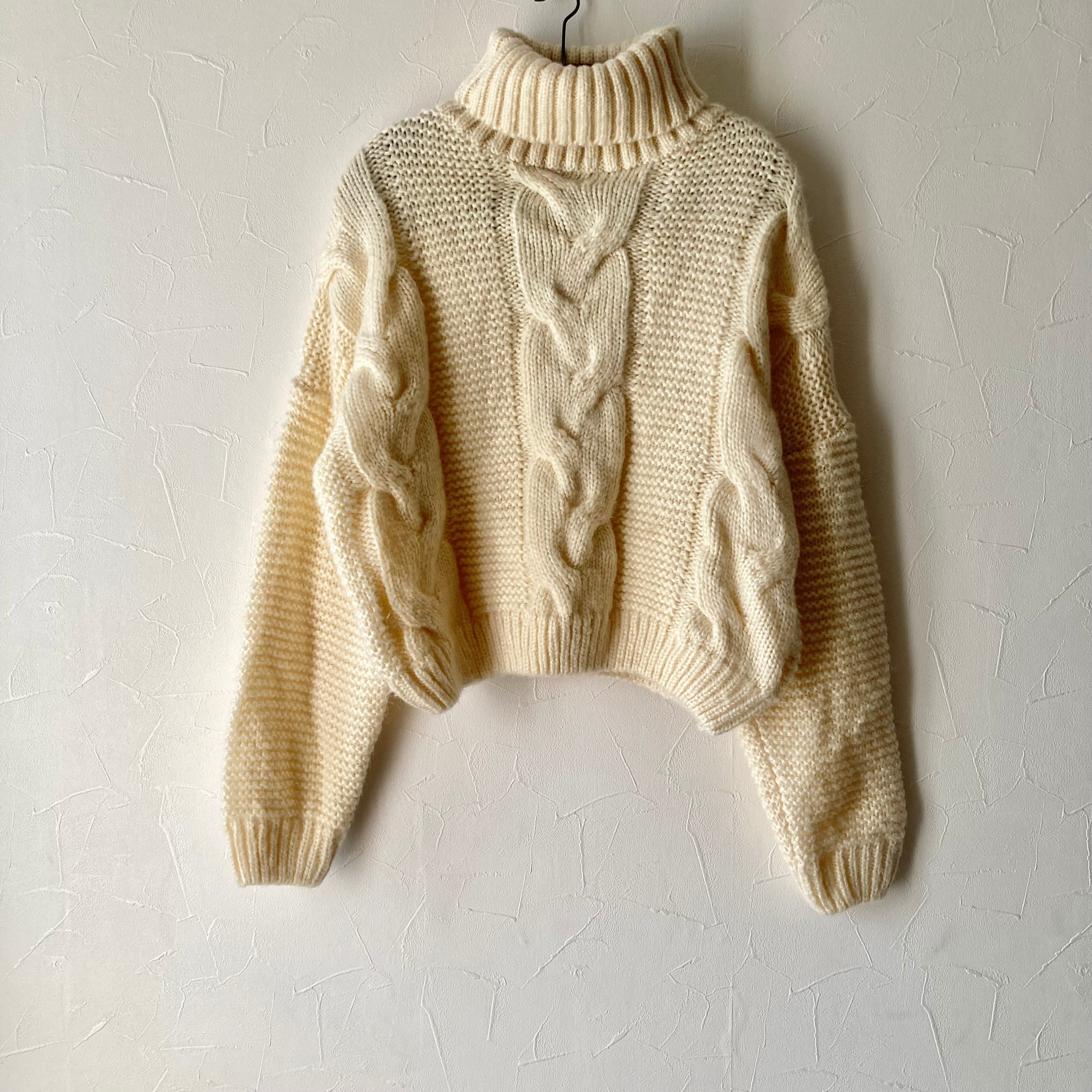 ショート丈タートルネックケーブルニット 古着 used vintage レトロ