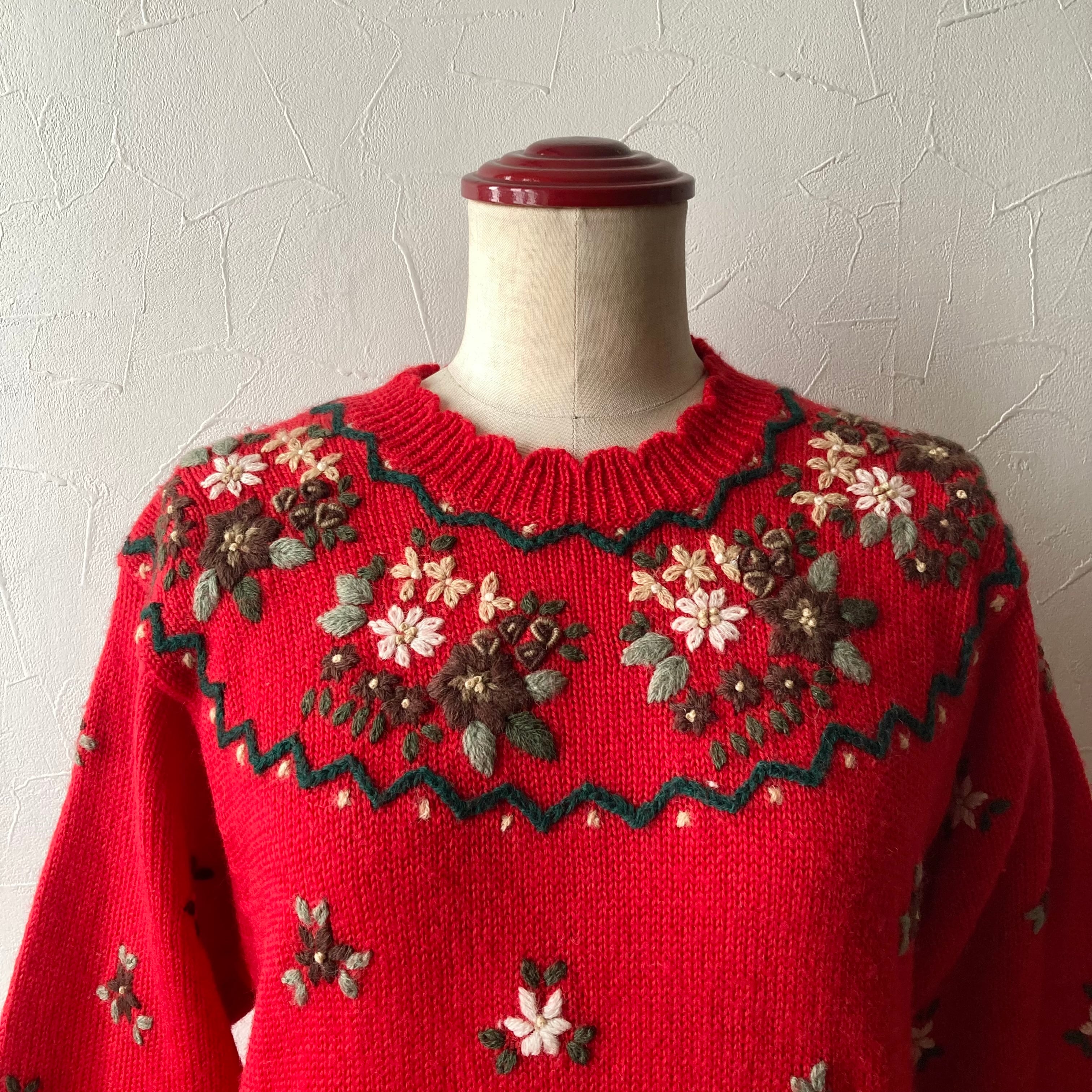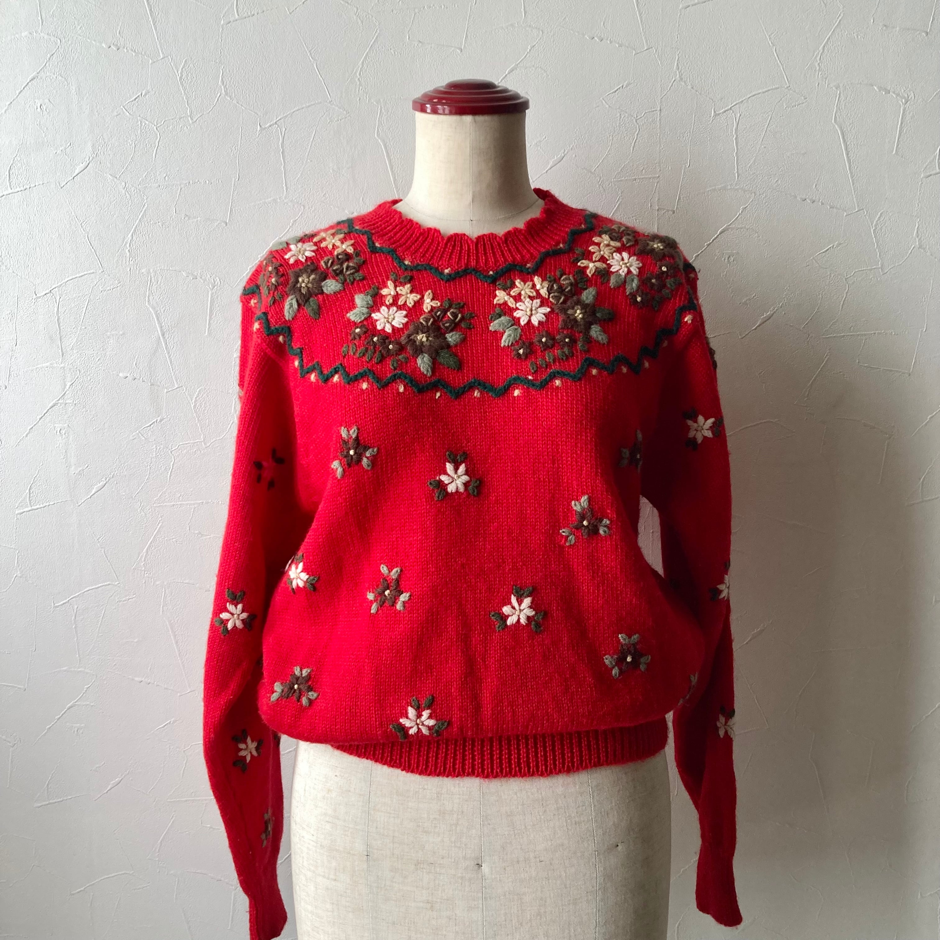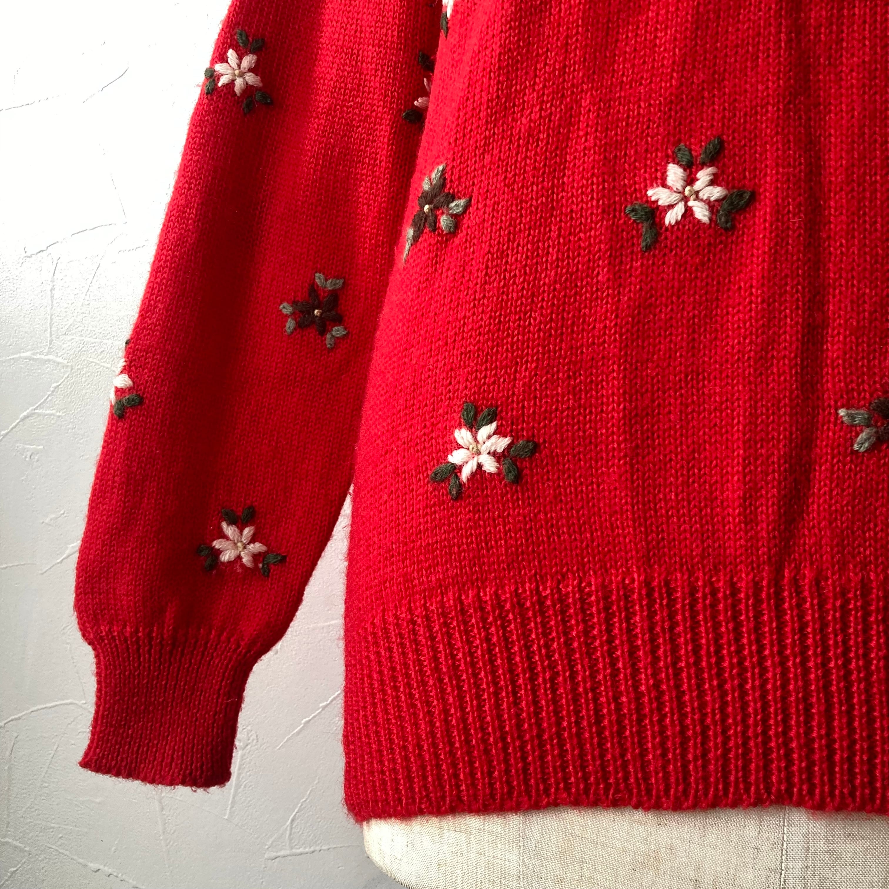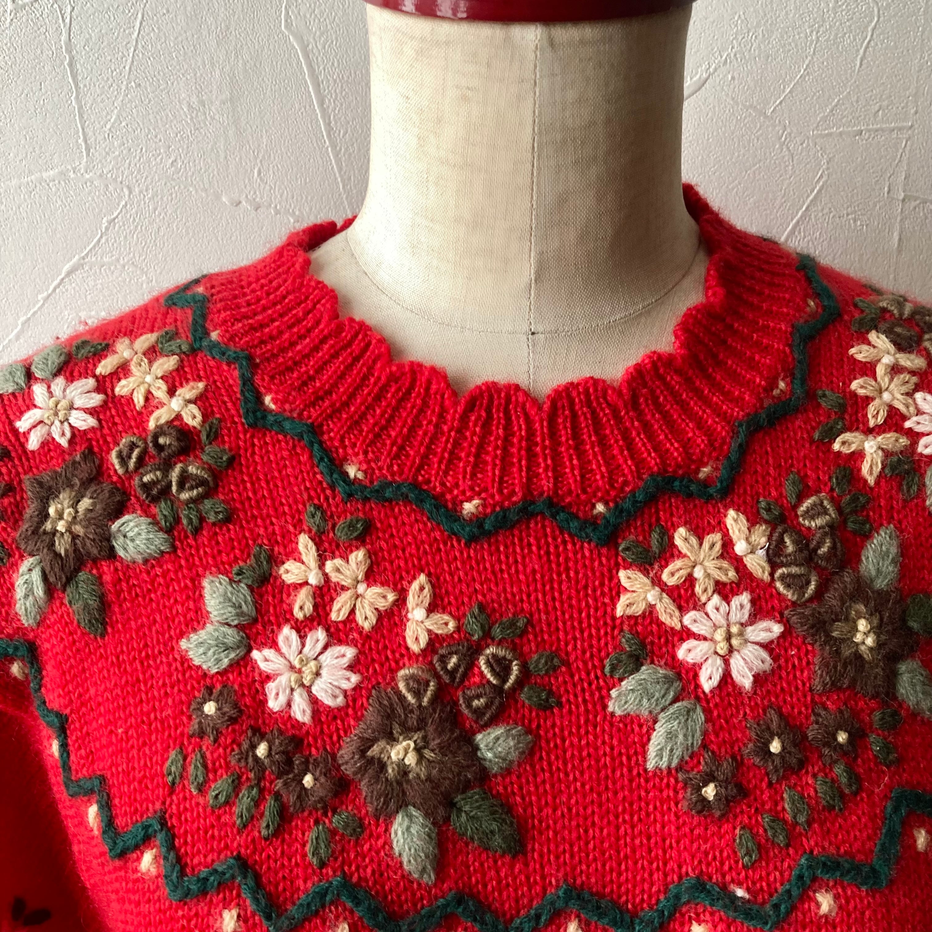 刺繍赤色ニット 古着 used vintage レトロ