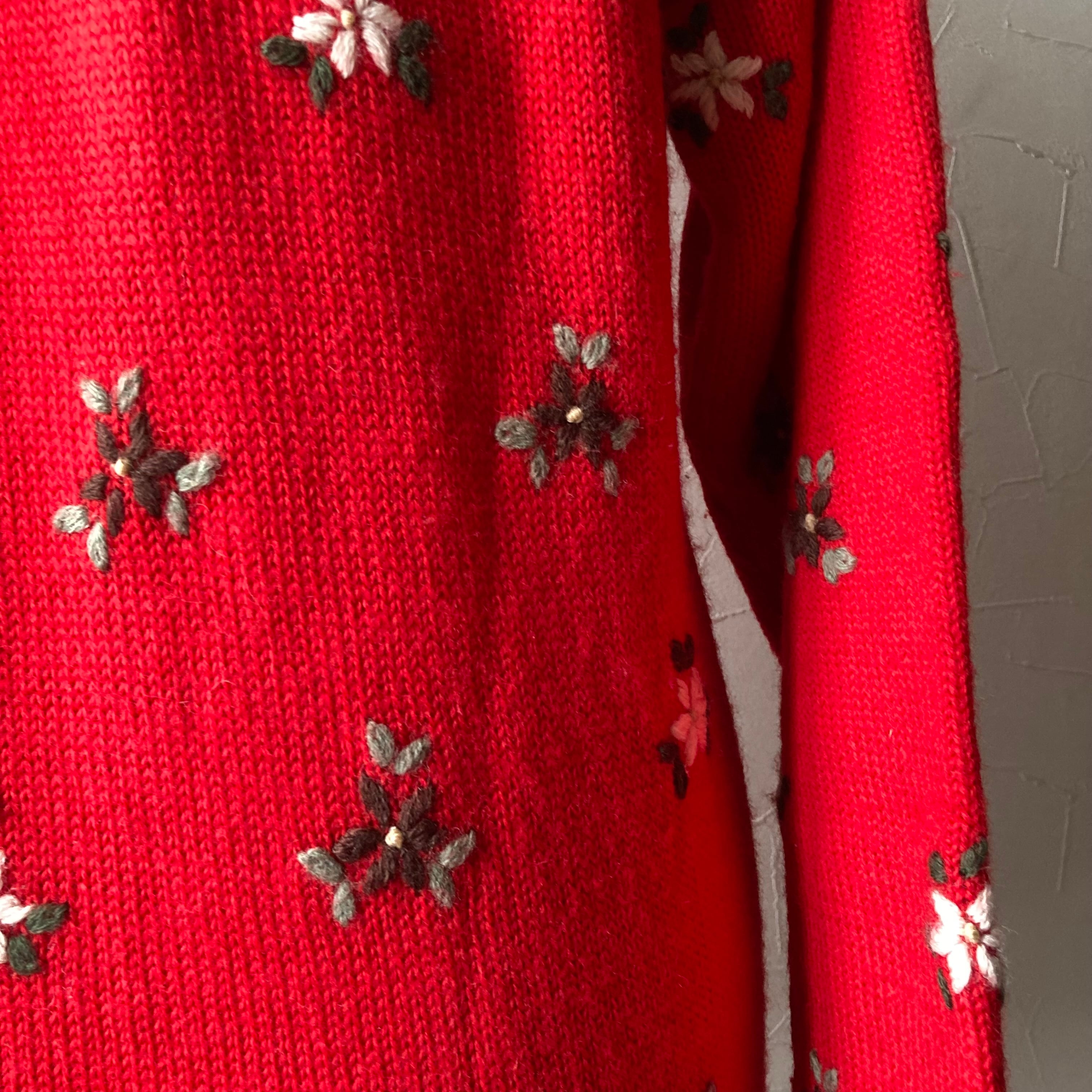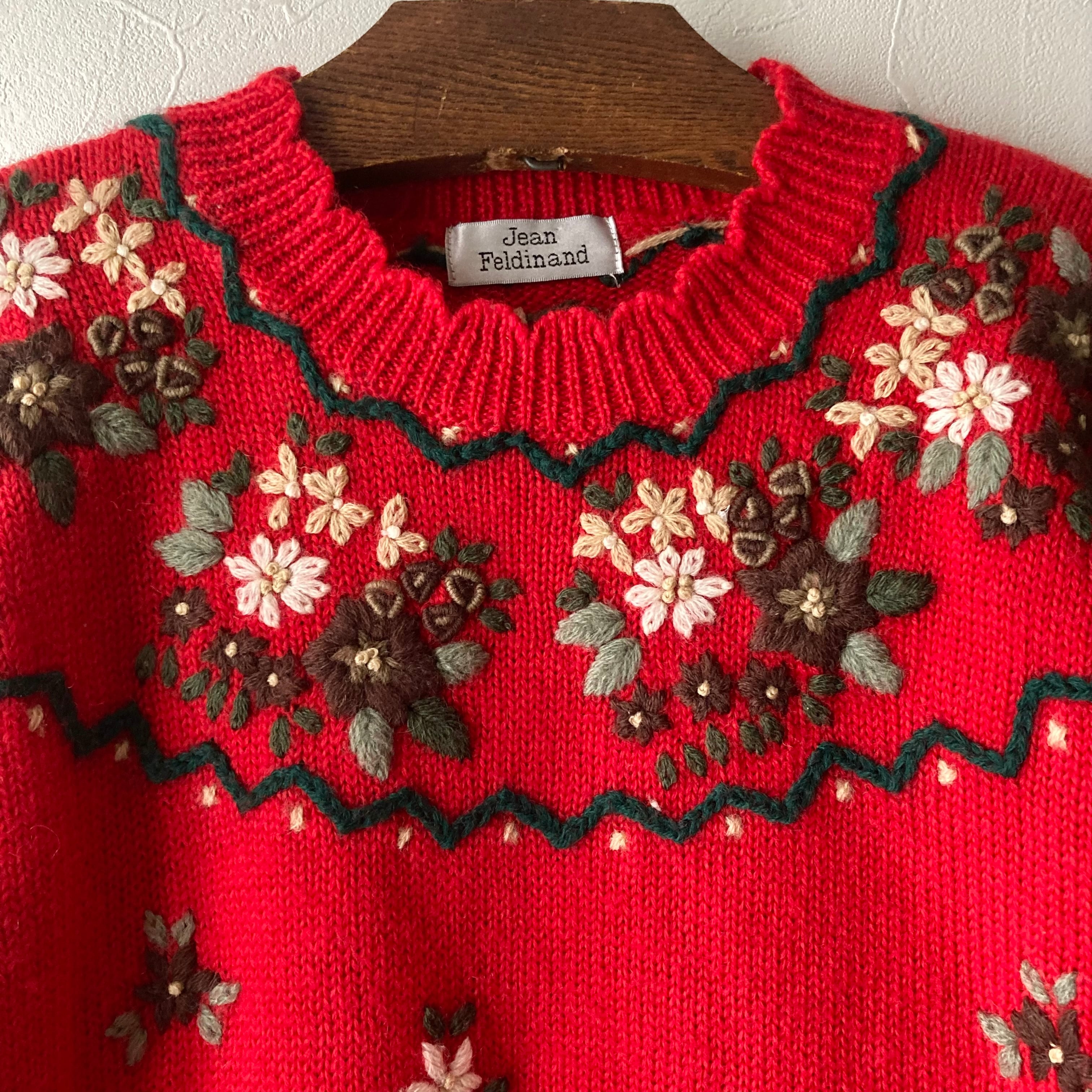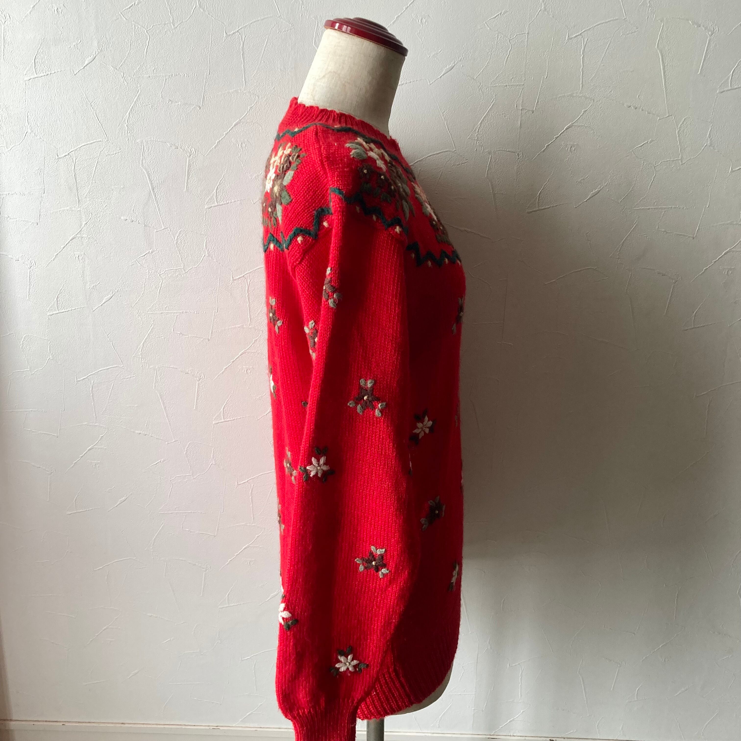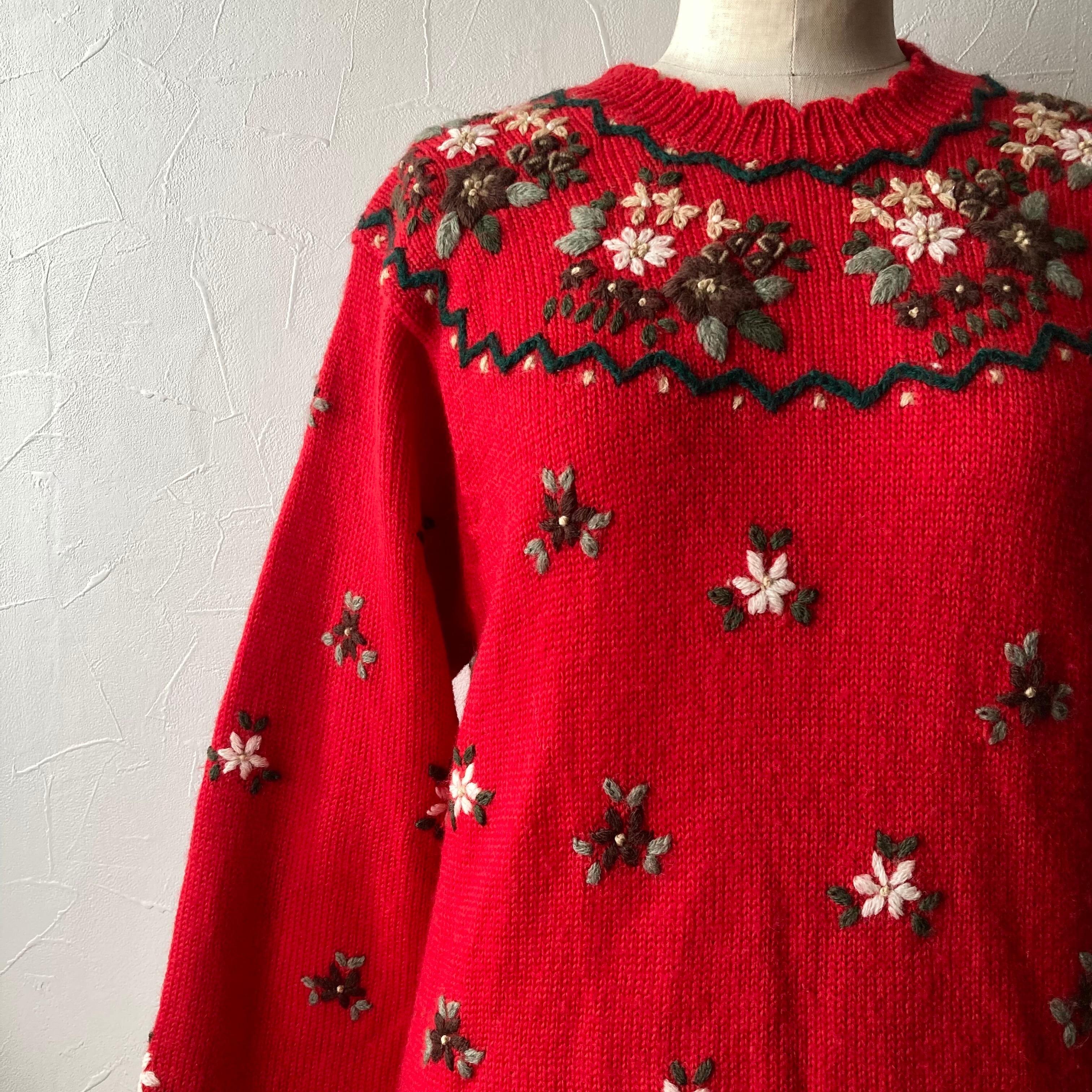 刺繍赤色ニット 古着 used vintage レトロ