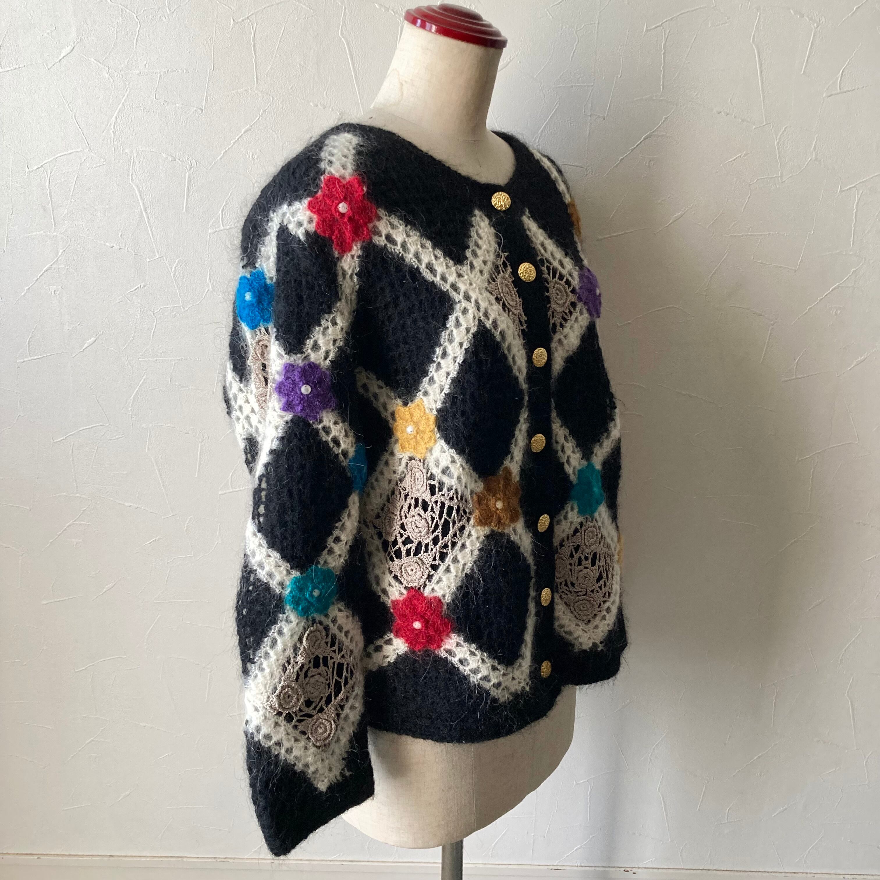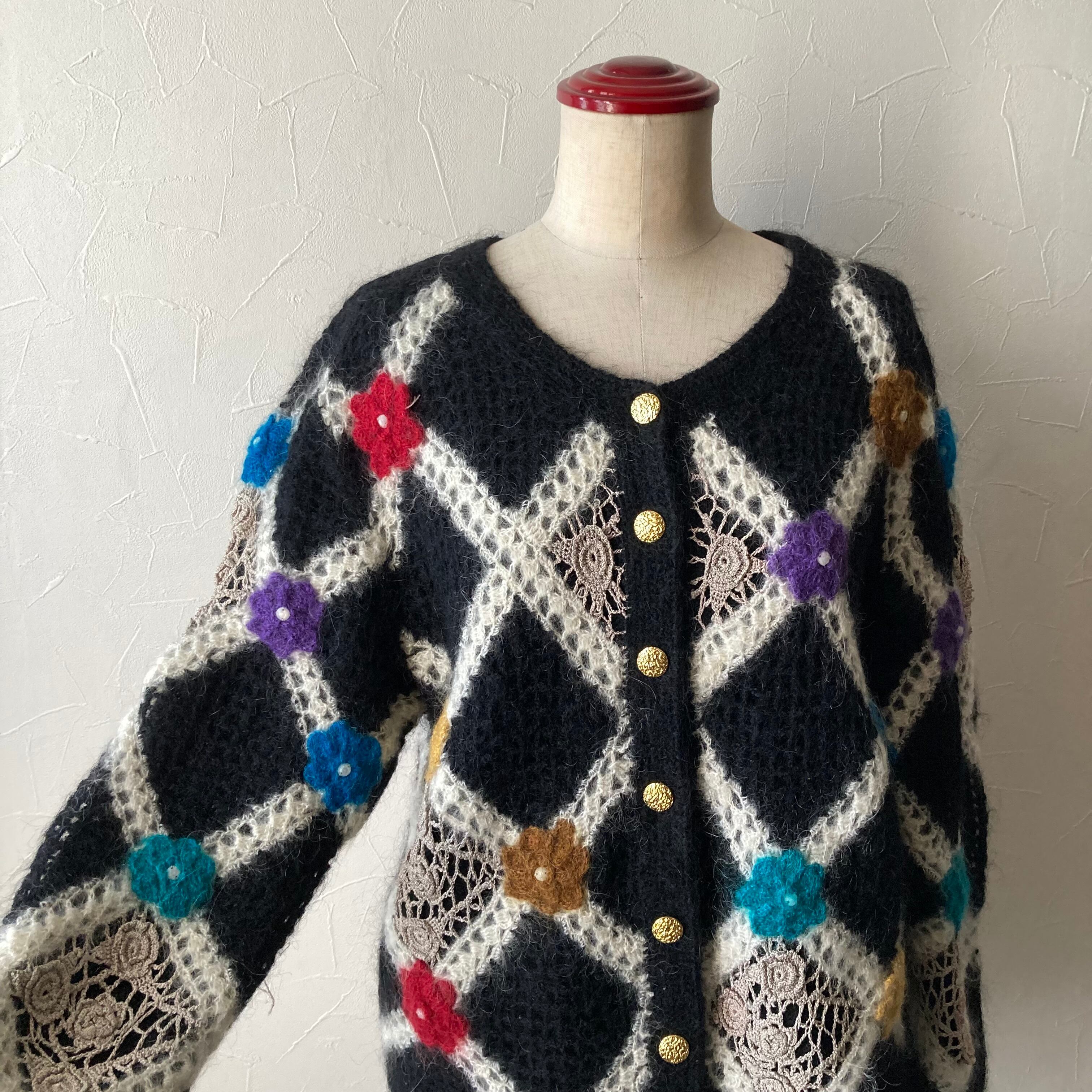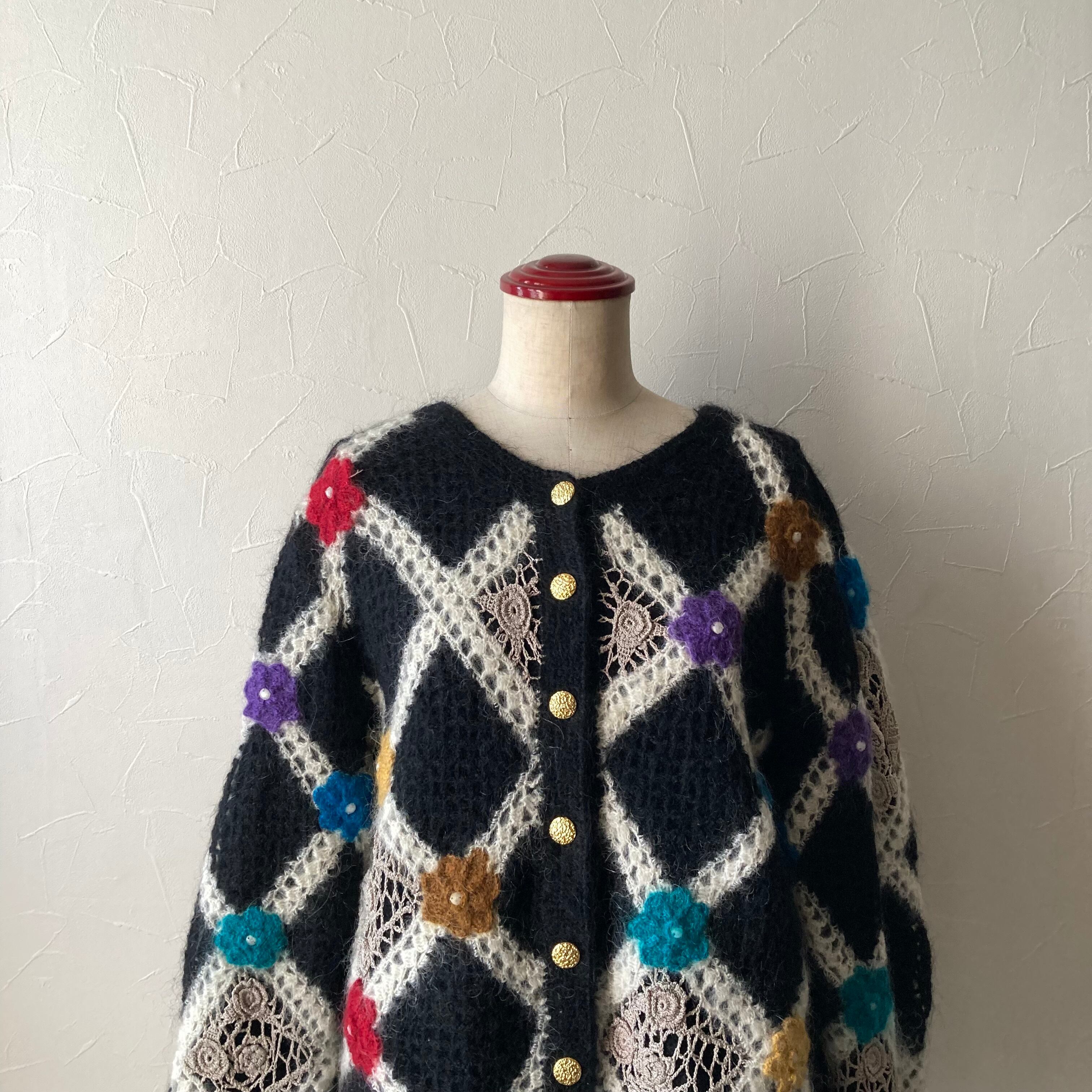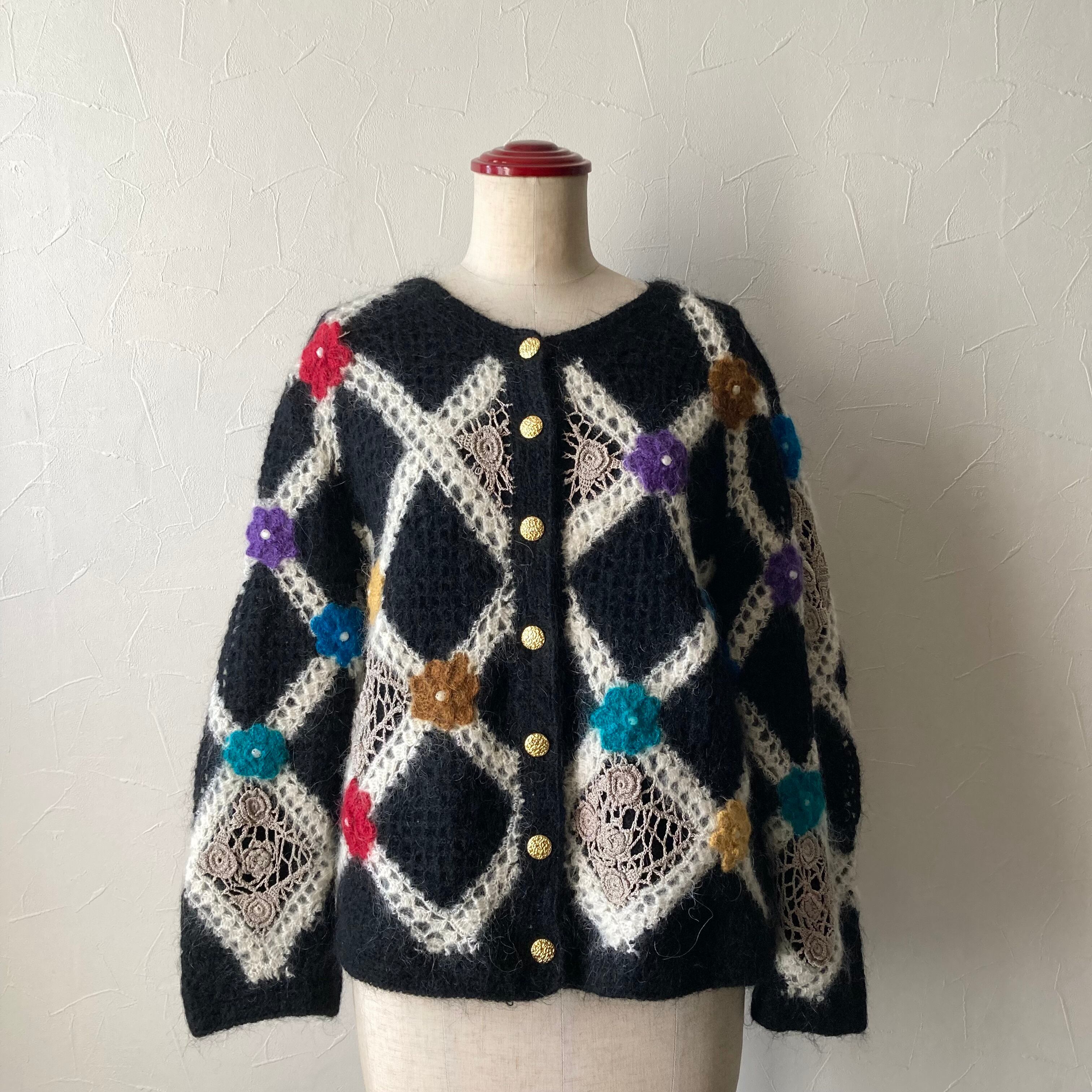 レース刺繍ふわふわカーディガン 古着 used vintage レトロ