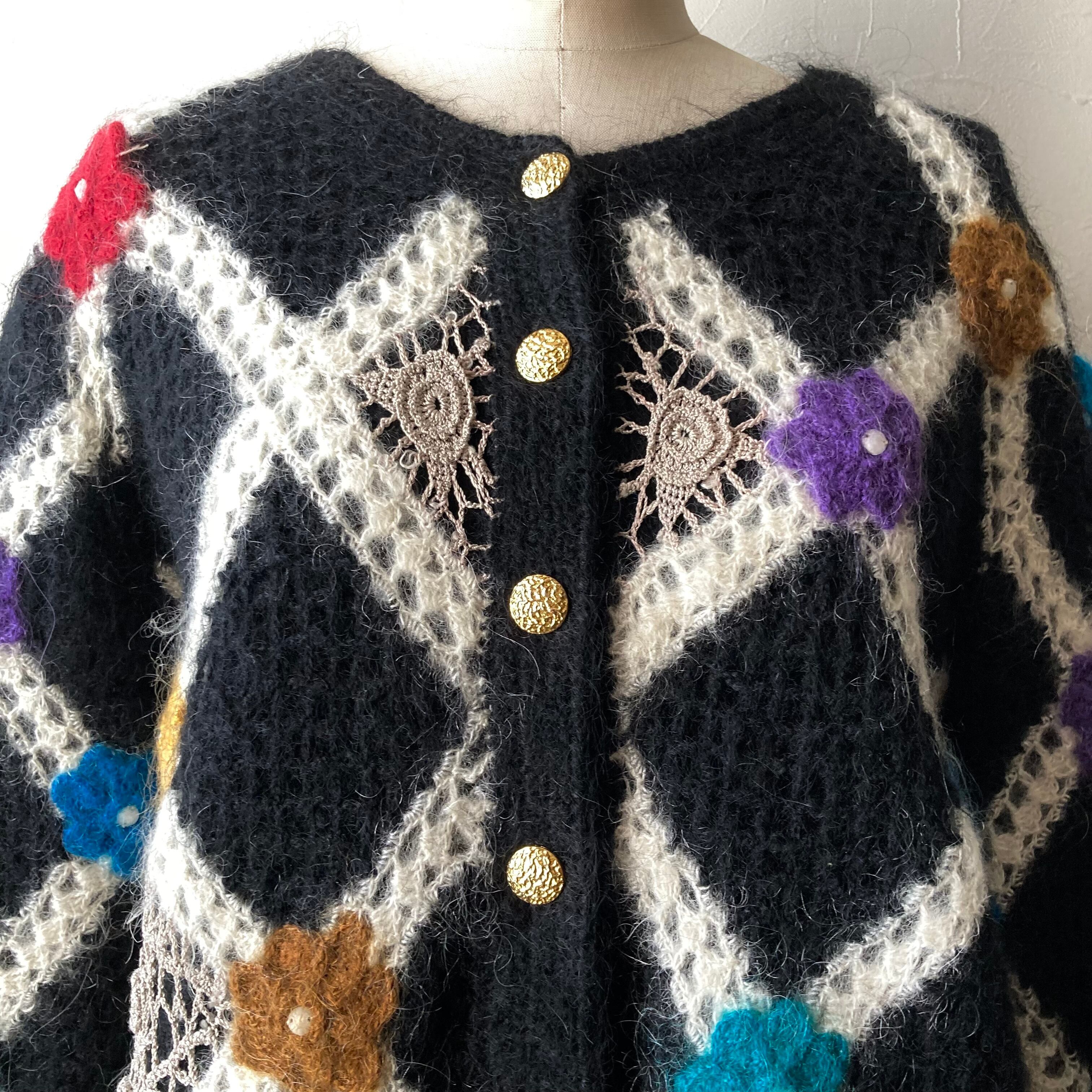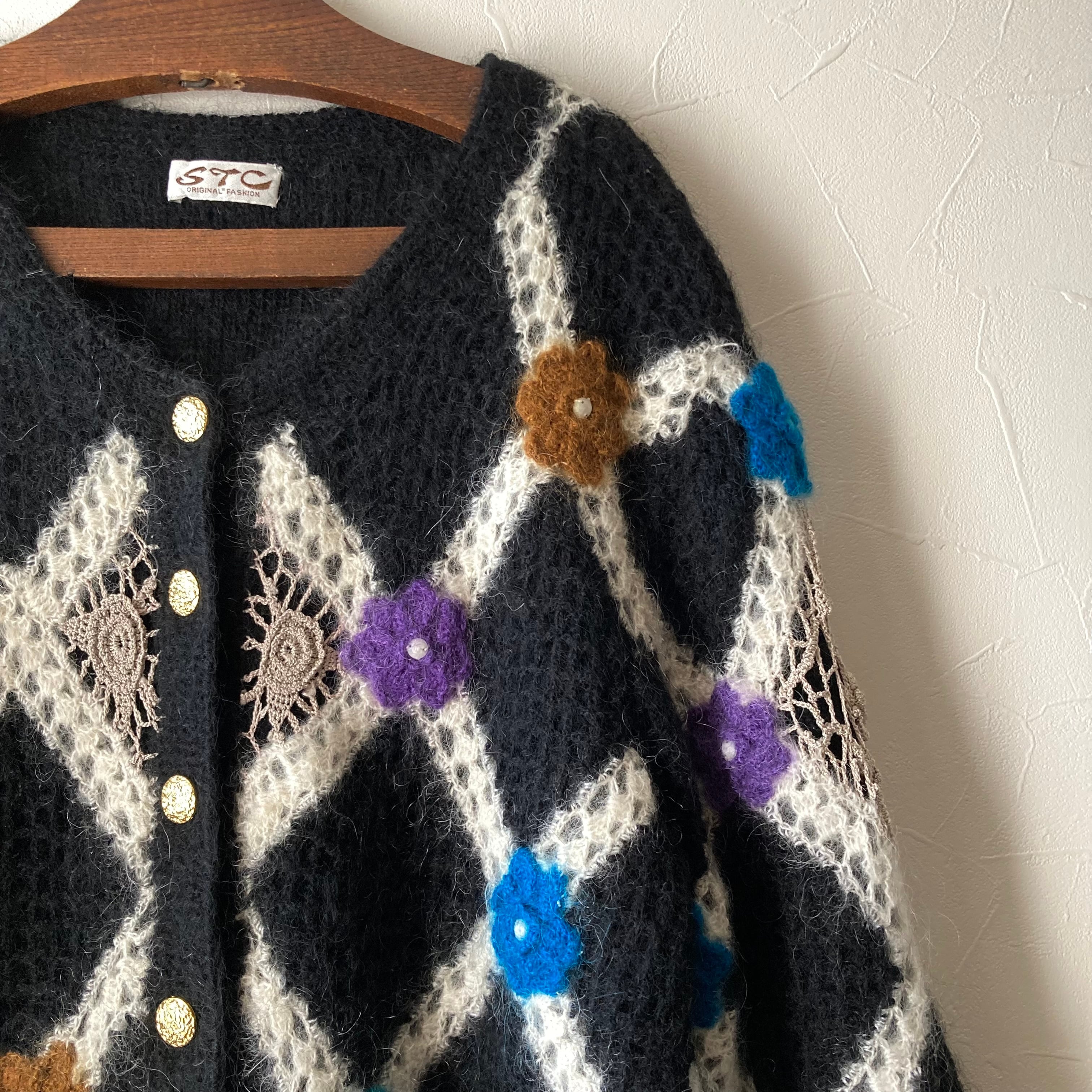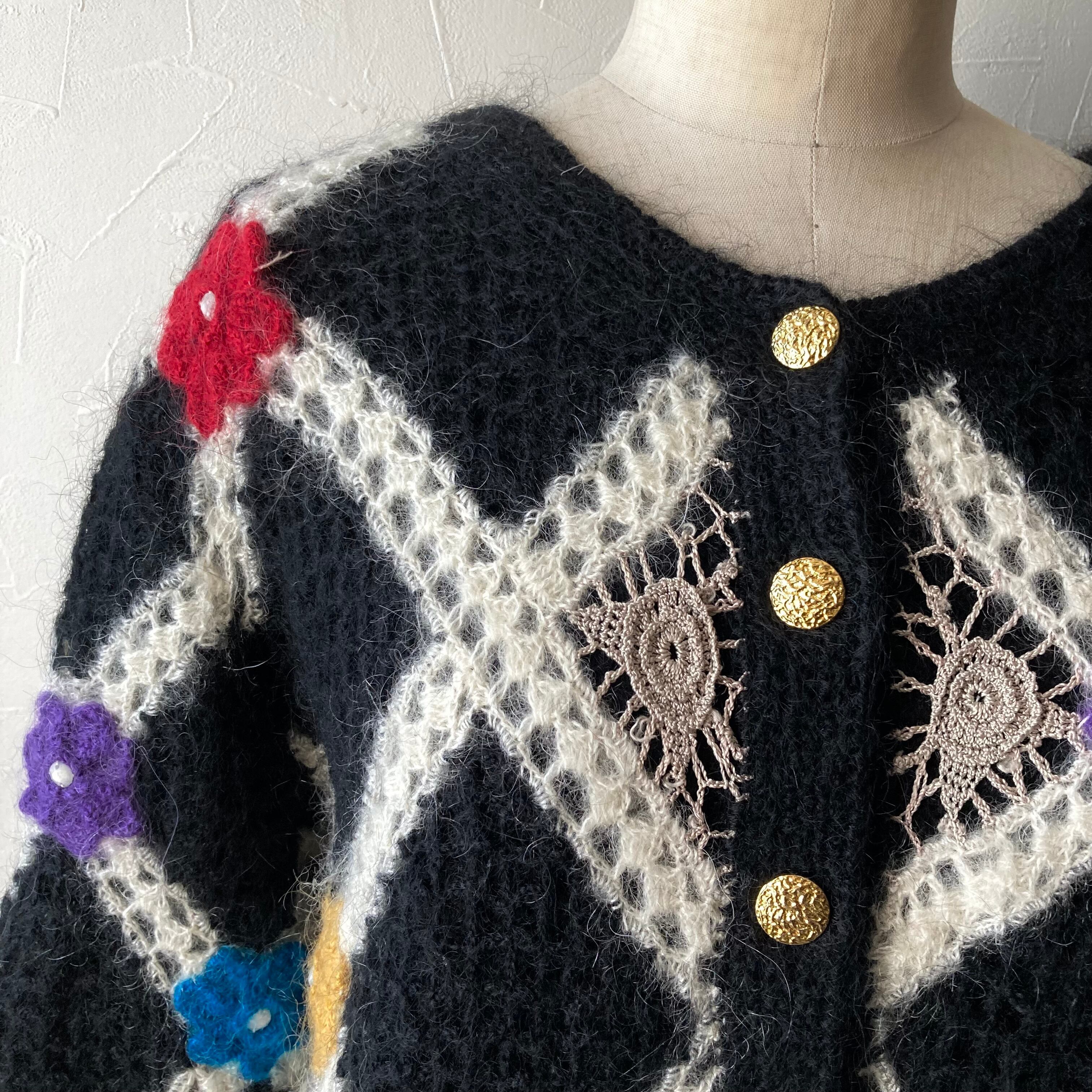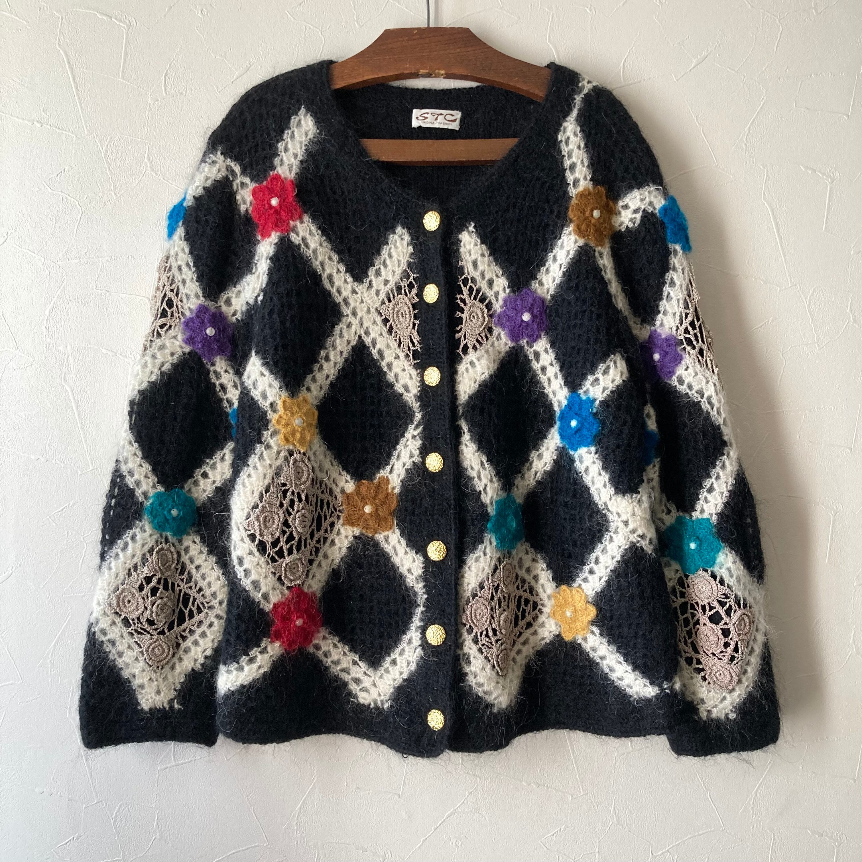 レース刺繍ふわふわカーディガン 古着 used vintage レトロ