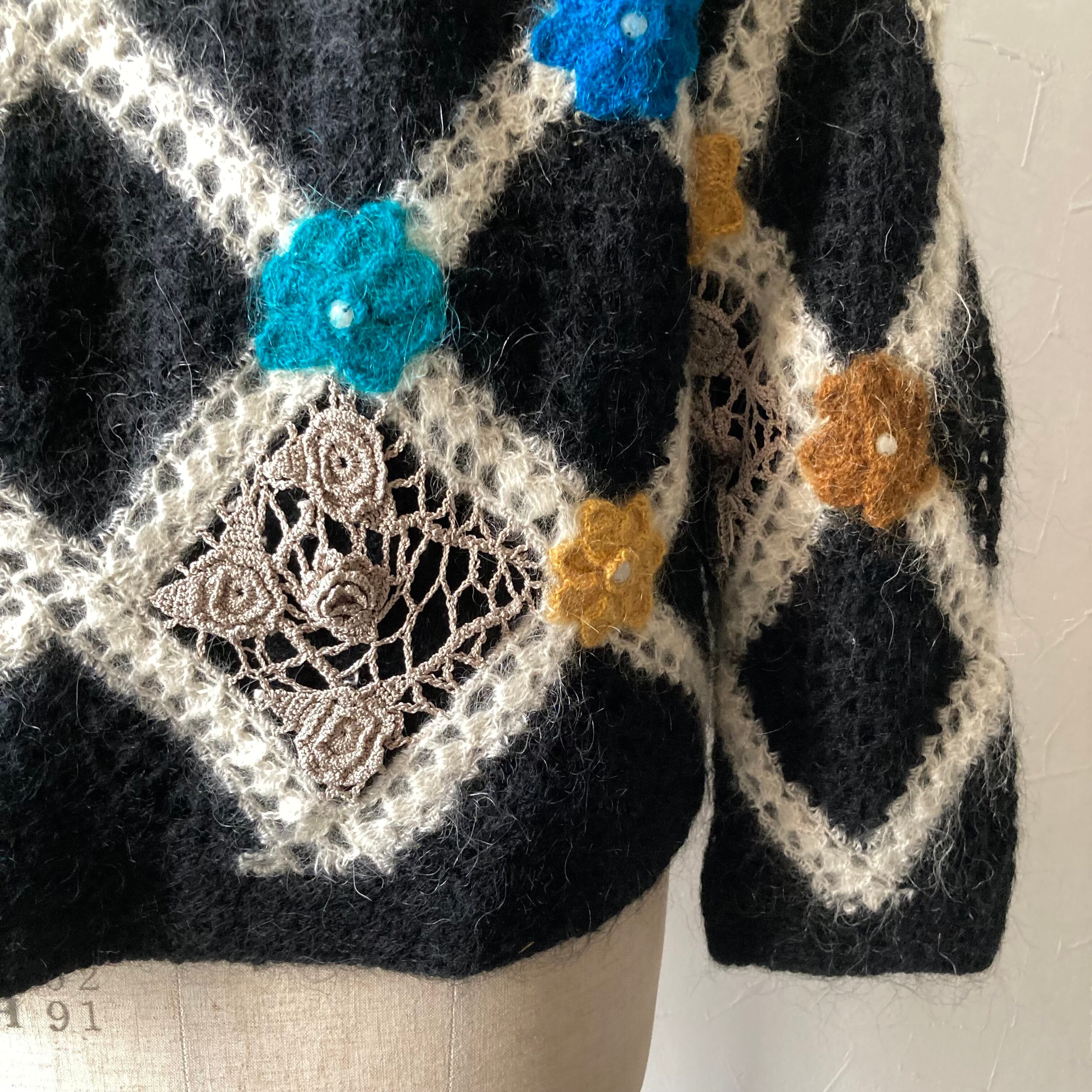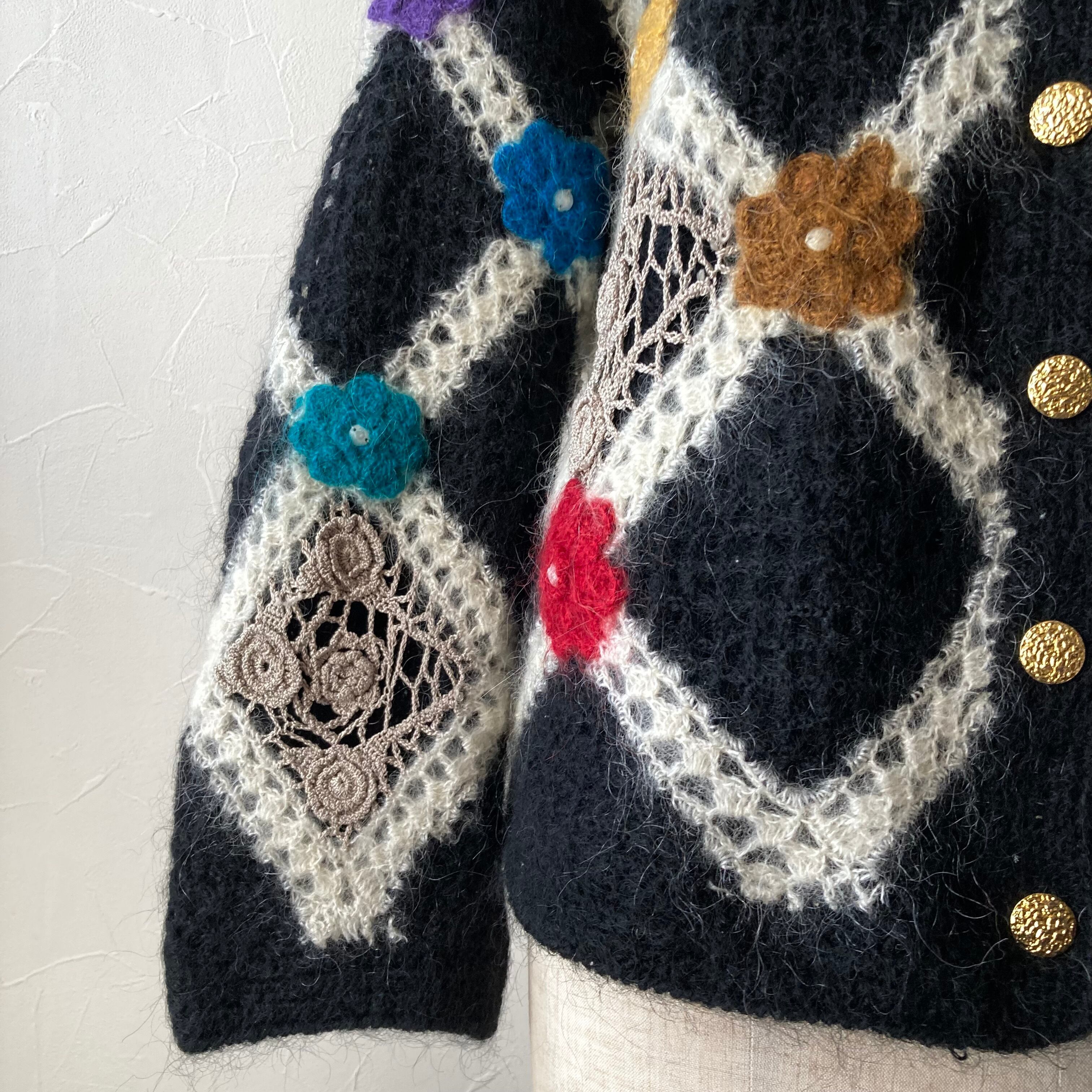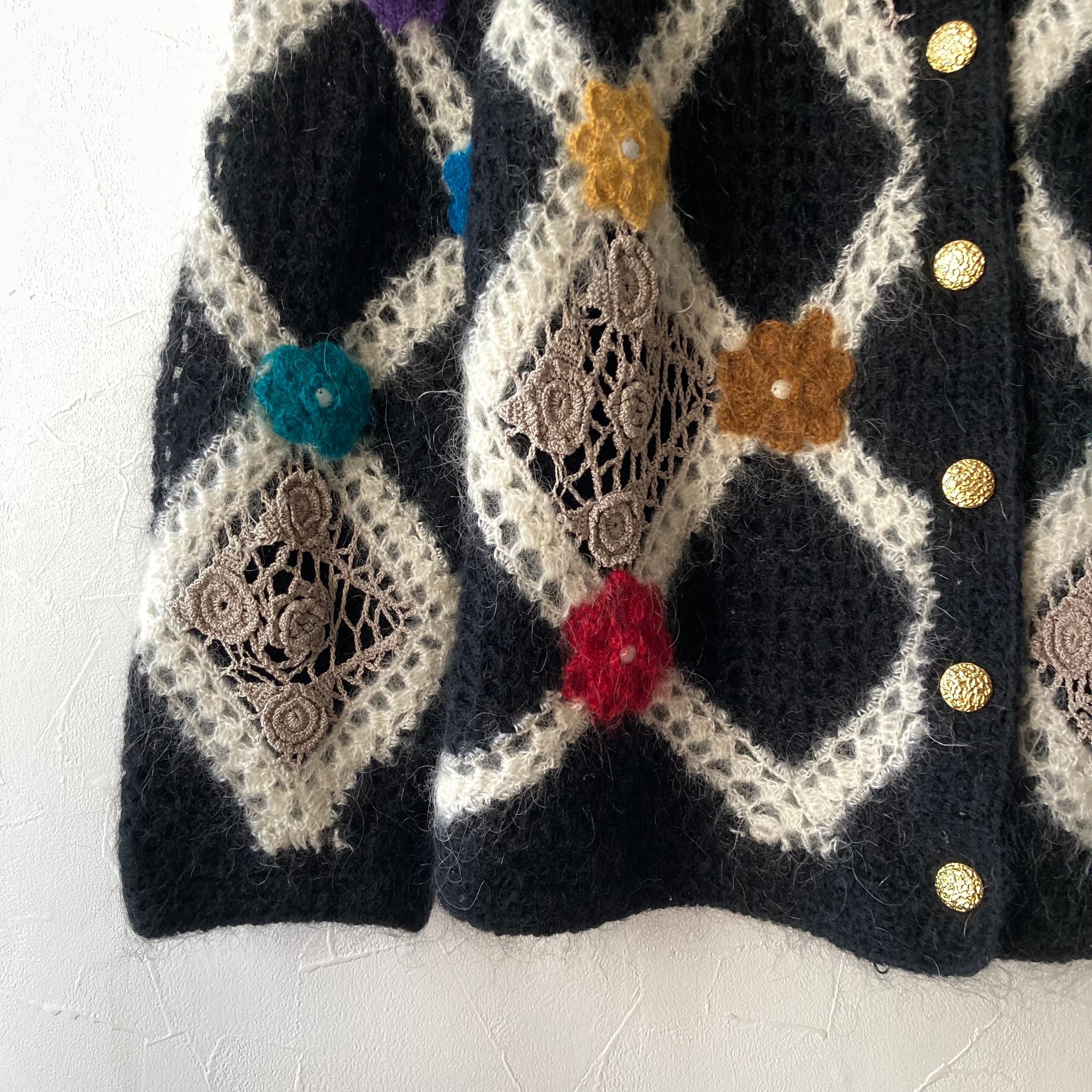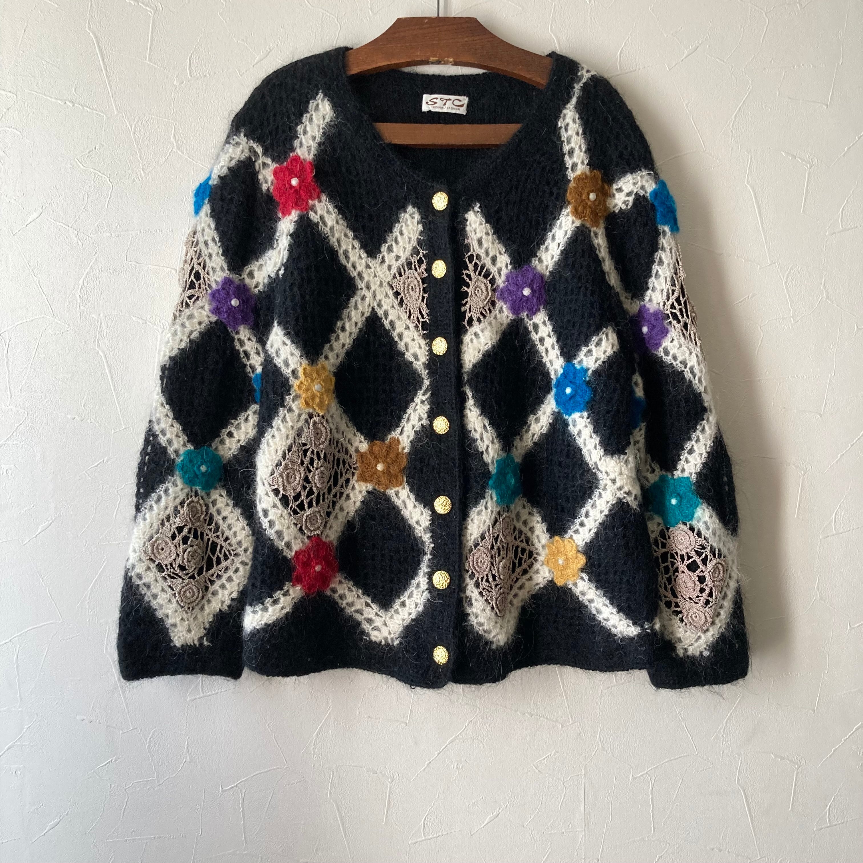 レース刺繍ふわふわカーディガン 古着 used vintage レトロ