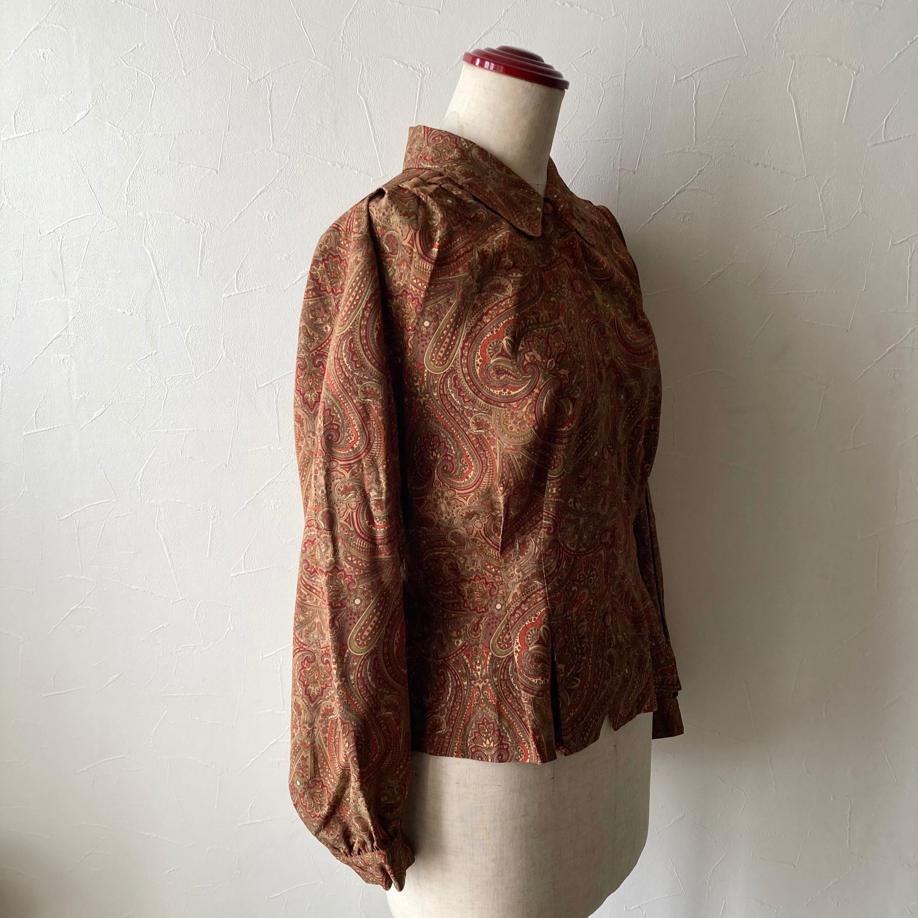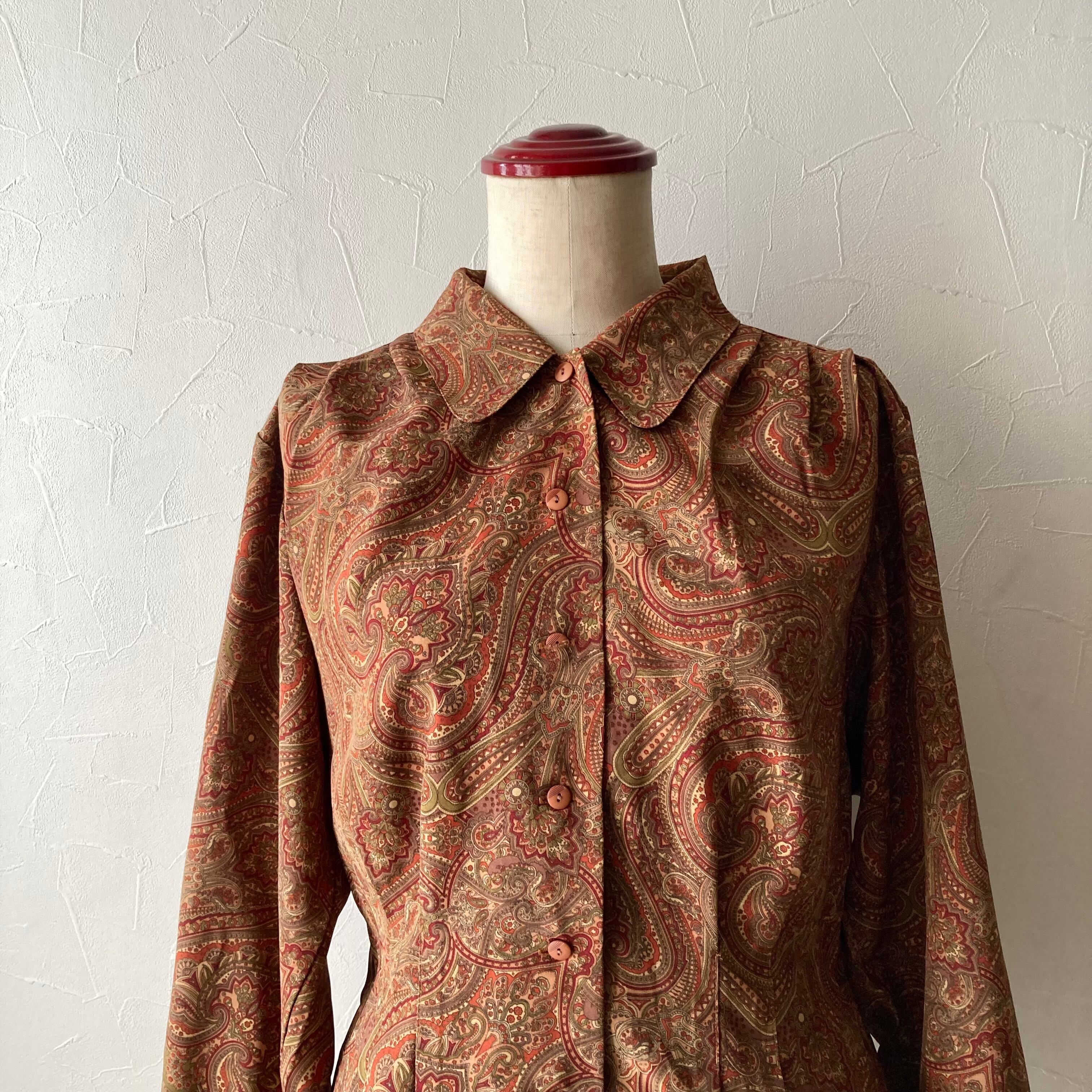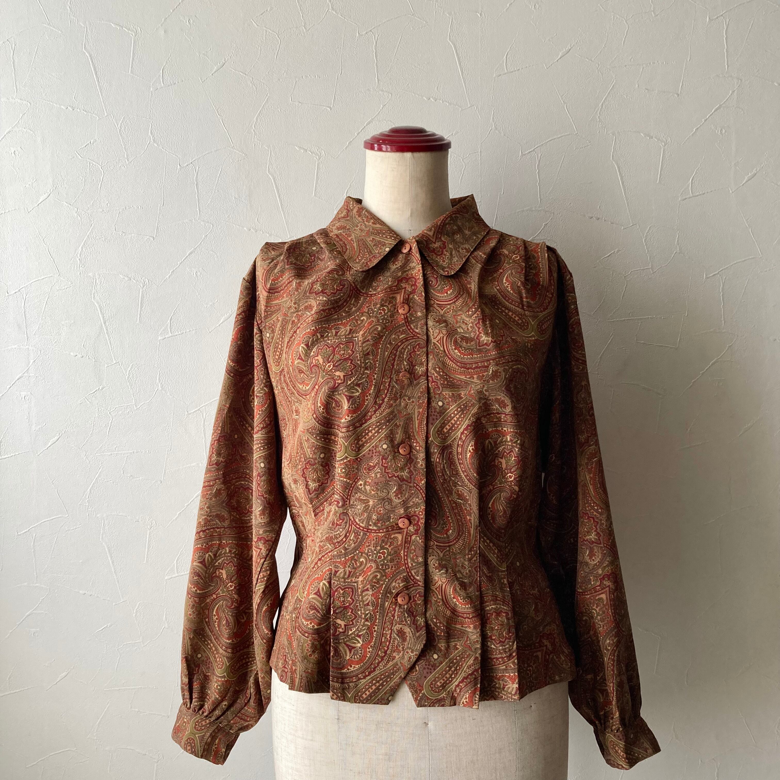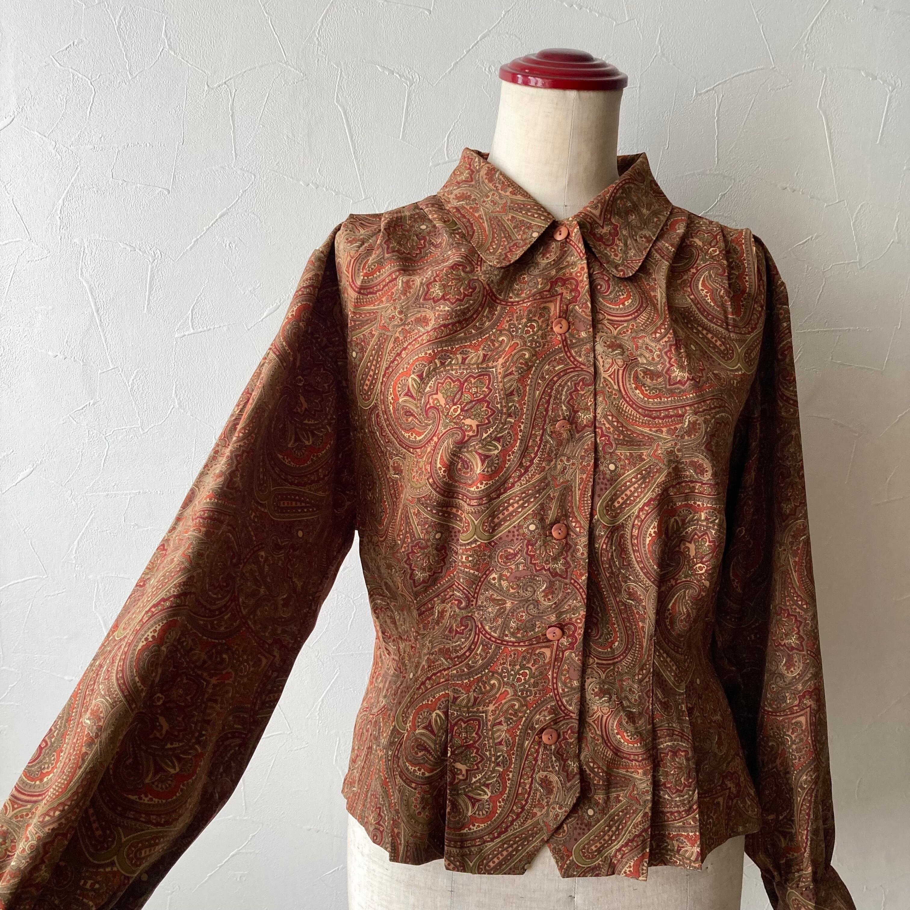 古着らしいレトロな柄と色合いの上品なブラウスです。