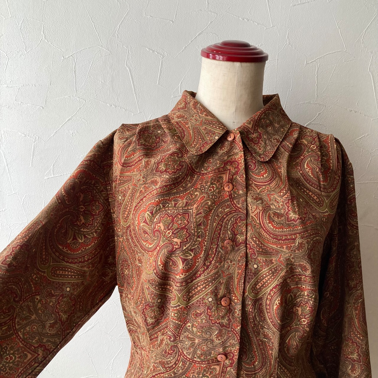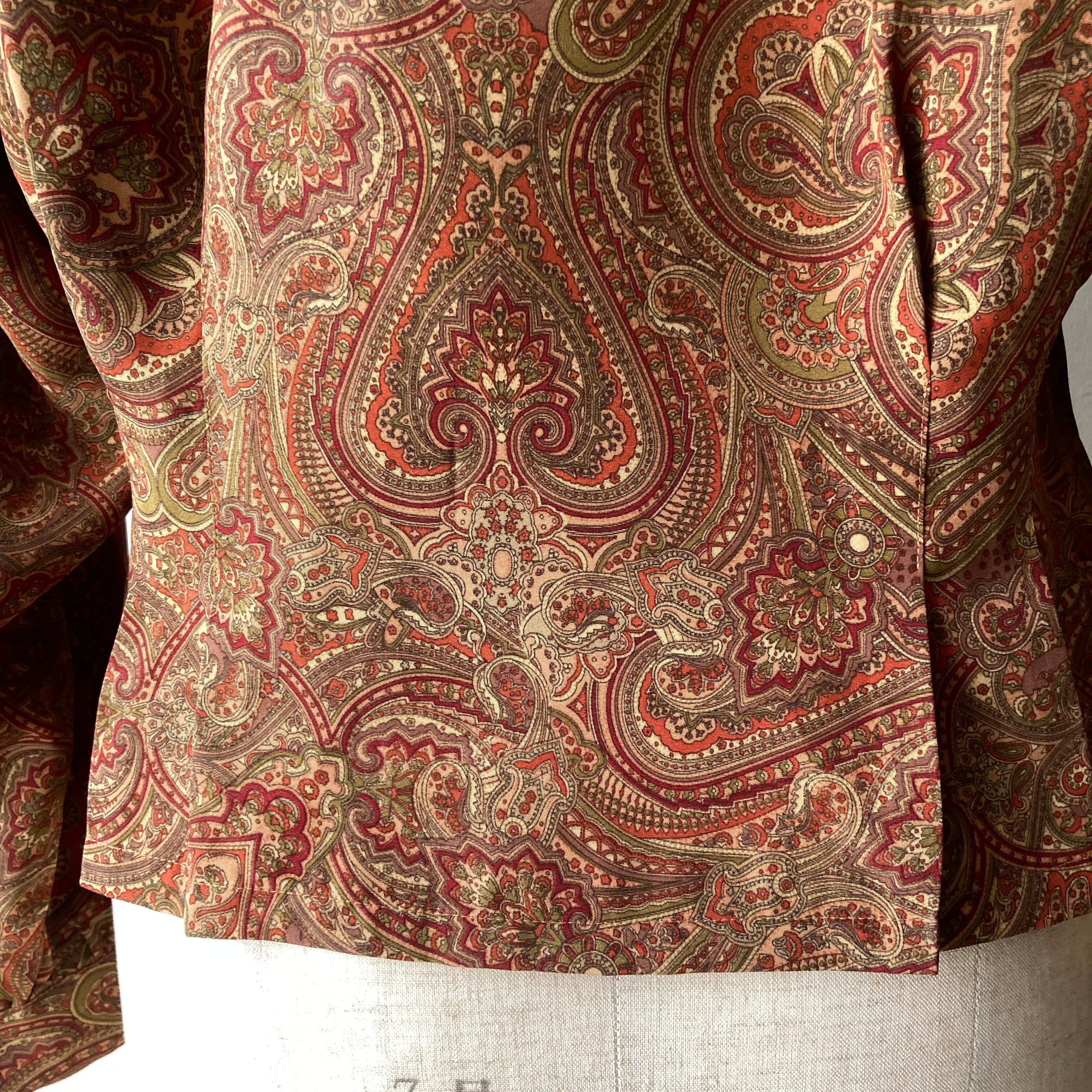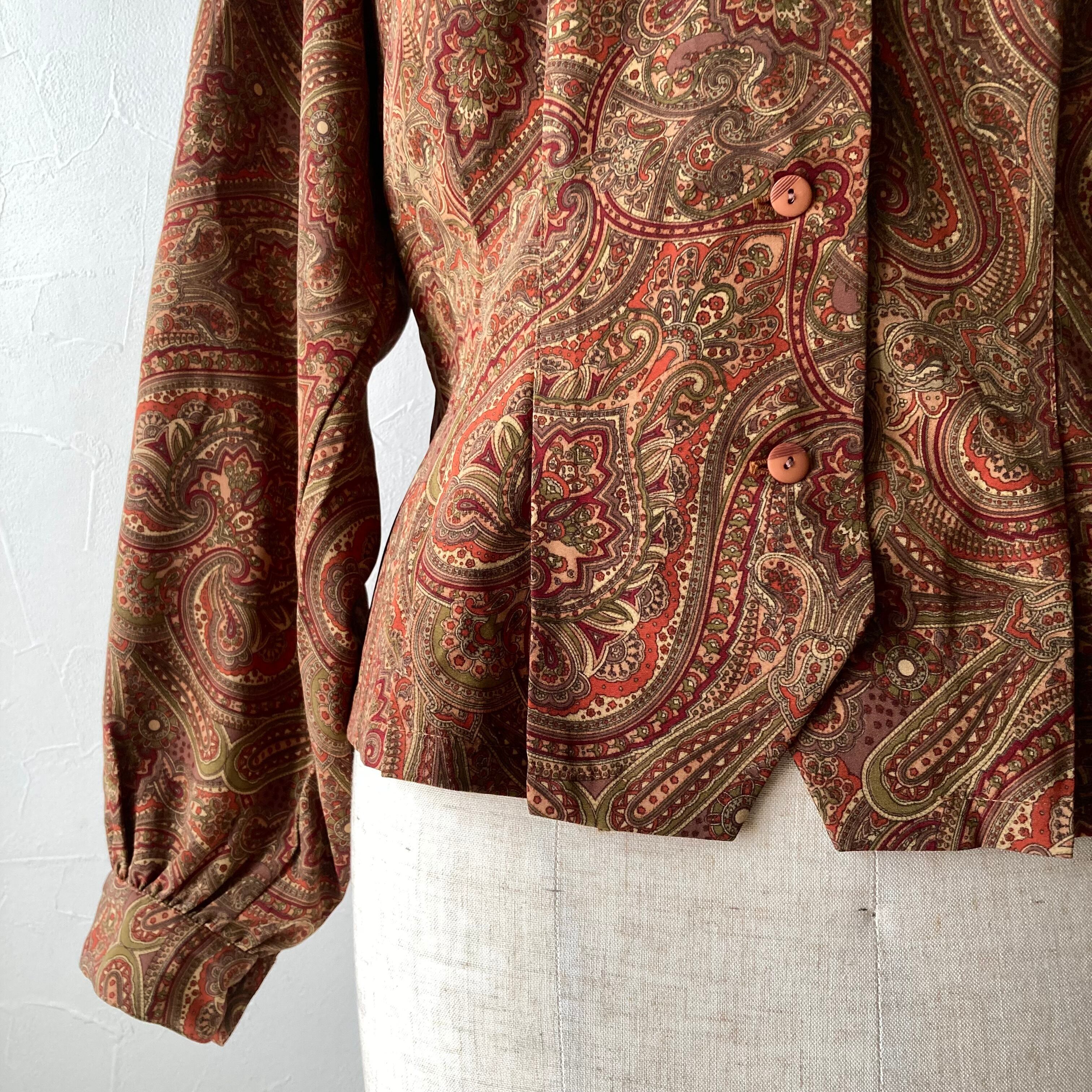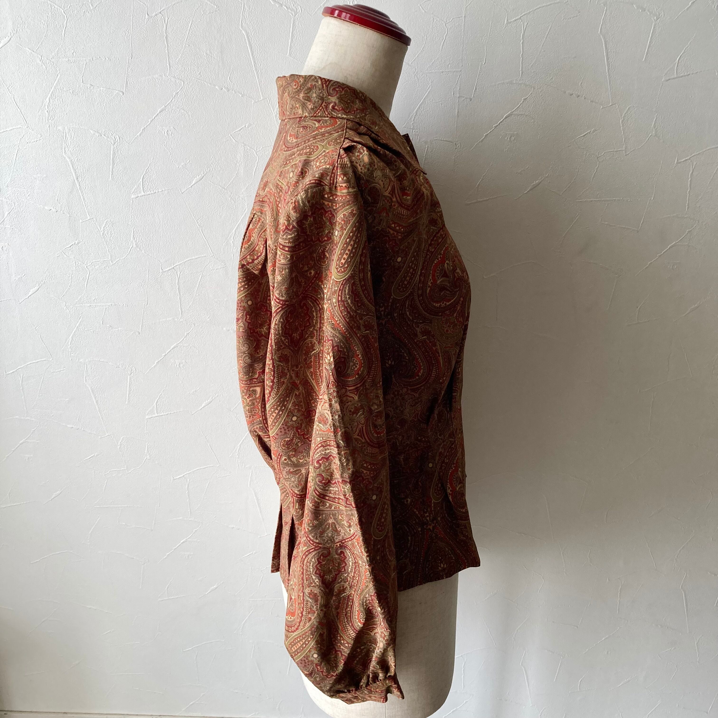 古着らしいレトロな柄と色合いの上品なブラウスです。