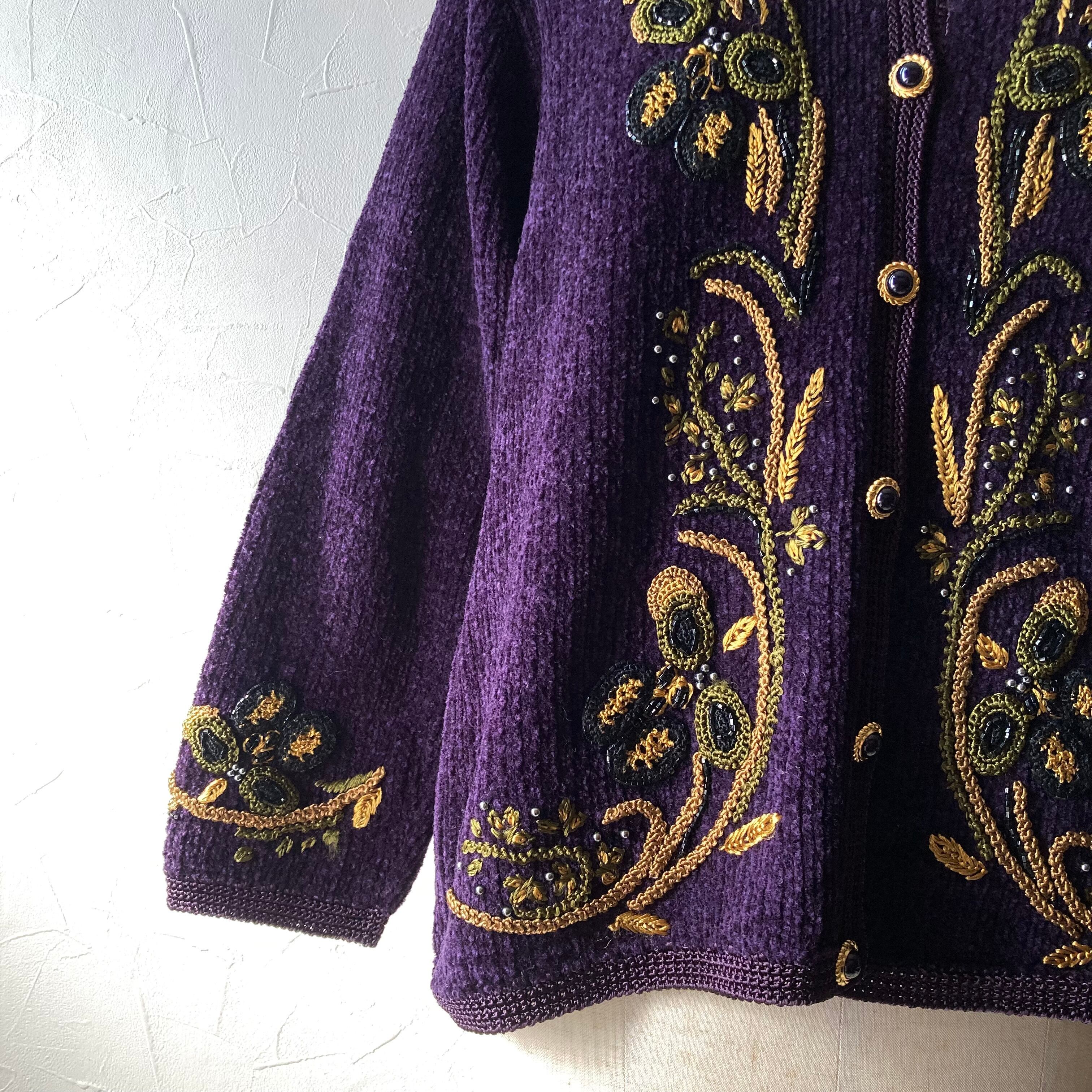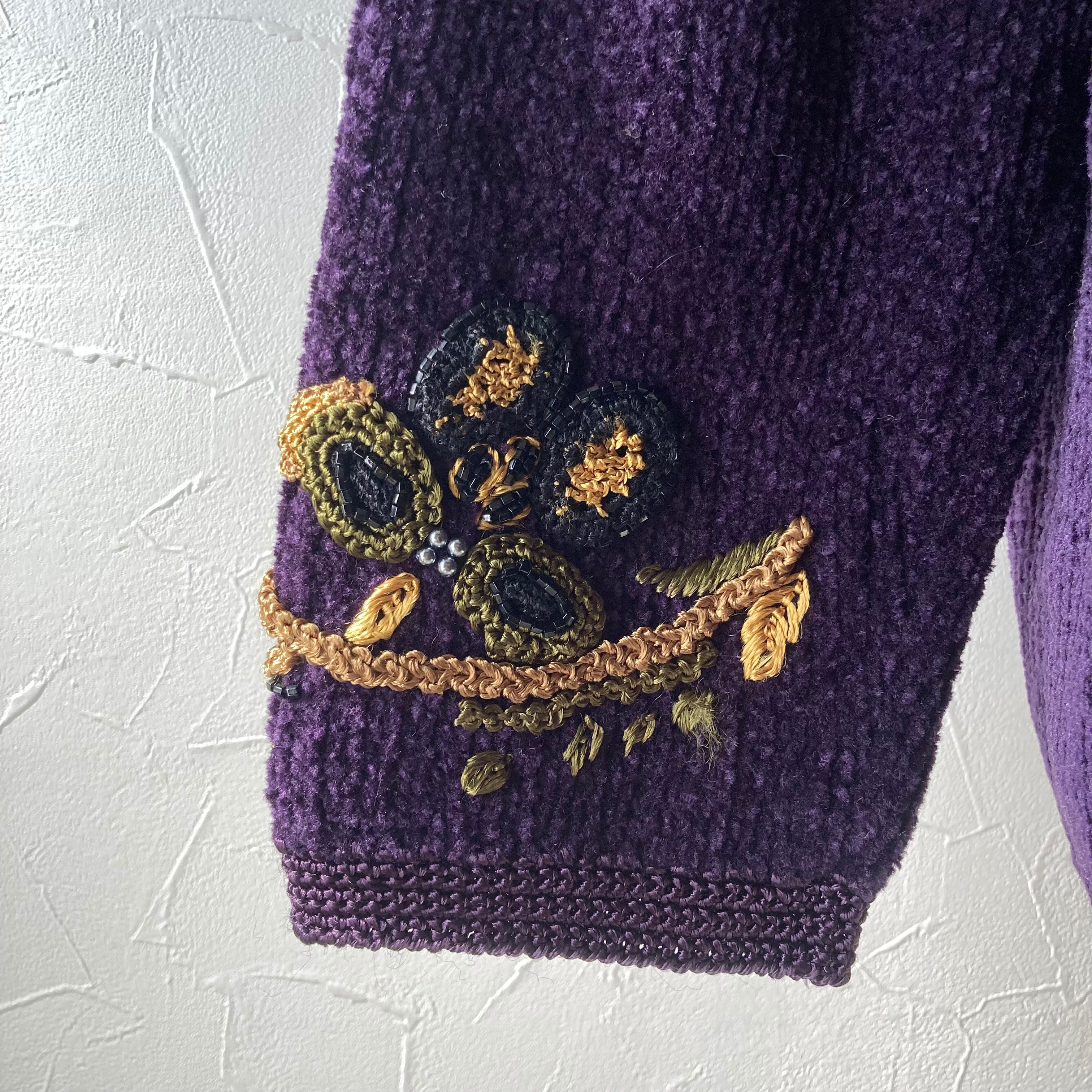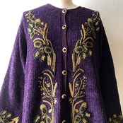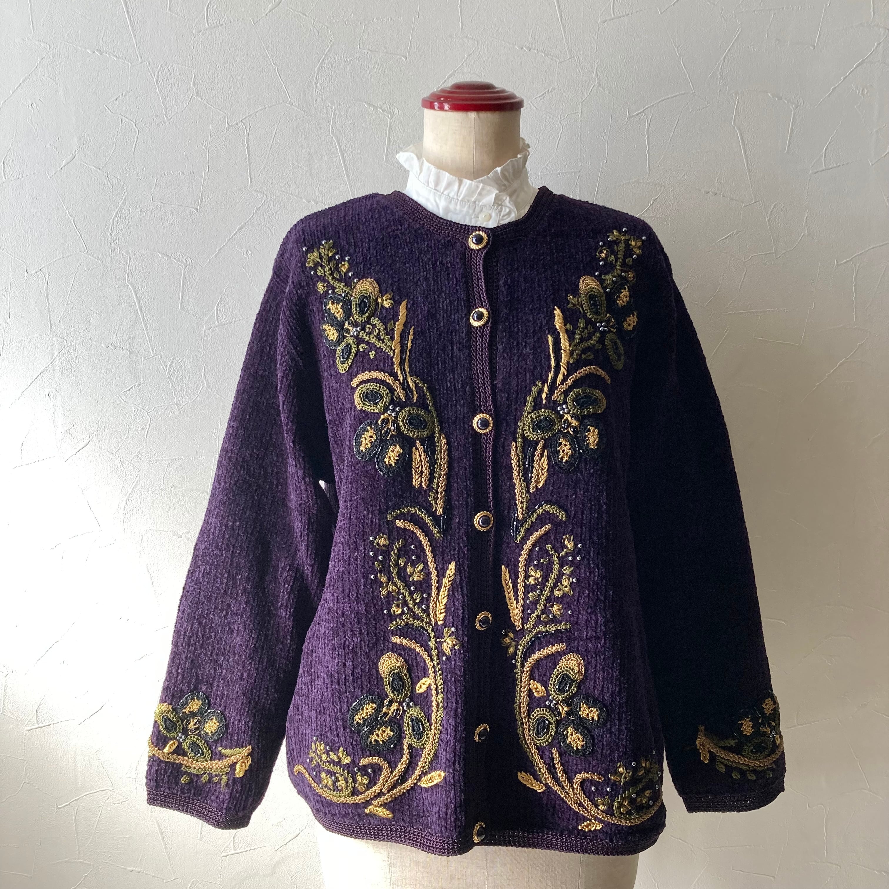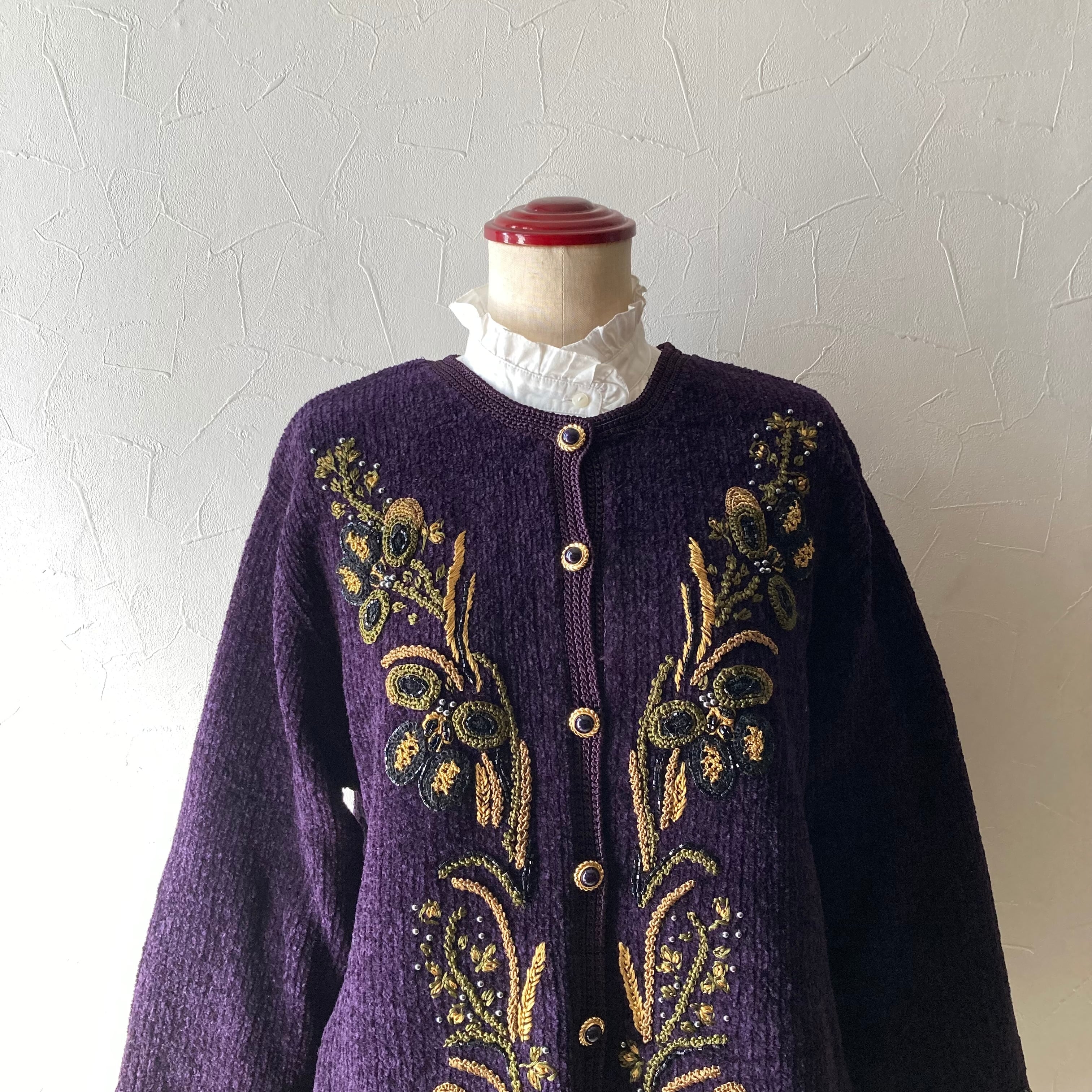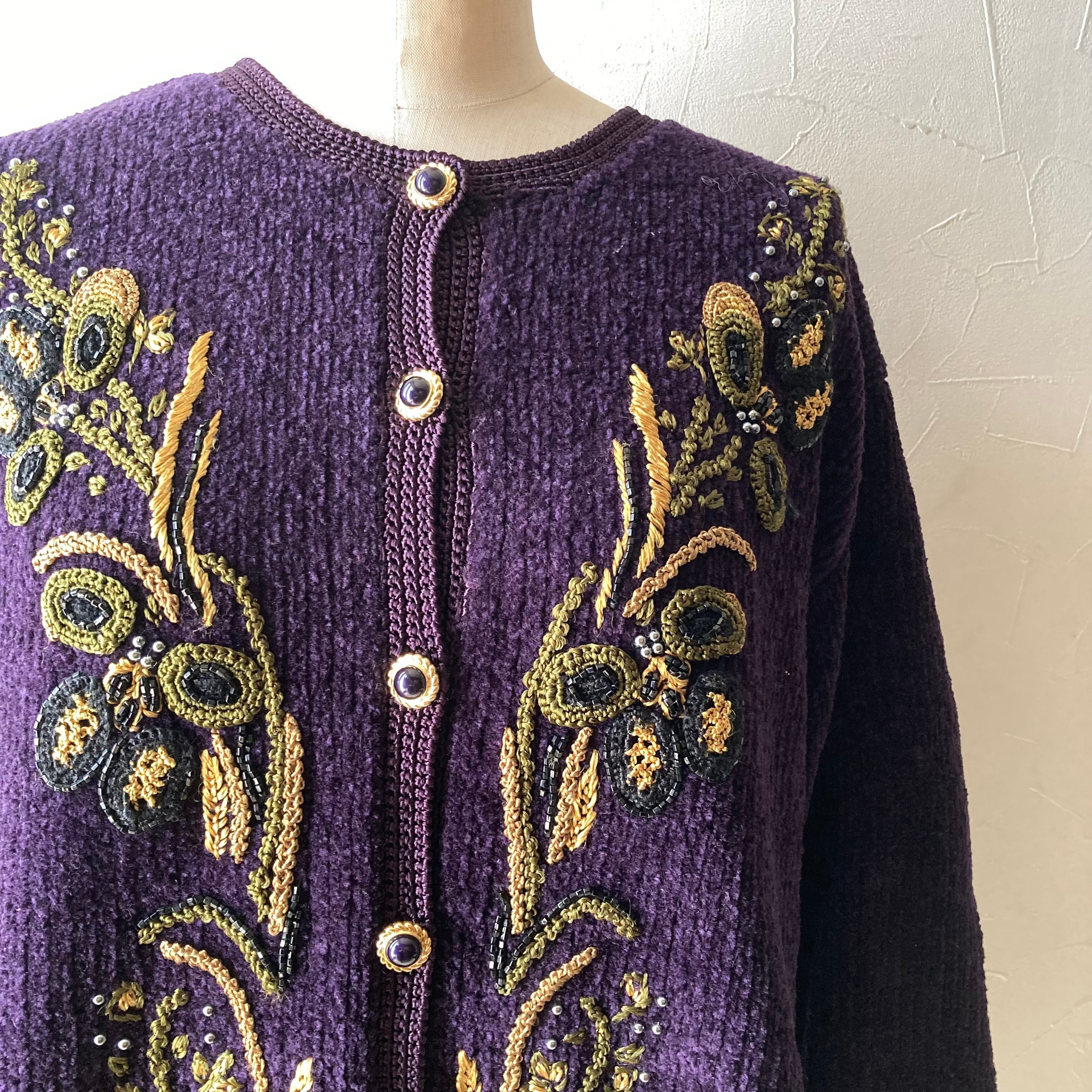 パープルビーズ刺繍カーディガン 古着 used vintage レトロ