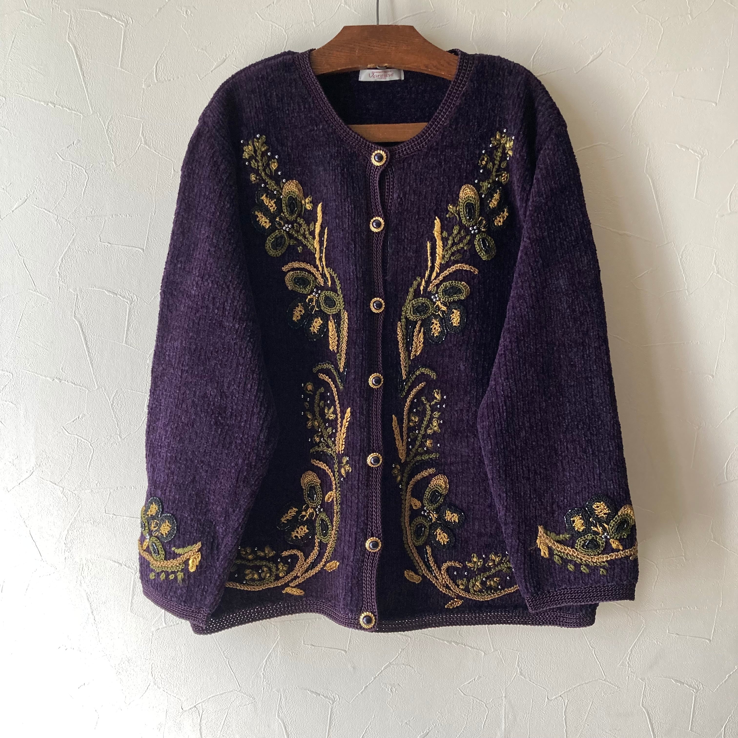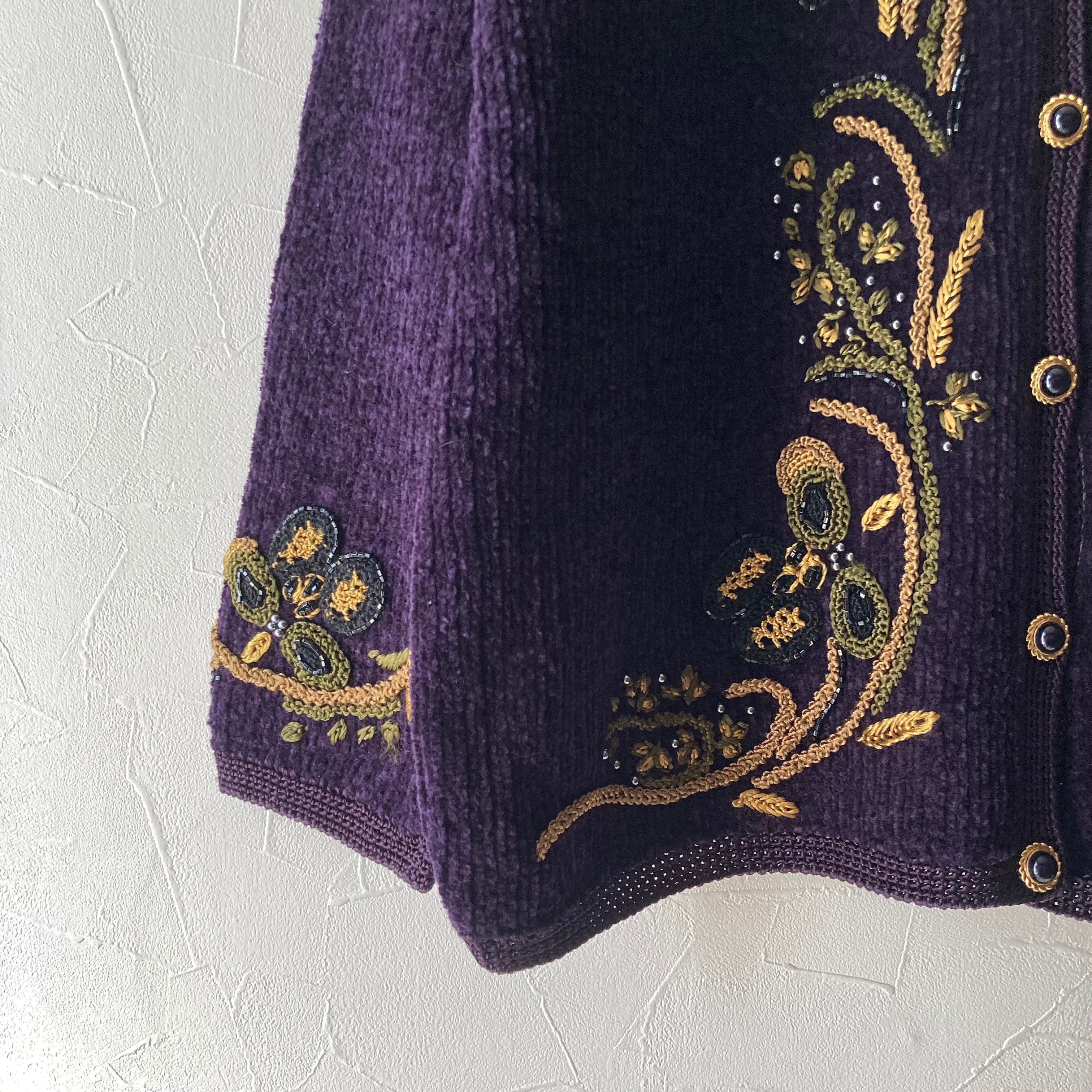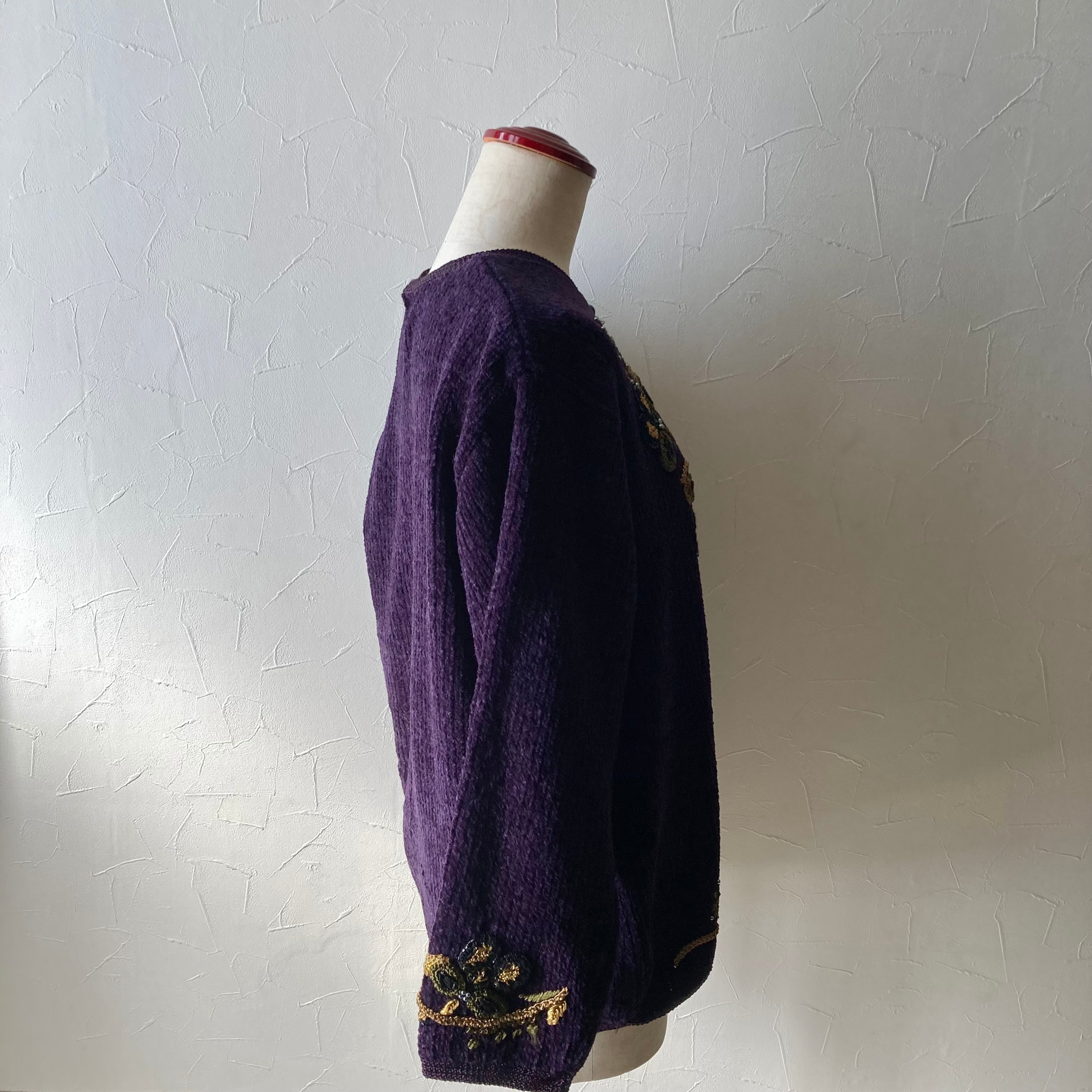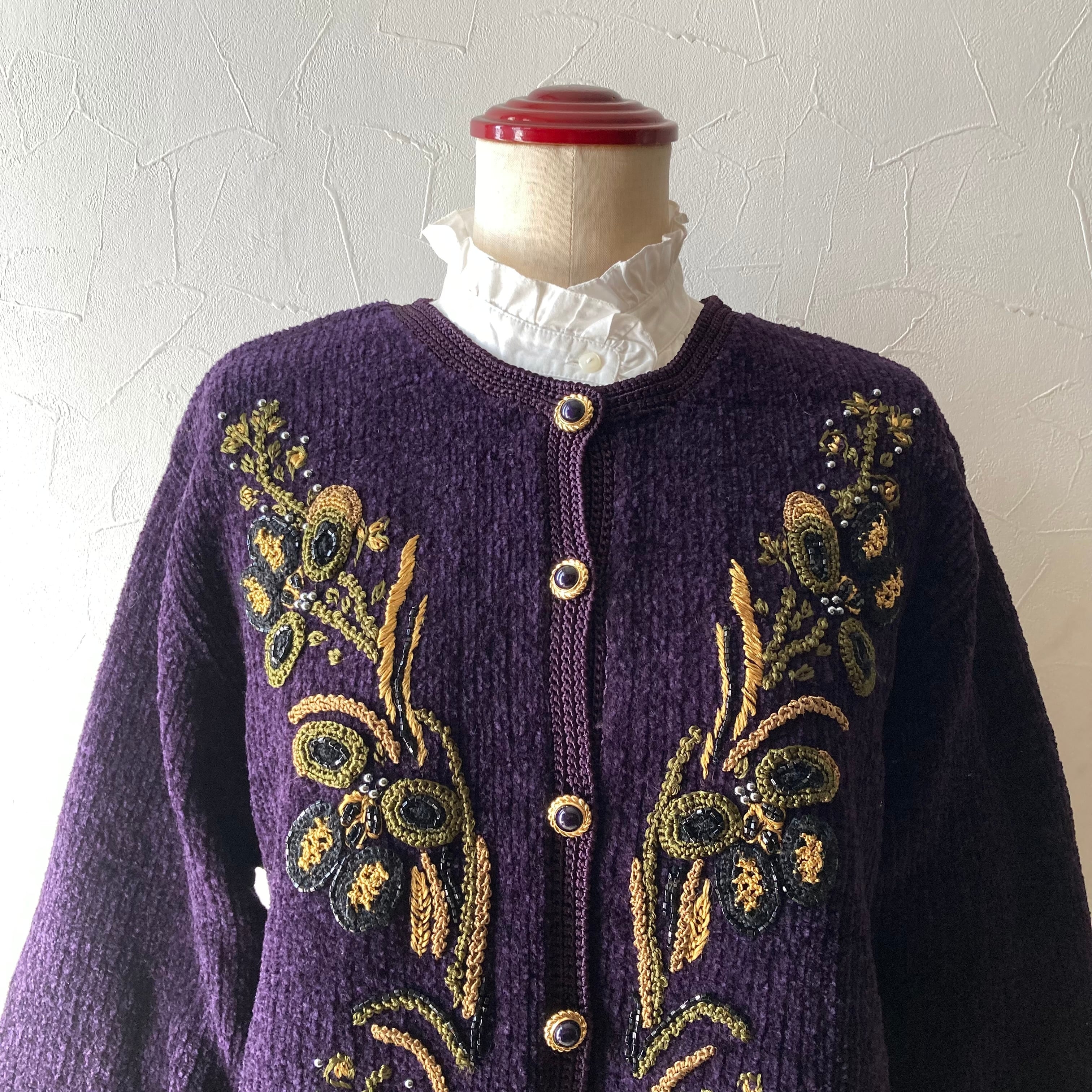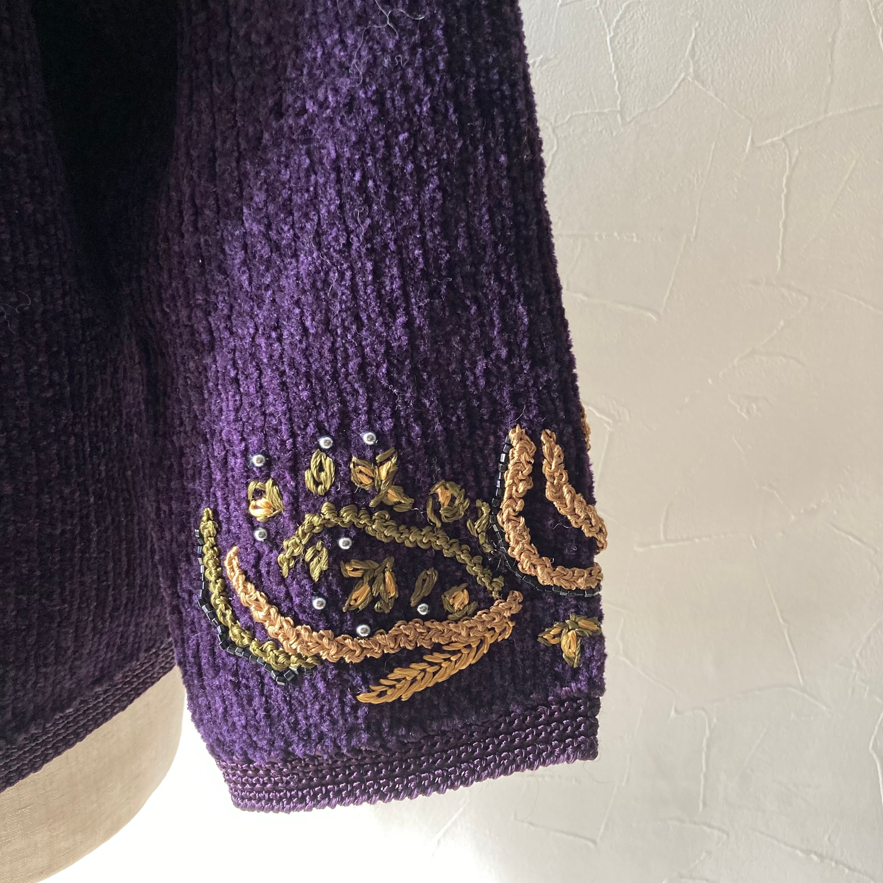 パープルビーズ刺繍カーディガン 古着 used vintage レトロ