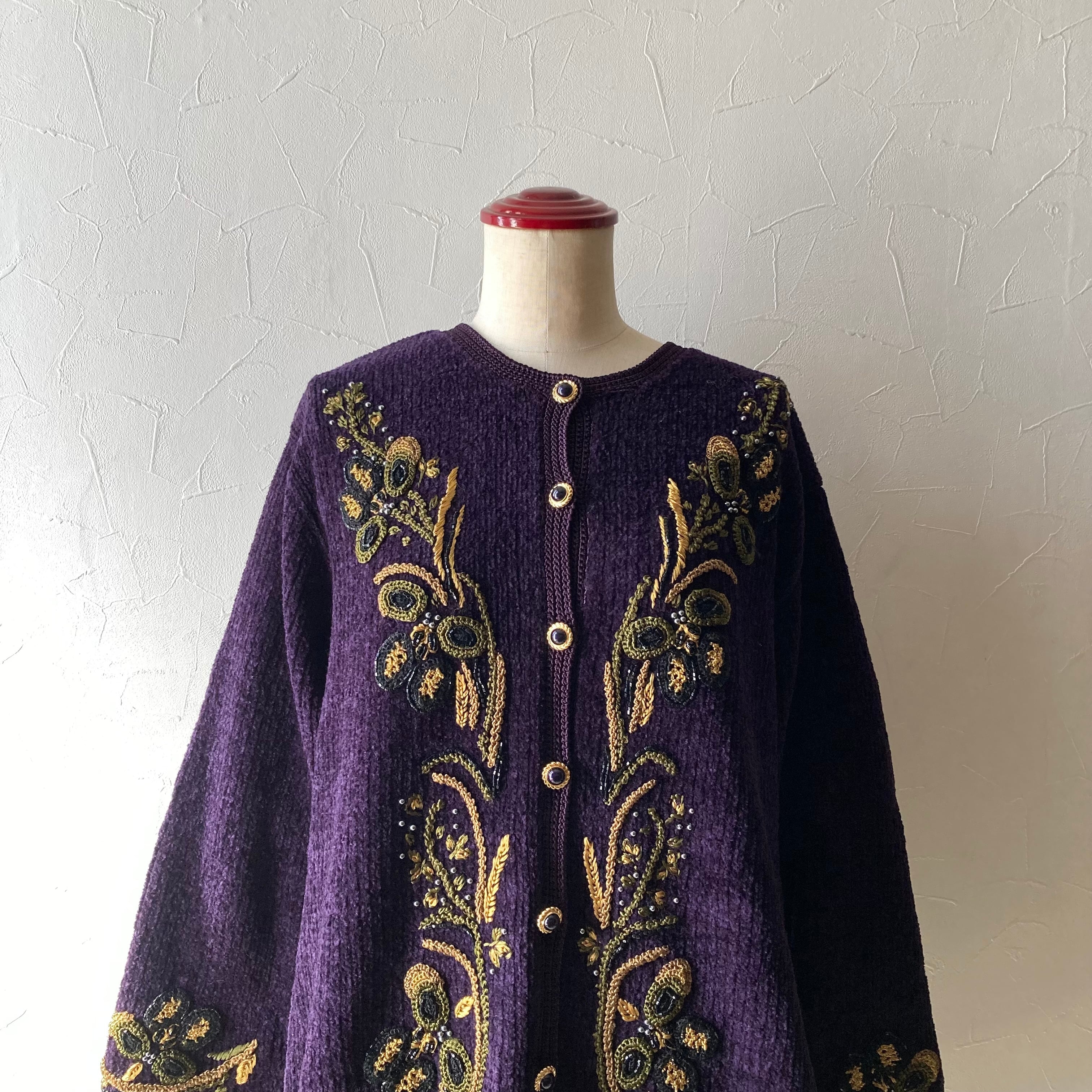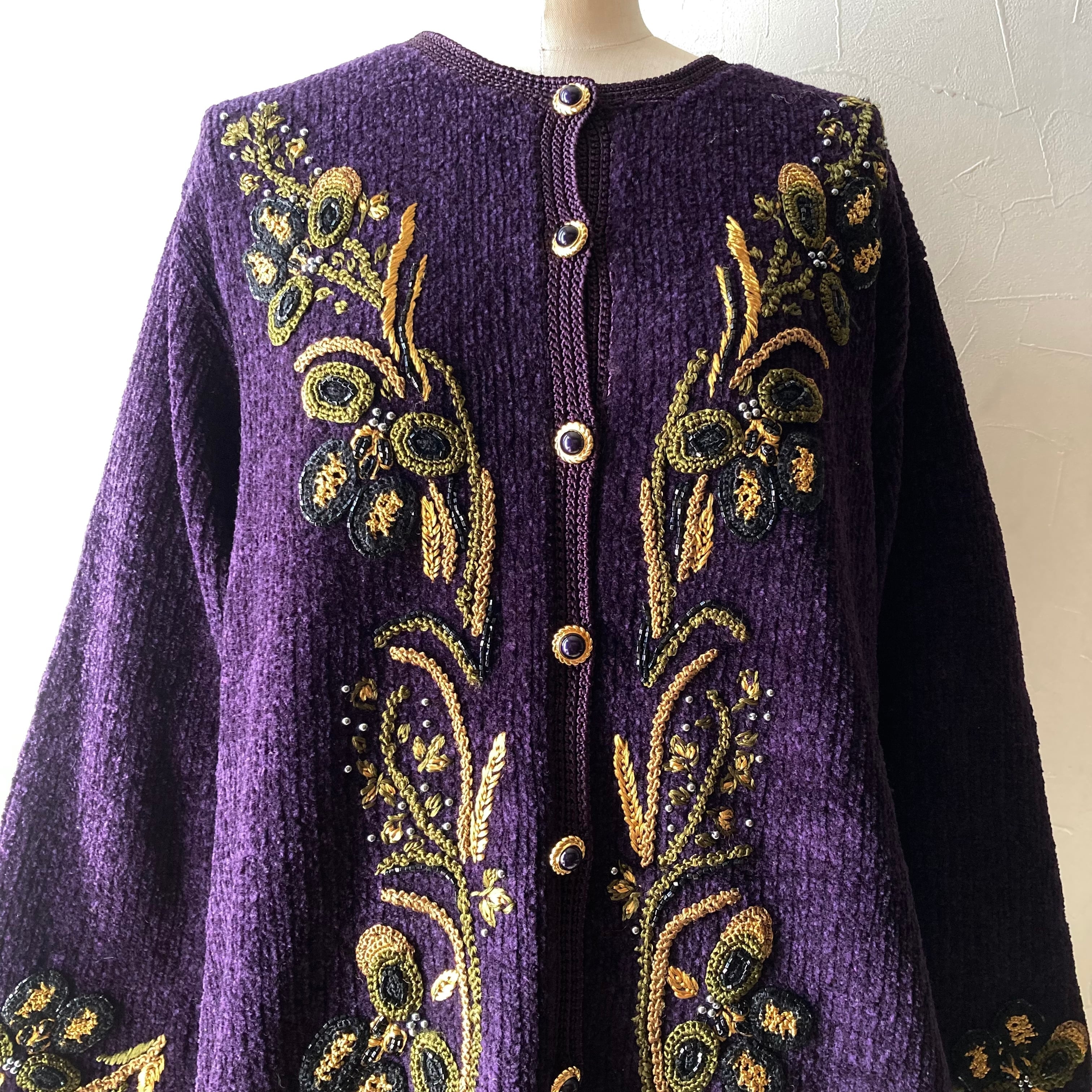魅力的な深いパープルにビーズ刺繍が美しいカーディガンです。