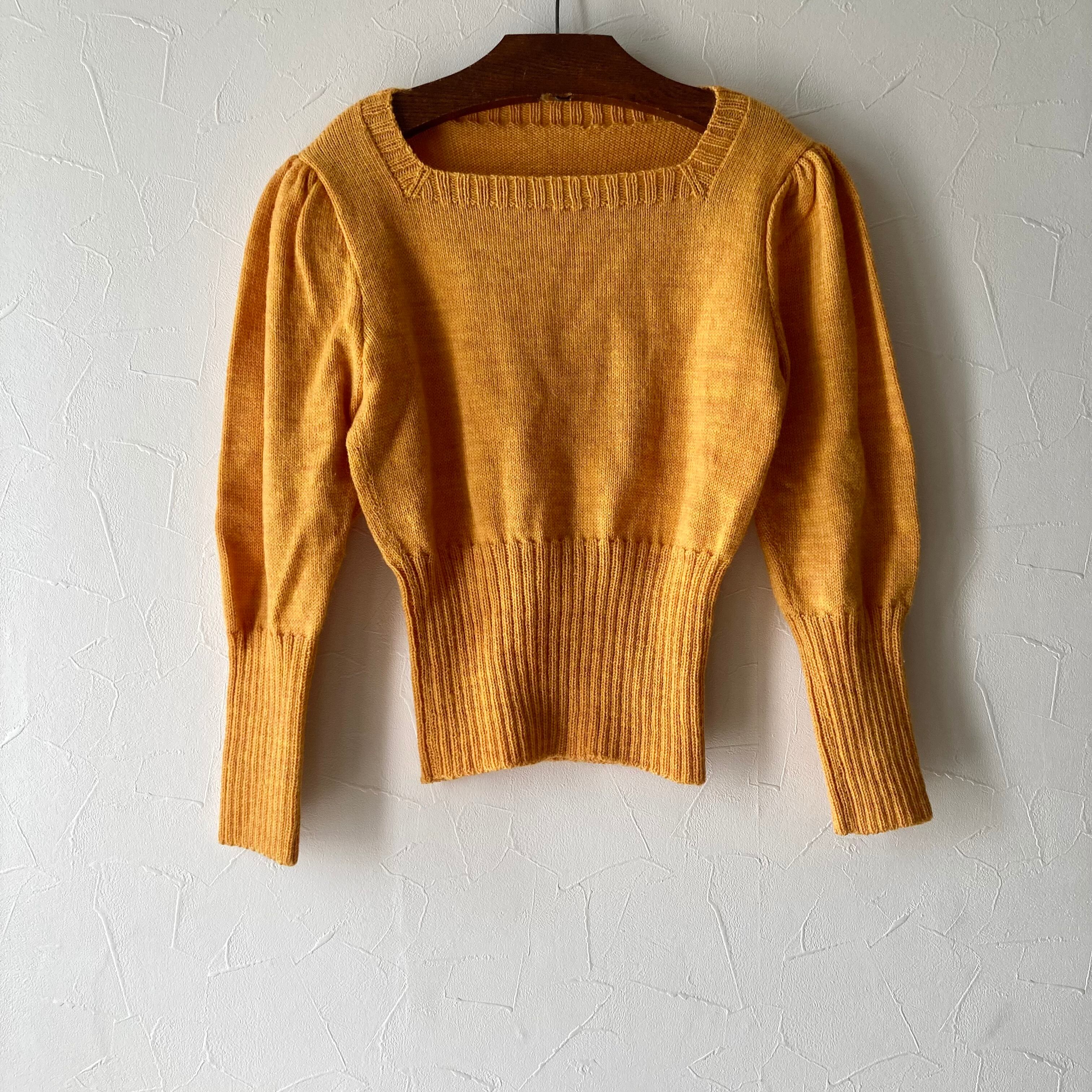 オレンジレトロパフスリーブニットトップス 古着 used vintage レトロ
