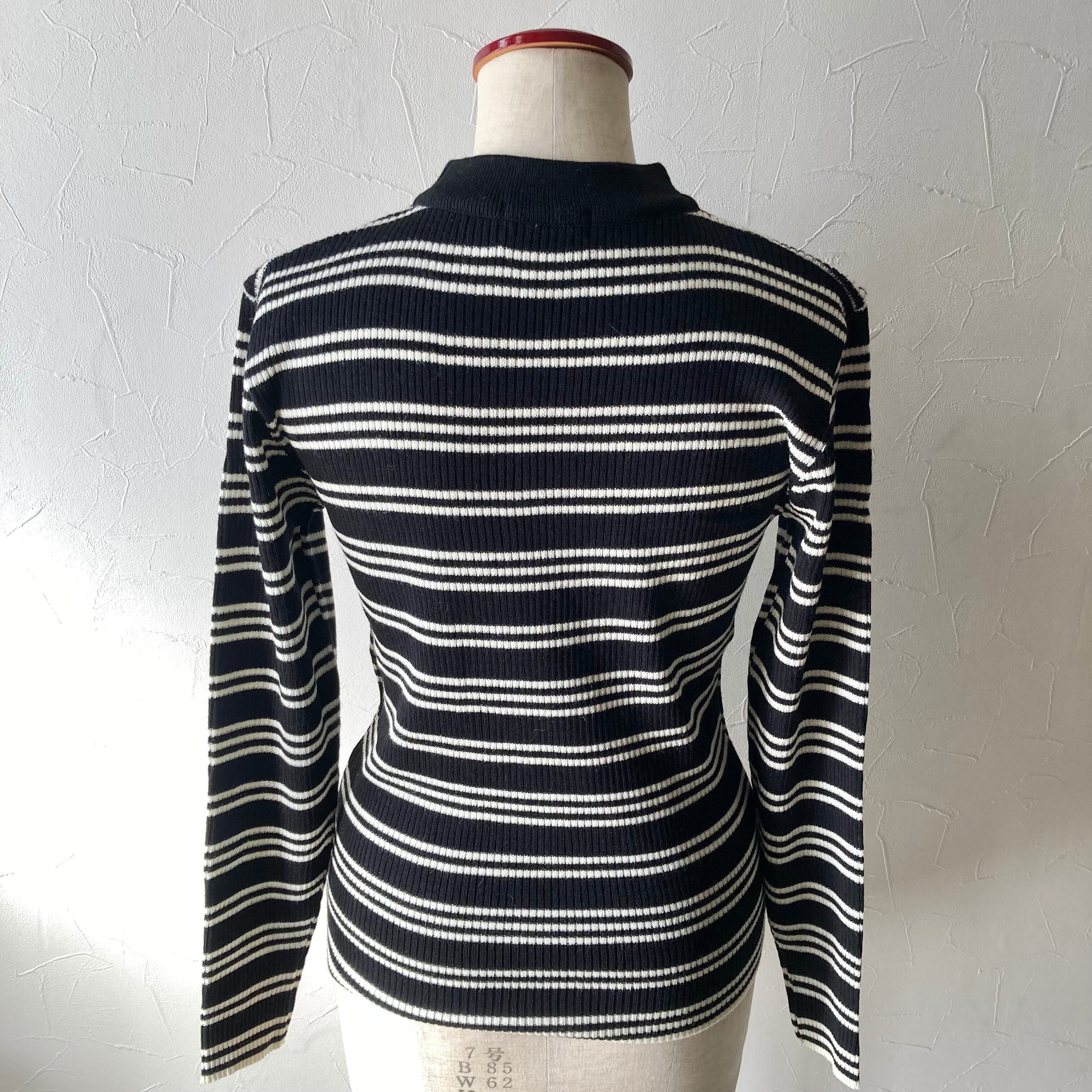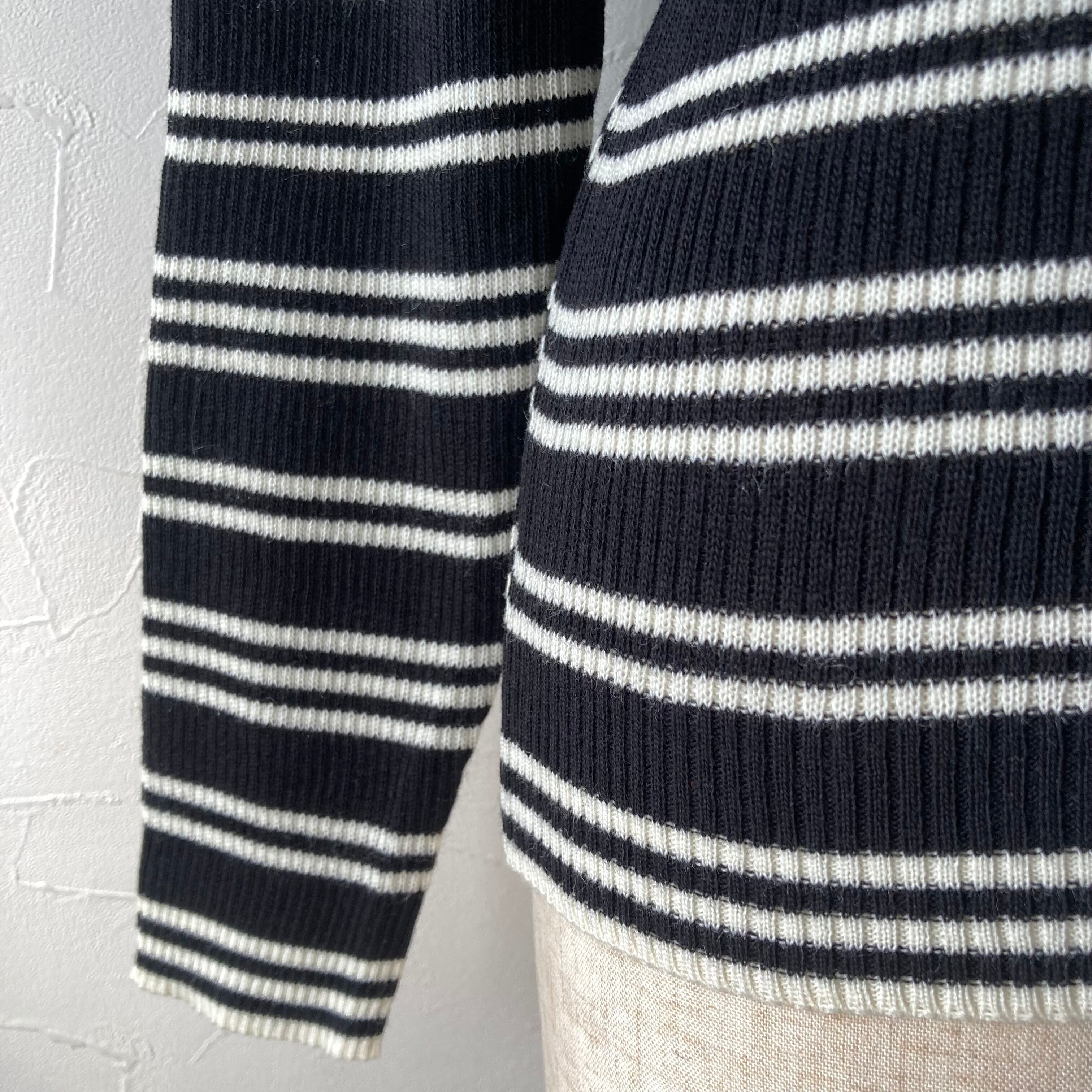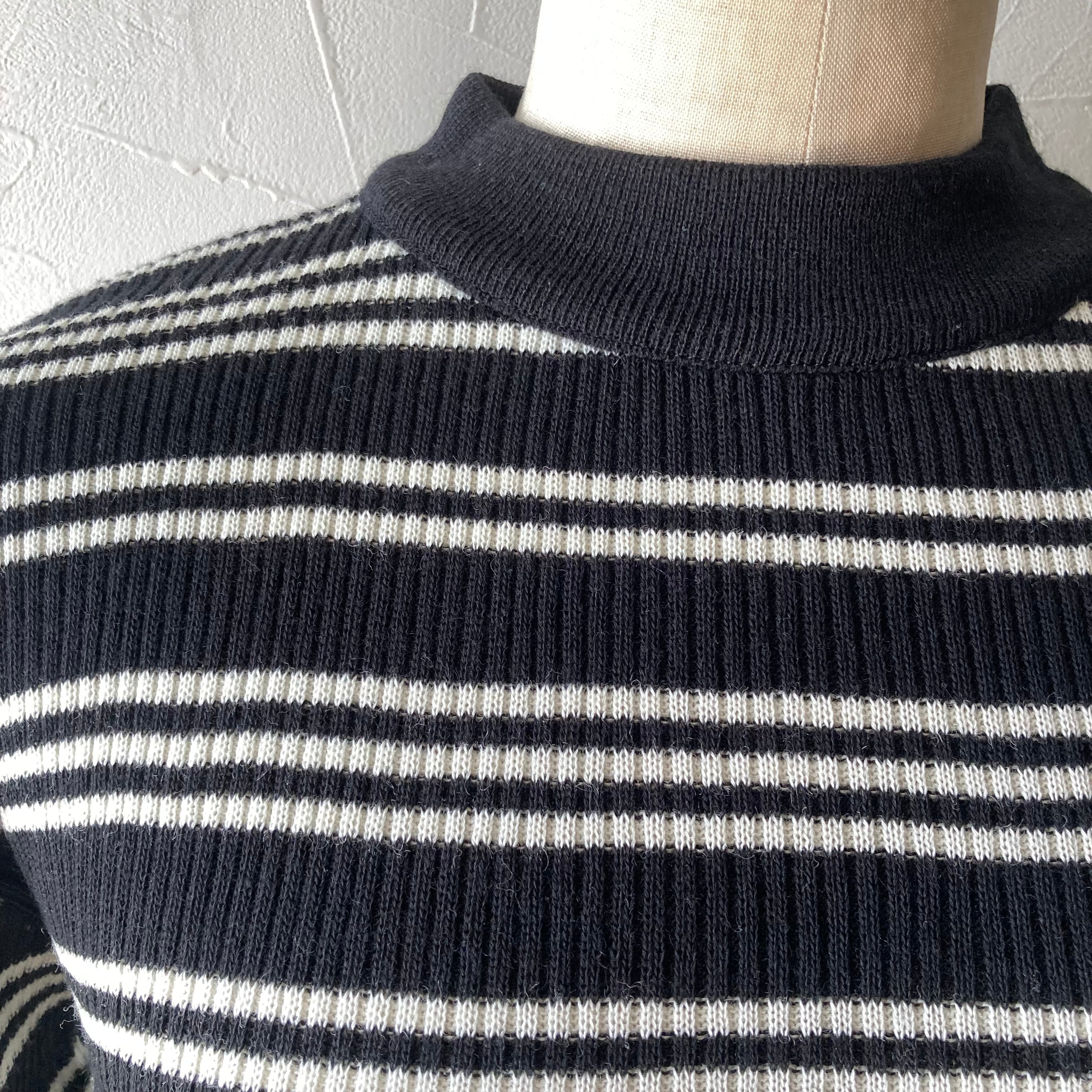 シンプルな黒白のボーダーのニットトップス◯ しっかりとした素材とハイネックで暖かです。