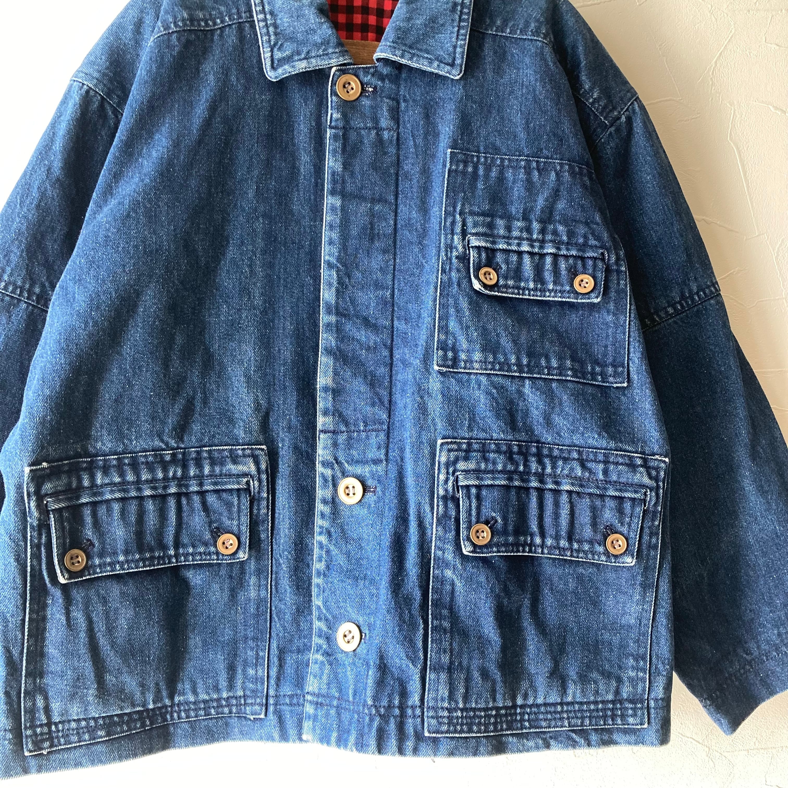 メンズですが女性もオーバーサイズで可愛く着ていただけます。裏地は赤のギンガムチェックでデニムとの組み合わせがGOODです。