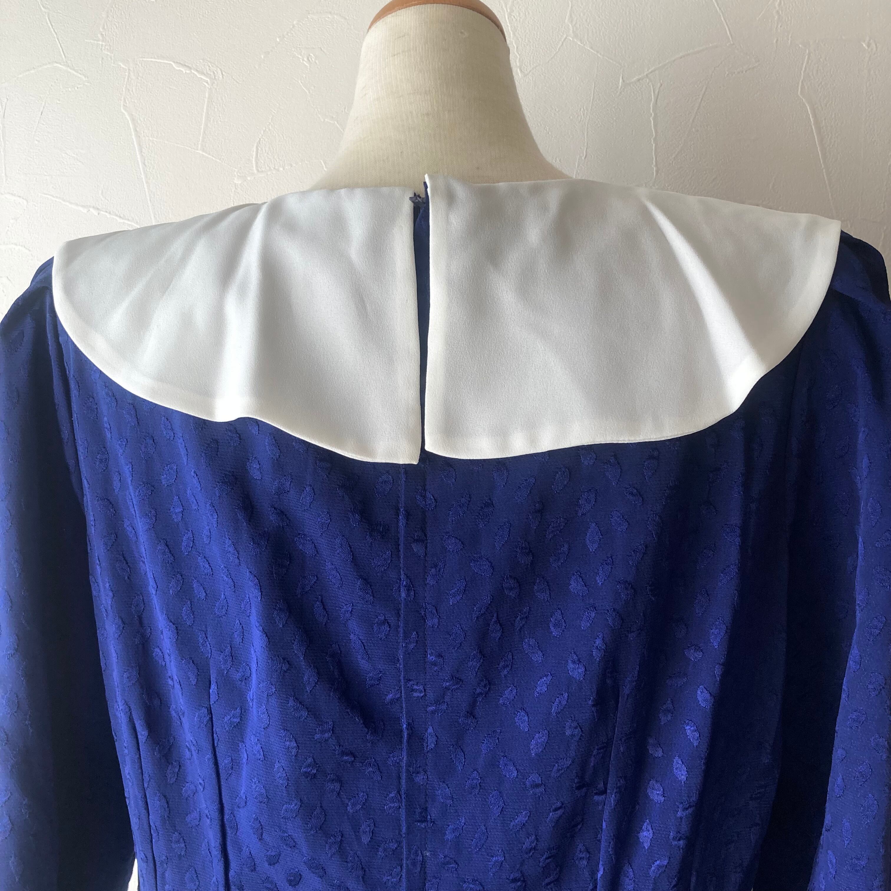 ホワイト襟ネイビーワンピース 古着 used vintage レトロ