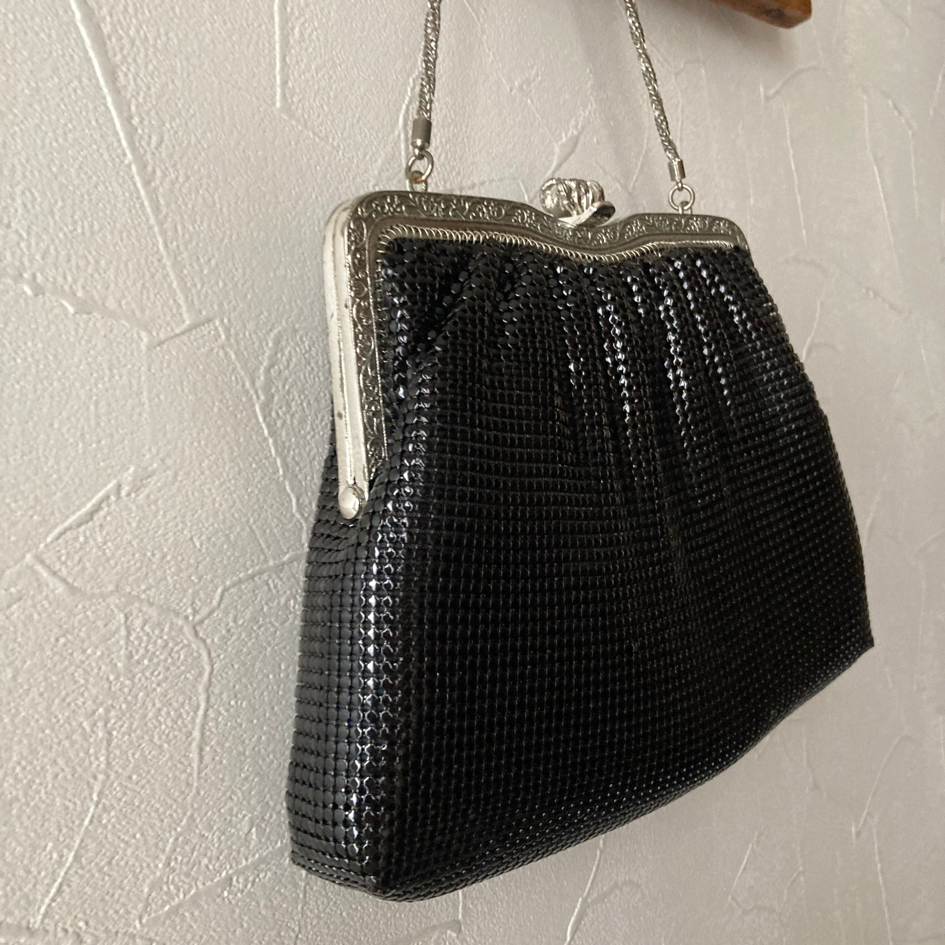 シルバーのがま口部分にはレトロで素敵な模様が入っています。お洒落なお出かけの日のお供にぴったりなバッグです。