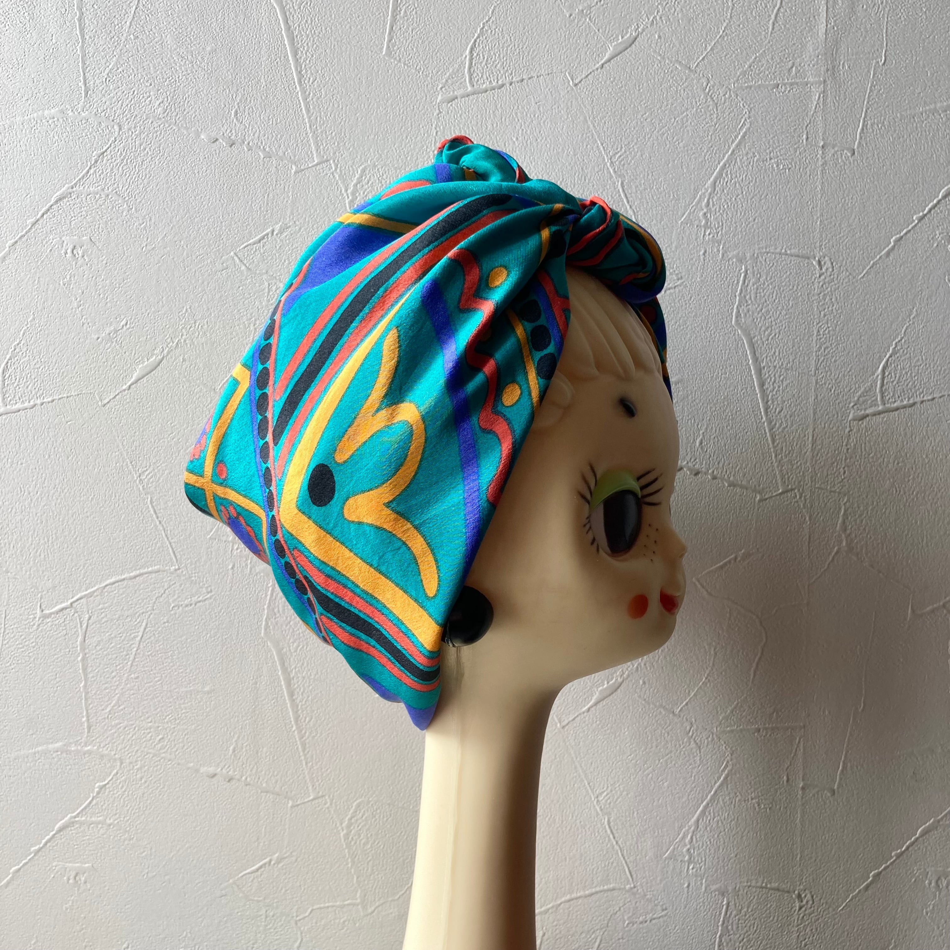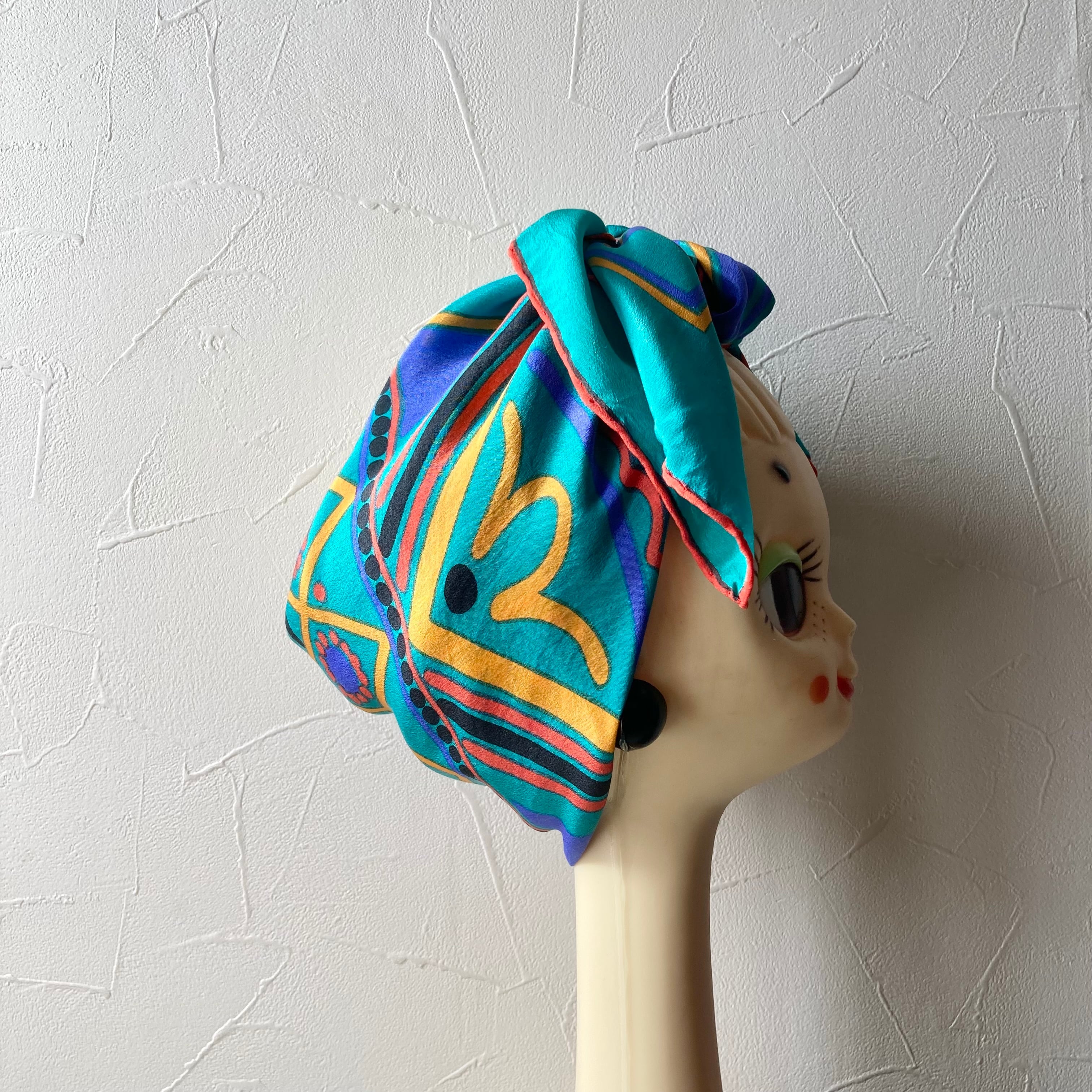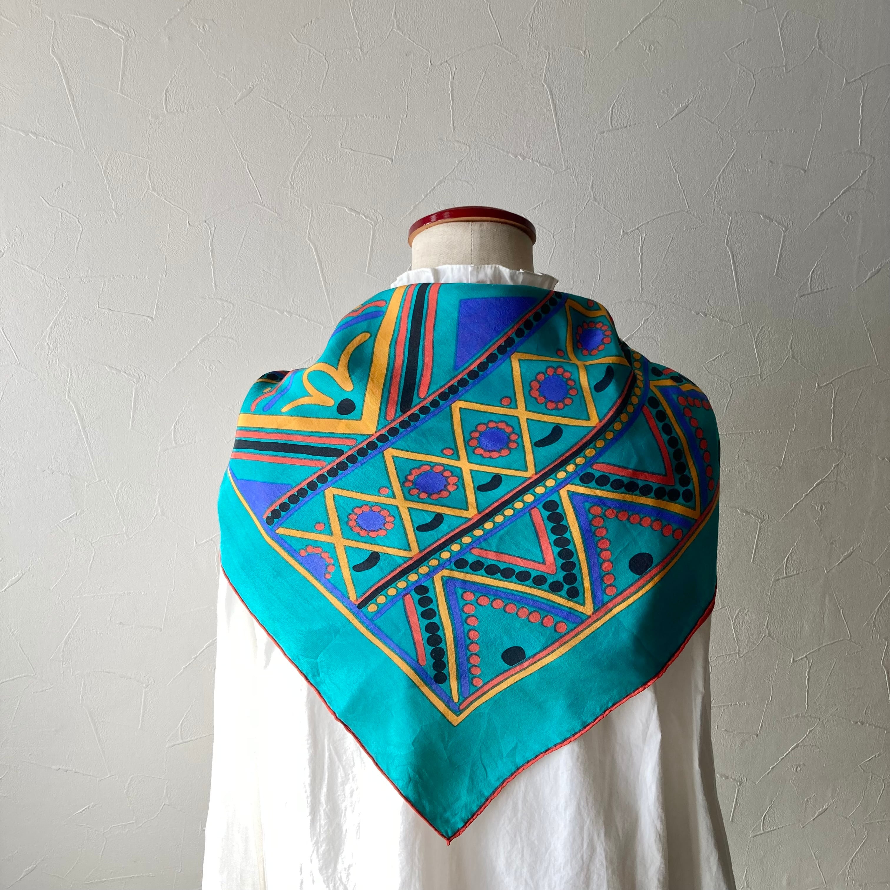 ポップな色合いのエスニックというかアフリカンのような素敵な柄のスカーフ◯