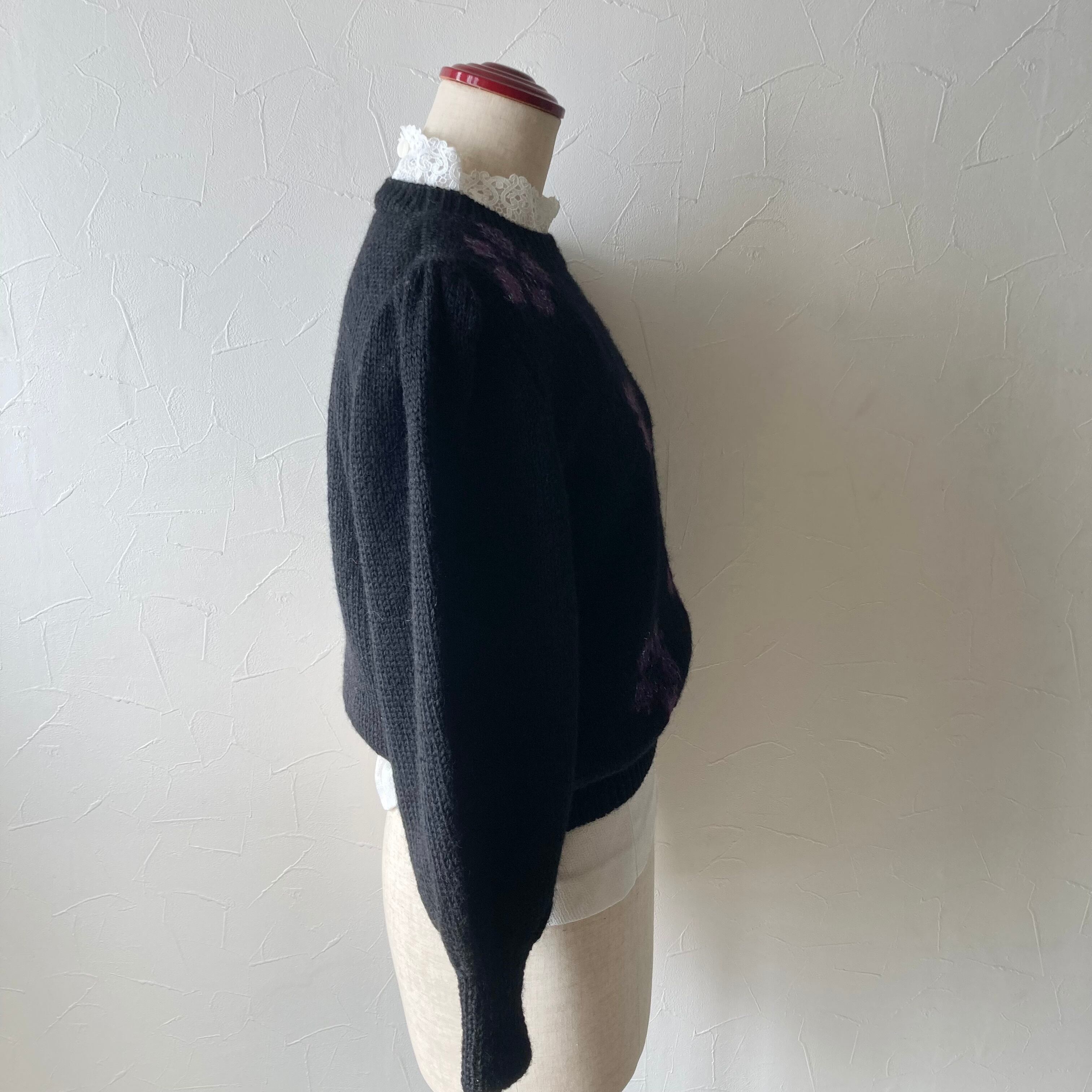 黒花柄パフスリーブニット 古着 used vintage レトロ