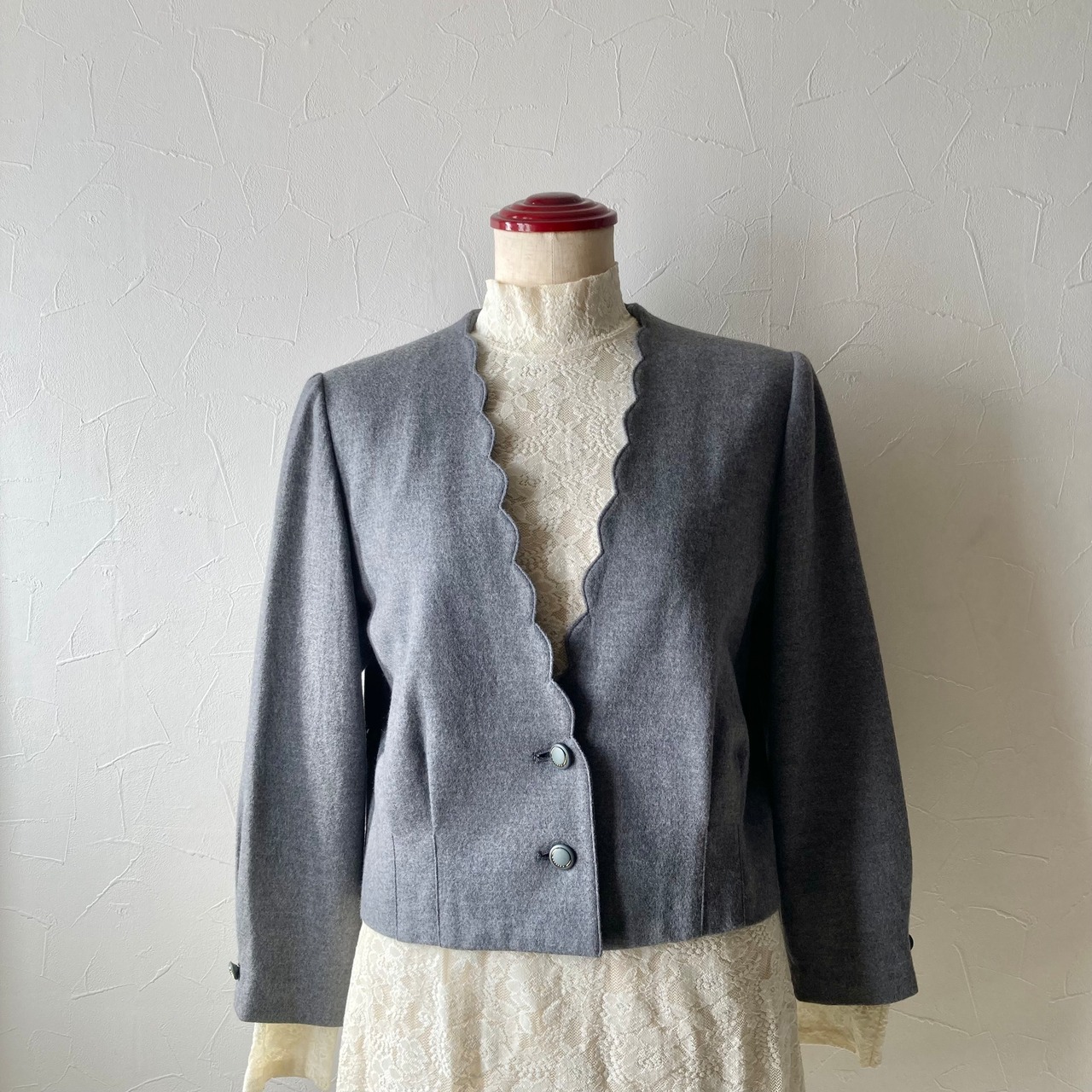 スカラップグレーショートジャケット 古着 used vintage レトロ