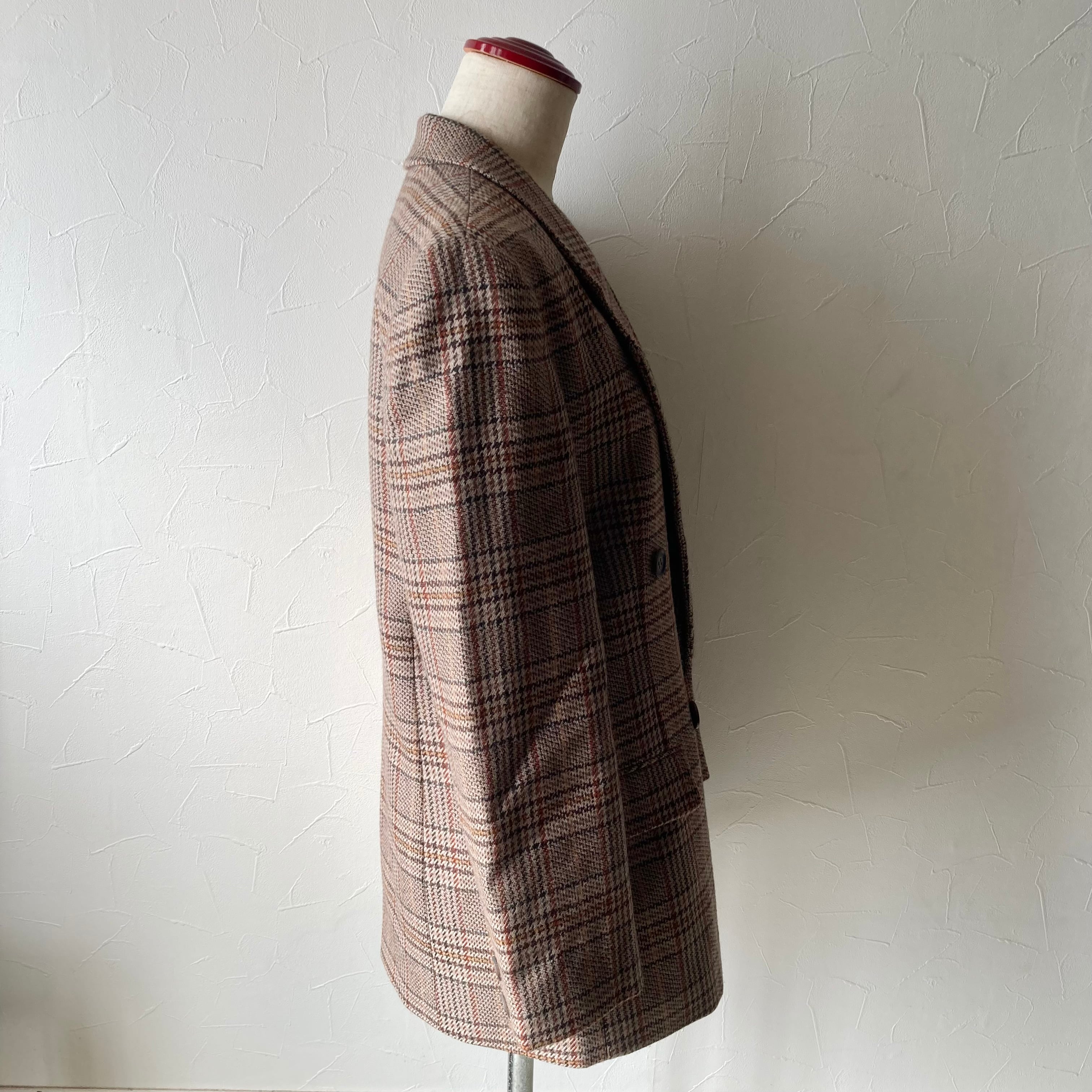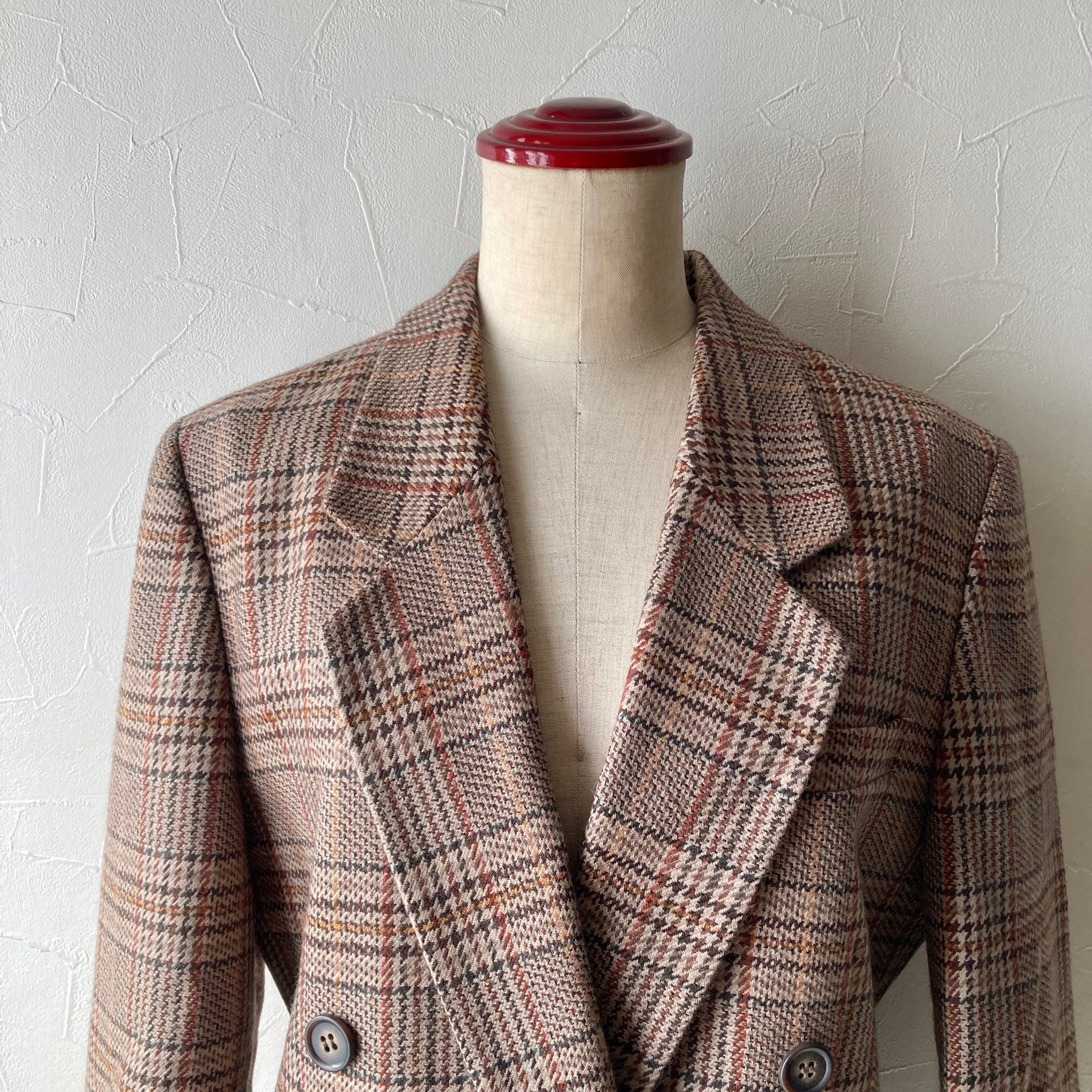 深いグリーンとイエローとオレンジのような赤茶の色合いのグレンチェックが可愛げがあって素敵なジャケット◯