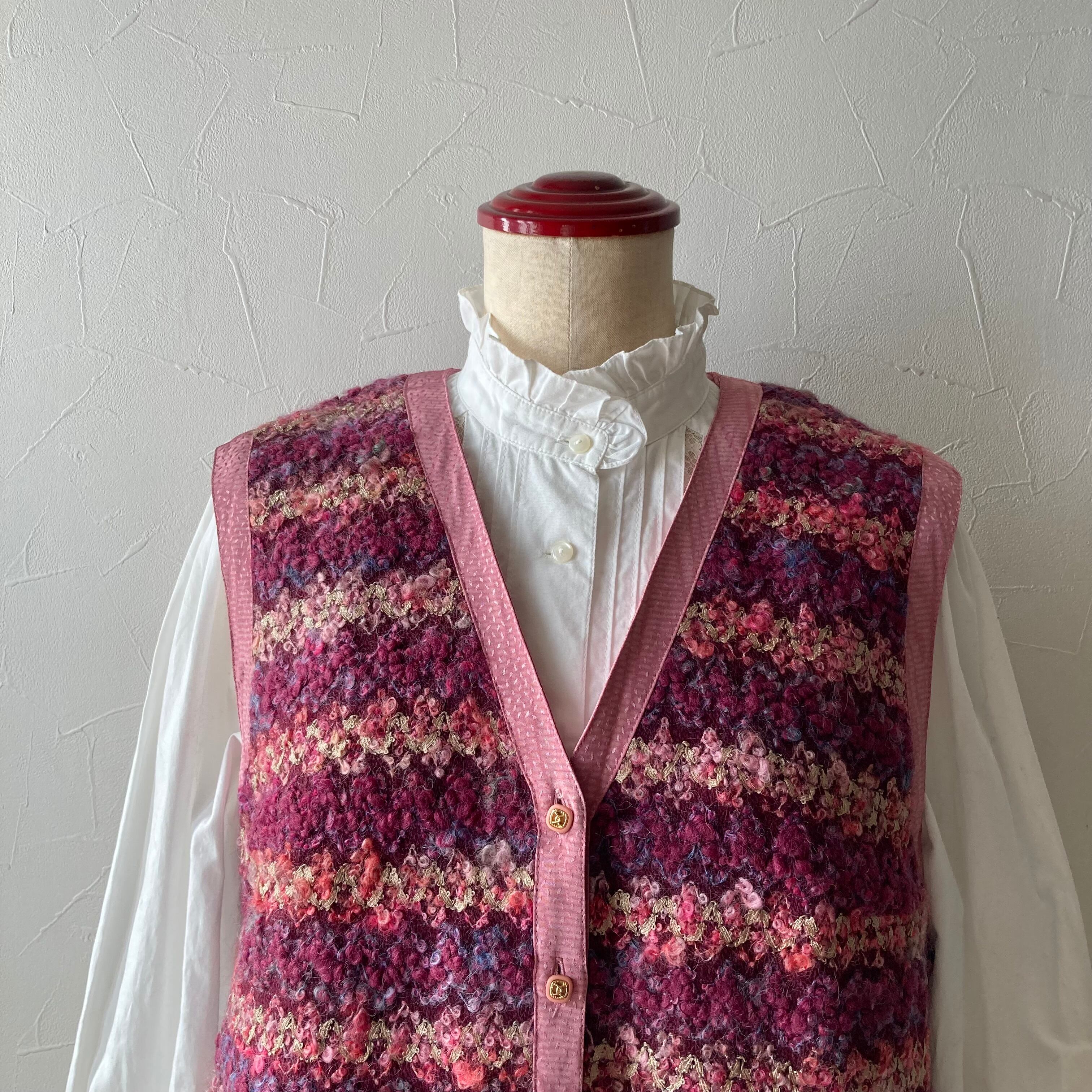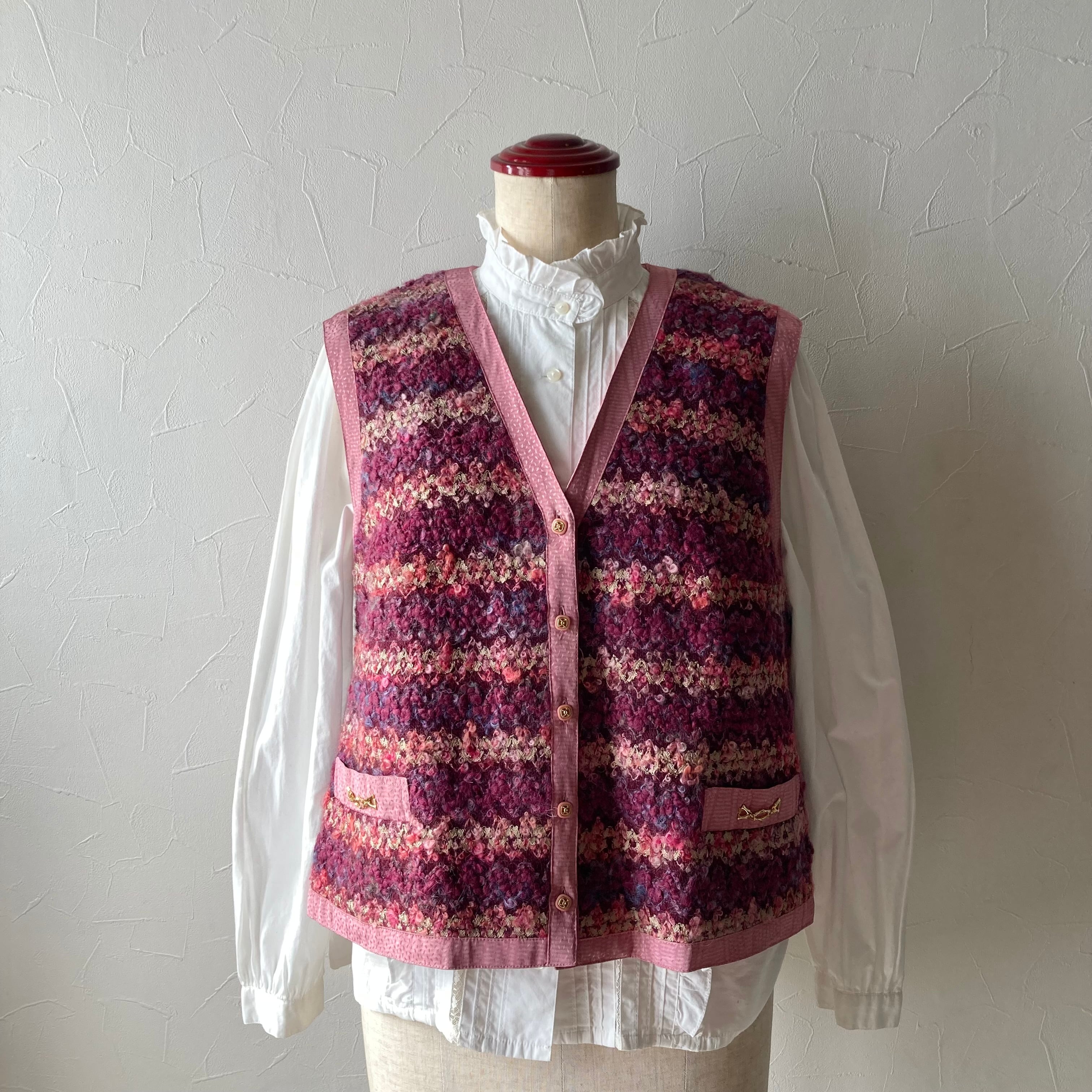 可愛い色合いのレナウン製ニット刺繍ベスト◯ レトロな小さなボタンも可愛いです。ポケットは飾りです。