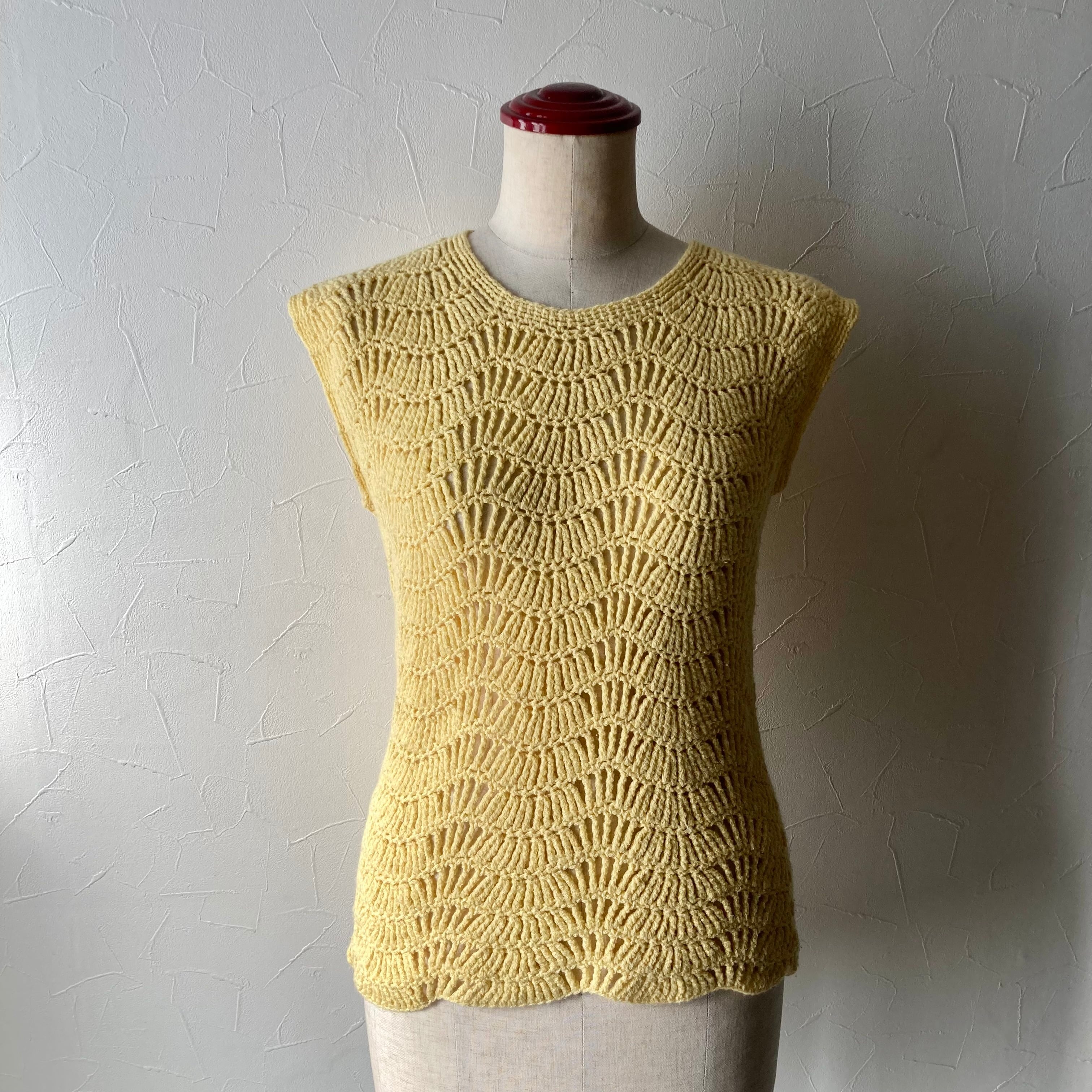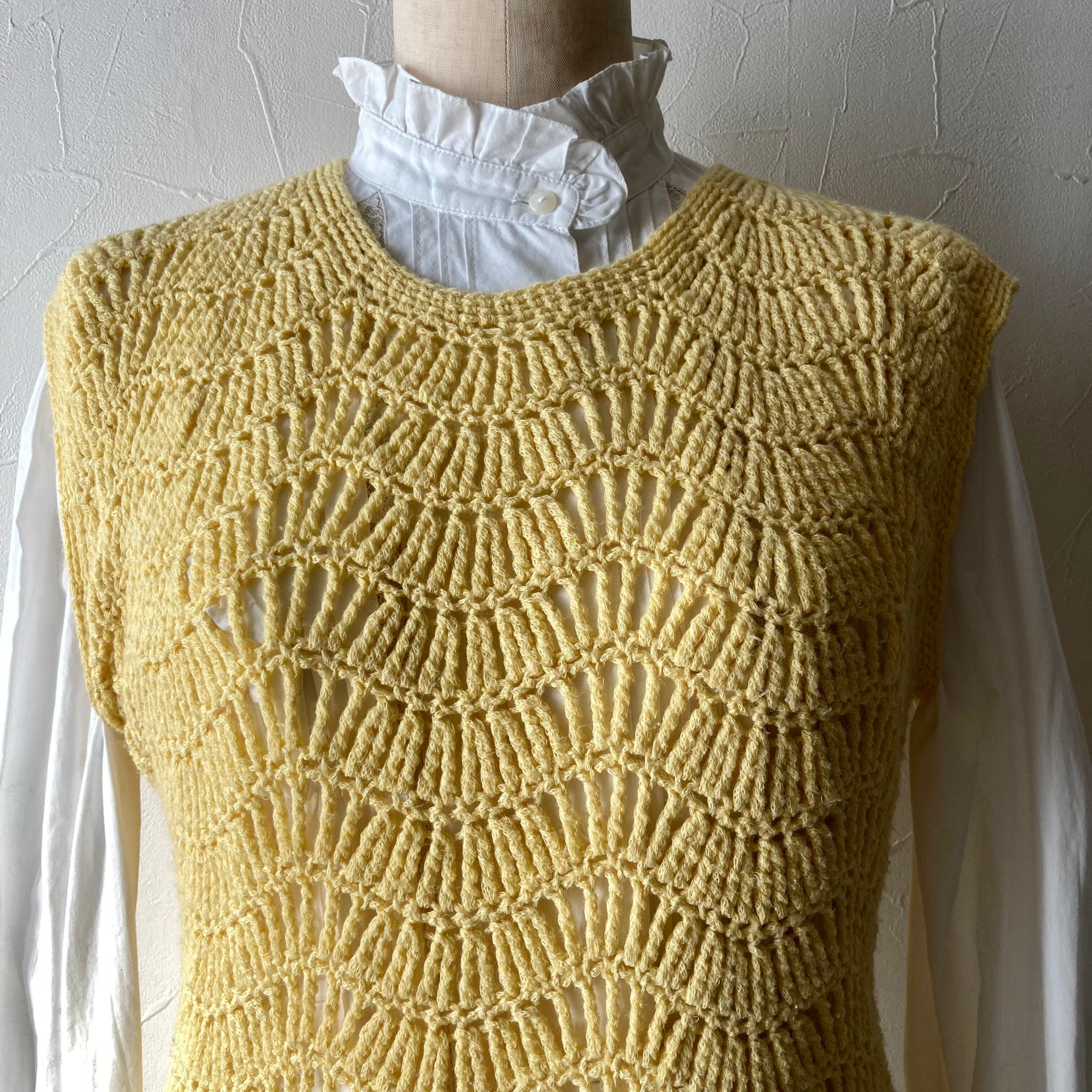 イエローニットベスト 古着 used vintage レトロ