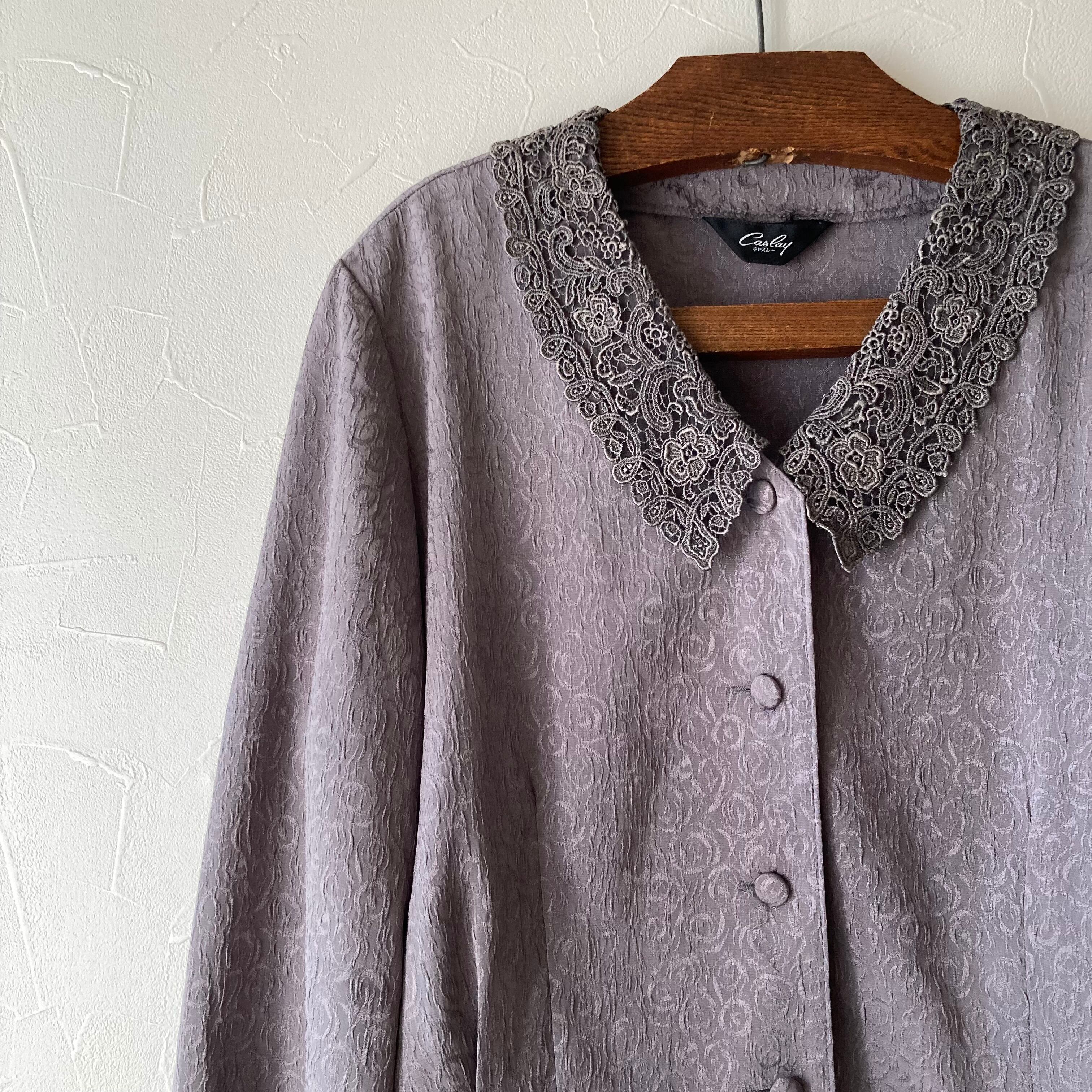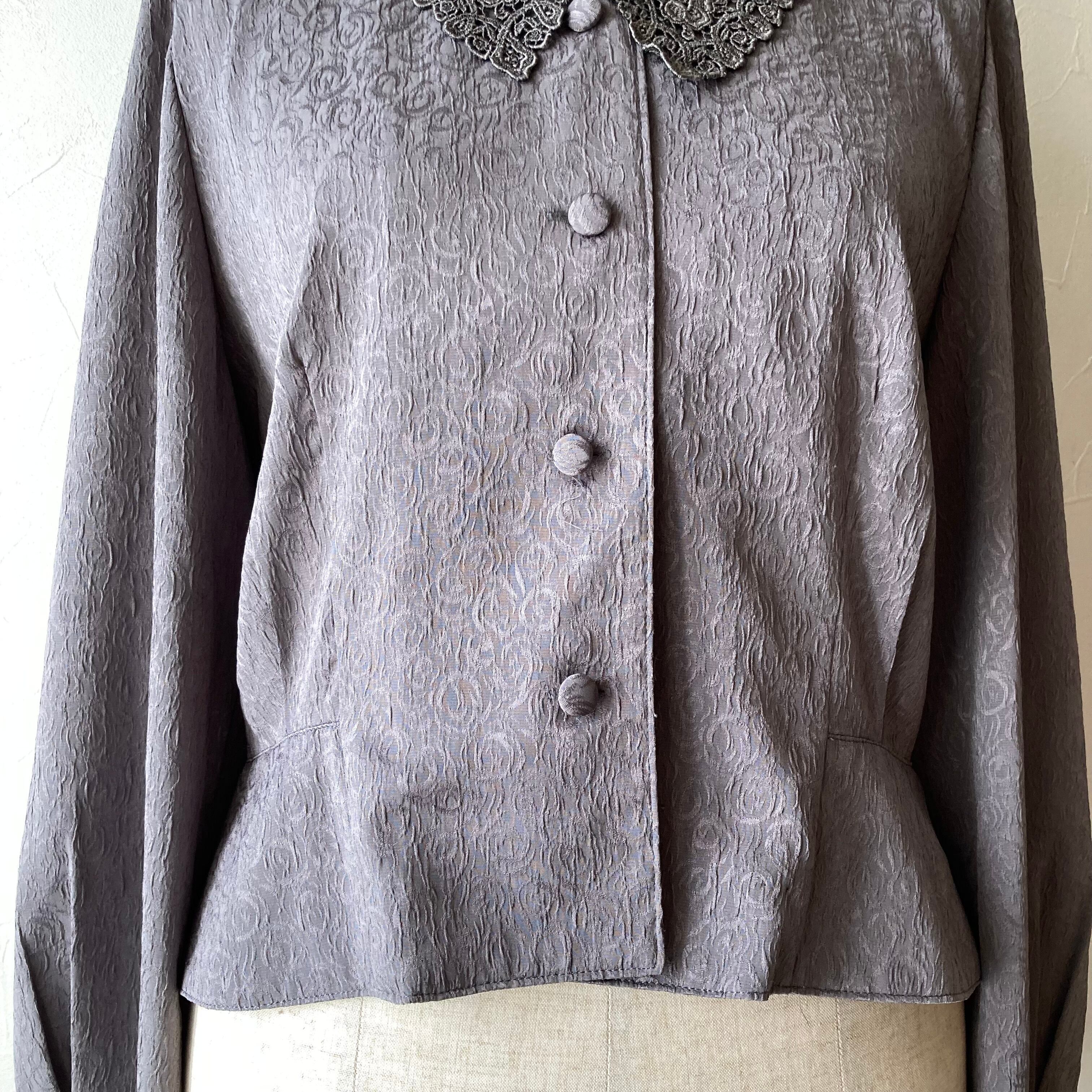 グレーレース刺繍襟ブラウス 古着 used vintage レトロ
