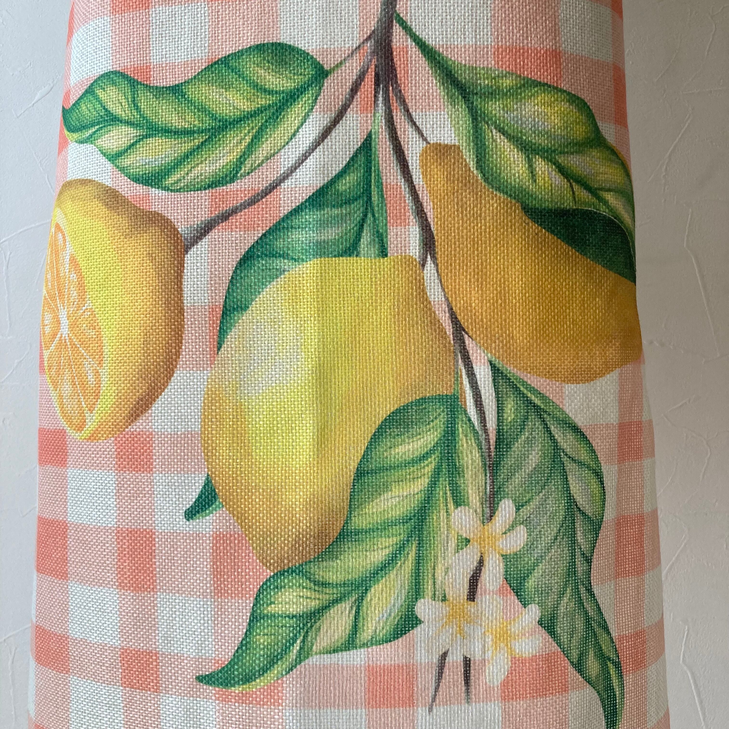 淡いオレンジのチェックにレモンのイラストがキュートなエプロンです。