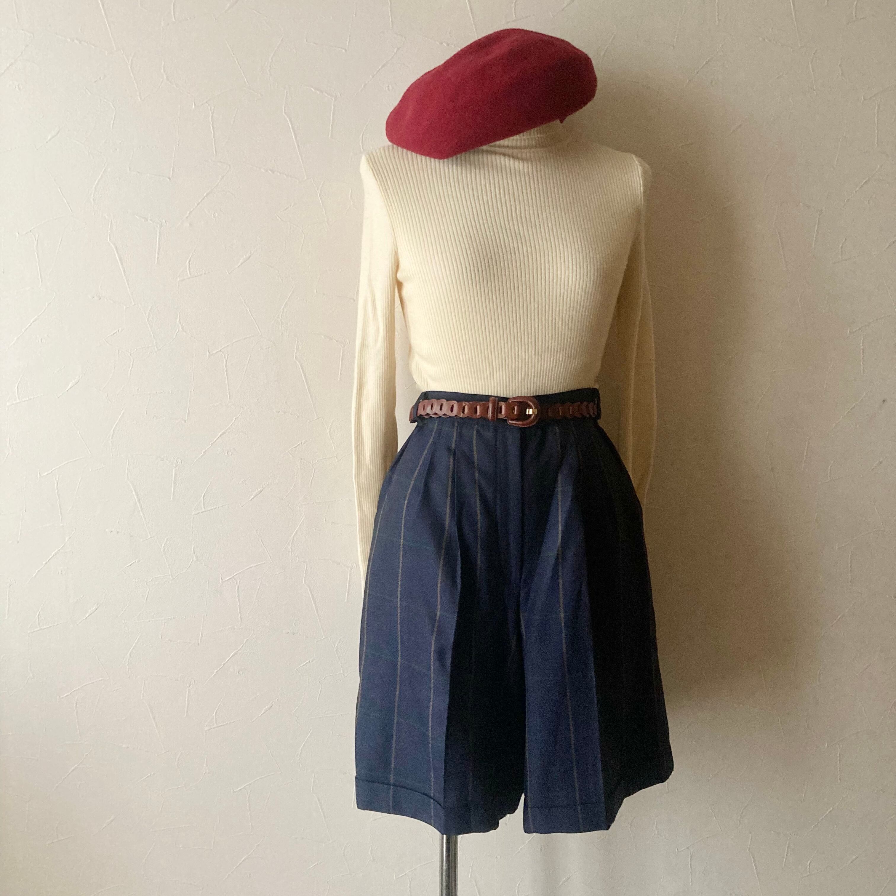 ネイビーチェックキュロット 古着 used vintage レトロ