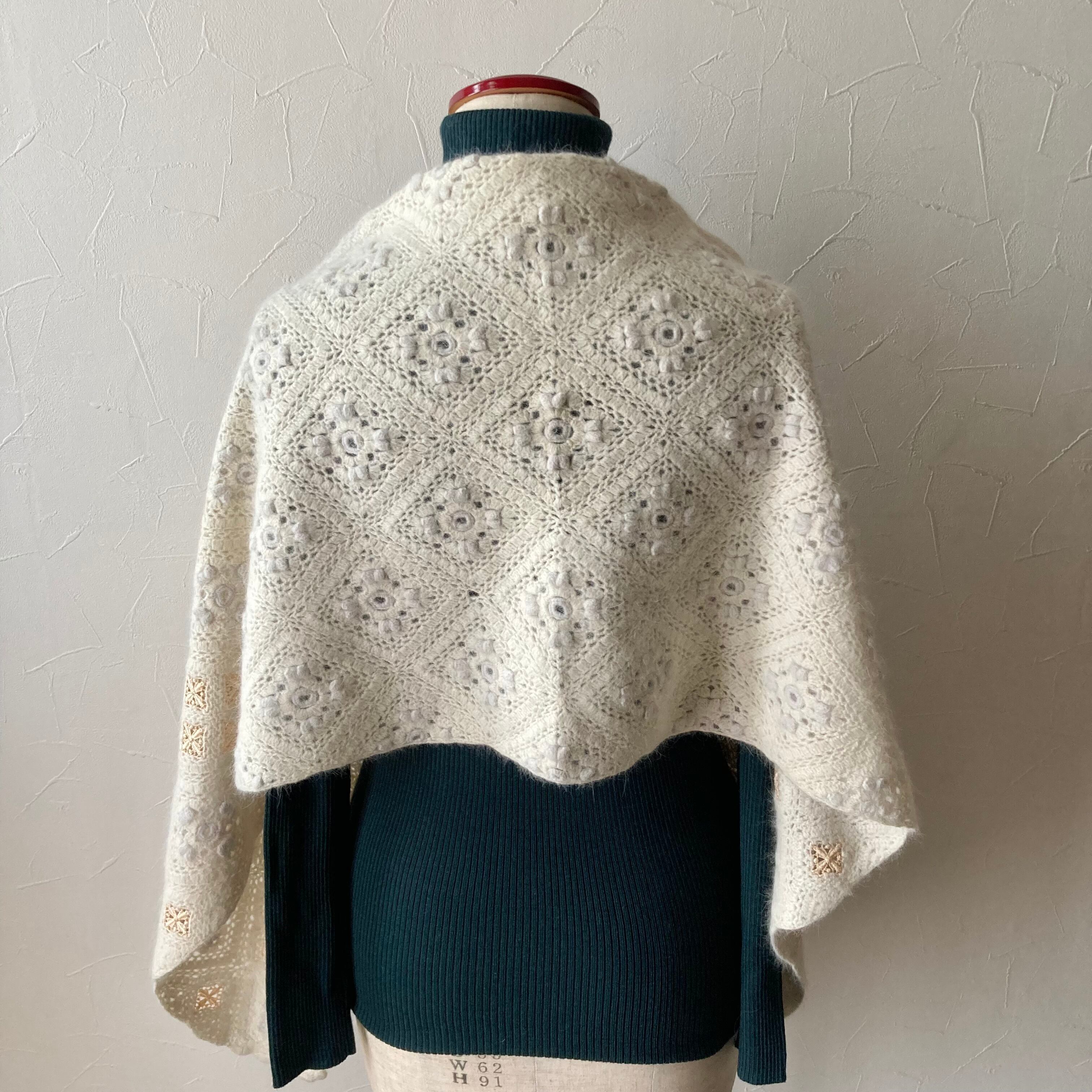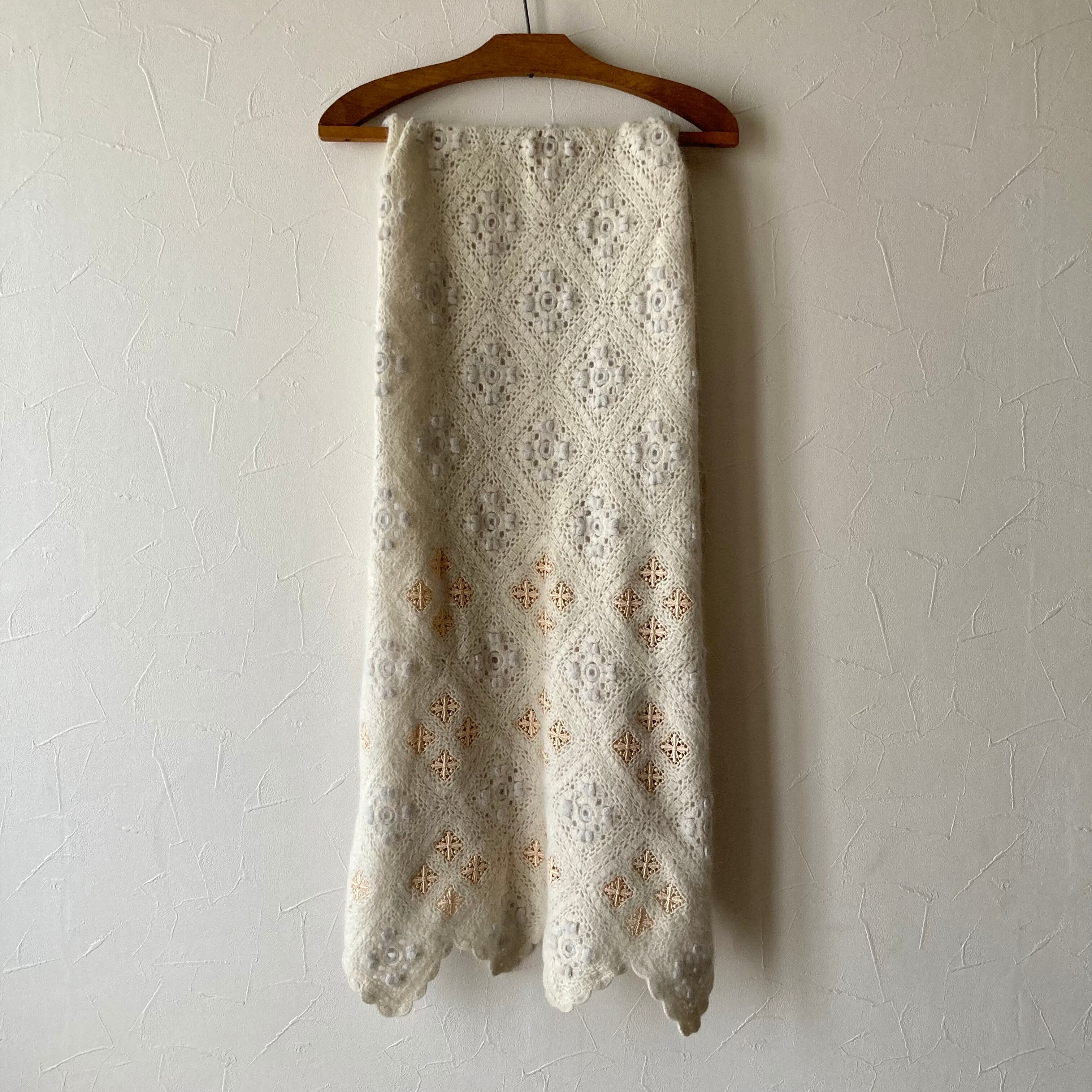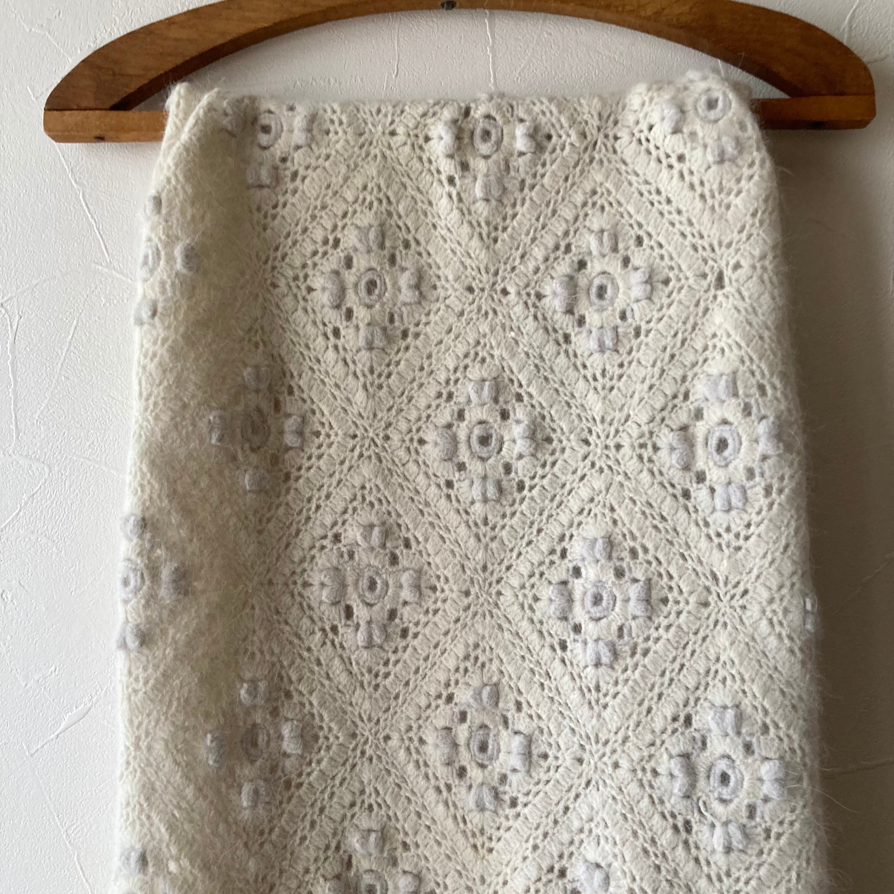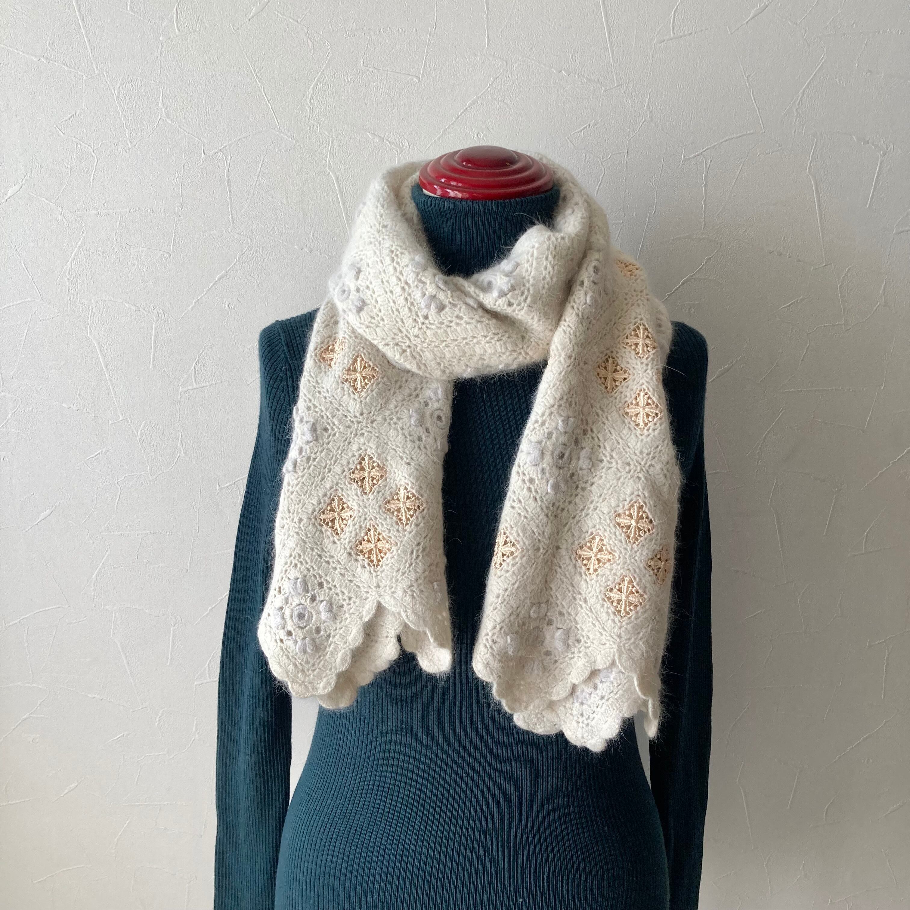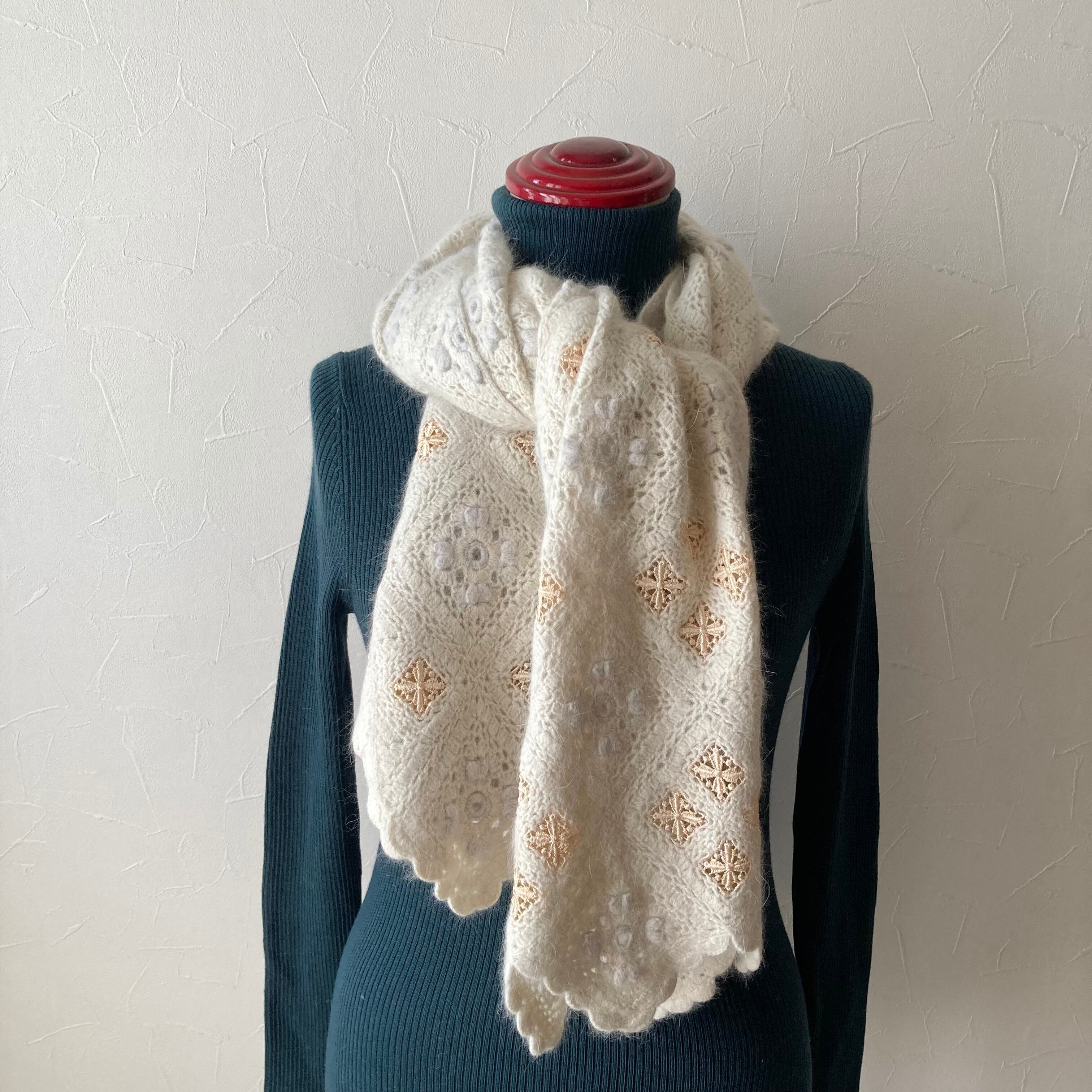 花モチーフニットマフラー 古着 used vintage レトロ