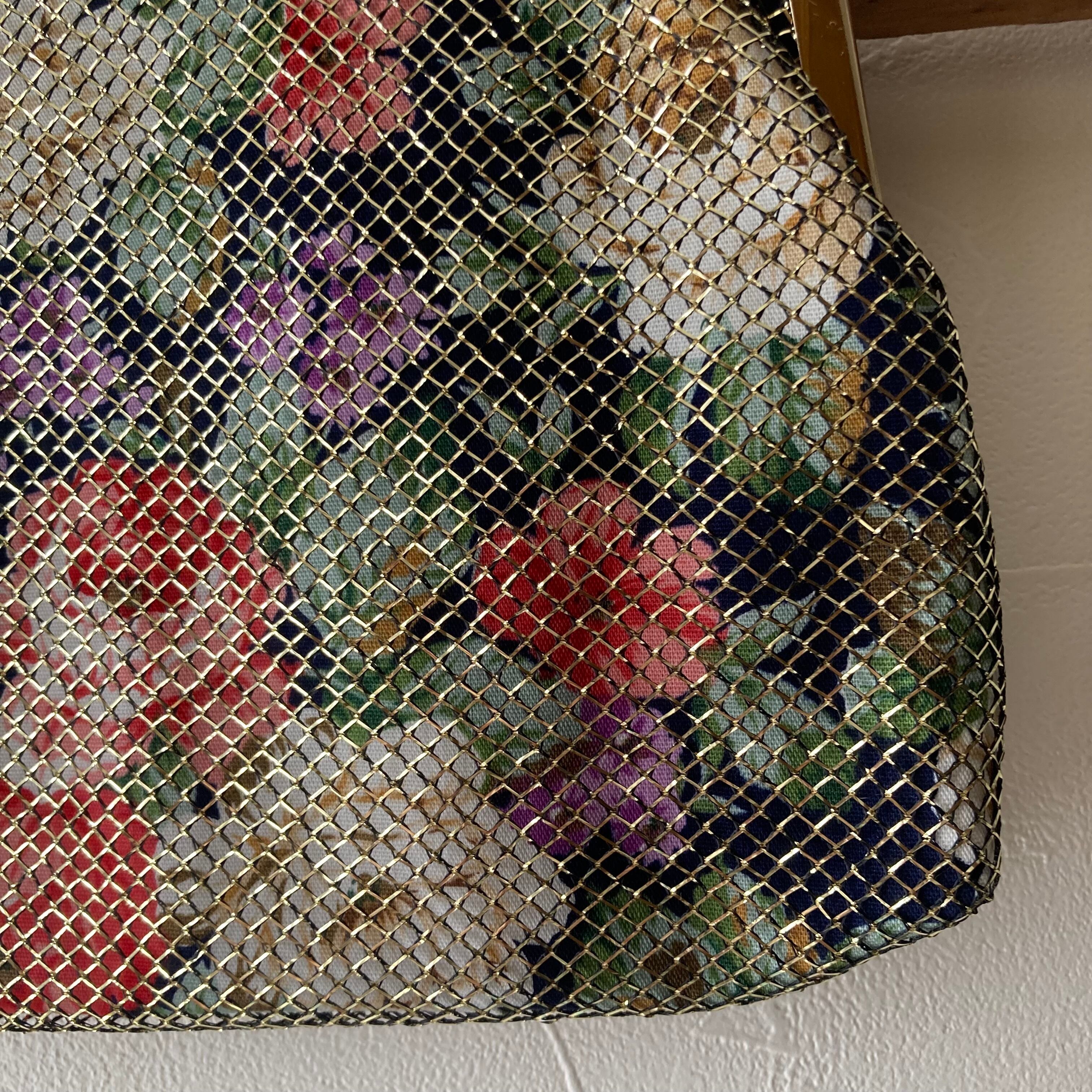 黒地に白や赤の花がにゴールドのメッシュレースがエレガントで素敵なバッグ◯