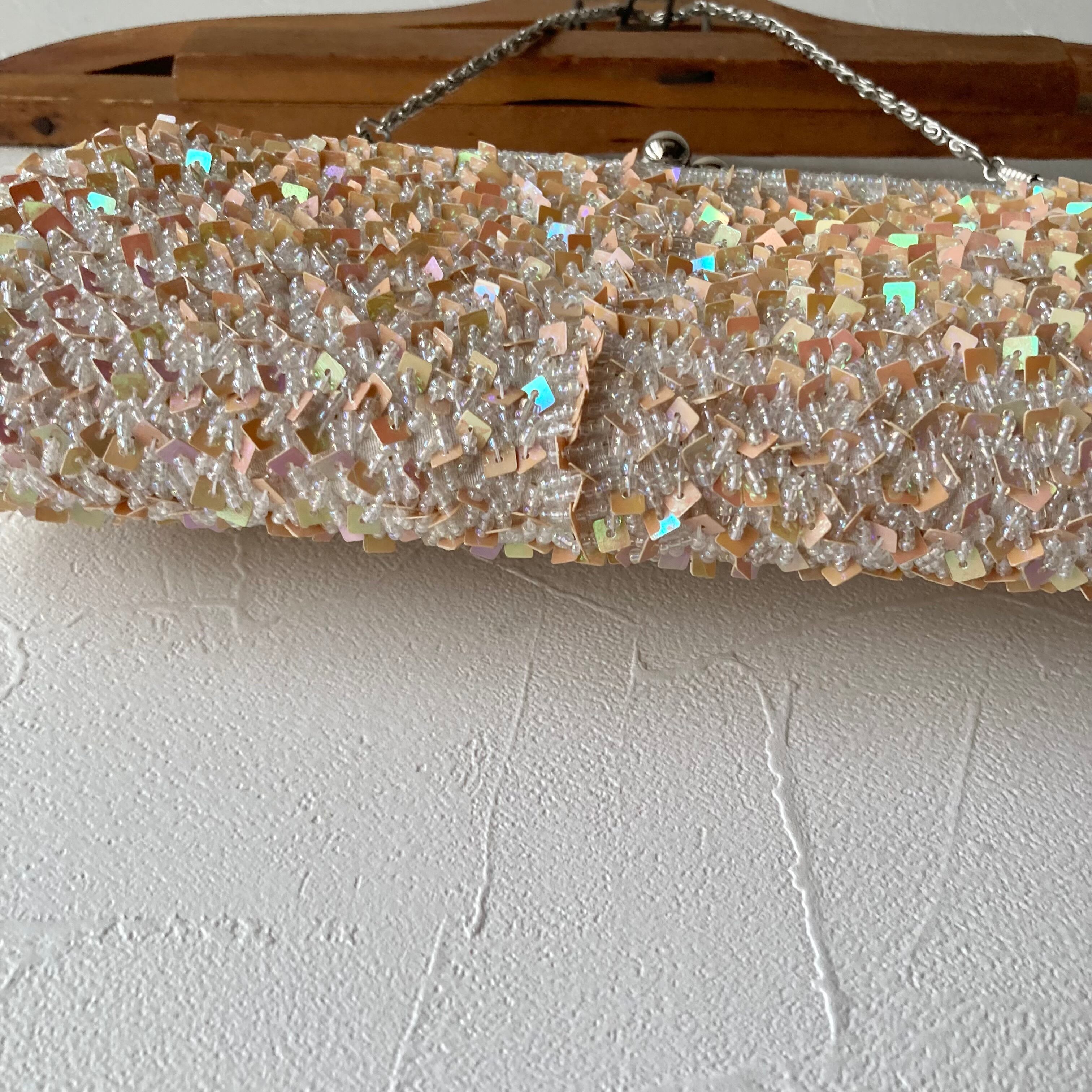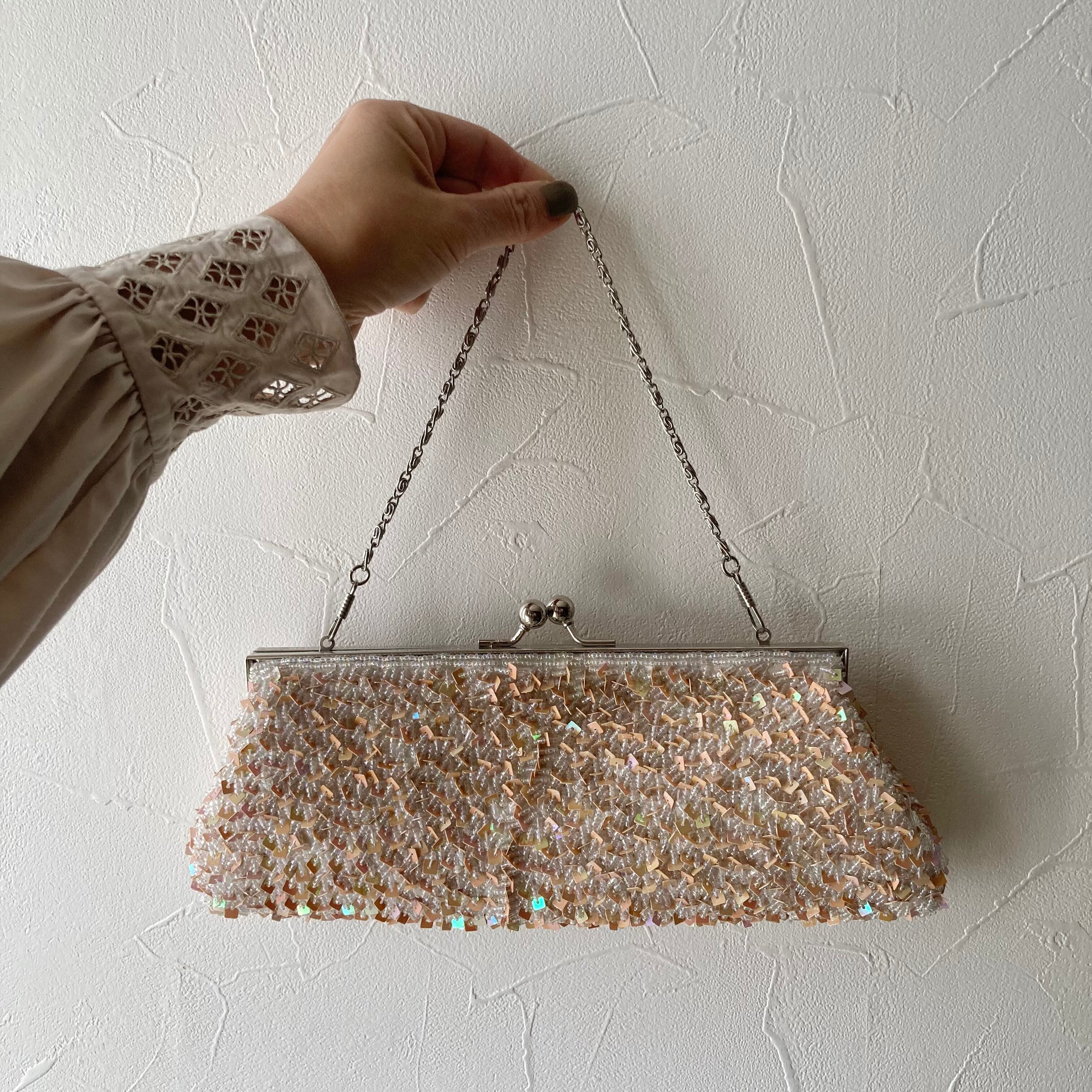 キラキラした透明感のあるビーズに四角いスパンコールが編まれた素敵なバッグです。