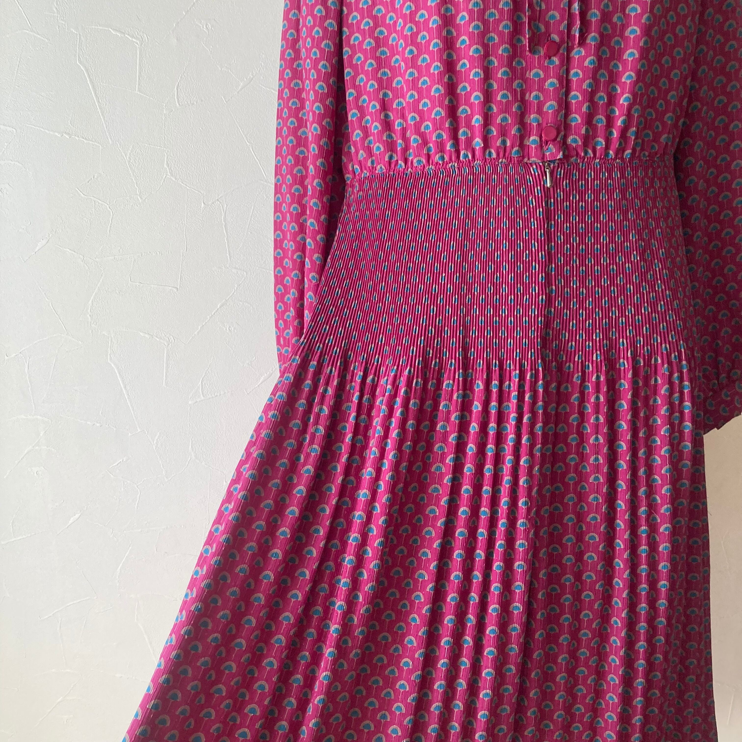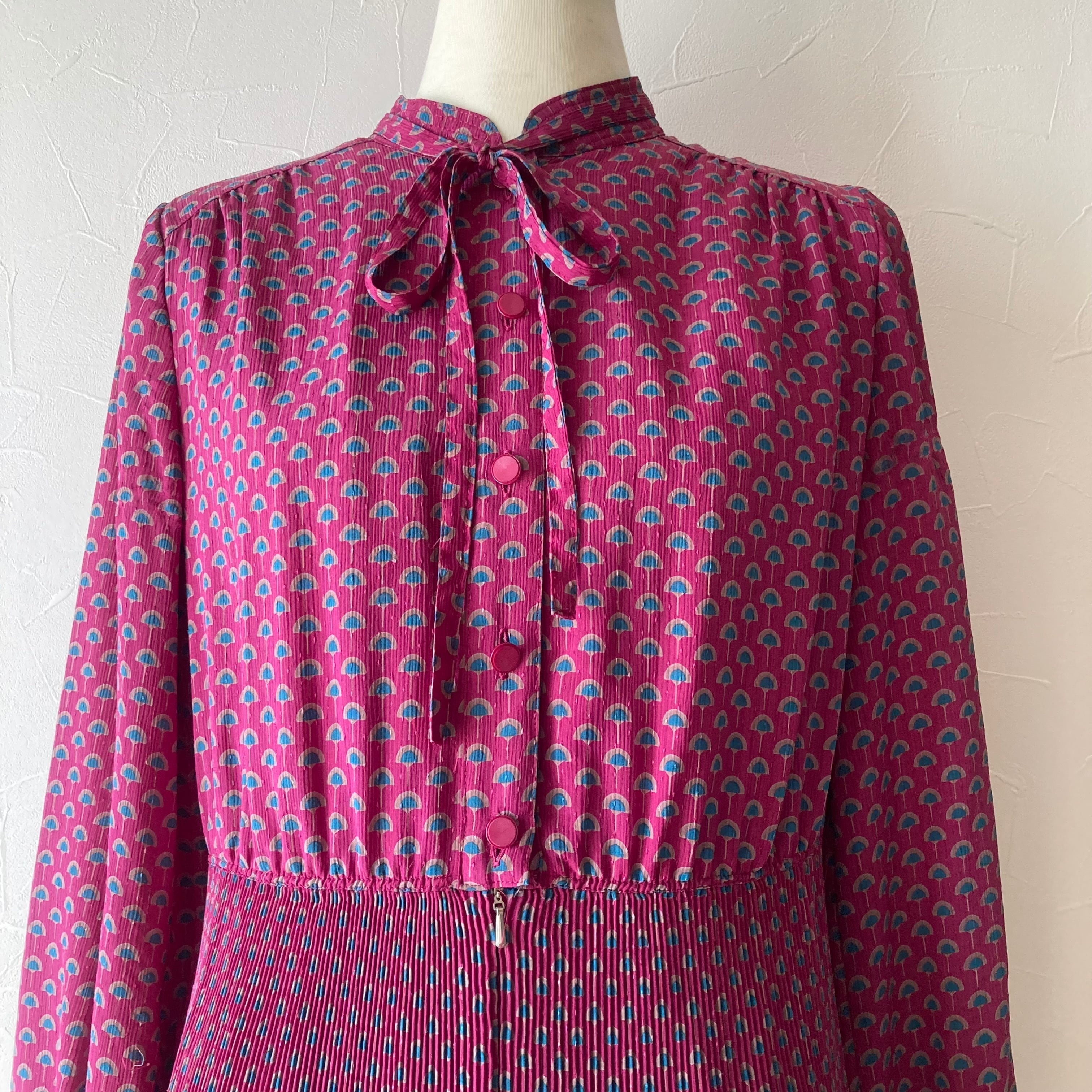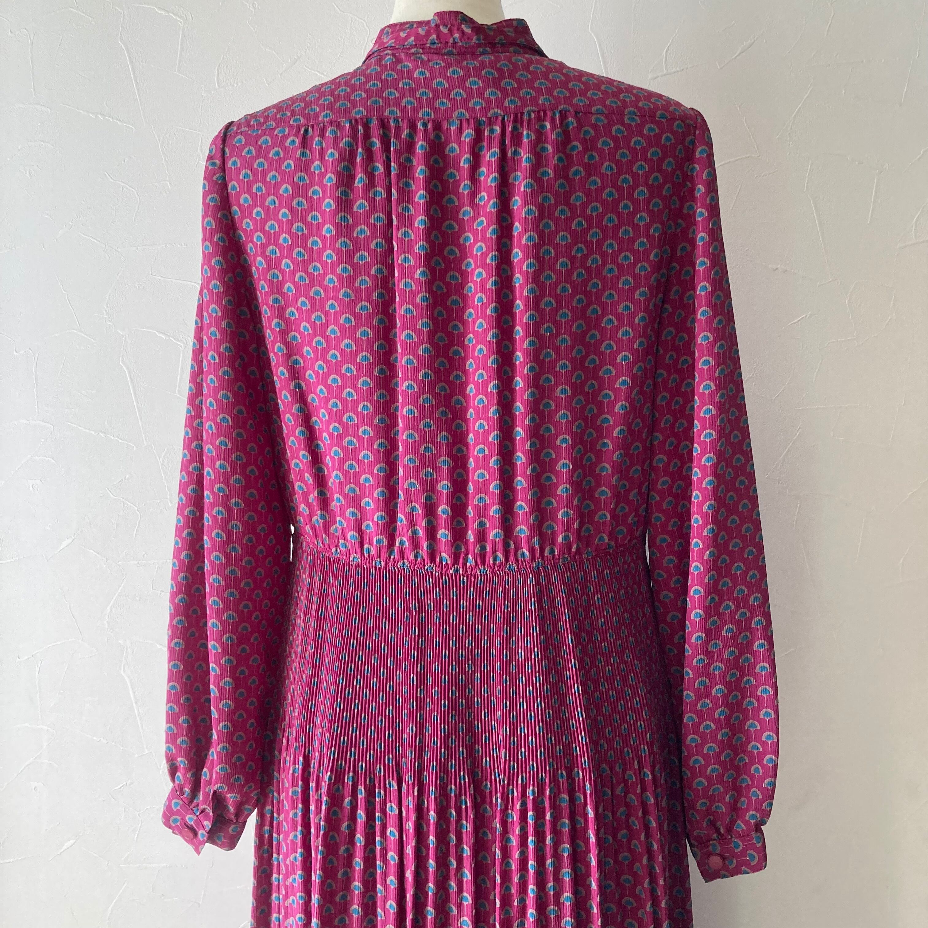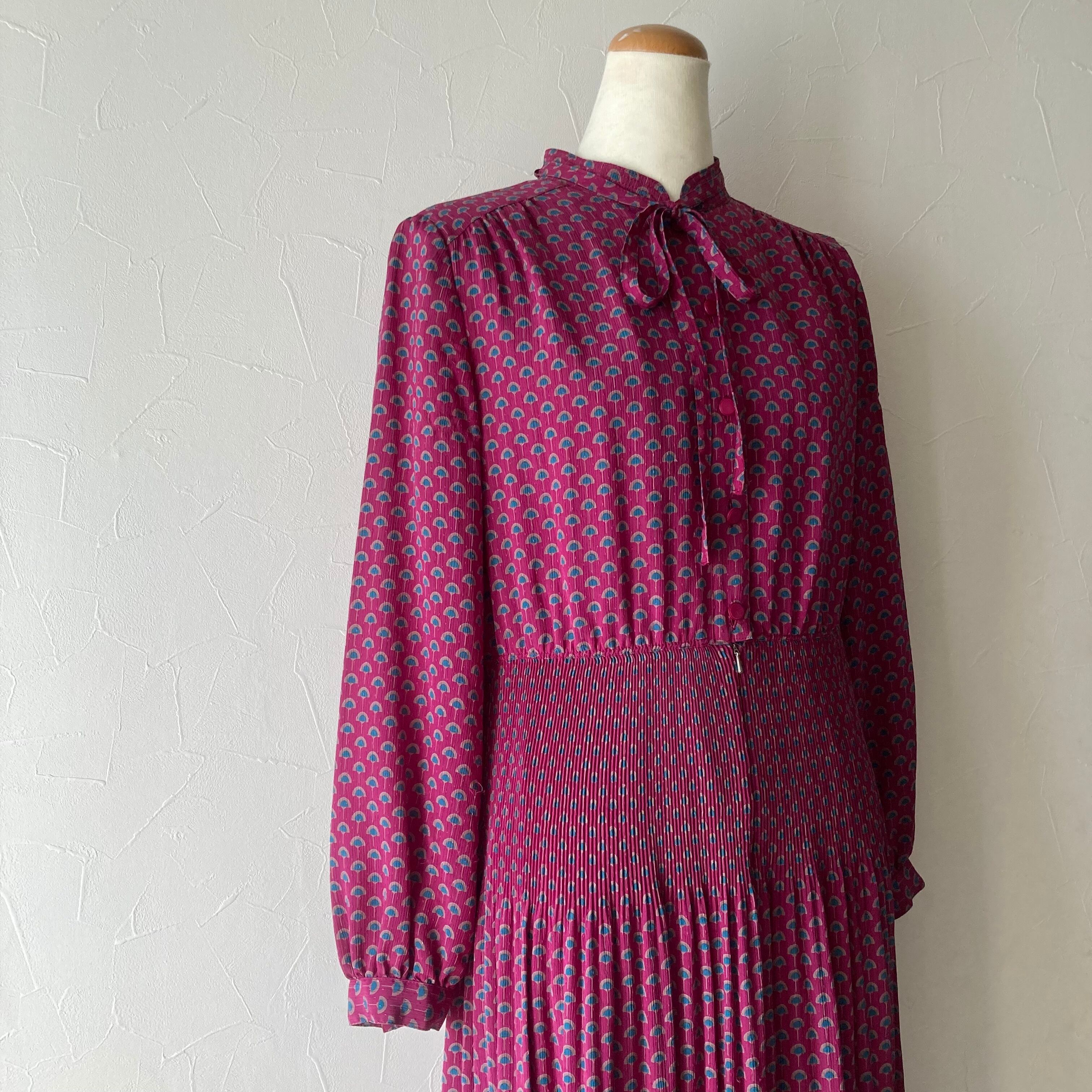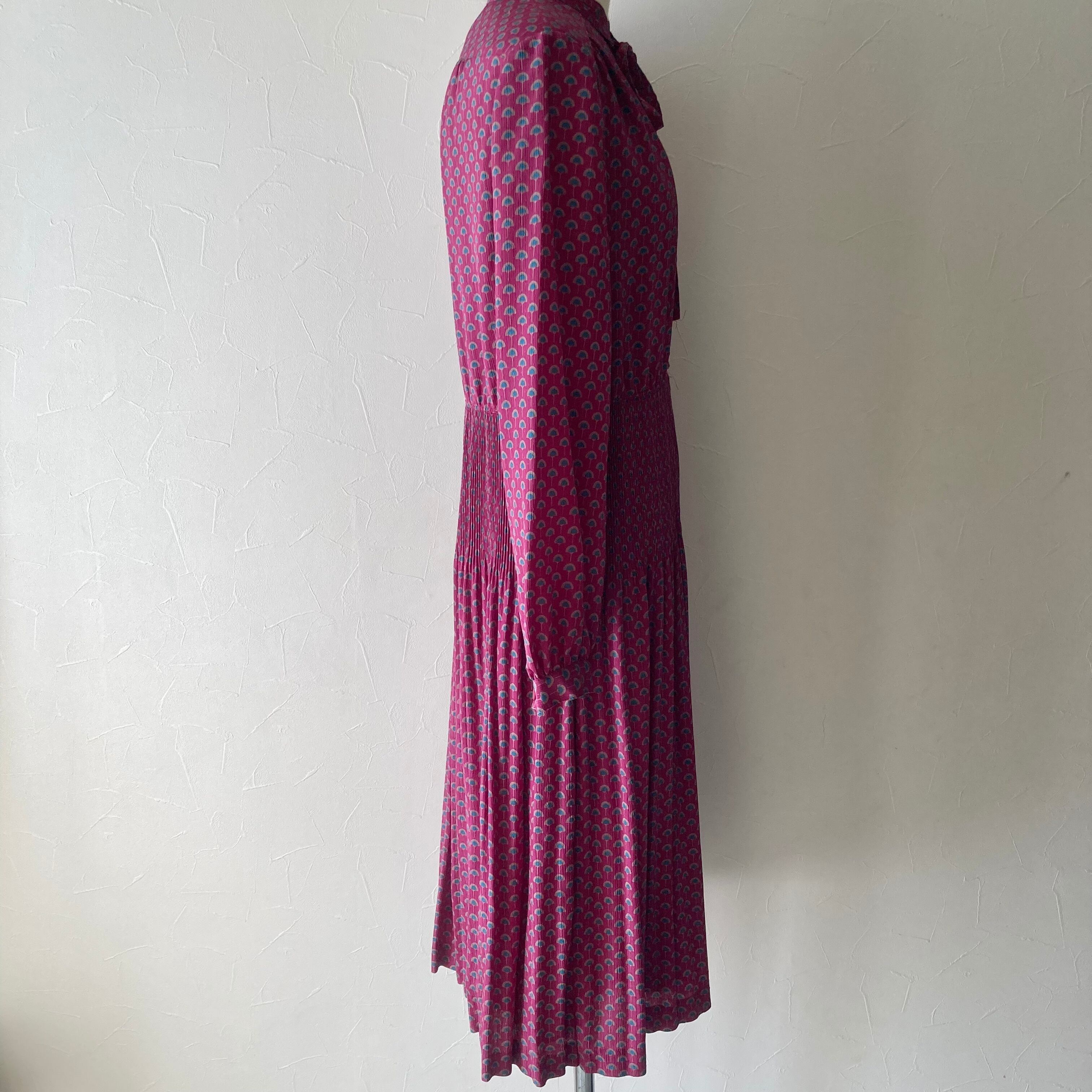 柄リボンプリーツワンピース 古着 used vintage レトロ