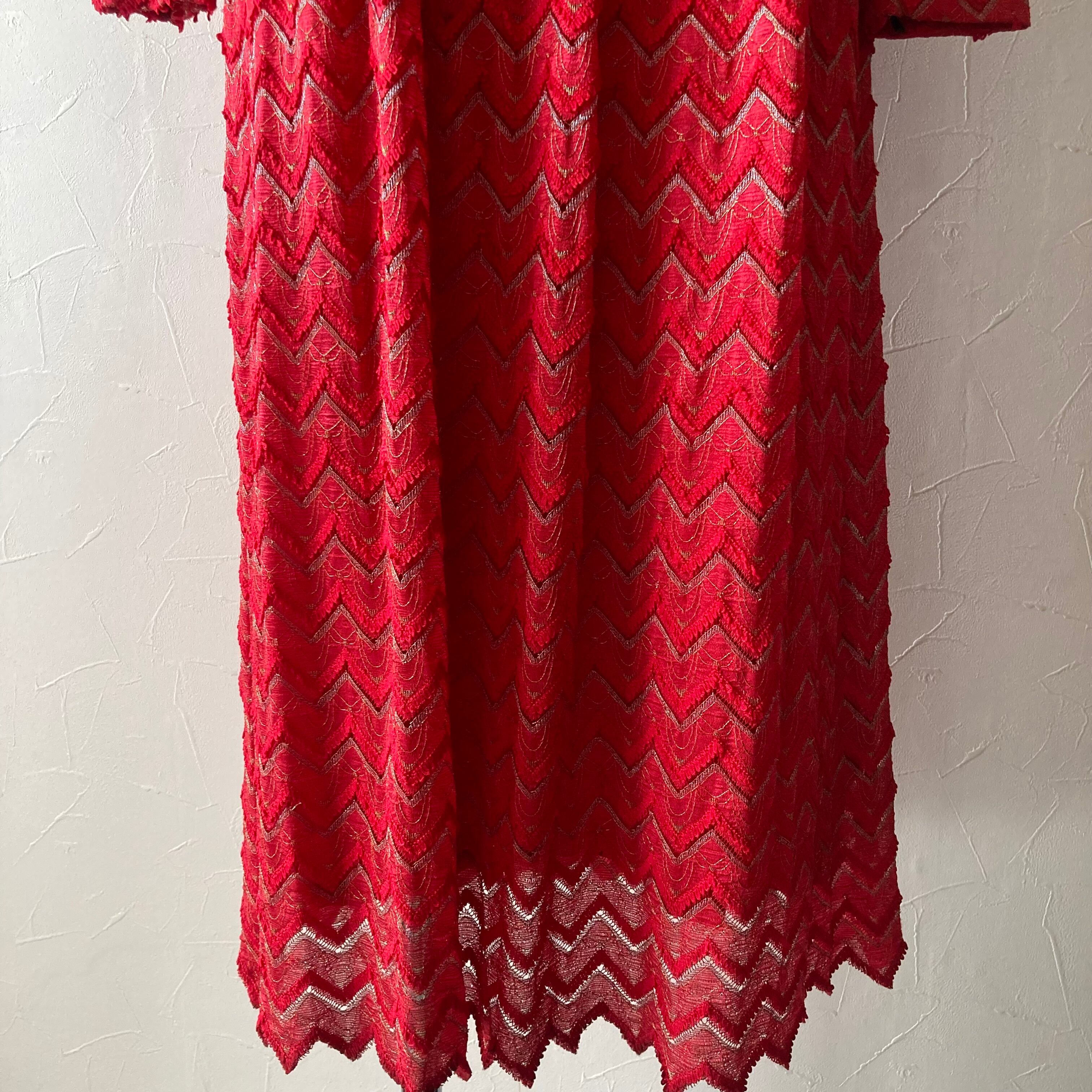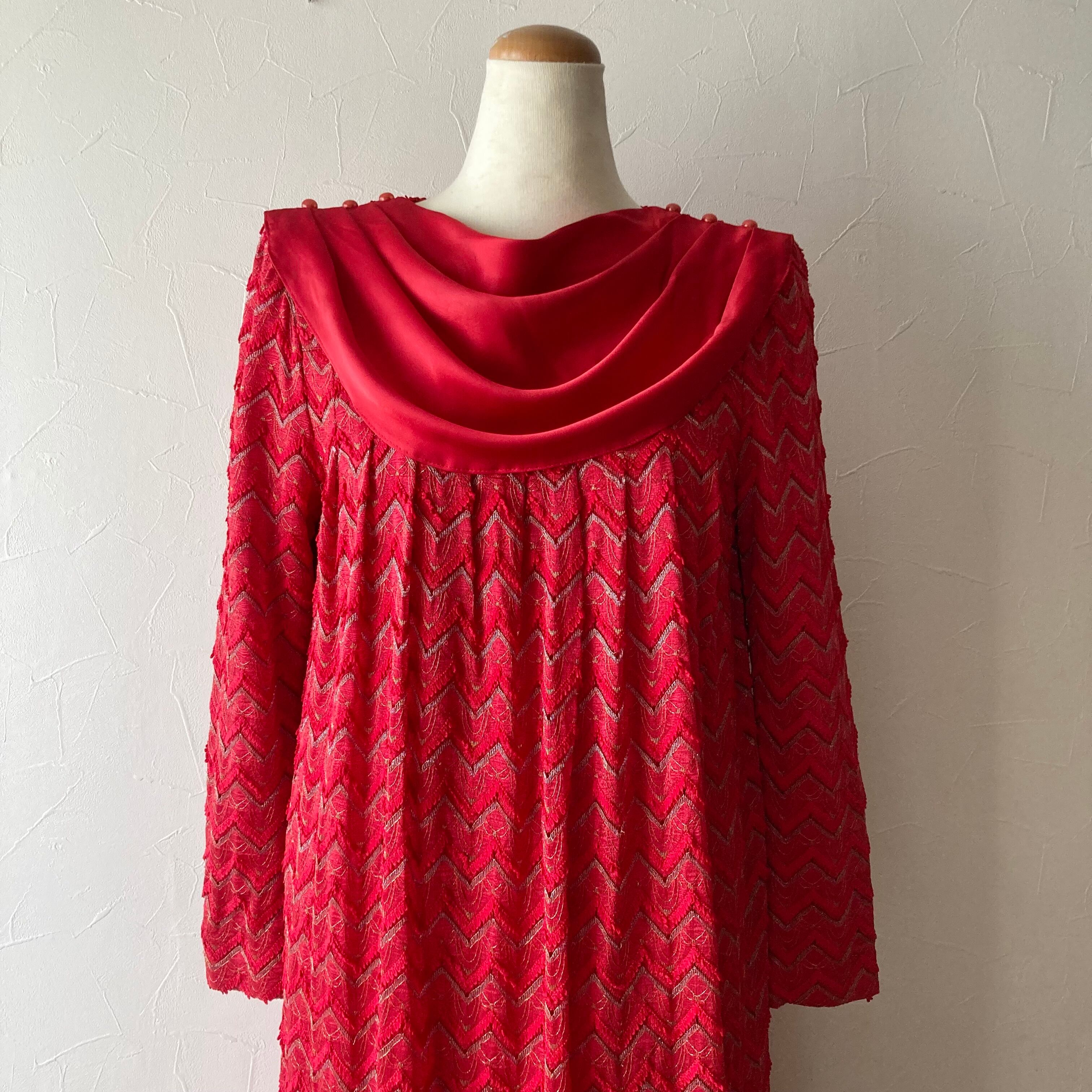 赤色ギザギザレースドレス 古着 used vintage レトロ