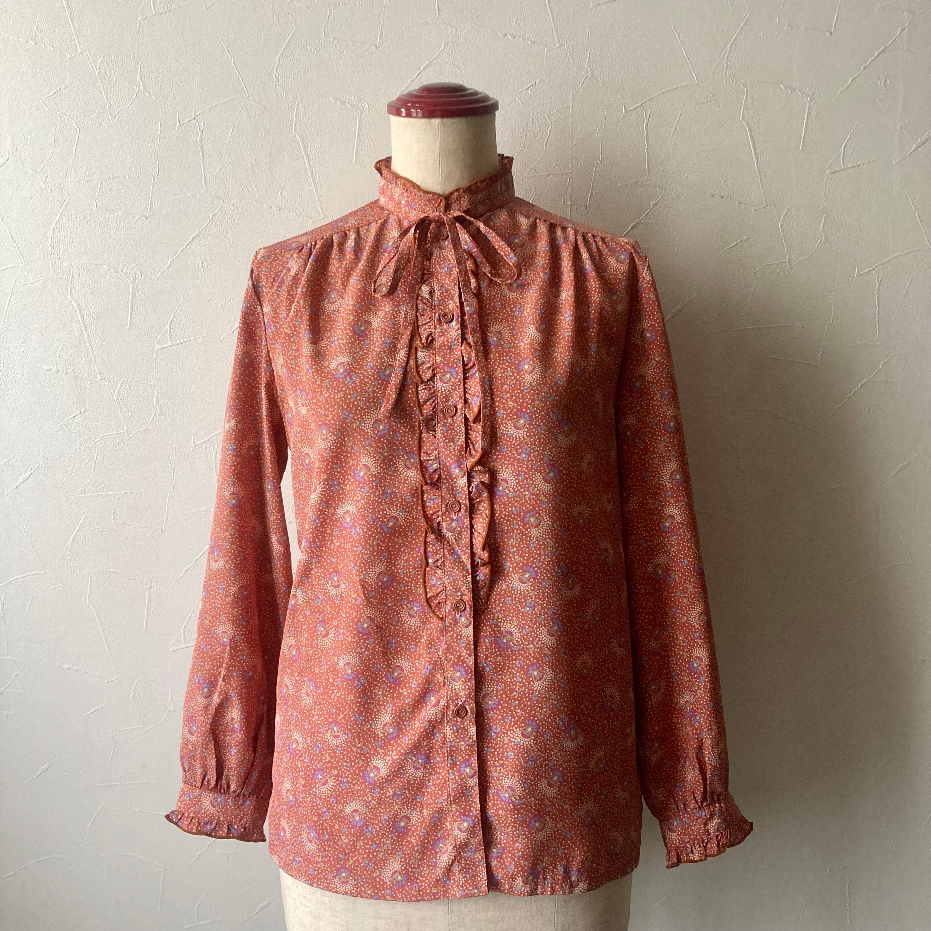 レトロ柄リボンフリルブラウス 古着 used vintage レトロ