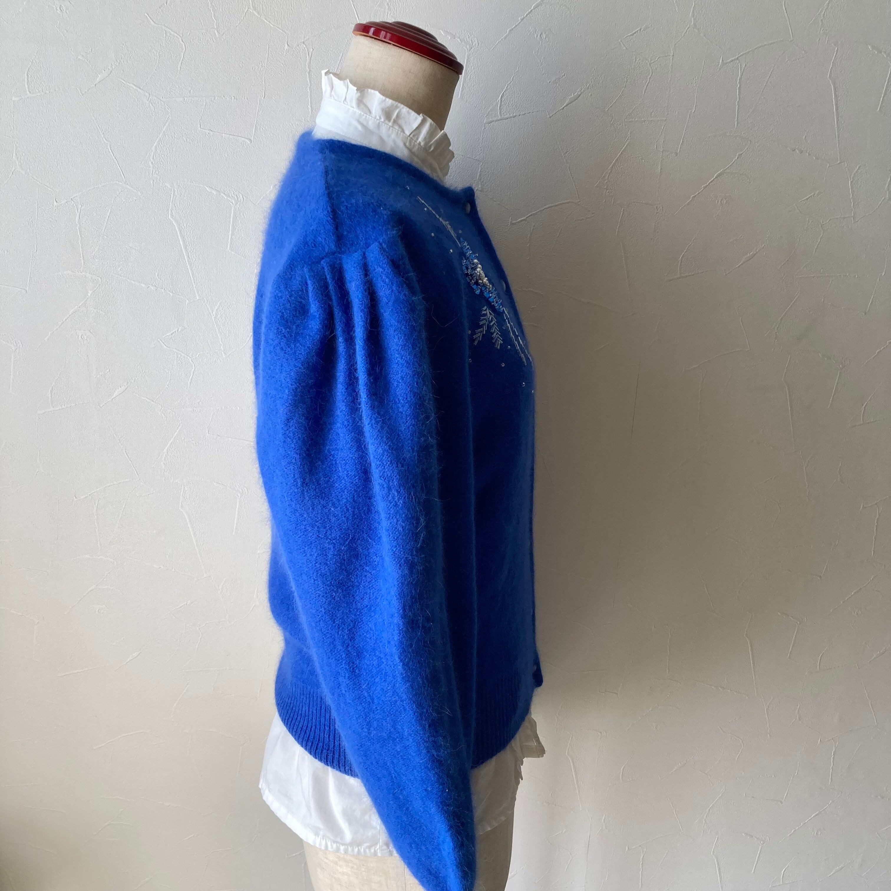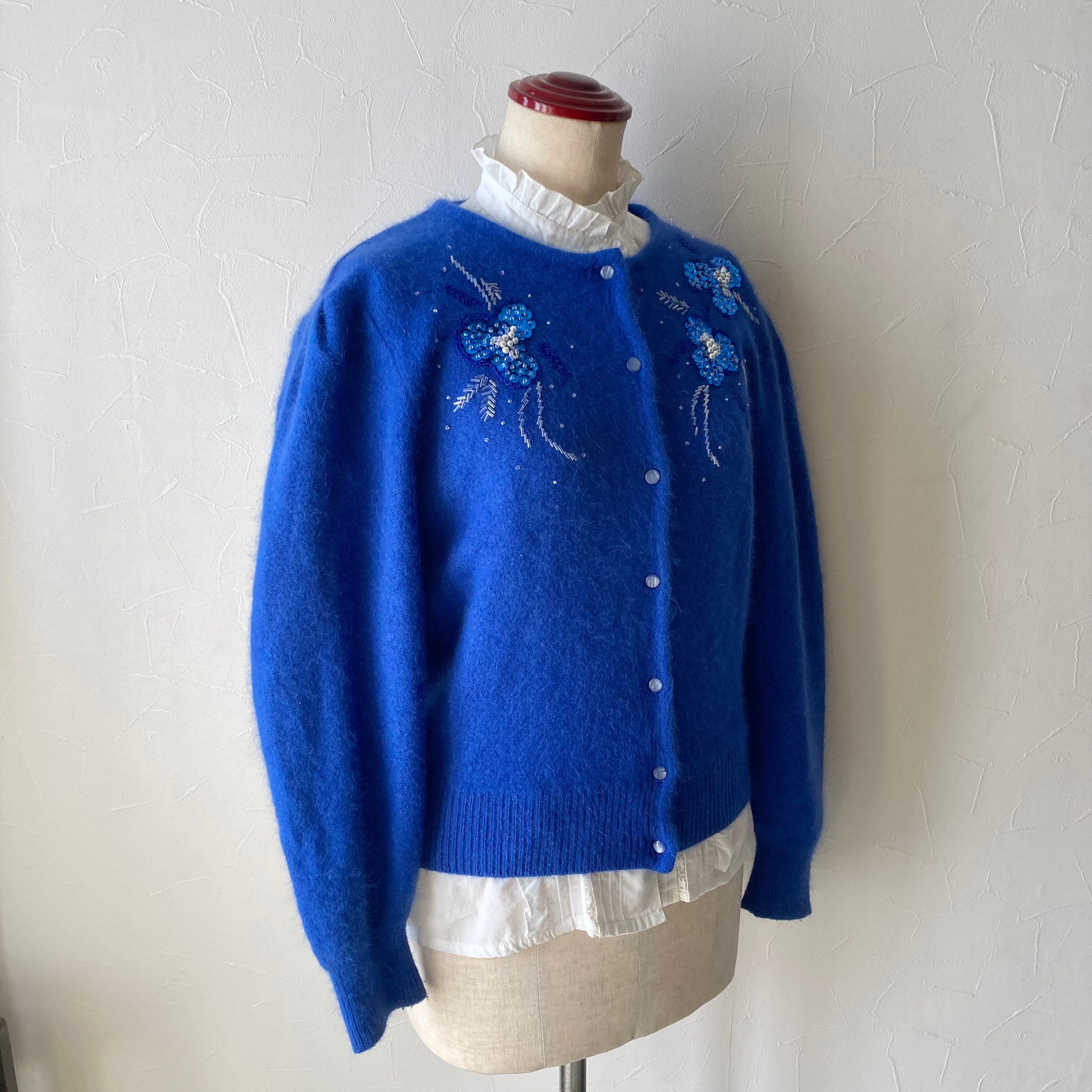 ブルービーズ刺繍カーディガン 古着 used vintage レトロ